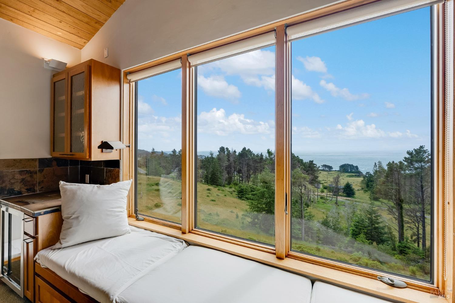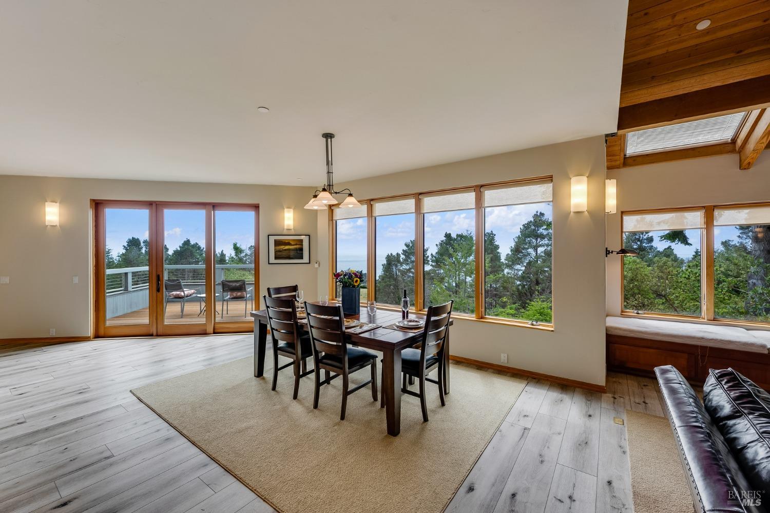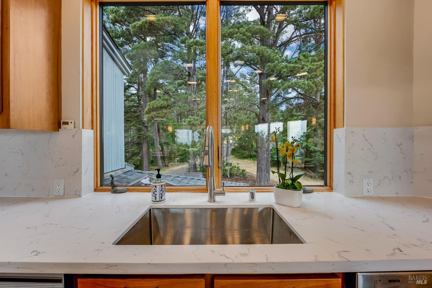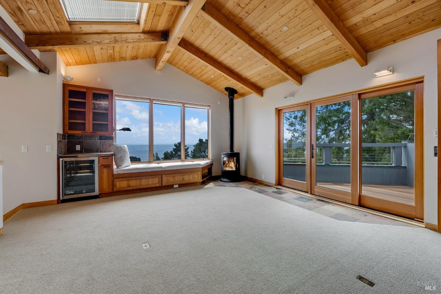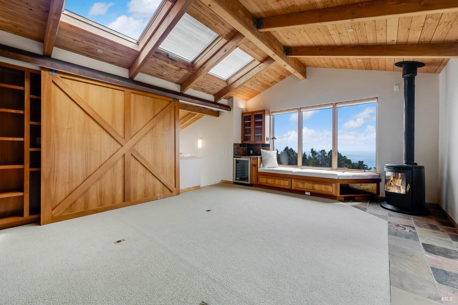 You'll feel right at home as soon as you experience the open concept design of this lovely 3 bedroom, 3.5 bath custom designed hillside ocean-view home. Across the threshold, nice touches include wide plank hardwood flooring in the foyer, kitchen & living spaces. A home office with custom cabinets & a garden room or media room complete the main level with 2 guest suites. The upper level offers natural light & stylish fixtures in a neutral decor. Enjoy crackling fireplaces in the living room, primary bedroom, library & garden room that radiates a welcoming ambiance & contribute a couple of choice spots for warming up during winter. Delectable notions become aromatic realities in the elegant, spacious gourmet kitchen, with natural light, premium appliances of Viking, Subzero, Bosch & Thermador, two ovens & wine refrigerator! Custom cabinets topped with beautiful granite counters in an attractive island layout. The calm primary bedroom includes 2 walk-in closets & a private bath with tub & a curb less shower. The other two bedrooms, conveniently accessible from the main floor, are quiet & rich with ample closet space. On the top floor is the lookout room with great ocean views, a library wall & wet bar. Socializing on 1 of the 4 ipe hardwood decks is ideal for grilling or relaxing.