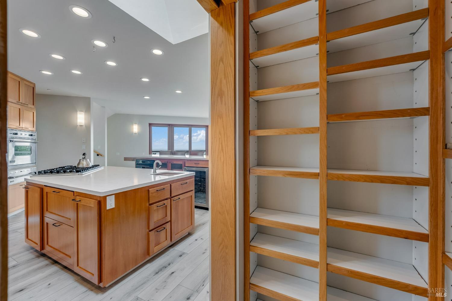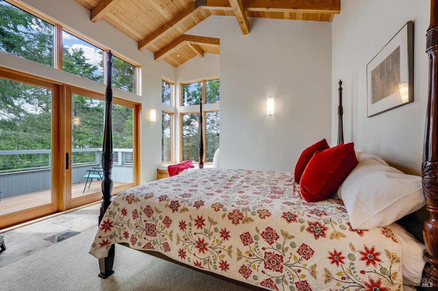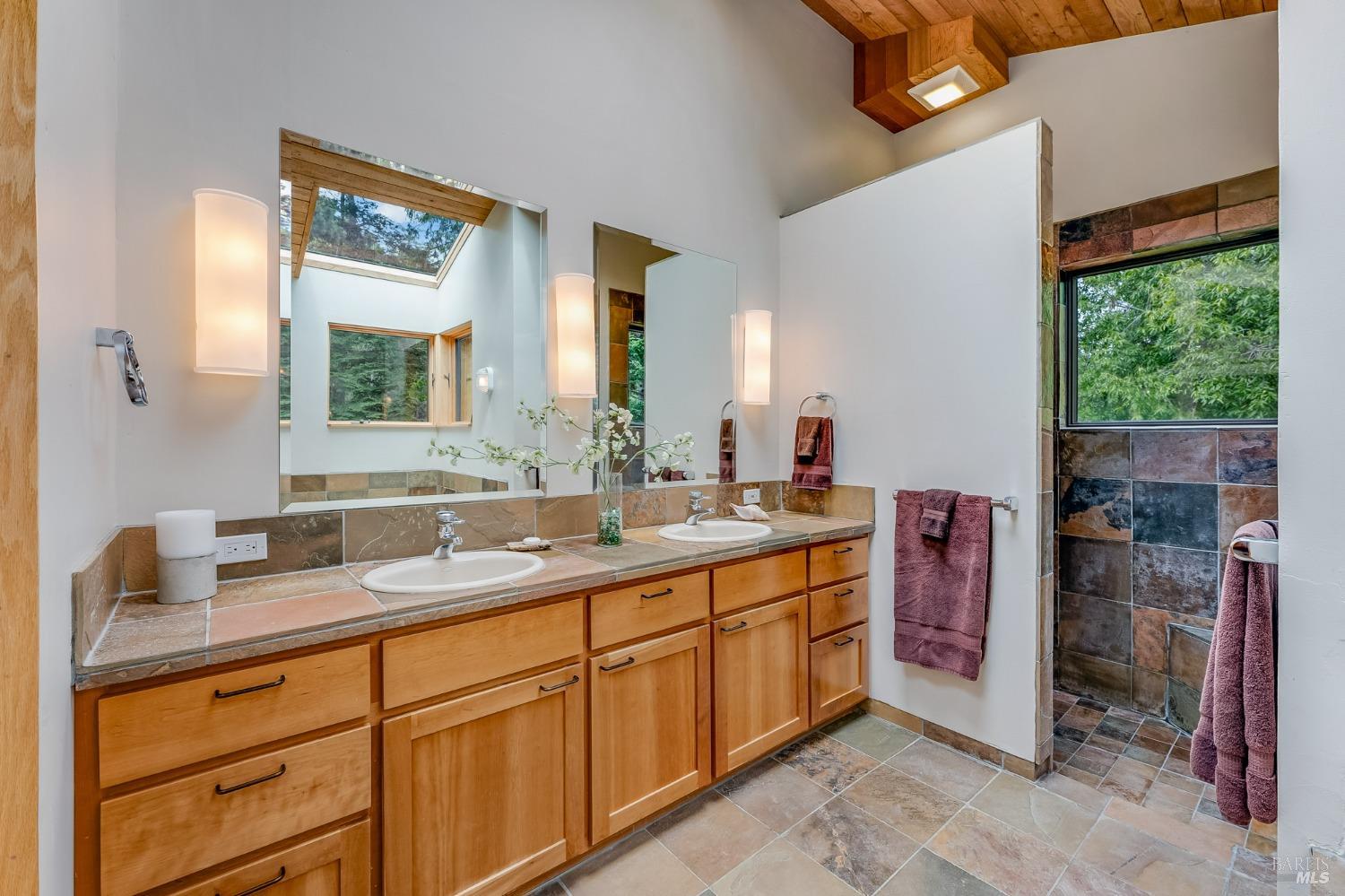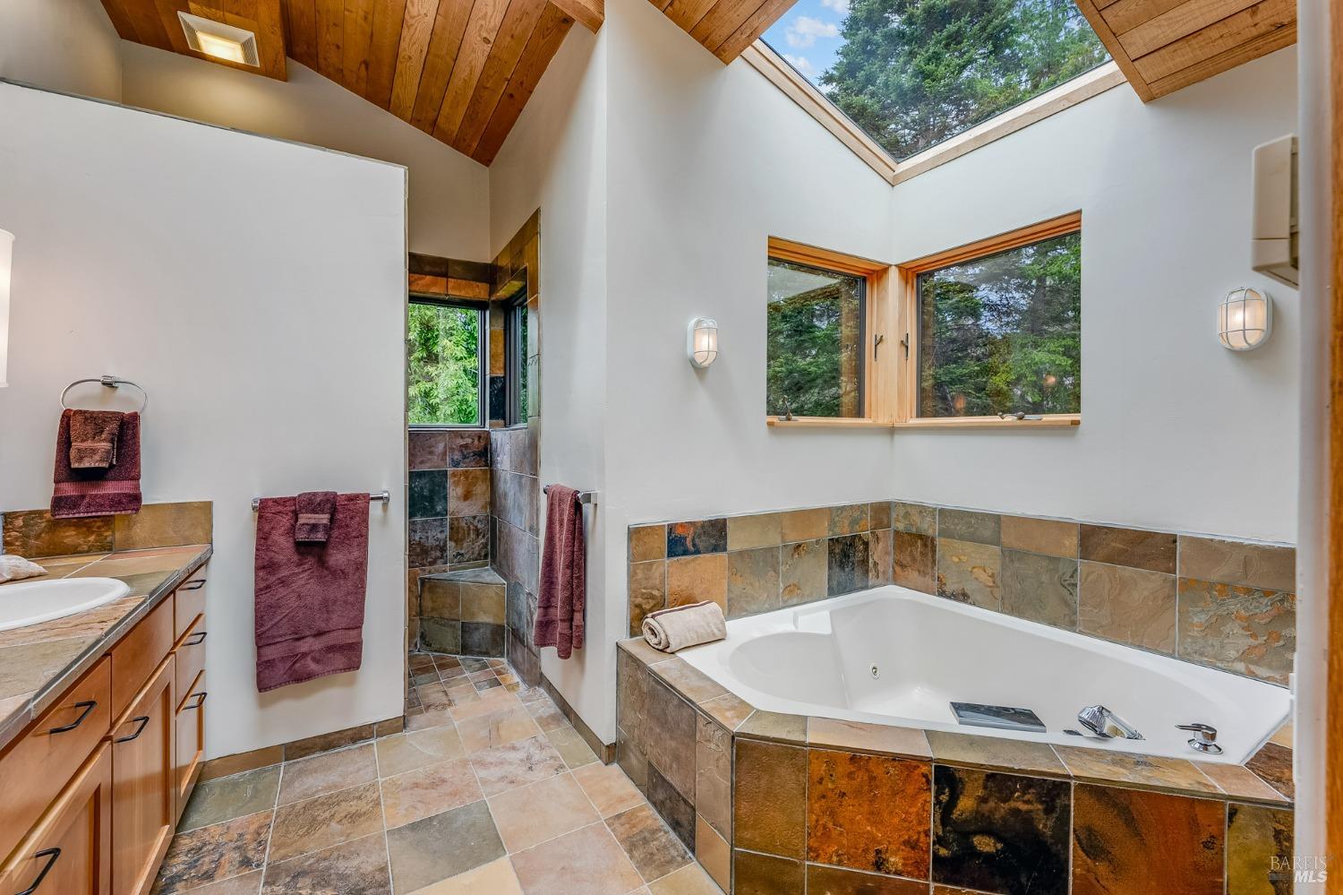 You'll feel right at home as soon as you experience the open concept design of this lovely 3 bedroom, 3.5 bath custom designed hillside ocean-view home. Across the threshold, nice touches include wide plank hardwood flooring in the foyer, kitchen & living spaces. A home office with custom cabinets & a garden room or media room complete the main level with 2 guest suites. The upper level offers natural light & stylish fixtures in a neutral decor. Enjoy crackling fireplaces in the living room, primary bedroom, library & garden room that radiates a welcoming ambiance & contribute a couple of choice spots for warming up during winter. Delectable notions become aromatic realities in the elegant, spacious gourmet kitchen, with natural light, premium appliances of Viking, Subzero, Bosch & Thermador, two ovens & wine refrigerator! Custom cabinets topped with beautiful granite counters in an attractive island layout. The calm primary bedroom includes 2 walk-in closets & a private bath with tub & a curb less shower. The other two bedrooms, conveniently accessible from the main floor, are quiet & rich with ample closet space. On the top floor is the lookout room with great ocean views, a library wall & wet bar. Socializing on 1 of the 4 ipe hardwood decks is ideal for grilling or relaxing.