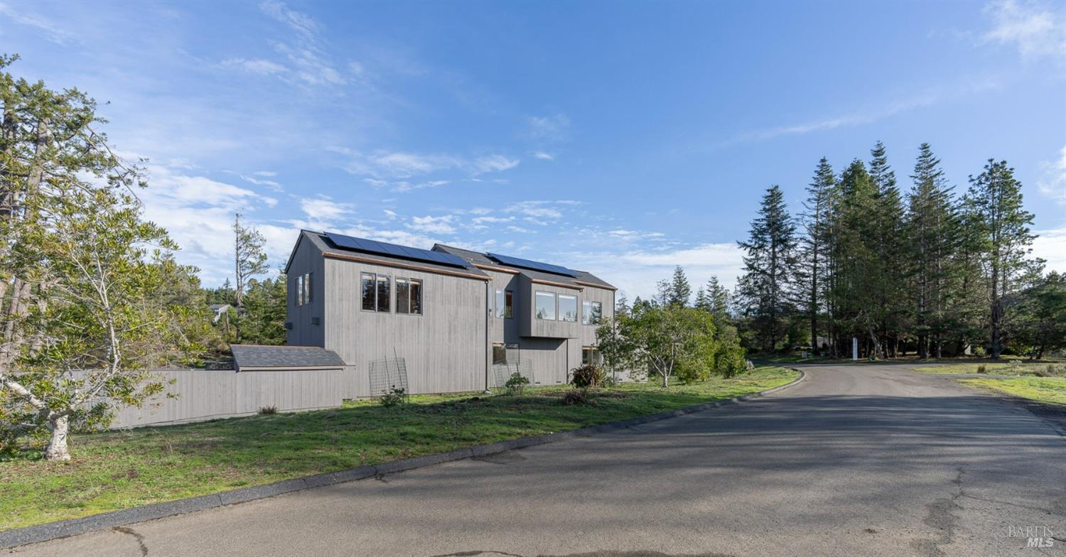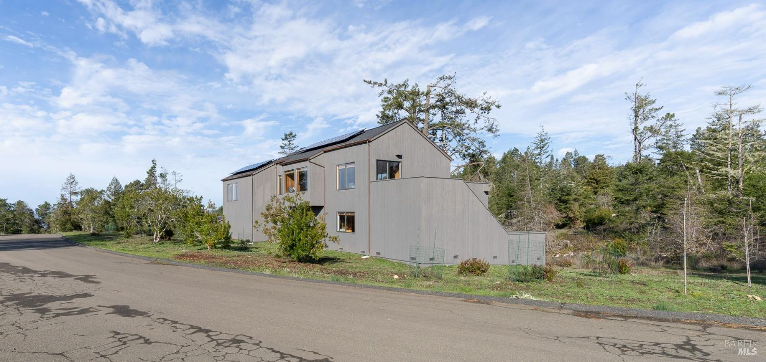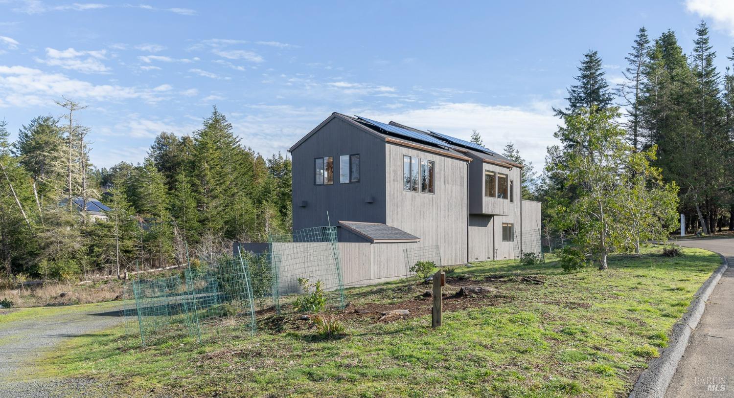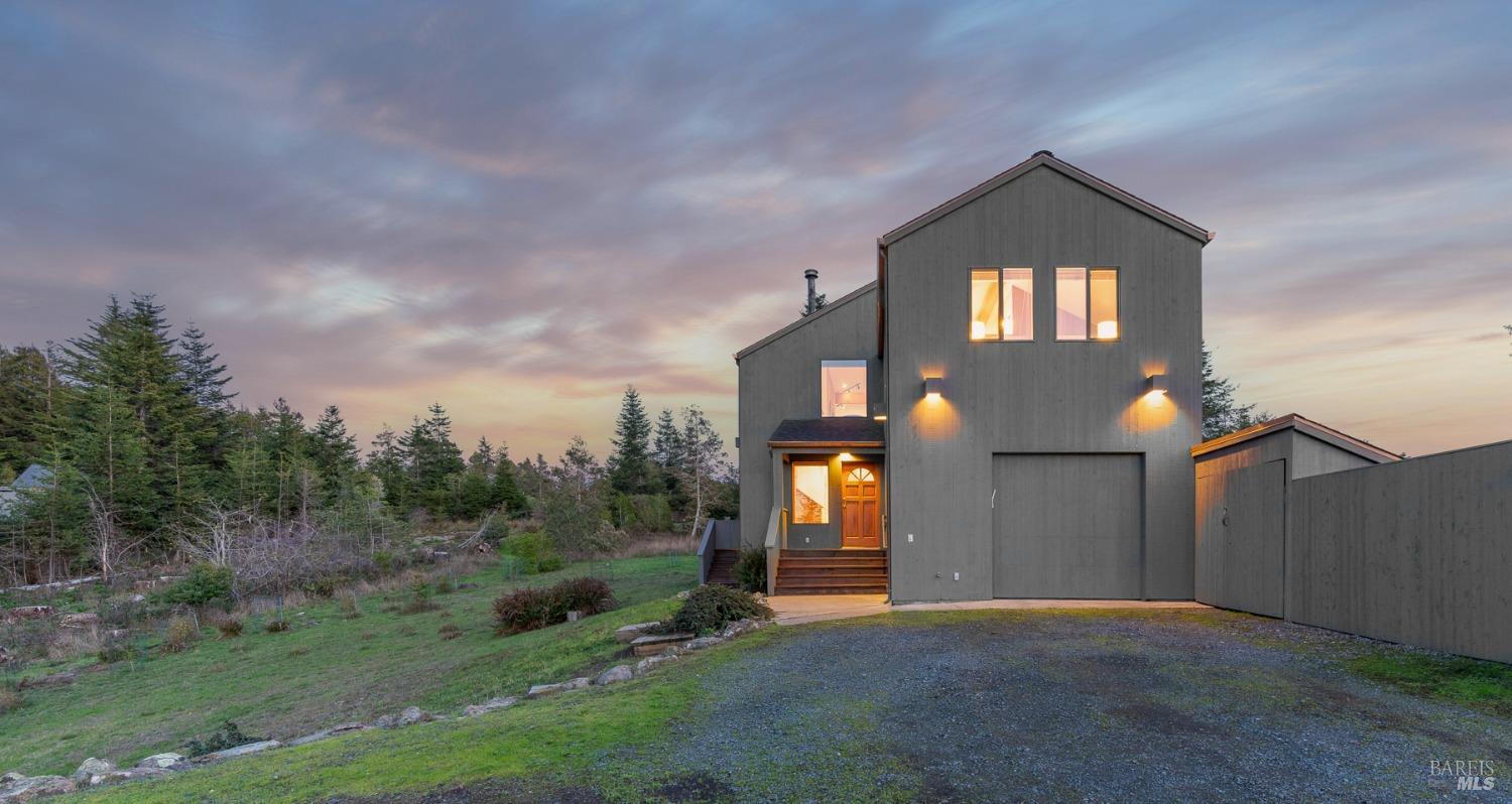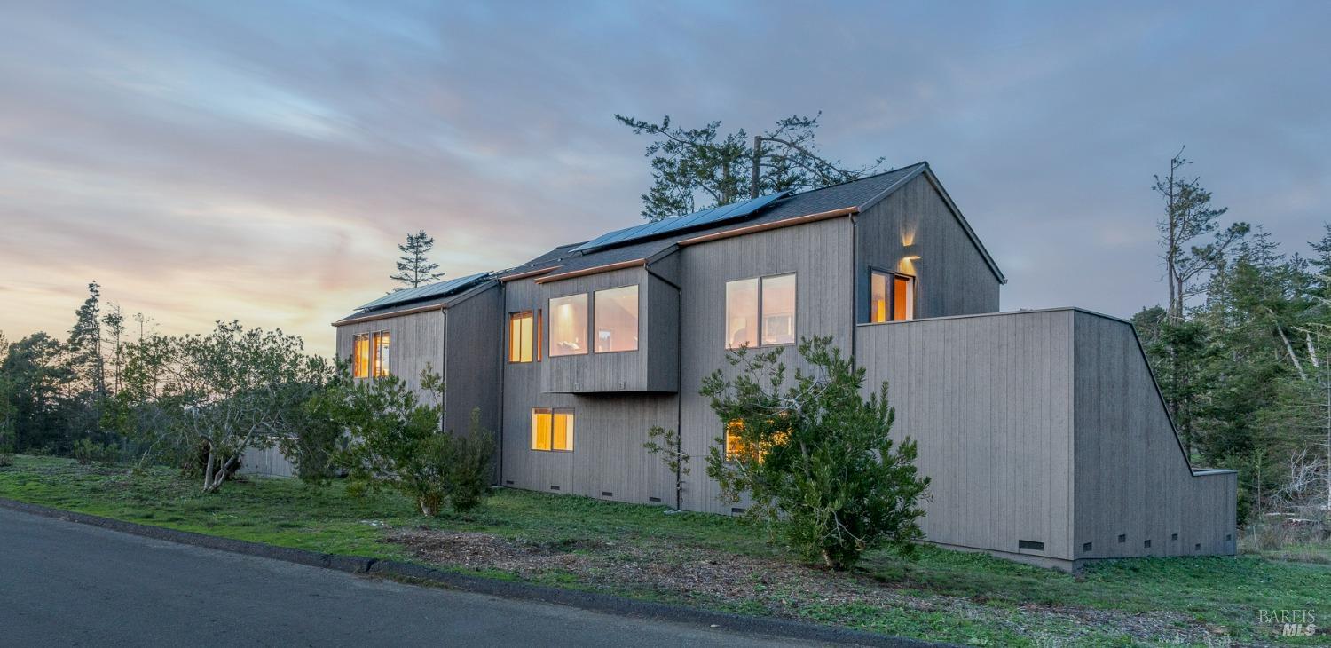 Welcome to 275 Pilot's Reach on the sunny, Sea Ranch hillside with a panoramic view of the ocean and hillside from the 2nd-floor great room, deck and primary bedroom suite w. office. A modern barn design by Architect Dan Levin and built by local contractor Tom Falk in year 2000. The interior finish is freshly painted sheetrock and warm VG fir wood paneling. The large gourmet kitchen features granite counters, newer stainless steel appliances, electric range, and views in every direction. This is a great fulltime home with 3 bedrooms and 3 full bathrooms. Large decks on 2-levels off the kitchen and dining room area with access to half an acre of property ready for your dream landscaping. Many recent 2024 upgrades incl. 50-year roof, solar panels, EV-charger, backup power, copper gutters, sheds + new power wash and exterior stain. A trail leads to a Sea Ranch favorite Pebble Beach in 10 minutes. The locals lap the Sea Ranch airstrip for an afternoon walk of 1.8 Miles or stroll to the business center with weekend Wine Shop and Shindig Art Cafe + professional offices. This house comes with all The Sea Ranch has to offer from the private airstrip, to 60 miles of private trails and roads, 3 recreation facilities and lots of open space. This is a property you must see to appreciate!