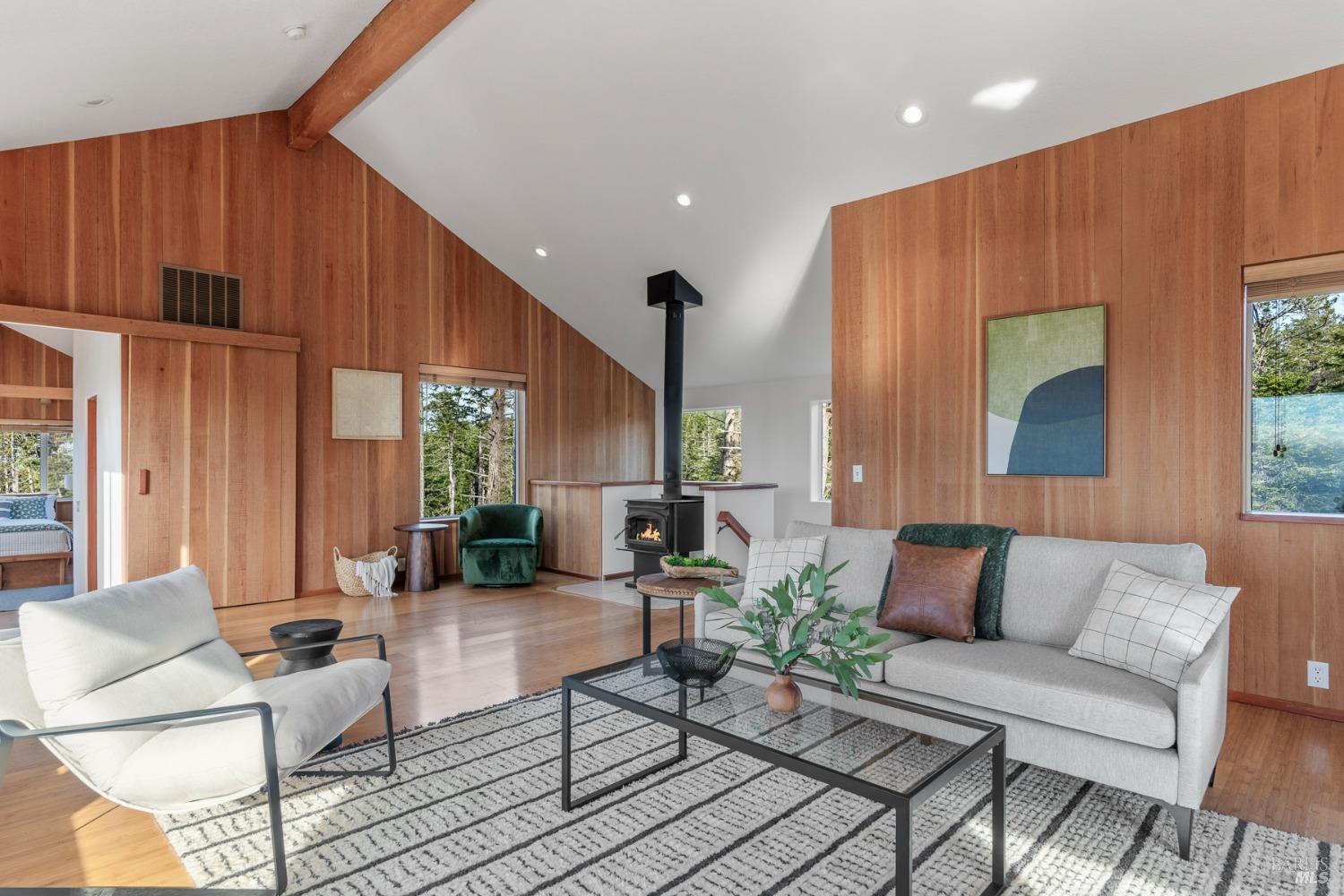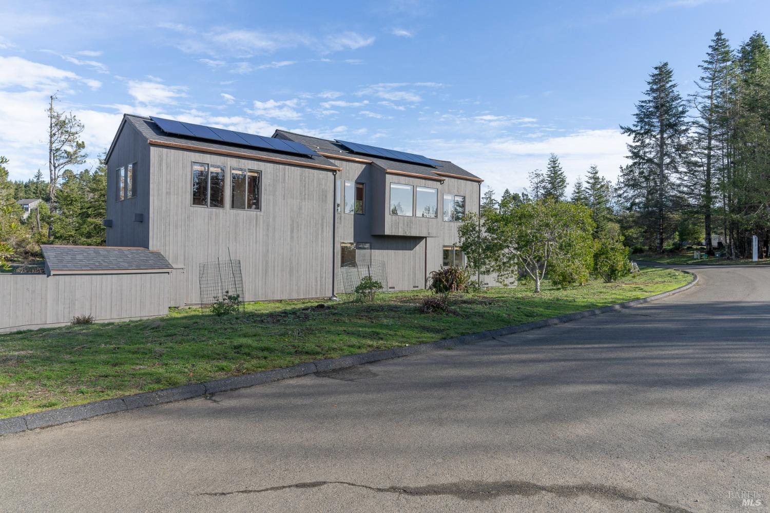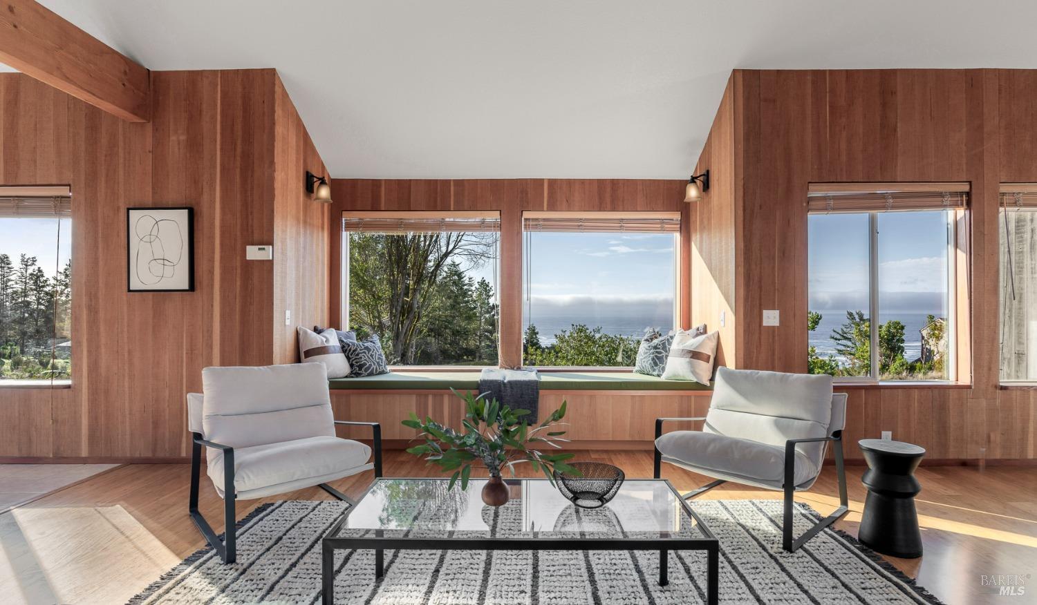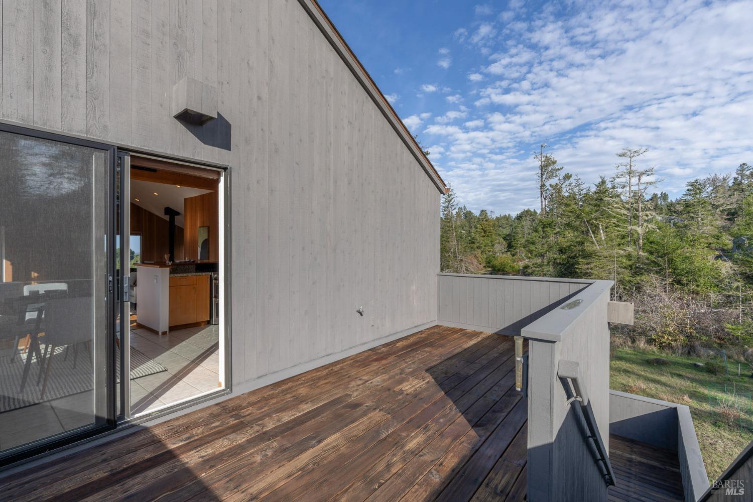 Welcome to 275 Pilot's Reach on the sunny, Sea Ranch hillside with a panoramic view of the ocean and hillside from the 2nd-floor great room, deck and primary bedroom suite w. office. A modern barn design by Architect Dan Levin and built by local contractor Tom Falk in year 2000. The interior finish is freshly painted sheetrock and warm VG fir wood paneling. The large gourmet kitchen features granite counters, newer stainless steel appliances, electric range, and views in every direction. This is a great fulltime home with 3 bedrooms and 3 full bathrooms. Large decks on 2-levels off the kitchen and dining room area with access to half an acre of property ready for your dream landscaping. Many recent 2024 upgrades incl. 50-year roof, solar panels, EV-charger, backup power, copper gutters, sheds + new power wash and exterior stain. A trail leads to a Sea Ranch favorite Pebble Beach in 10 minutes. The locals lap the Sea Ranch airstrip for an afternoon walk of 1.8 Miles or stroll to the business center with weekend Wine Shop and Shindig Art Cafe + professional offices. This house comes with all The Sea Ranch has to offer from the private airstrip, to 60 miles of private trails and roads, 3 recreation facilities and lots of open space. This is a property you must see to appreciate!