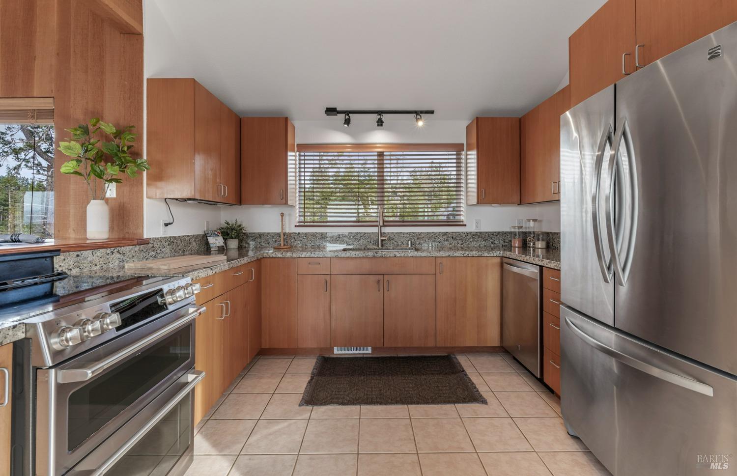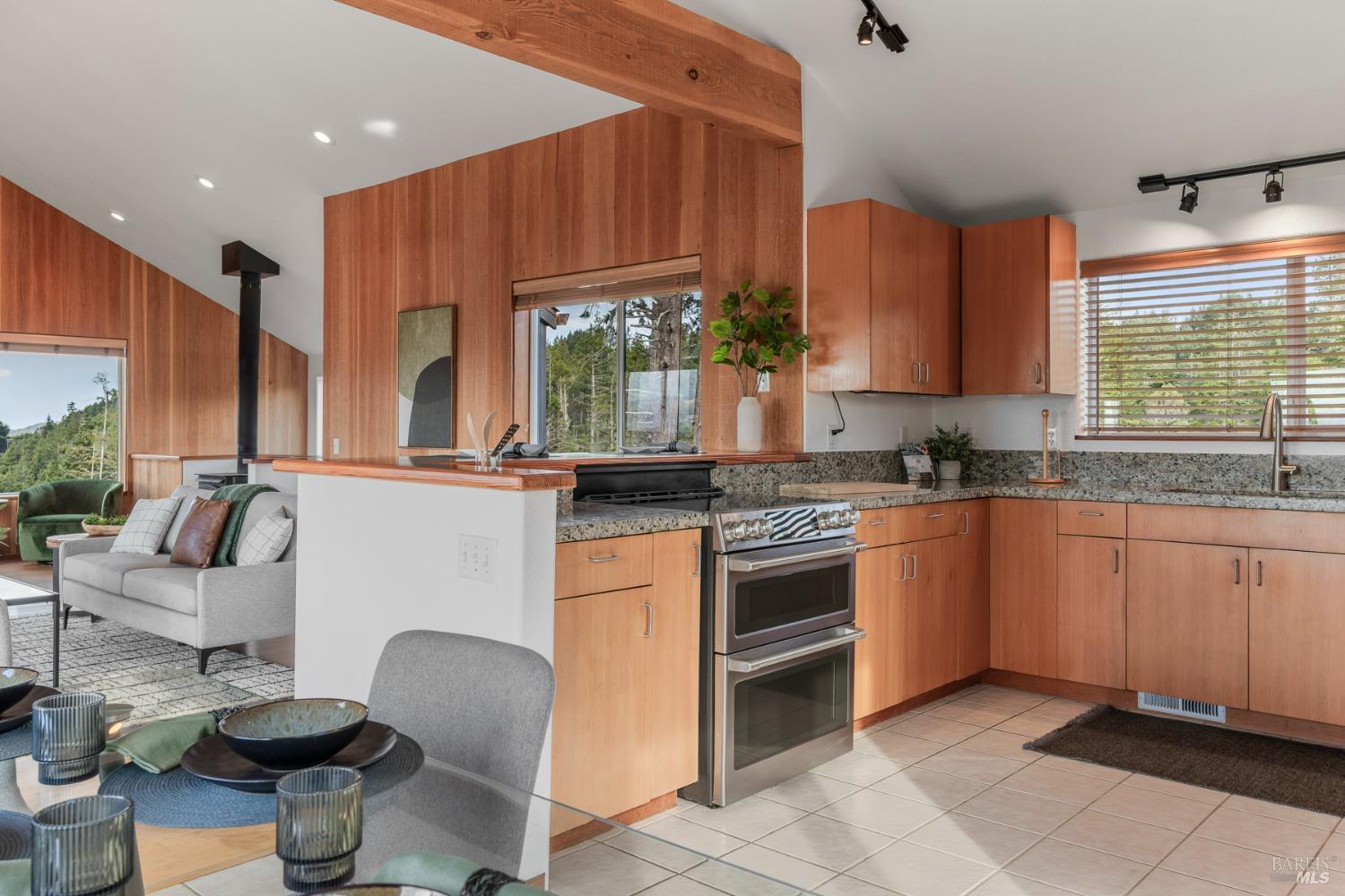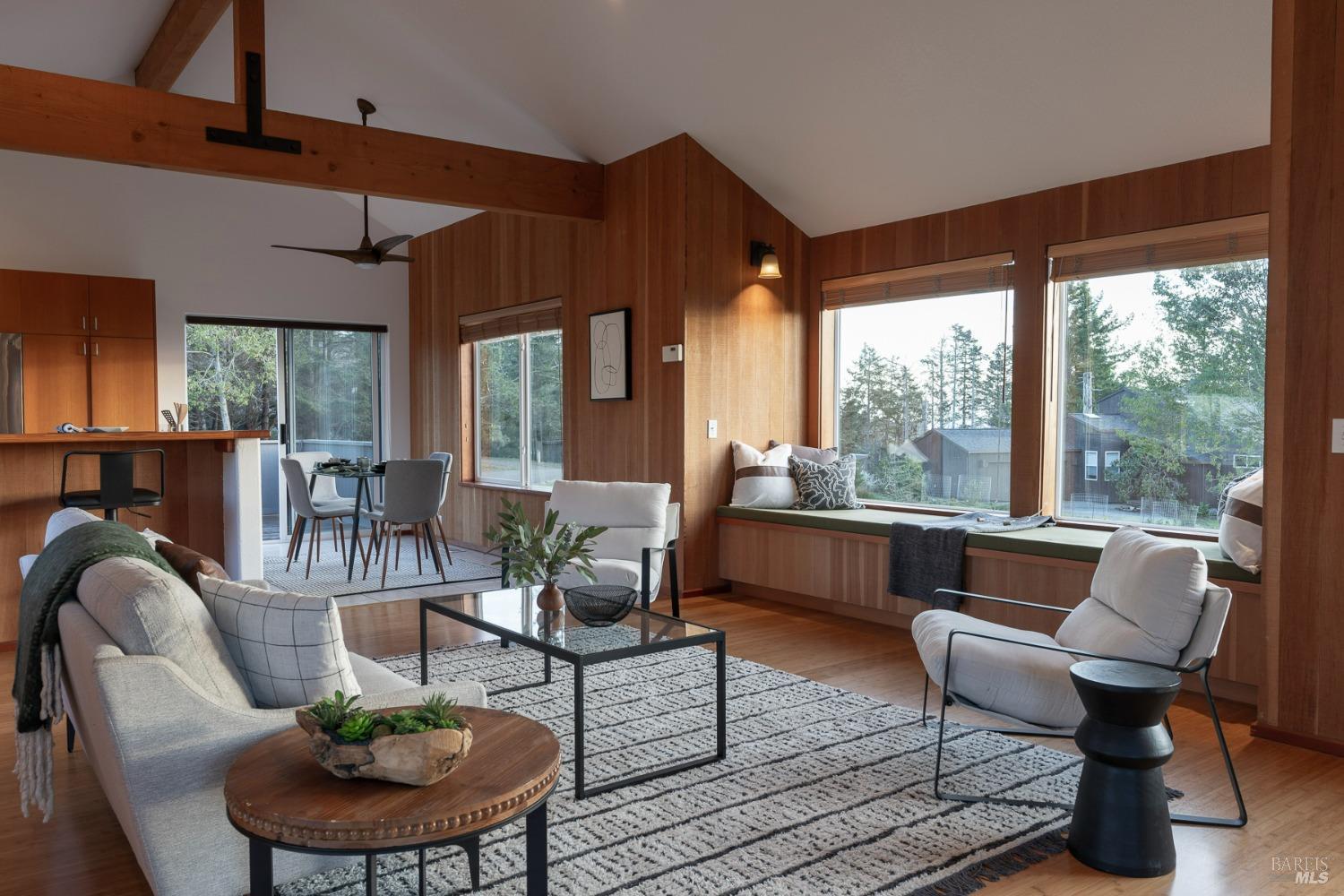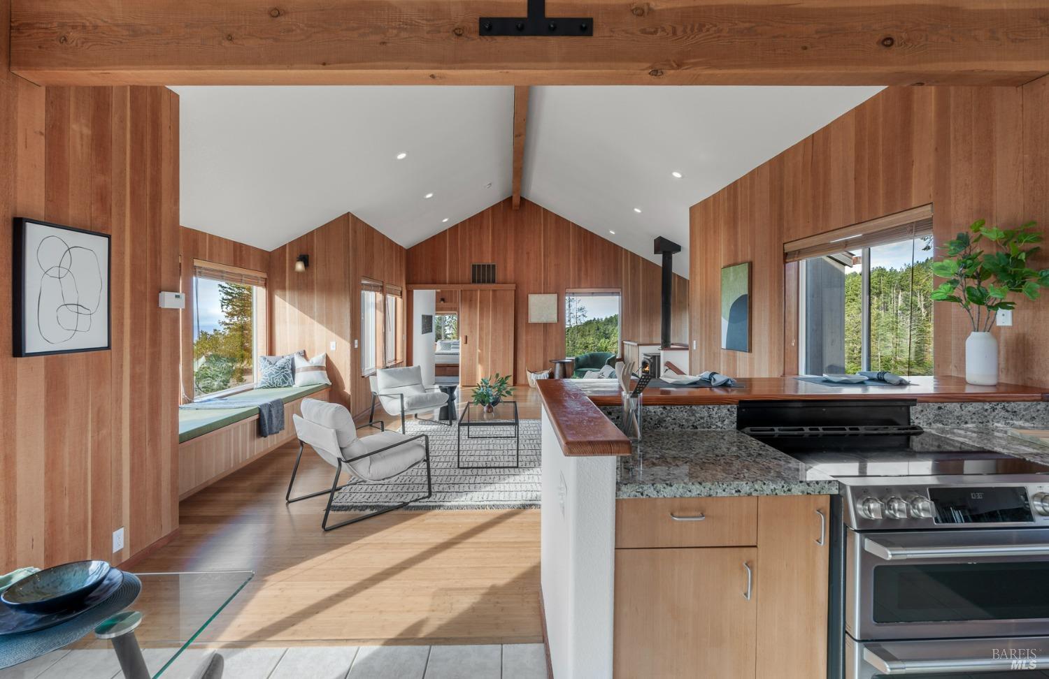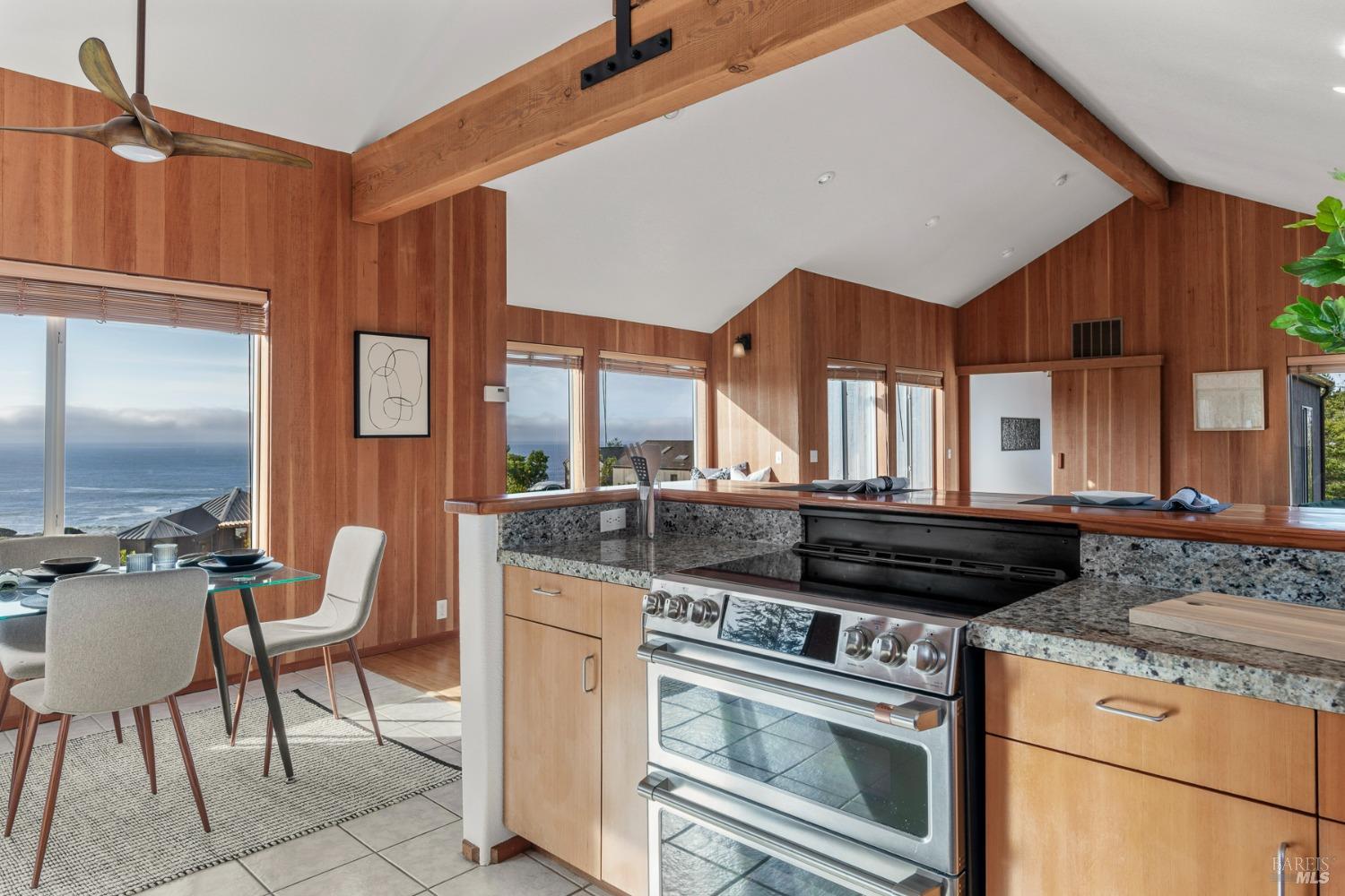 Welcome to 275 Pilot's Reach on the sunny, Sea Ranch hillside with a panoramic view of the ocean and hillside from the 2nd-floor great room, deck and primary bedroom suite w. office. A modern barn design by Architect Dan Levin and built by local contractor Tom Falk in year 2000. The interior finish is freshly painted sheetrock and warm VG fir wood paneling. The large gourmet kitchen features granite counters, newer stainless steel appliances, electric range, and views in every direction. This is a great fulltime home with 3 bedrooms and 3 full bathrooms. Large decks on 2-levels off the kitchen and dining room area with access to half an acre of property ready for your dream landscaping. Many recent 2024 upgrades incl. 50-year roof, solar panels, EV-charger, backup power, copper gutters, sheds + new power wash and exterior stain. A trail leads to a Sea Ranch favorite Pebble Beach in 10 minutes. The locals lap the Sea Ranch airstrip for an afternoon walk of 1.8 Miles or stroll to the business center with weekend Wine Shop and Shindig Art Cafe + professional offices. This house comes with all The Sea Ranch has to offer from the private airstrip, to 60 miles of private trails and roads, 3 recreation facilities and lots of open space. This is a property you must see to appreciate!