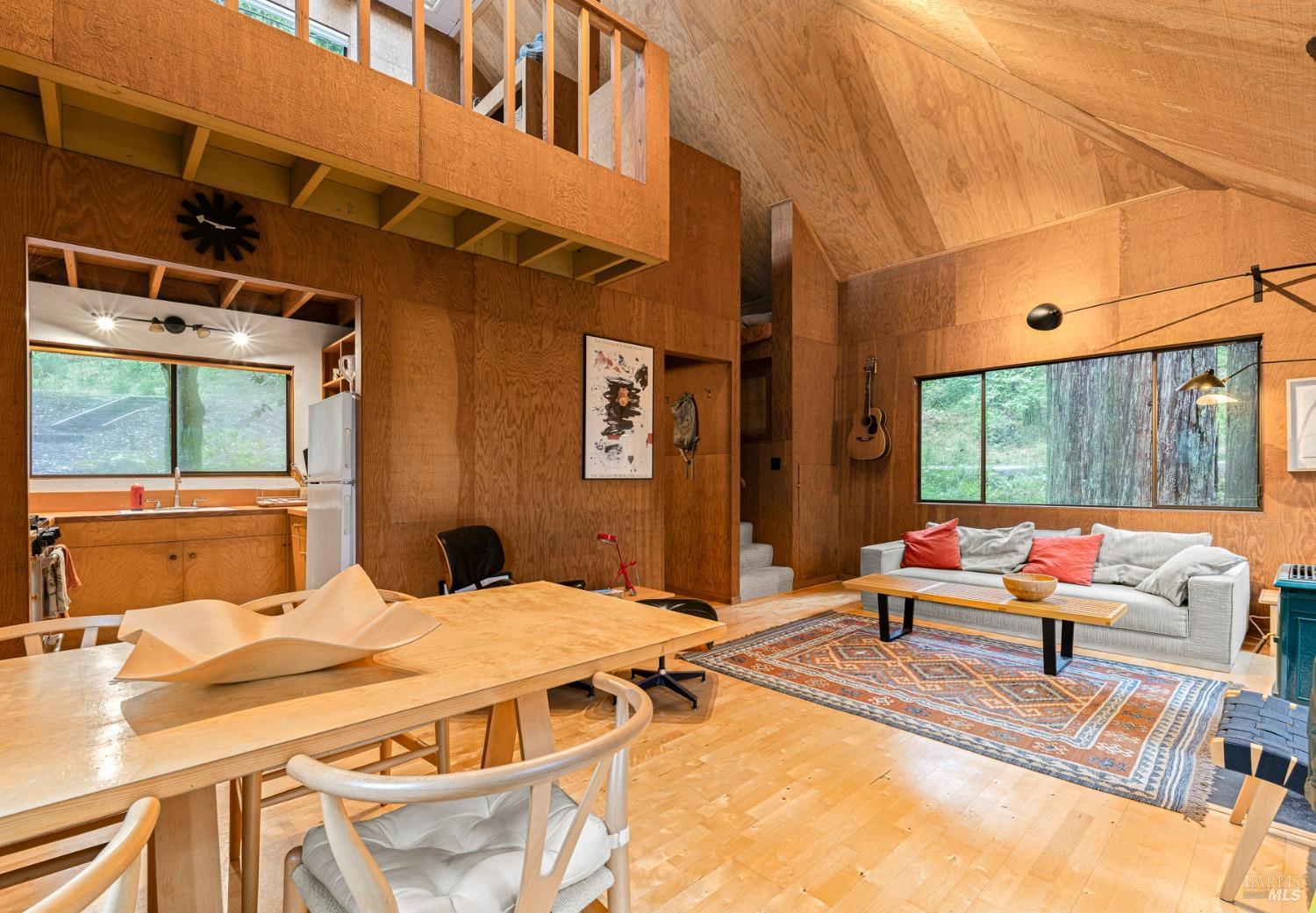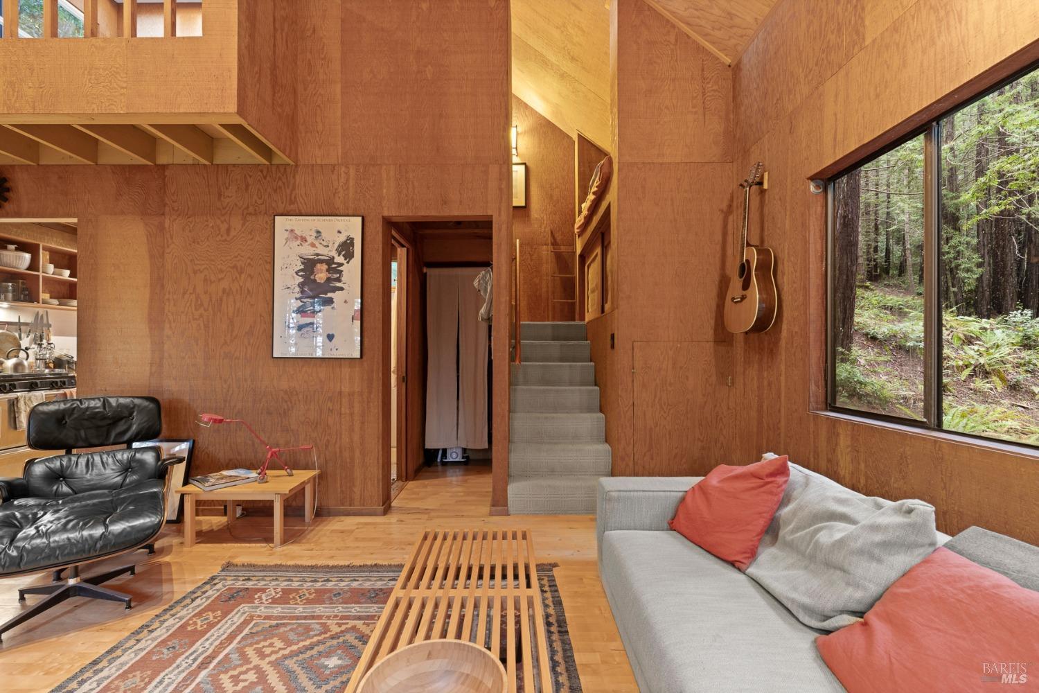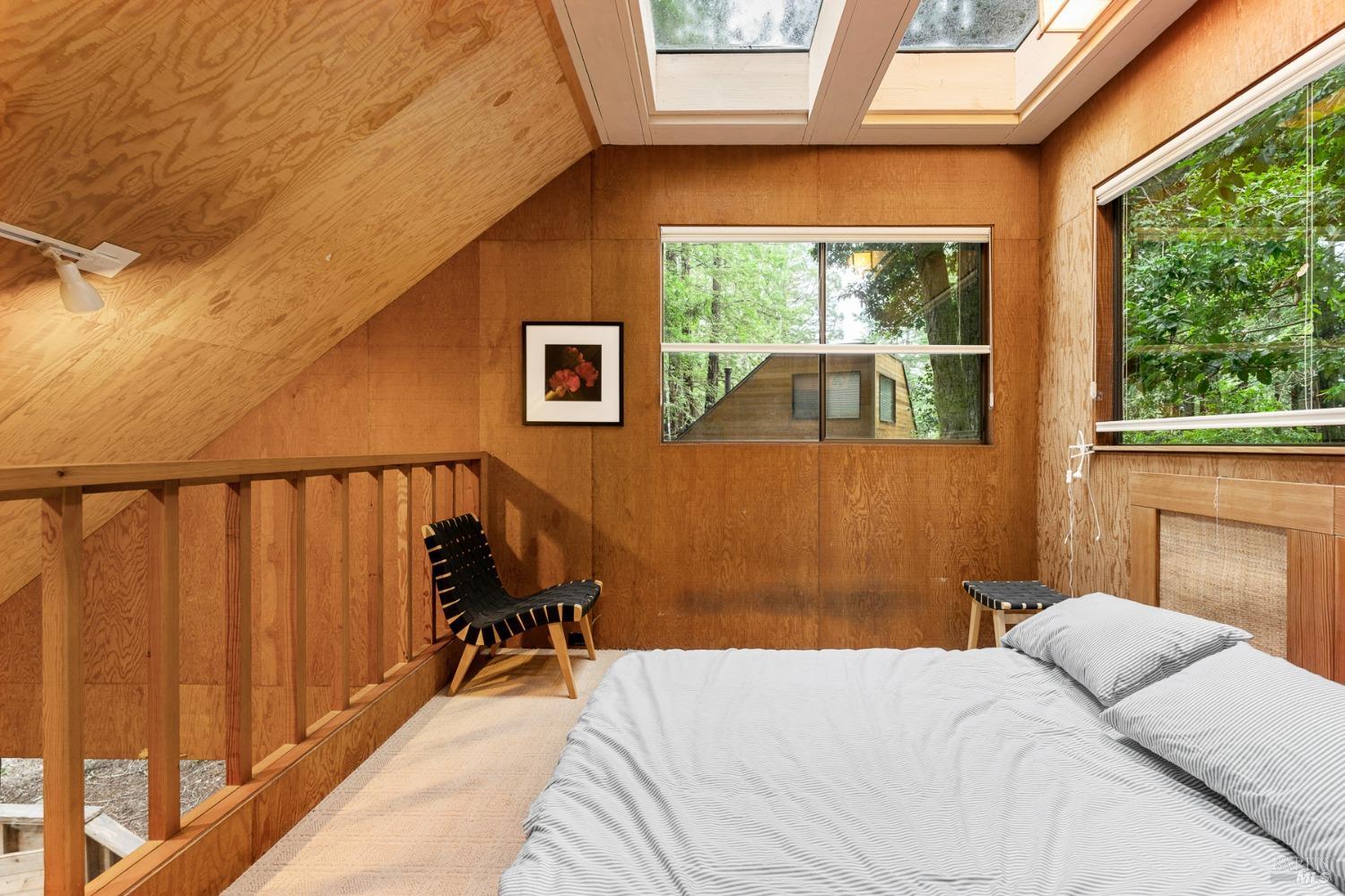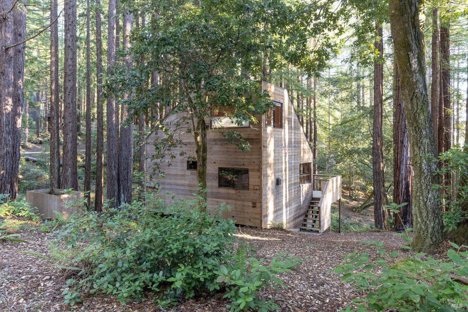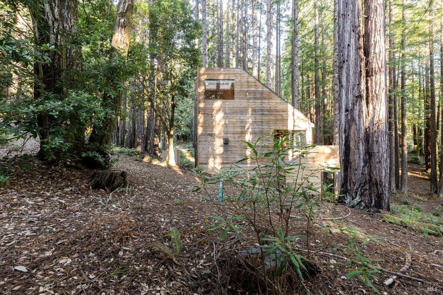 The Sea Ranch Award winning design by architect Obie Bowman...276 Redwood Rise is a jewel set among the redwoods of 567 square feet. Entrance, living room, kitchen & bath are on the main floor while the bedroom is in the loft under a 9 foot ceiling with an enormous skylight. 1-bunk bed tucked next to the staircase. Many upgrades incl. insulated plywood ceiling, wood floors and creative storage. Galley kitchen with propane gas range and refrigerator. Lots of windows bring in light + a sliding glass door open to the large deck. A propane Vermont Castings stove provides attractive on-demand heating. The walk-in cabins are an exclusive cluster of 14 homes all designed by Obie Bowman to create a neighborhood, as originally intended by Lawrence Halprin in the 60ties and 70ties. They are located among amazing stands of redwood trees with hiking trails both up and down the hill. It is close to the Ohlson Rec Center, The White Barn, the bluff trail and other Sea Ranch amenities. All units are served by sewer, city water and has fiber optic internet. Each unit has parking on Pine Meadow and common garbage collection. This is well-maintained architectural treasure ready for your weekend adventures and work remotely extended stays.