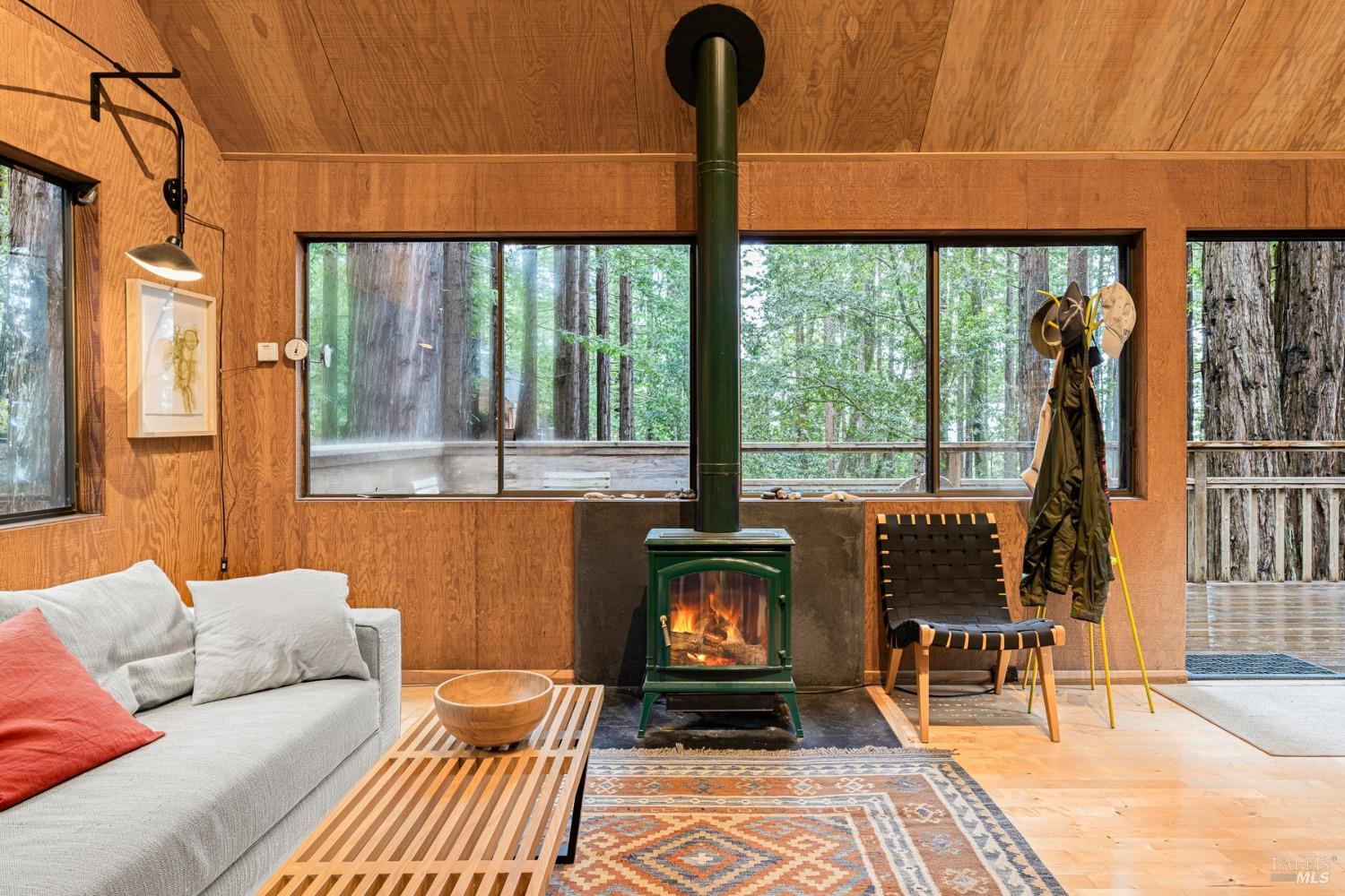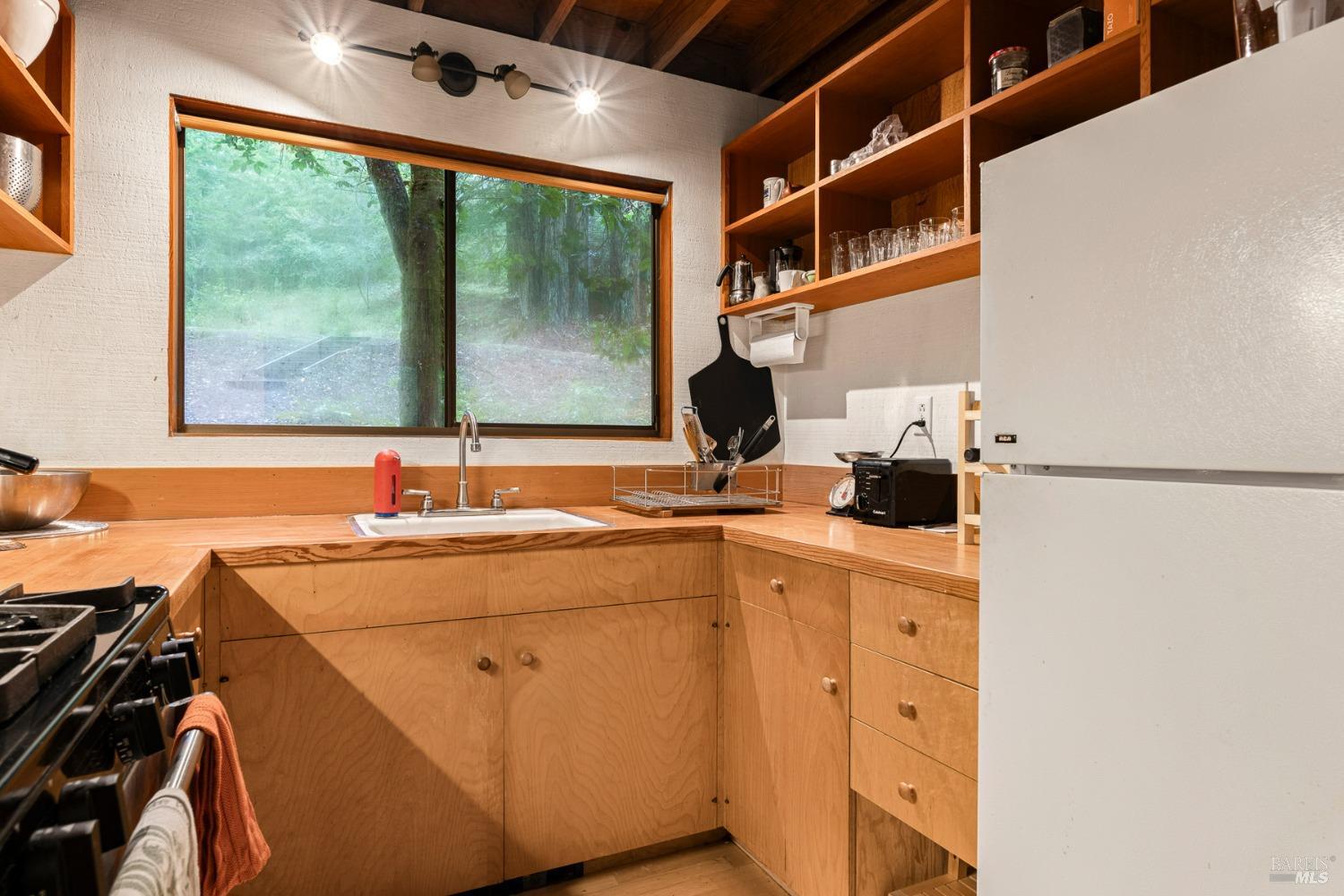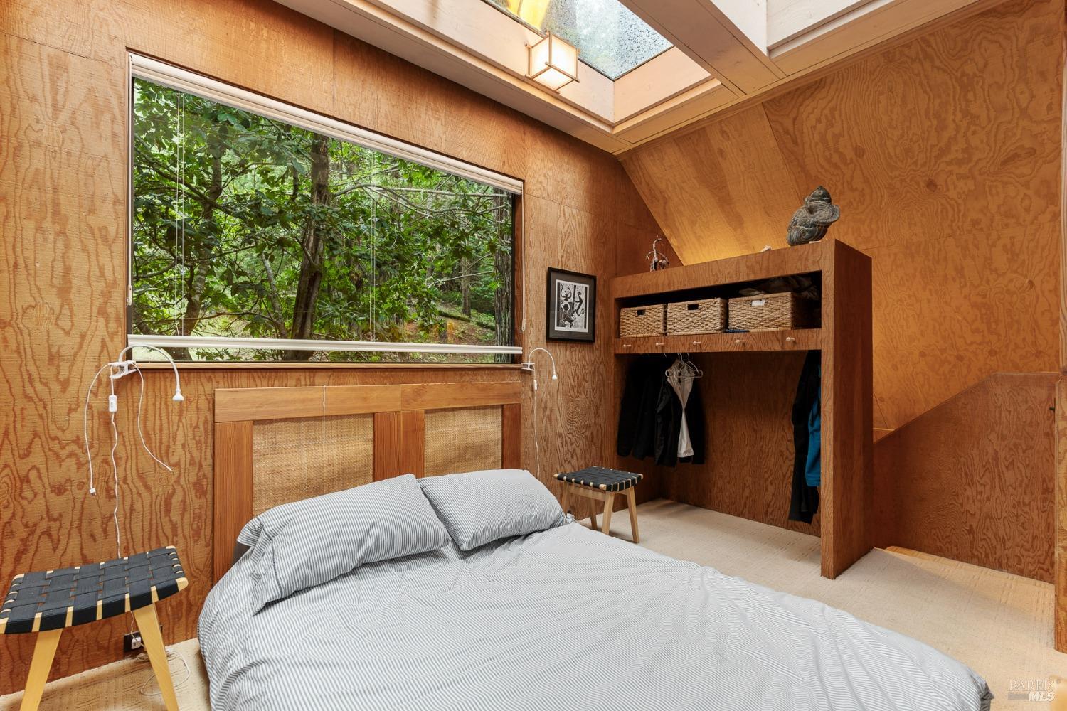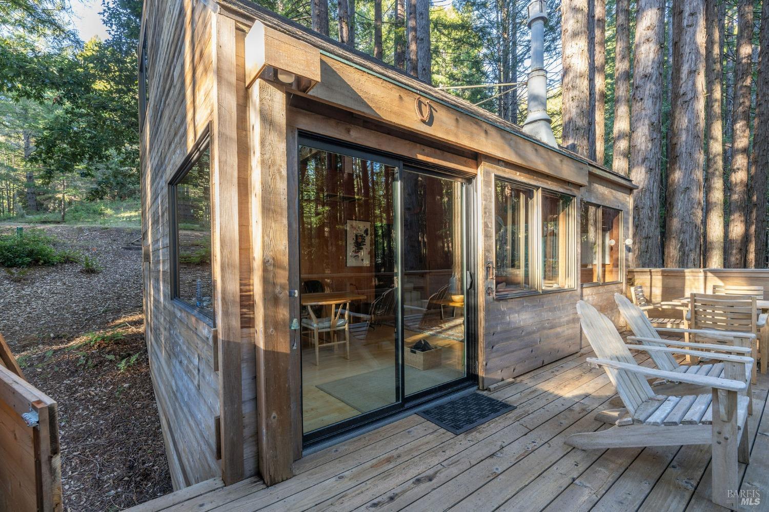 The Sea Ranch Award winning design by architect Obie Bowman...276 Redwood Rise is a jewel set among the redwoods of 567 square feet. Entrance, living room, kitchen & bath are on the main floor while the bedroom is in the loft under a 9 foot ceiling with an enormous skylight. 1-bunk bed tucked next to the staircase. Many upgrades incl. insulated plywood ceiling, wood floors and creative storage. Galley kitchen with propane gas range and refrigerator. Lots of windows bring in light + a sliding glass door open to the large deck. A propane Vermont Castings stove provides attractive on-demand heating. The walk-in cabins are an exclusive cluster of 14 homes all designed by Obie Bowman to create a neighborhood, as originally intended by Lawrence Halprin in the 60ties and 70ties. They are located among amazing stands of redwood trees with hiking trails both up and down the hill. It is close to the Ohlson Rec Center, The White Barn, the bluff trail and other Sea Ranch amenities. All units are served by sewer, city water and has fiber optic internet. Each unit has parking on Pine Meadow and common garbage collection. This is well-maintained architectural treasure ready for your weekend adventures and work remotely extended stays.