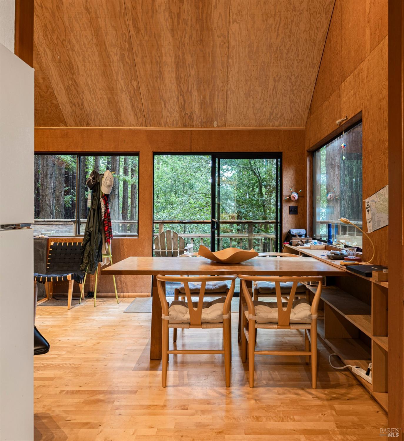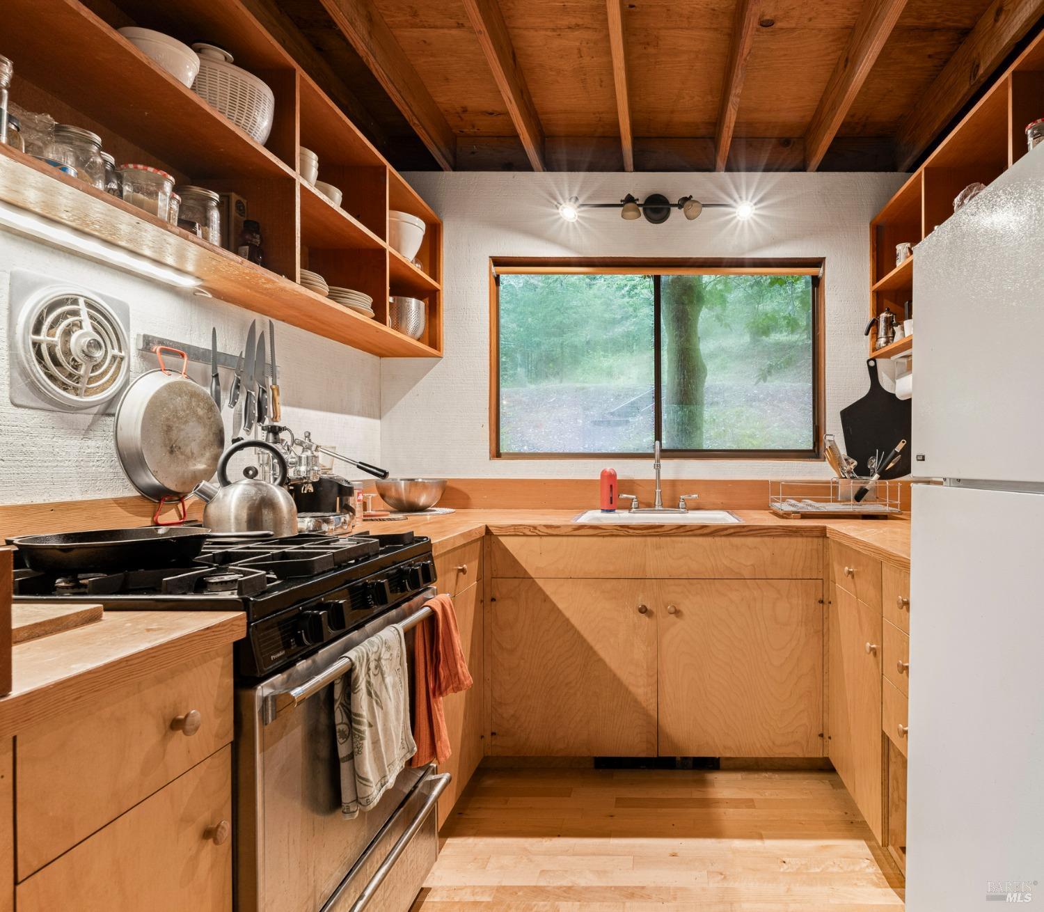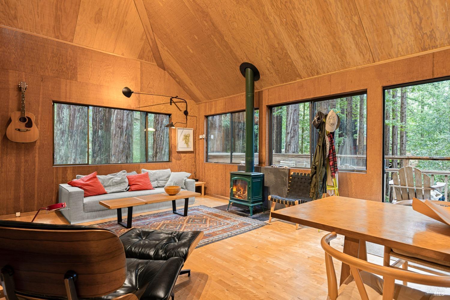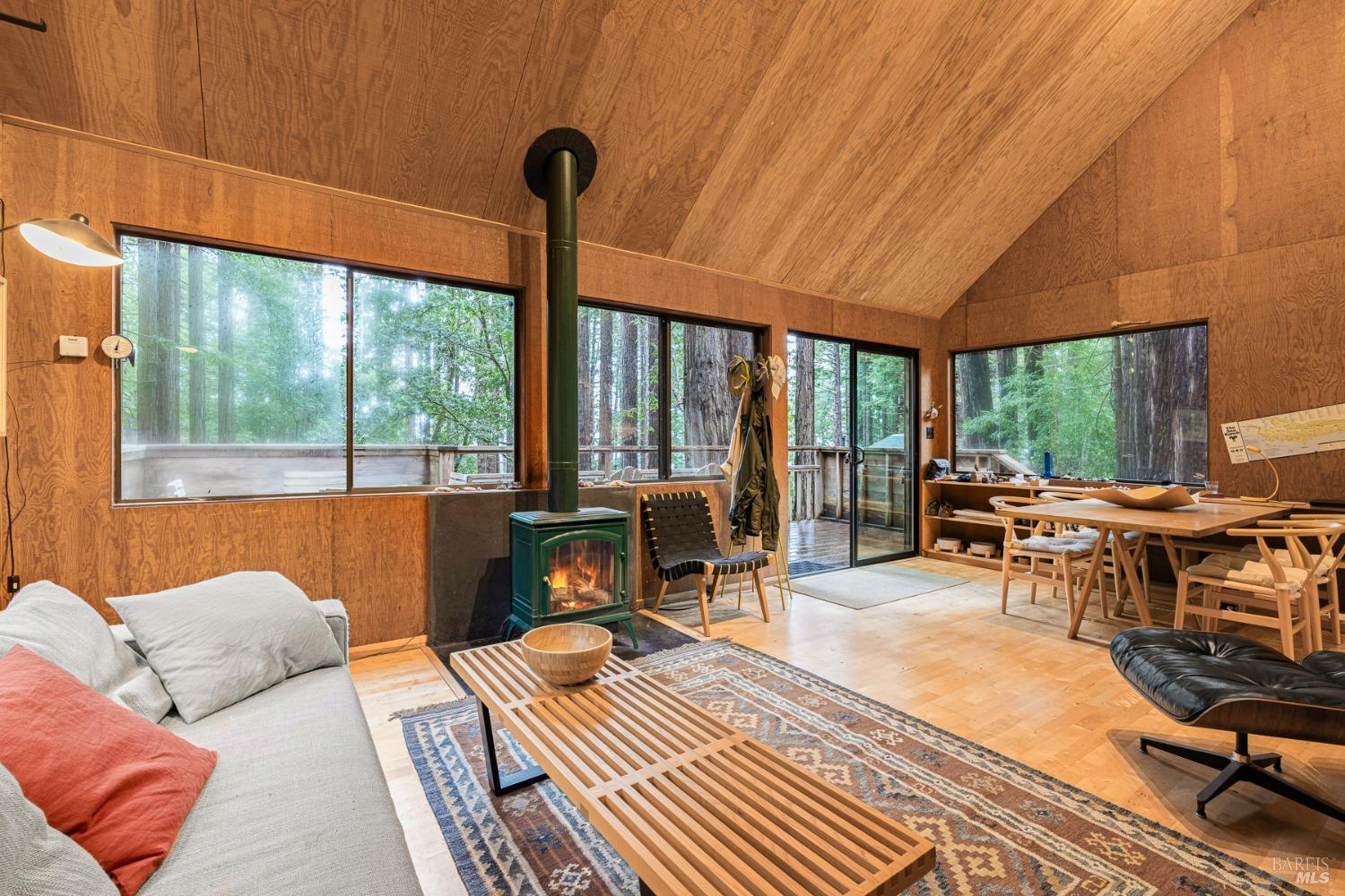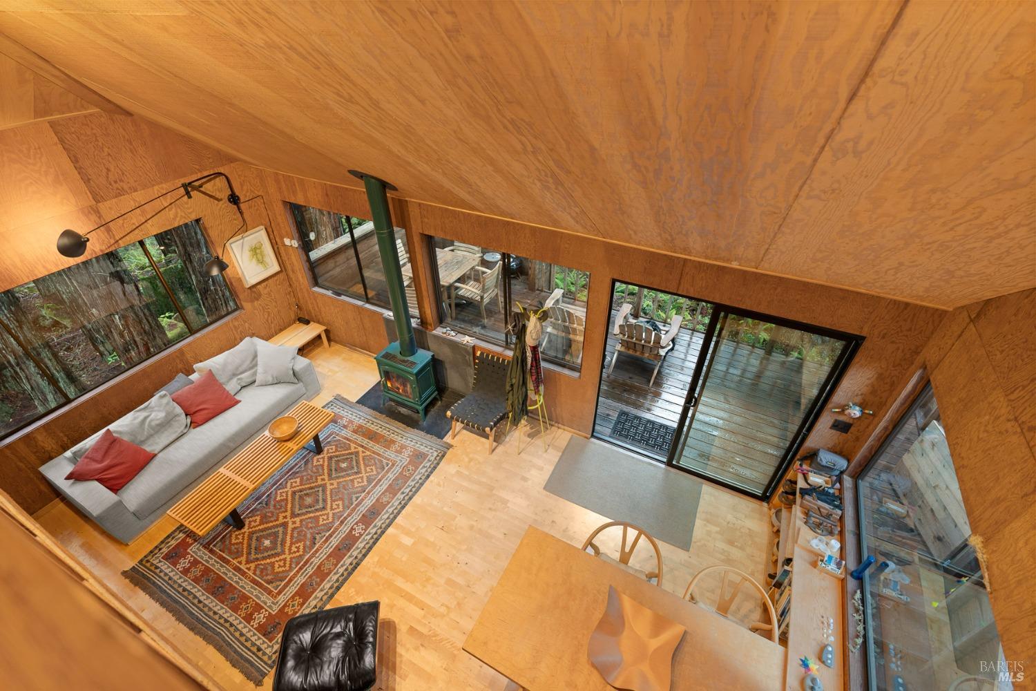 The Sea Ranch Award winning design by architect Obie Bowman...276 Redwood Rise is a jewel set among the redwoods of 567 square feet. Entrance, living room, kitchen & bath are on the main floor while the bedroom is in the loft under a 9 foot ceiling with an enormous skylight. 1-bunk bed tucked next to the staircase. Many upgrades incl. insulated plywood ceiling, wood floors and creative storage. Galley kitchen with propane gas range and refrigerator. Lots of windows bring in light + a sliding glass door open to the large deck. A propane Vermont Castings stove provides attractive on-demand heating. The walk-in cabins are an exclusive cluster of 14 homes all designed by Obie Bowman to create a neighborhood, as originally intended by Lawrence Halprin in the 60ties and 70ties. They are located among amazing stands of redwood trees with hiking trails both up and down the hill. It is close to the Ohlson Rec Center, The White Barn, the bluff trail and other Sea Ranch amenities. All units are served by sewer, city water and has fiber optic internet. Each unit has parking on Pine Meadow and common garbage collection. This is well-maintained architectural treasure ready for your weekend adventures and work remotely extended stays.