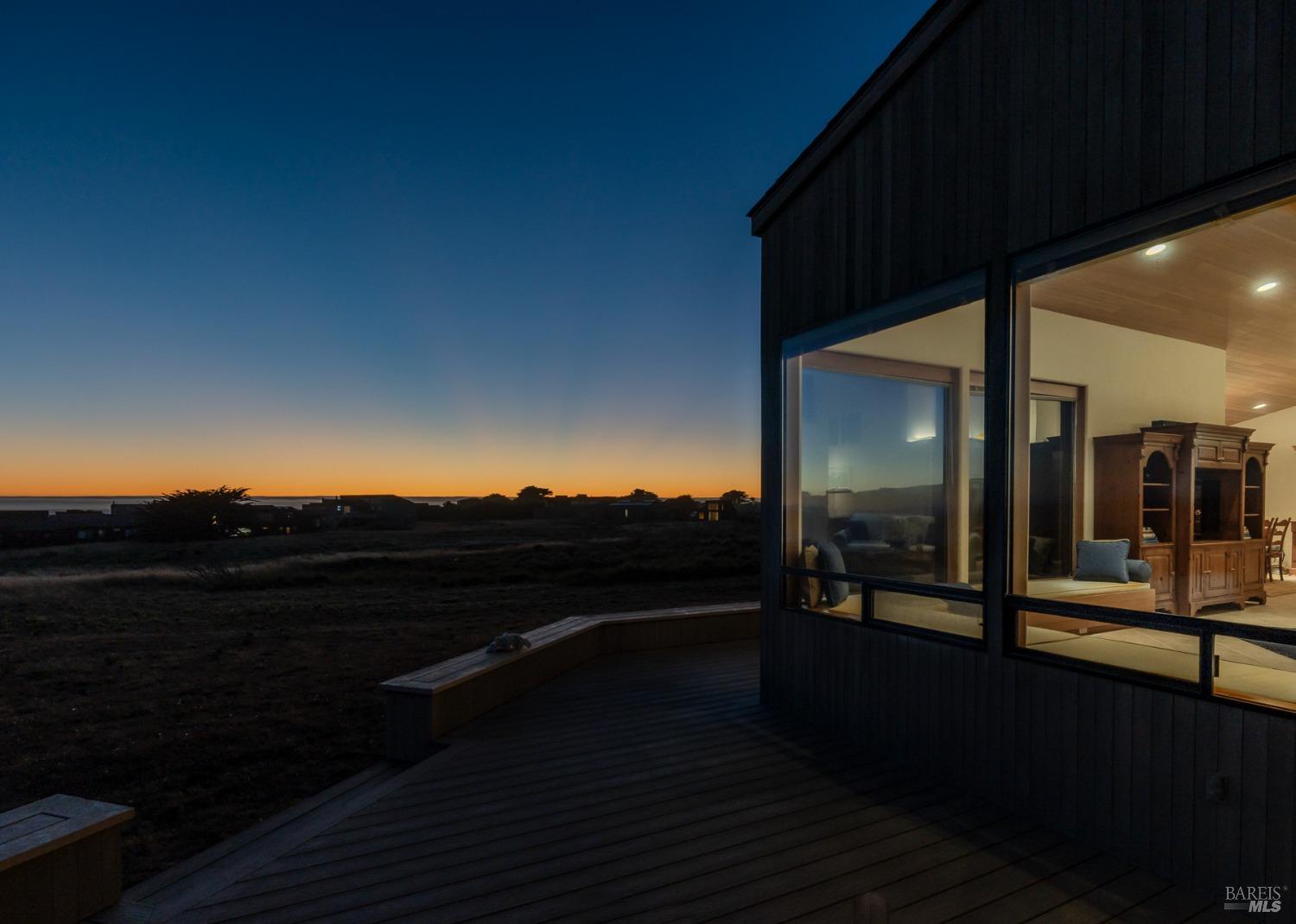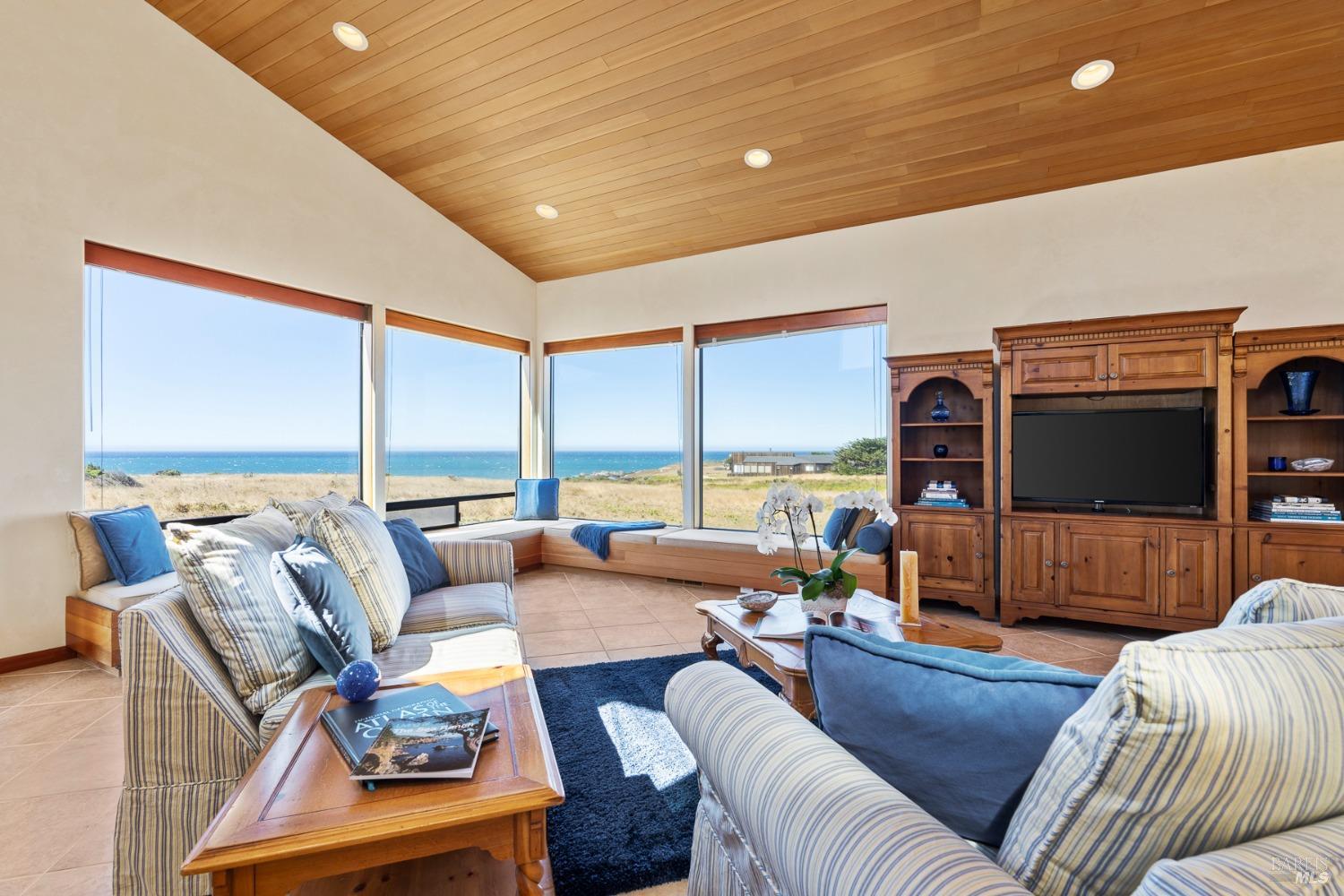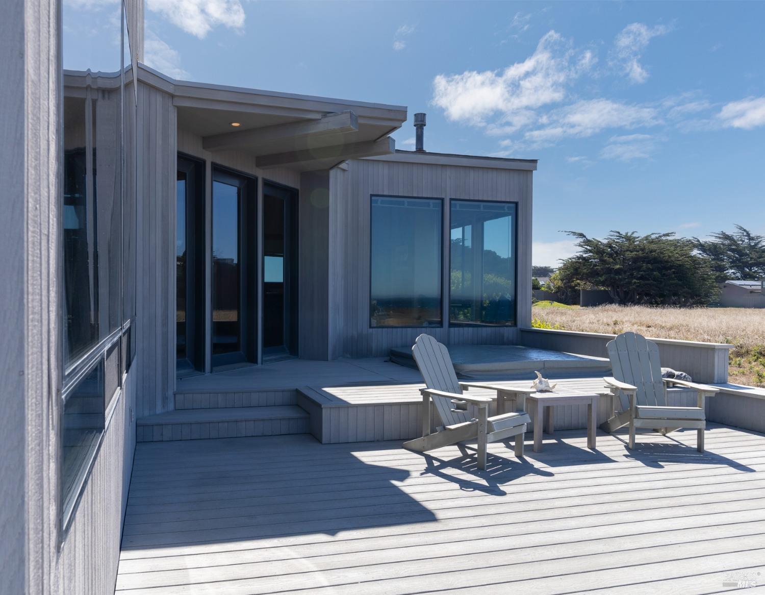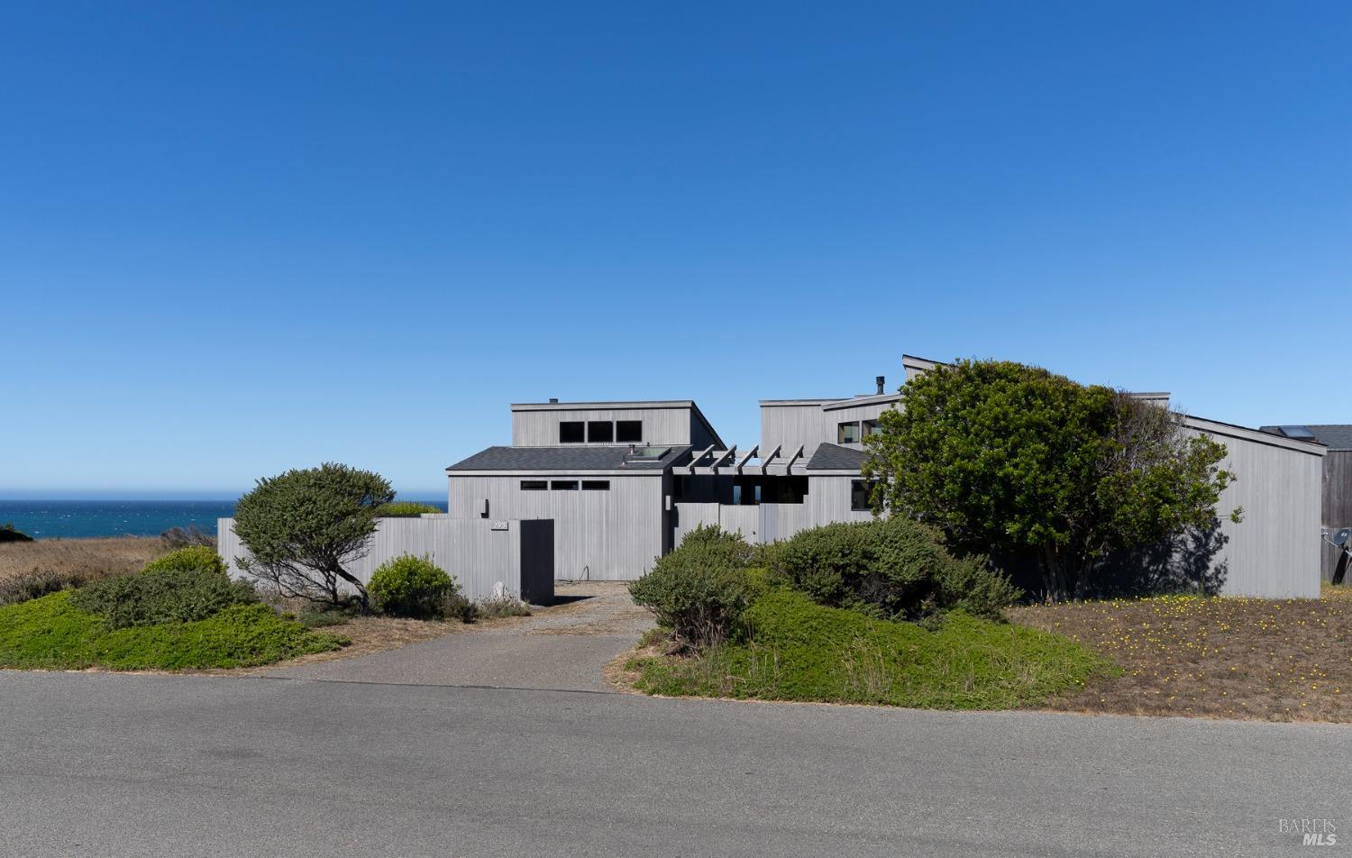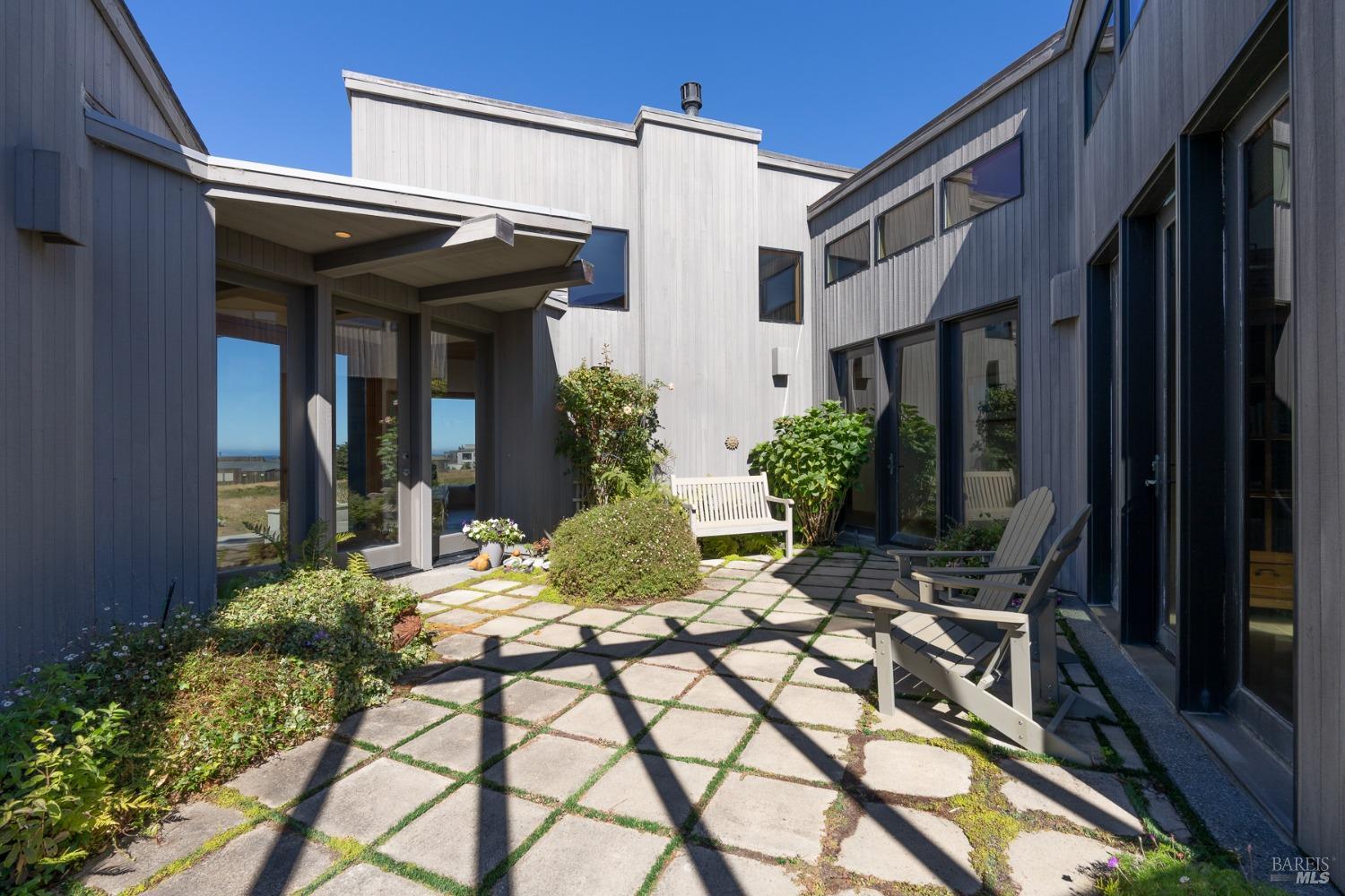 This elegant, 3 bed/3 bath one-level custom home with dramatic ocean views just steps from the bluff, is on the market for the first time. Entering the private courtyard your eyes are drawn to the ocean view through the glass doors of the hallway, connecting the spacious primary suite with fireplace and hot tub deck on one side and the light filled great room on the other. The incredible white water views follow you throughout the vast living/dining/kitchen area lined by huge windows and opening up to the large ocean facing deck. A separate wing includes 2 guest bedrooms, baths, laundry room and access to the 2-car garage. Steve Carreiro designed and built this dream home for the owners in 2002 with exceptional craftsmanship. They created the perfect place to cook for family and friends in the open gourmet kitchen and enjoy quiet moments snuggled up on the window seats admiring the glorious views of the ocean and sky, whales and seals and other wildlife in the wide open meadow. The house is on sewer, near the Golf Links and Del Mar Rec Center with pool, sauna and tennis and you have 55+ miles of private trails connecting beaches and magnificent redwoods. Whether you enjoy the sunset or hike the trails, you will be captivated by the peace and quiet of this magical place.