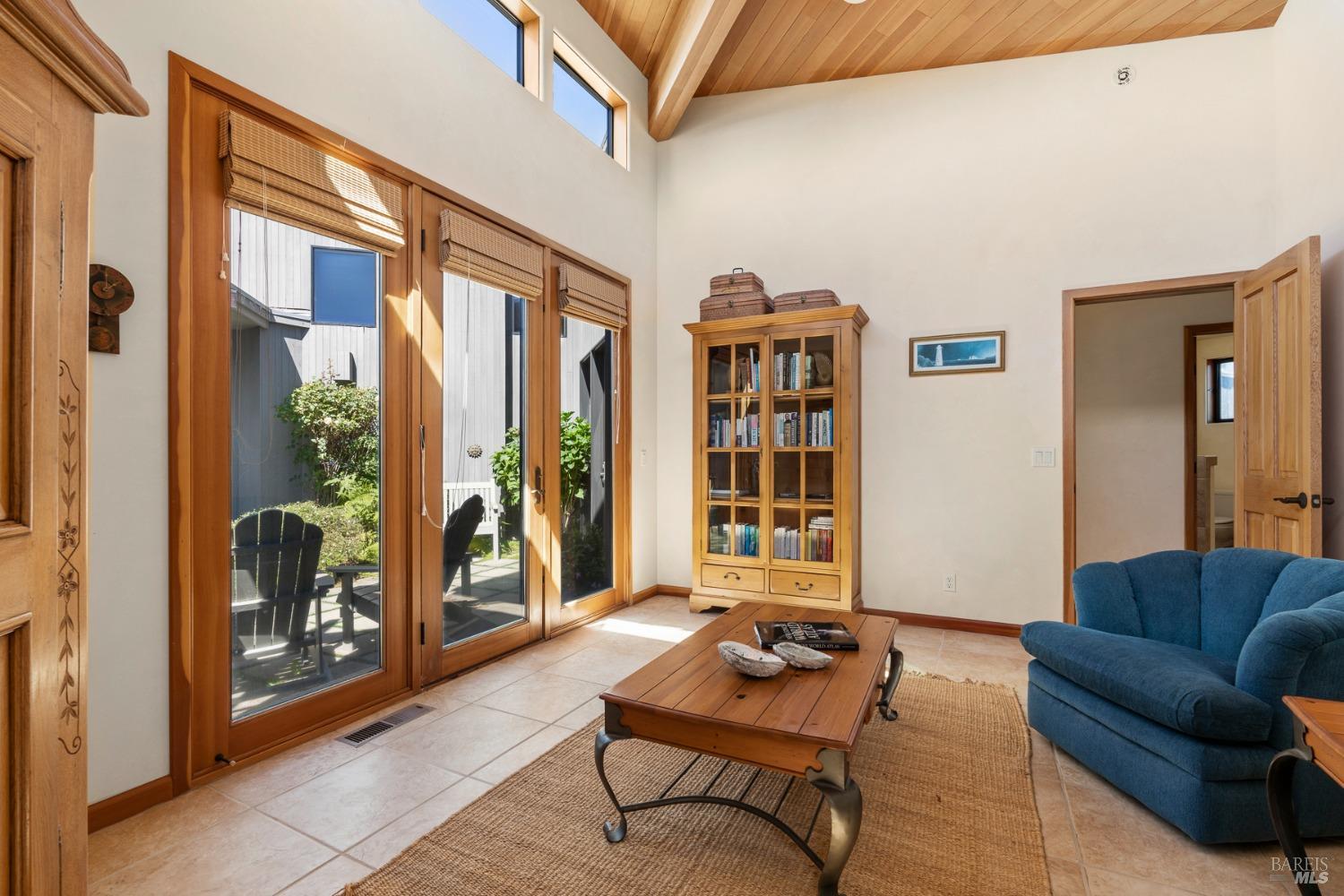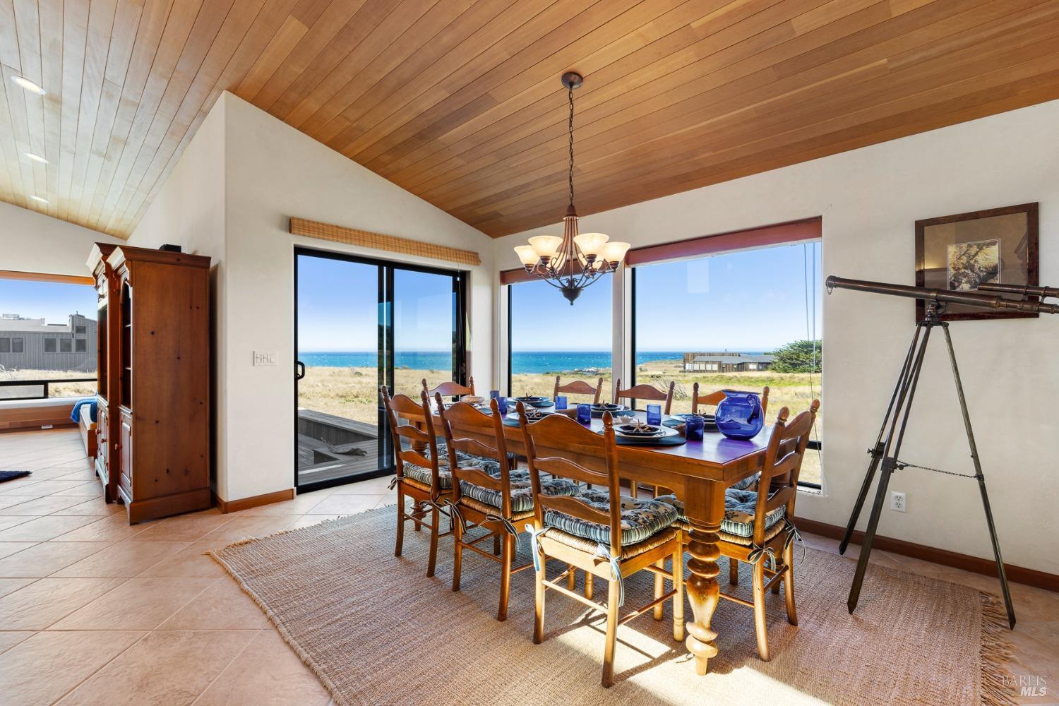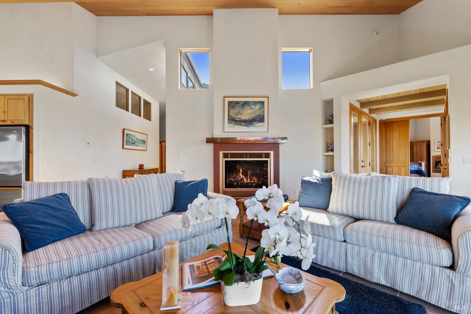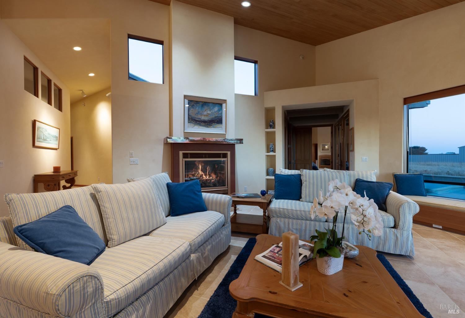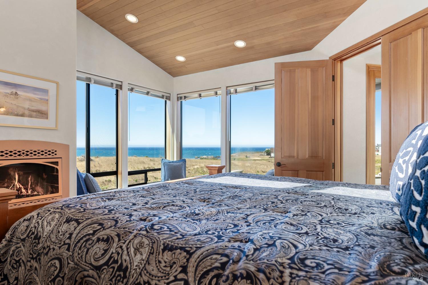 This elegant, 3 bed/3 bath one-level custom home with dramatic ocean views just steps from the bluff, is on the market for the first time. Entering the private courtyard your eyes are drawn to the ocean view through the glass doors of the hallway, connecting the spacious primary suite with fireplace and hot tub deck on one side and the light filled great room on the other. The incredible white water views follow you throughout the vast living/dining/kitchen area lined by huge windows and opening up to the large ocean facing deck. A separate wing includes 2 guest bedrooms, baths, laundry room and access to the 2-car garage. Steve Carreiro designed and built this dream home for the owners in 2002 with exceptional craftsmanship. They created the perfect place to cook for family and friends in the open gourmet kitchen and enjoy quiet moments snuggled up on the window seats admiring the glorious views of the ocean and sky, whales and seals and other wildlife in the wide open meadow. The house is on sewer, near the Golf Links and Del Mar Rec Center with pool, sauna and tennis and you have 55+ miles of private trails connecting beaches and magnificent redwoods. Whether you enjoy the sunset or hike the trails, you will be captivated by the peace and quiet of this magical place.
