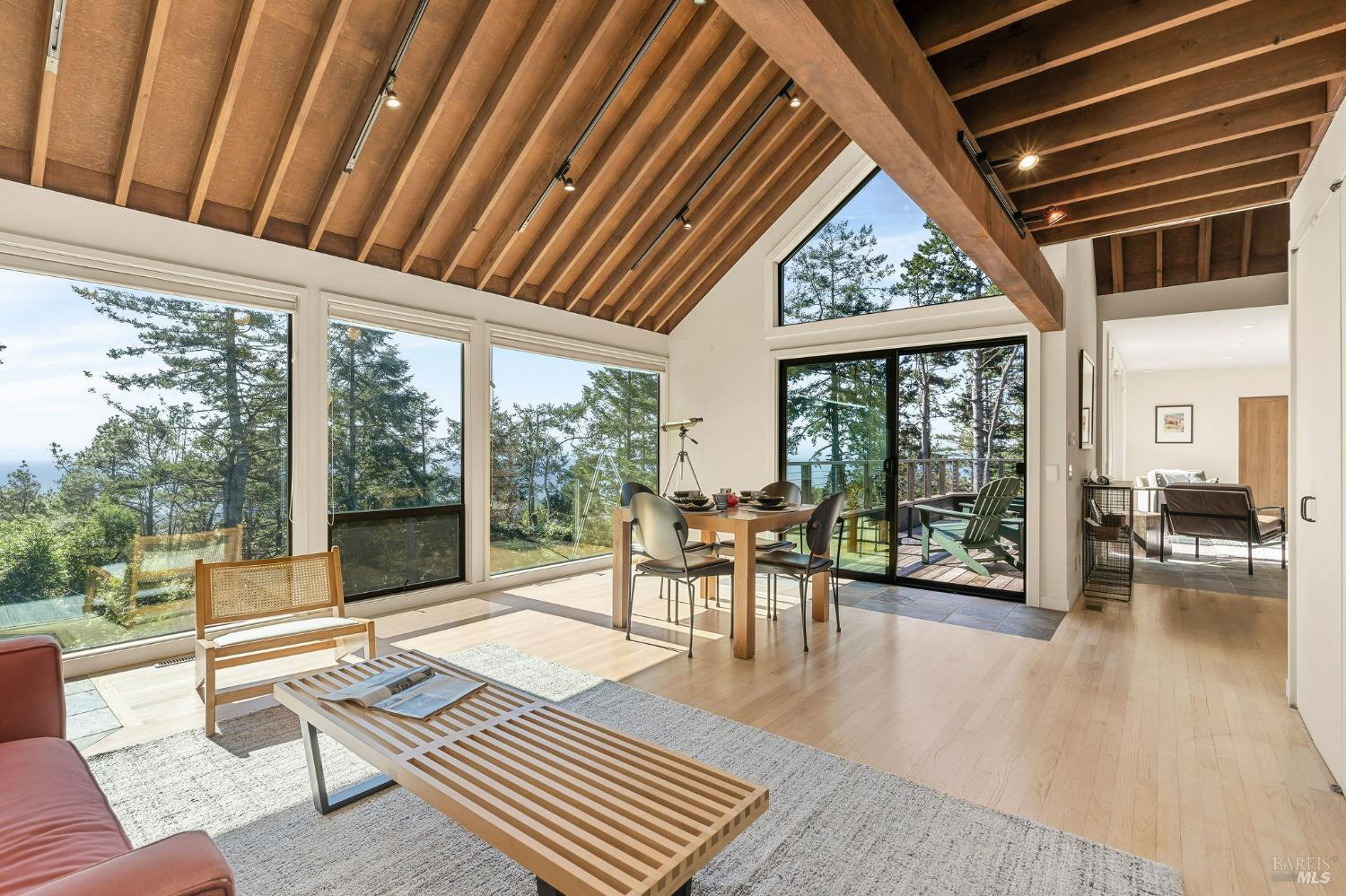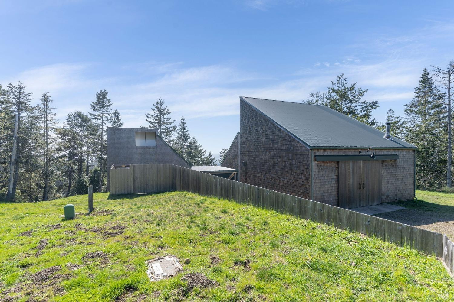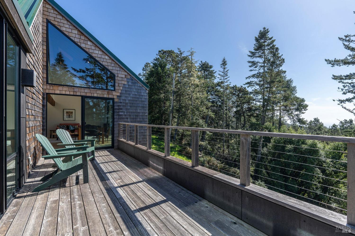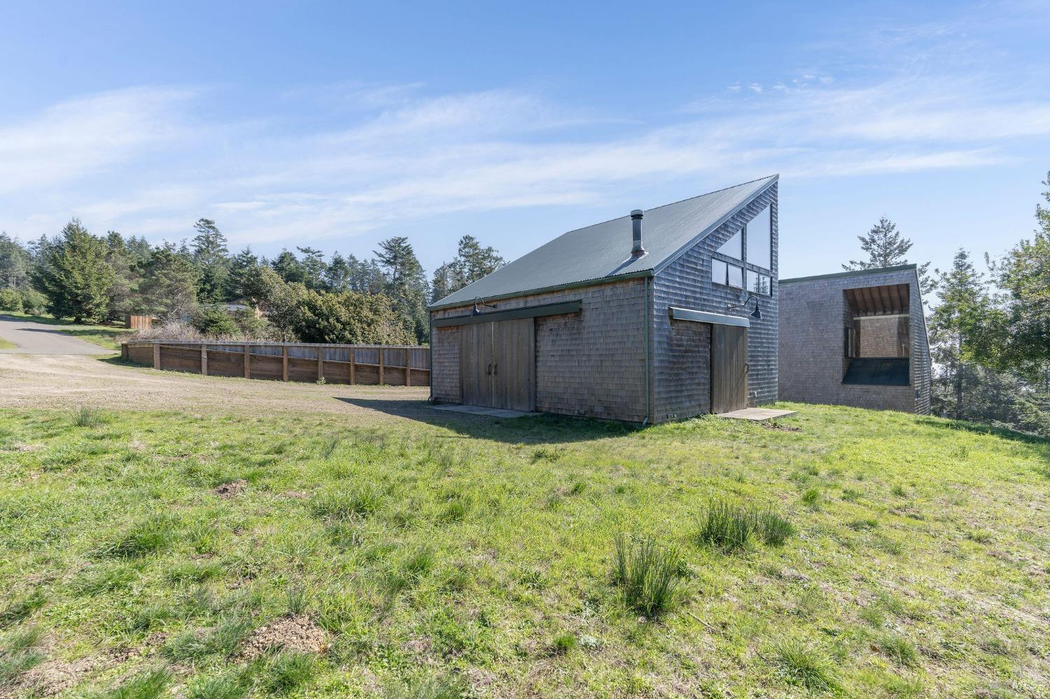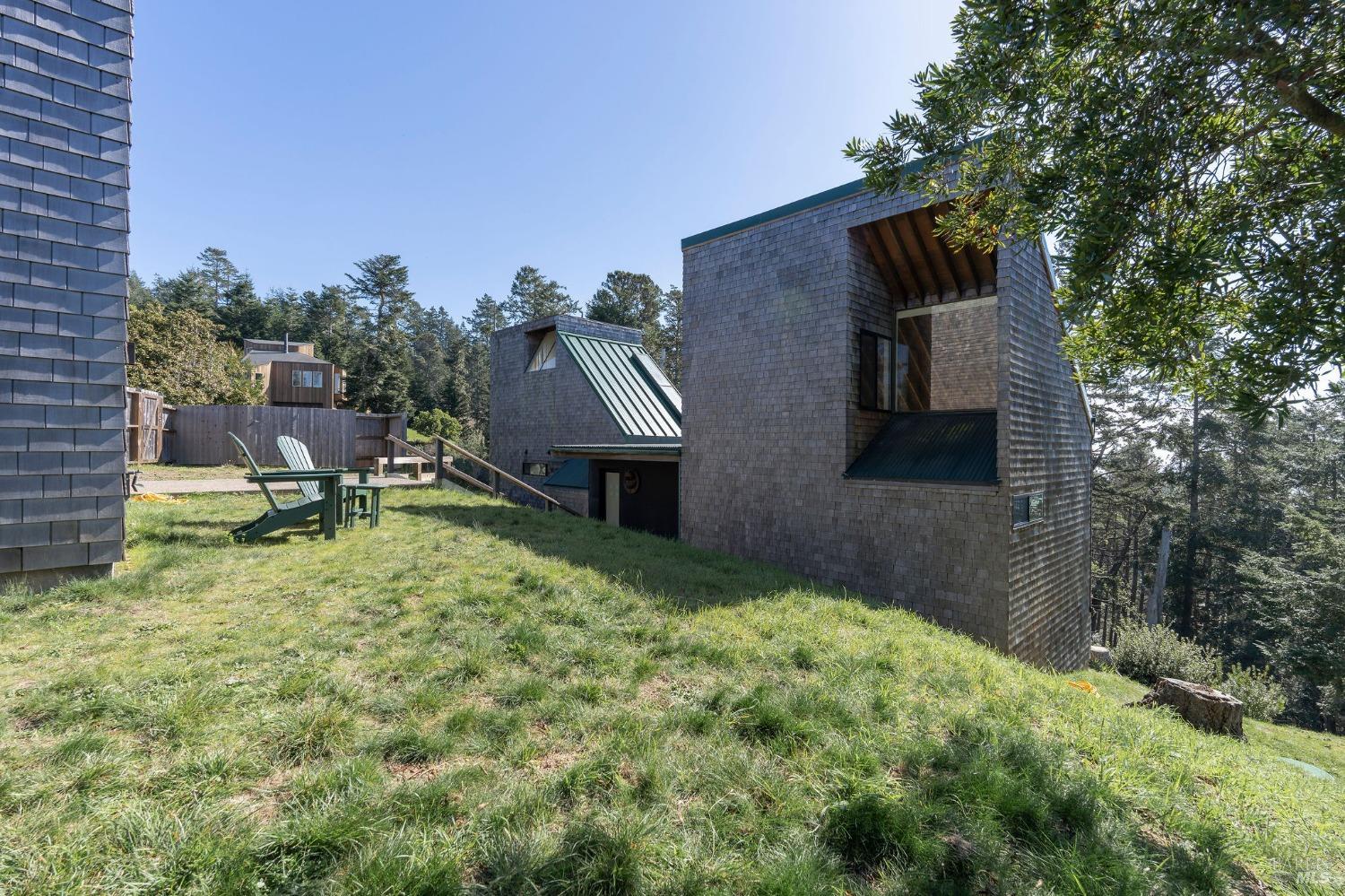 Classic 1970 Sea Ranch architecture has modern shed structures and a contemporary flair with metal roofing, solar panels, battery back-up and new heat exchange unit. The interior has light wood floors, smooth sheet rocked painted walls and exposed wood beams. In October 1971 Sunset Magazine awarded this Craig Roland architecture a Citation Award for the Shed Roof and Shingle Skin the jury couldn't pass by. The current owners bought the 2 small cabins in 1989. They later combined the two to a larger house and added an almost 600 sf 2-story shed studio/garage. The setting is very private at the end of a cul de sac on 3 lots combined to a 2.1 acre parcel overlooking the Pacific ocean with broad blue water views and peaks of white water through the trees. From the top deck, in the main house, you have a view of the coastline and Black Point. This location allows access to 50+ miles of private roads to the East, West, South and North along with the equal distance of hiking trails. It is walking distance to the Verdant View business district with professional offices, wine shop, pop-up gallery, Shindig cafe and Sea Ranch Supply hardware store and nursery. Sea Ranch amenities include private airstrip, community garden, pools, pickle and tennis courts, rec and gathering facilities.