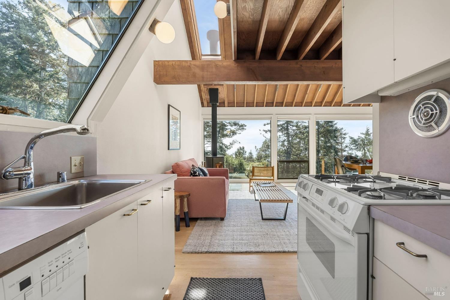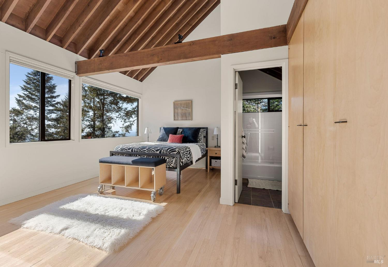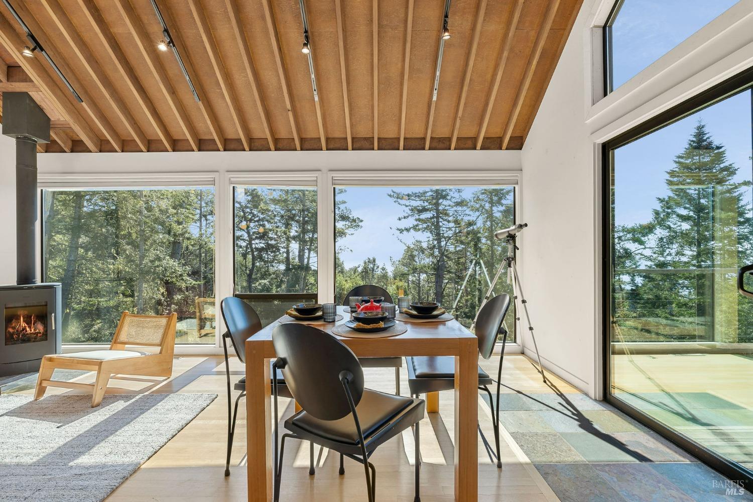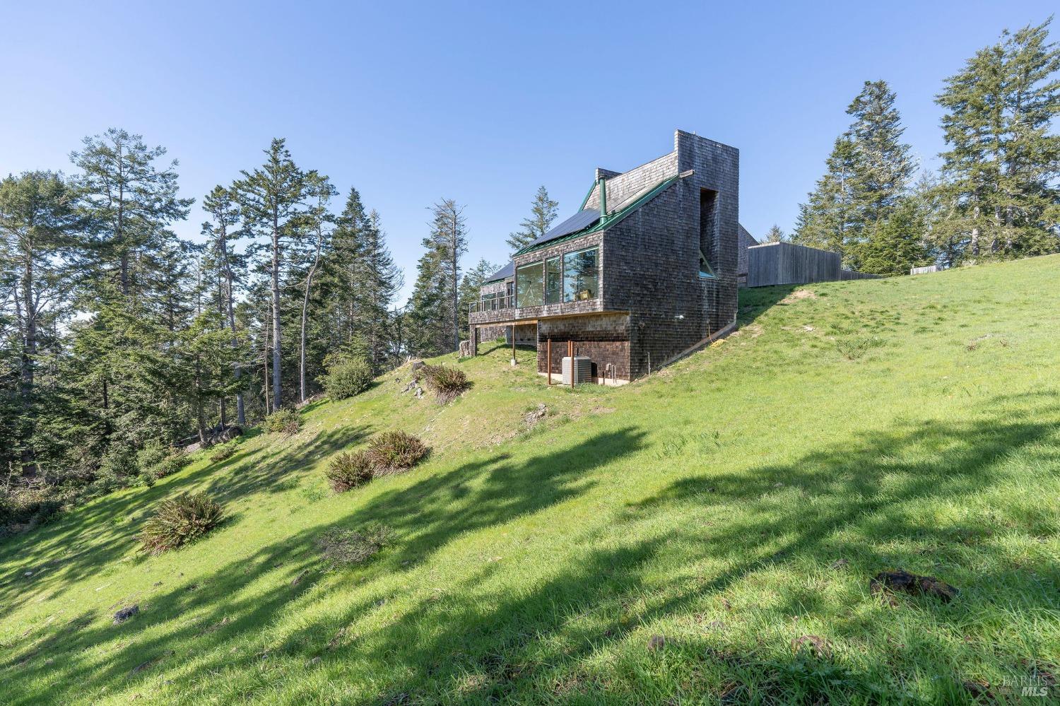 Classic 1970 Sea Ranch architecture has modern shed structures and a contemporary flair with metal roofing, solar panels, battery back-up and new heat exchange unit. The interior has light wood floors, smooth sheet rocked painted walls and exposed wood beams. In October 1971 Sunset Magazine awarded this Craig Roland architecture a Citation Award for the Shed Roof and Shingle Skin the jury couldn't pass by. The current owners bought the 2 small cabins in 1989. They later combined the two to a larger house and added an almost 600 sf 2-story shed studio/garage. The setting is very private at the end of a cul de sac on 3 lots combined to a 2.1 acre parcel overlooking the Pacific ocean with broad blue water views and peaks of white water through the trees. From the top deck, in the main house, you have a view of the coastline and Black Point. This location allows access to 50+ miles of private roads to the East, West, South and North along with the equal distance of hiking trails. It is walking distance to the Verdant View business district with professional offices, wine shop, pop-up gallery, Shindig cafe and Sea Ranch Supply hardware store and nursery. Sea Ranch amenities include private airstrip, community garden, pools, pickle and tennis courts, rec and gathering facilities.
