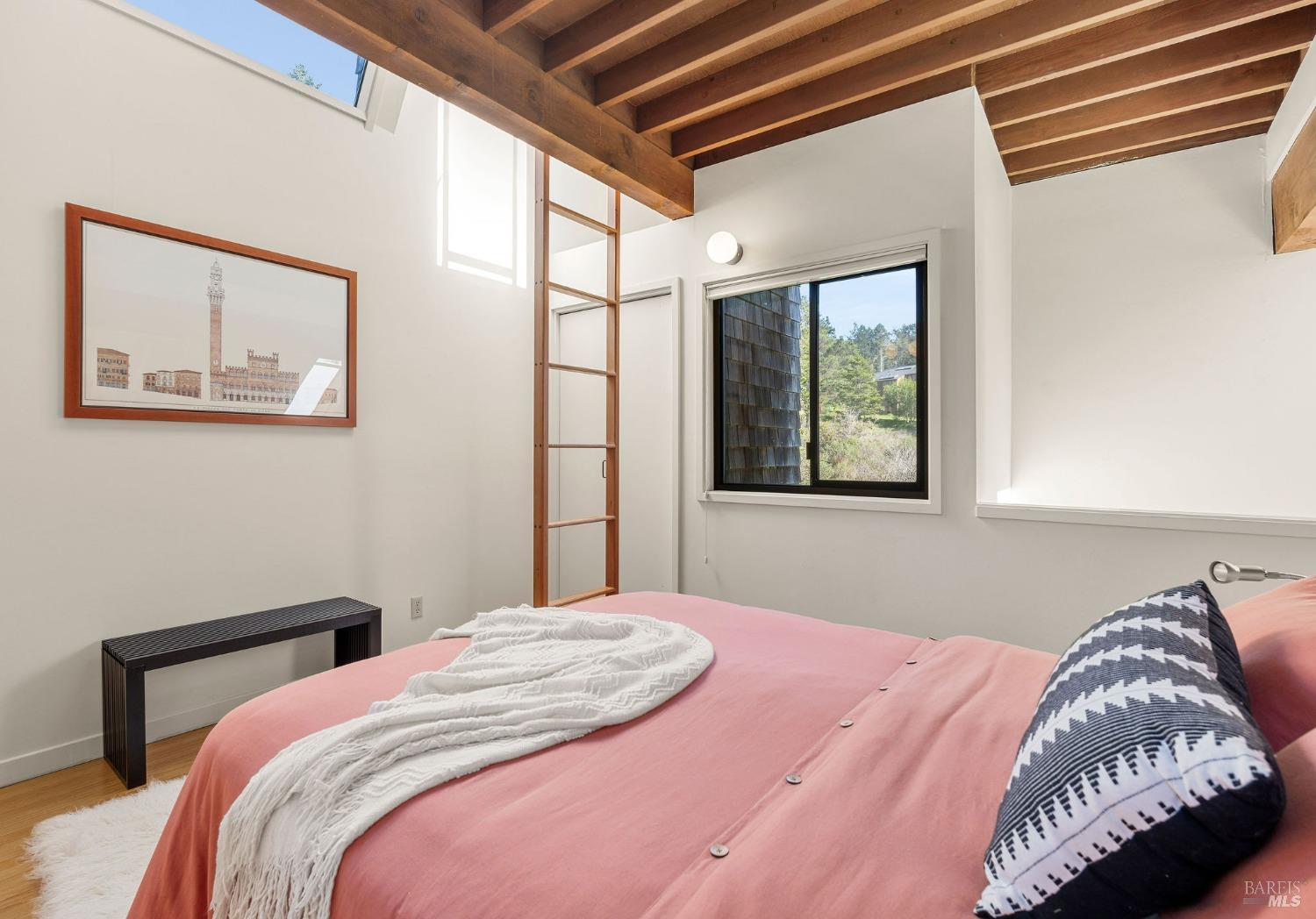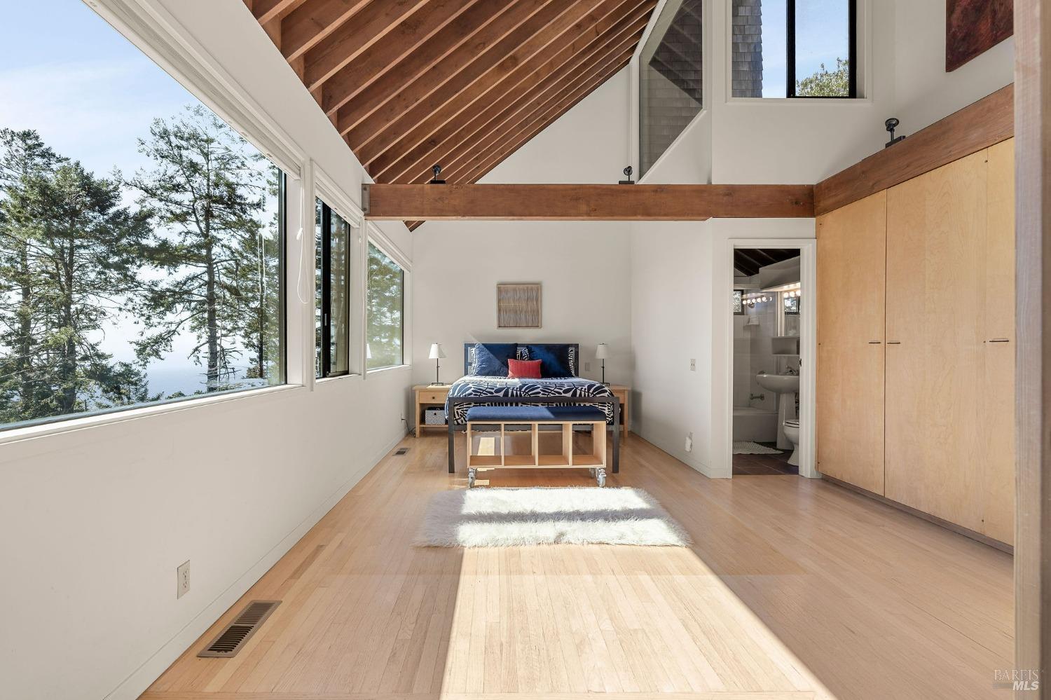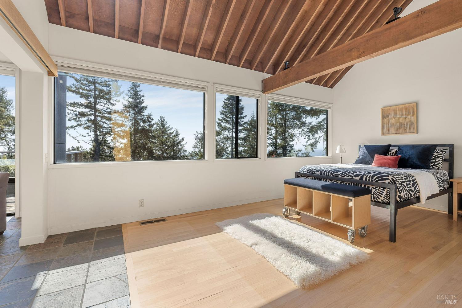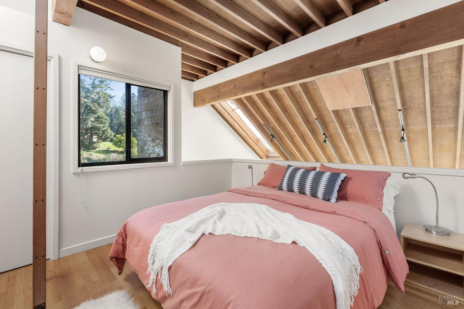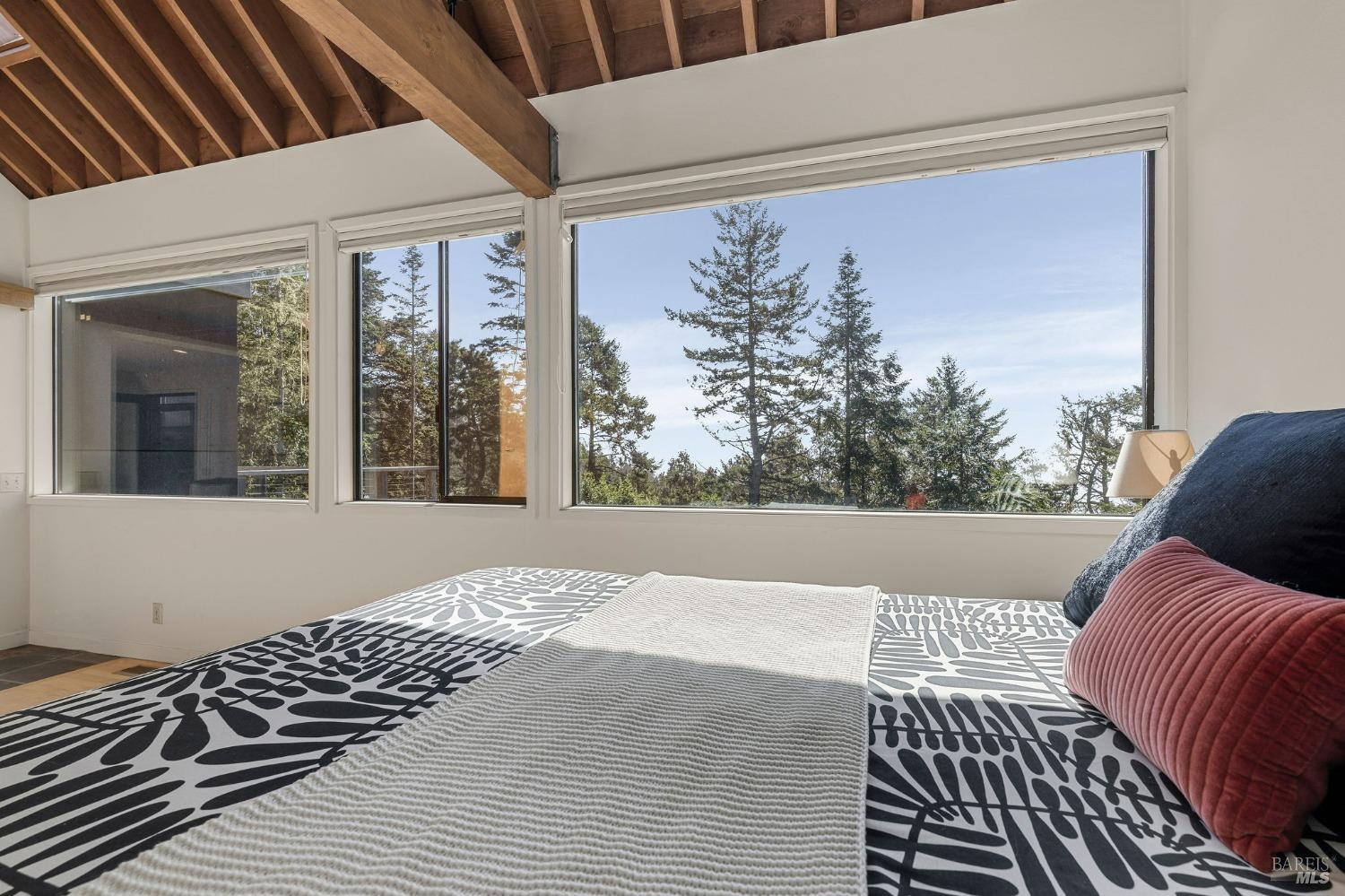 Classic 1970 Sea Ranch architecture has modern shed structures and a contemporary flair with metal roofing, solar panels, battery back-up and new heat exchange unit. The interior has light wood floors, smooth sheet rocked painted walls and exposed wood beams. In October 1971 Sunset Magazine awarded this Craig Roland architecture a Citation Award for the Shed Roof and Shingle Skin the jury couldn't pass by. The current owners bought the 2 small cabins in 1989. They later combined the two to a larger house and added an almost 600 sf 2-story shed studio/garage. The setting is very private at the end of a cul de sac on 3 lots combined to a 2.1 acre parcel overlooking the Pacific ocean with broad blue water views and peaks of white water through the trees. From the top deck, in the main house, you have a view of the coastline and Black Point. This location allows access to 50+ miles of private roads to the East, West, South and North along with the equal distance of hiking trails. It is walking distance to the Verdant View business district with professional offices, wine shop, pop-up gallery, Shindig cafe and Sea Ranch Supply hardware store and nursery. Sea Ranch amenities include private airstrip, community garden, pools, pickle and tennis courts, rec and gathering facilities.