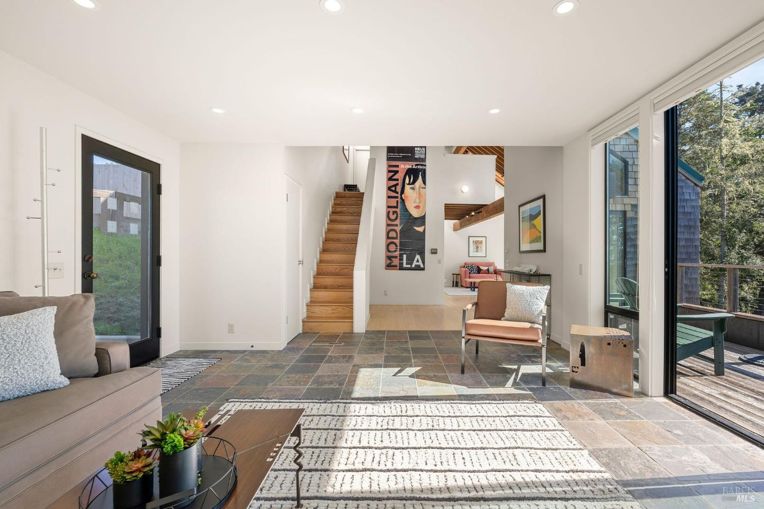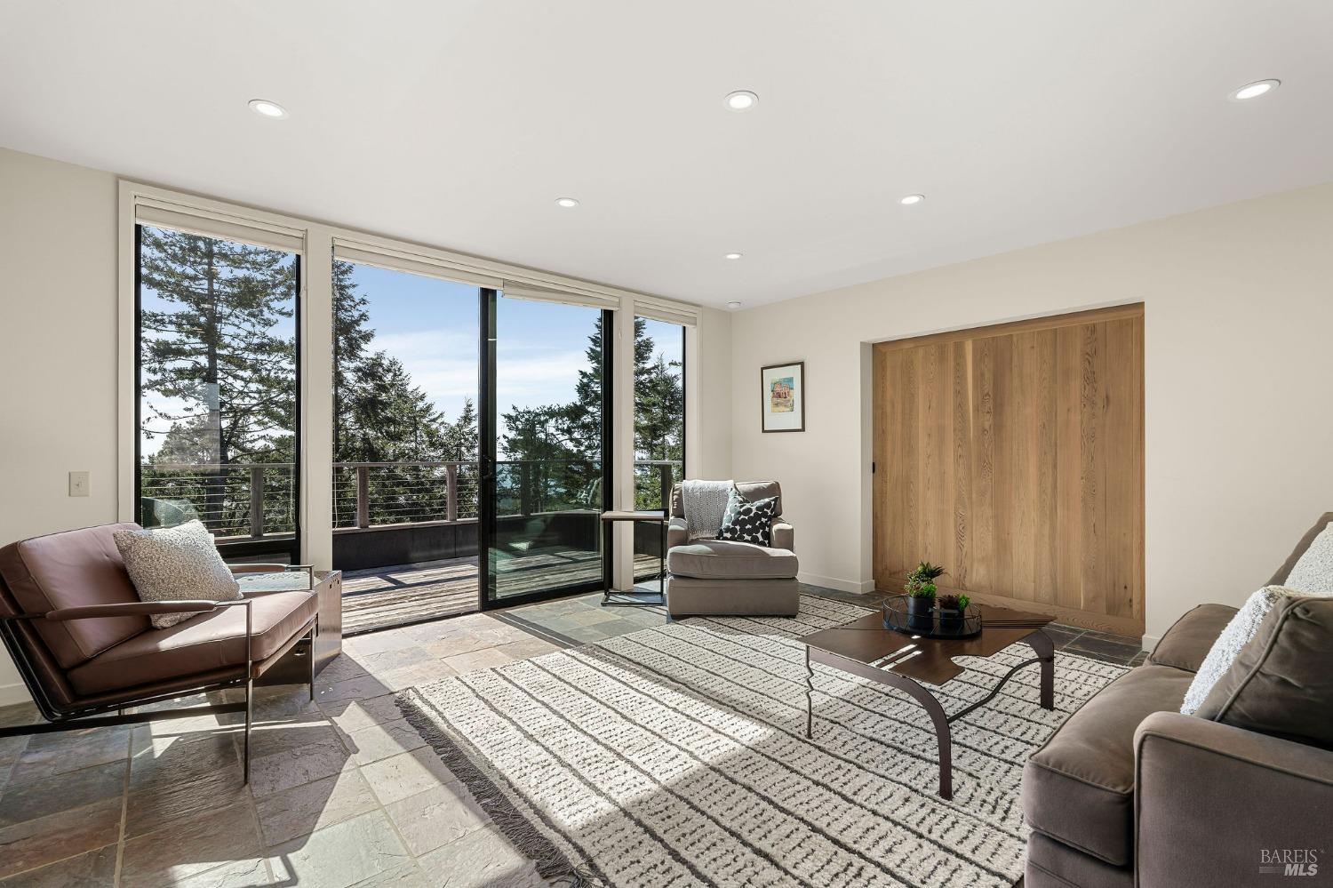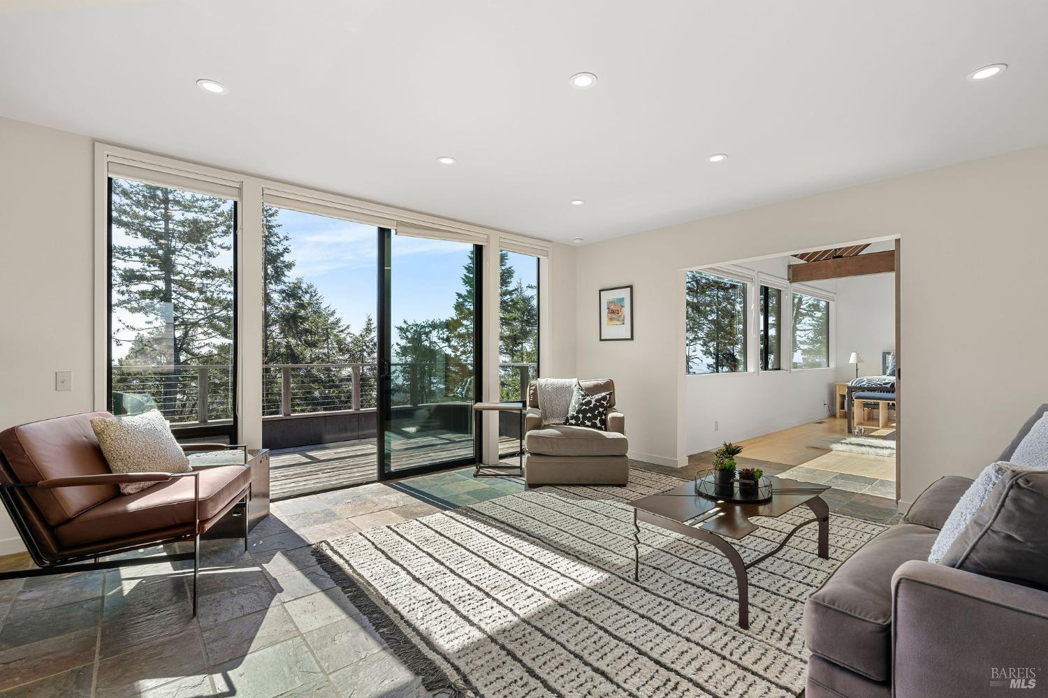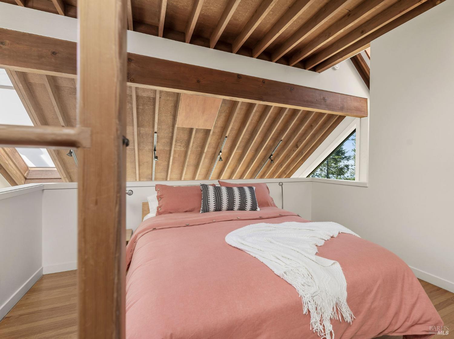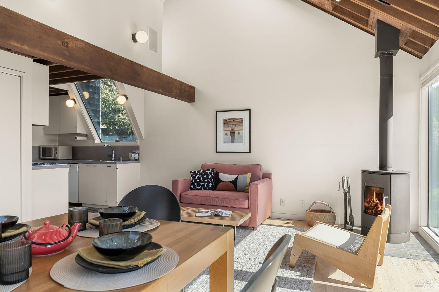 Classic 1970 Sea Ranch architecture has modern shed structures and a contemporary flair with metal roofing, solar panels, battery back-up and new heat exchange unit. The interior has light wood floors, smooth sheet rocked painted walls and exposed wood beams. In October 1971 Sunset Magazine awarded this Craig Roland architecture a Citation Award for the Shed Roof and Shingle Skin the jury couldn't pass by. The current owners bought the 2 small cabins in 1989. They later combined the two to a larger house and added an almost 600 sf 2-story shed studio/garage. The setting is very private at the end of a cul de sac on 3 lots combined to a 2.1 acre parcel overlooking the Pacific ocean with broad blue water views and peaks of white water through the trees. From the top deck, in the main house, you have a view of the coastline and Black Point. This location allows access to 50+ miles of private roads to the East, West, South and North along with the equal distance of hiking trails. It is walking distance to the Verdant View business district with professional offices, wine shop, pop-up gallery, Shindig cafe and Sea Ranch Supply hardware store and nursery. Sea Ranch amenities include private airstrip, community garden, pools, pickle and tennis courts, rec and gathering facilities.