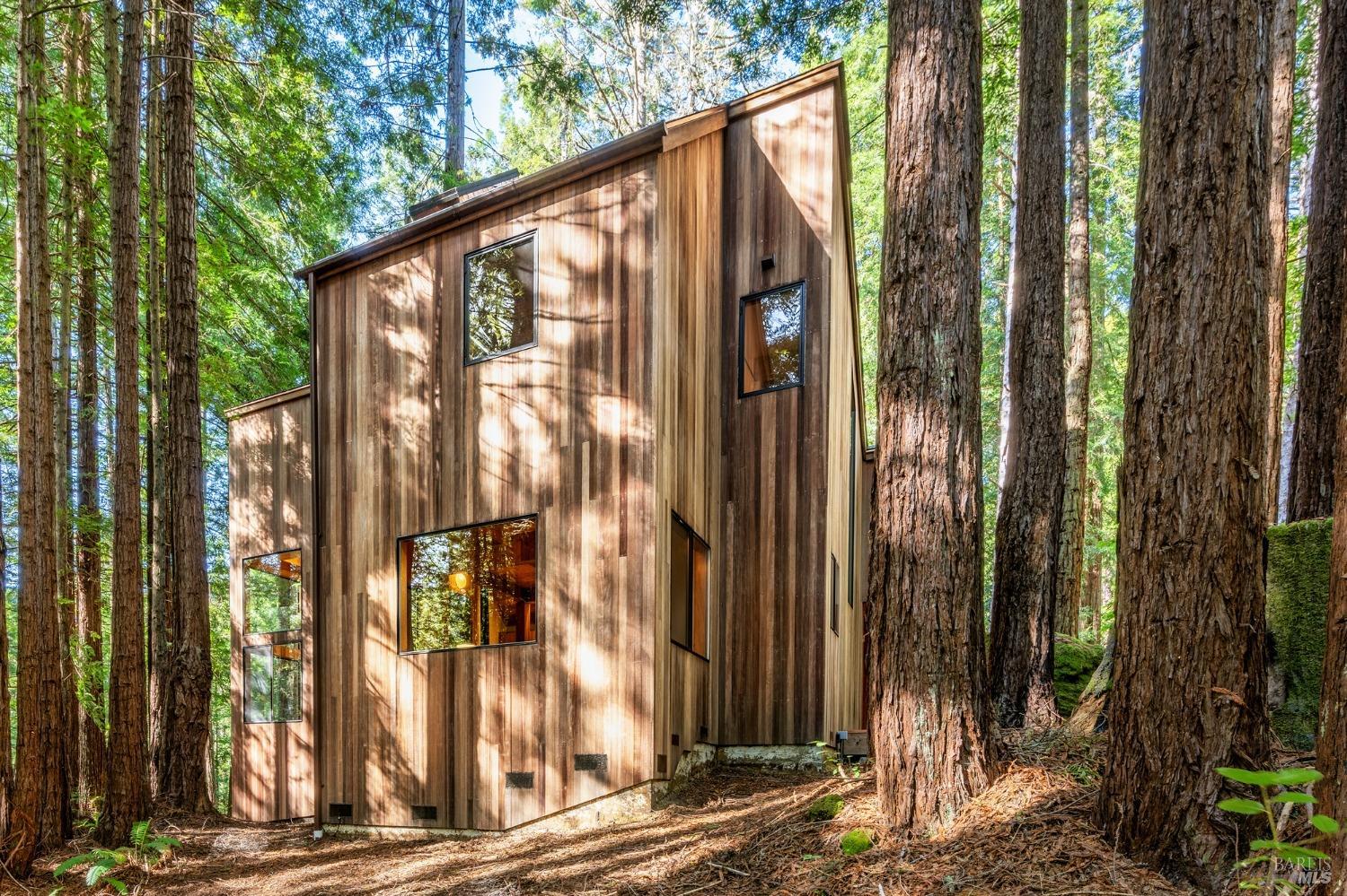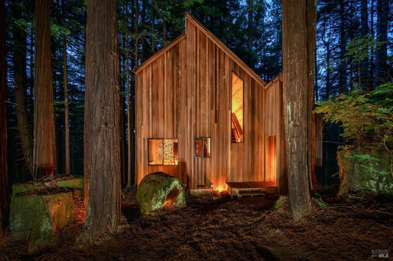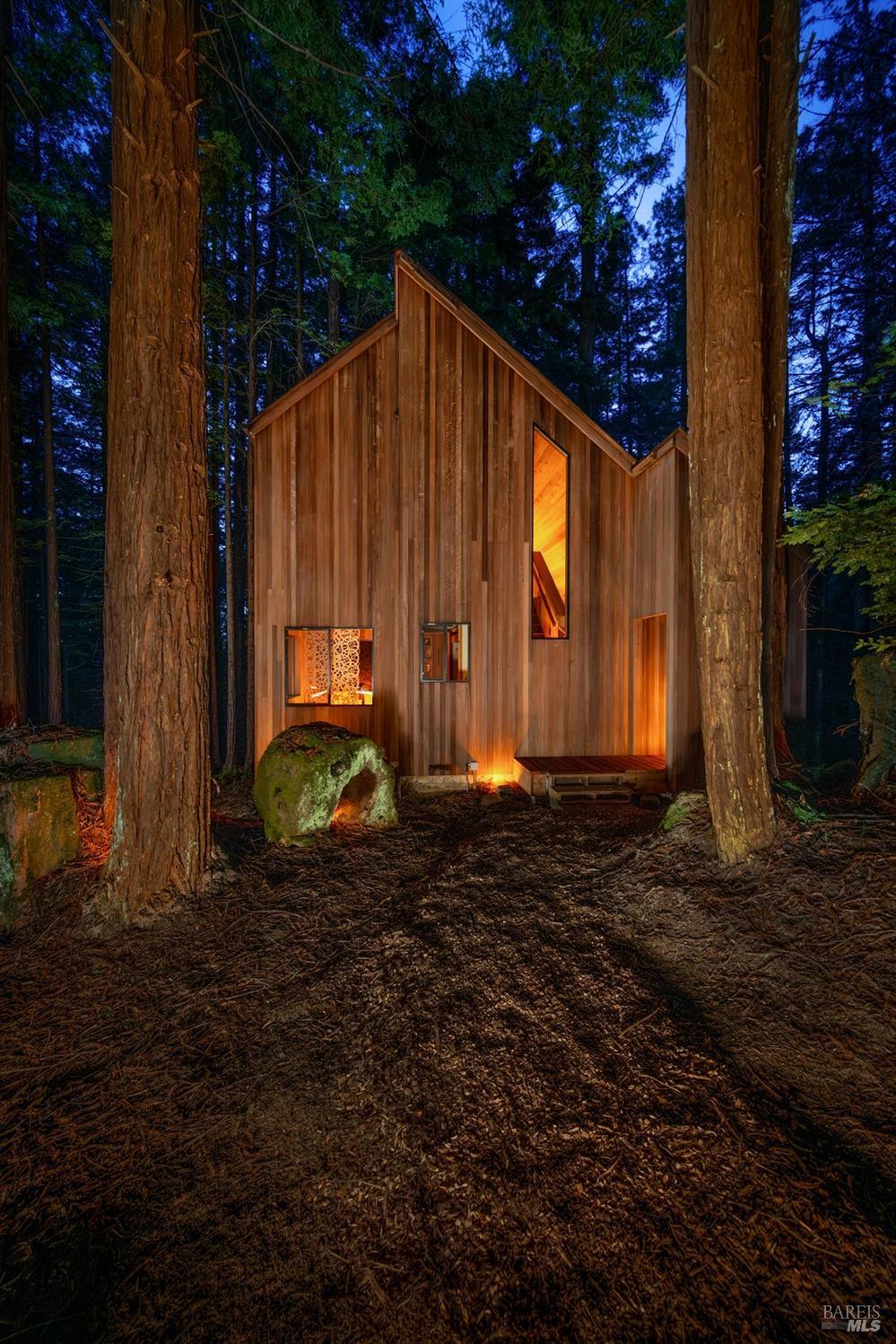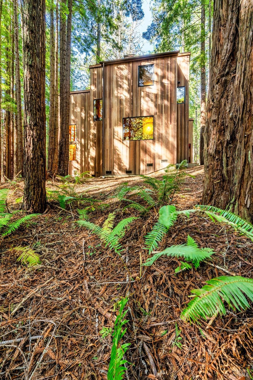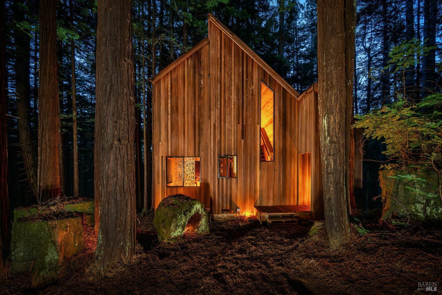 Clear air and calm surrounds the pristine setting of this small beautifully crafted cabin in the hills of The Sea Ranch. Young deer move through shafts of sunlight penetrating deeply into its stand of redwoods. The peace of forest bathing - the Japanese art of shinrin yoku - will be close at hand in this secluded cul de sac. Windows in the soaring 25-foot high cedar-lined living room offer views with no cabins in sight. A loft space, with bedroom and full bathroom, overlooks the downstairs. A galley kitchen with large butcher block table makes cooking simple and easy. The dining room looks out to a rare sweep of untouched forest. The scent and warmth of a crackling fire in a classic wood-burning stove brings comfort and coziness. A new 30-year roof and state of the art home wastewater treatment system, fully permitted and with an annual maintenance contract, are recent upgrades. High speed fiber optic brings work-at-home and streaming directly to the cabin. Follow the Hugel Ravine Trail, just steps from the cabin, down the hillside to the historic White Barn, to the sands of Ohlson Beach and to a recreation complex with pool and tennis courts. This perfectly situated holding provides a sought-after retreat for writers, artists and remote digital workers.