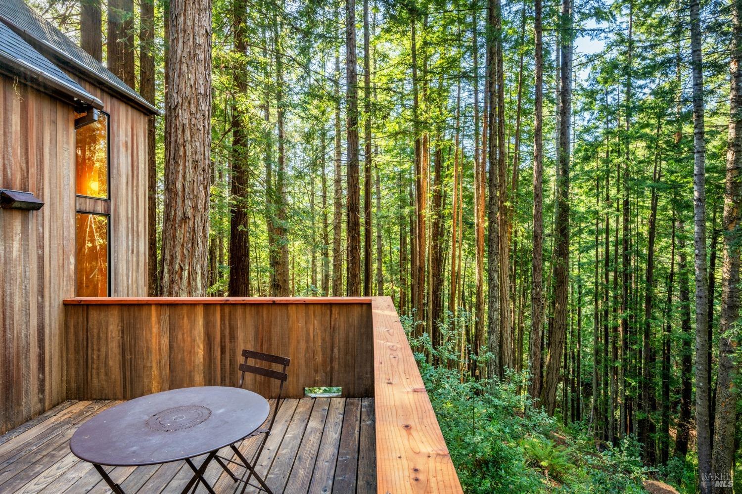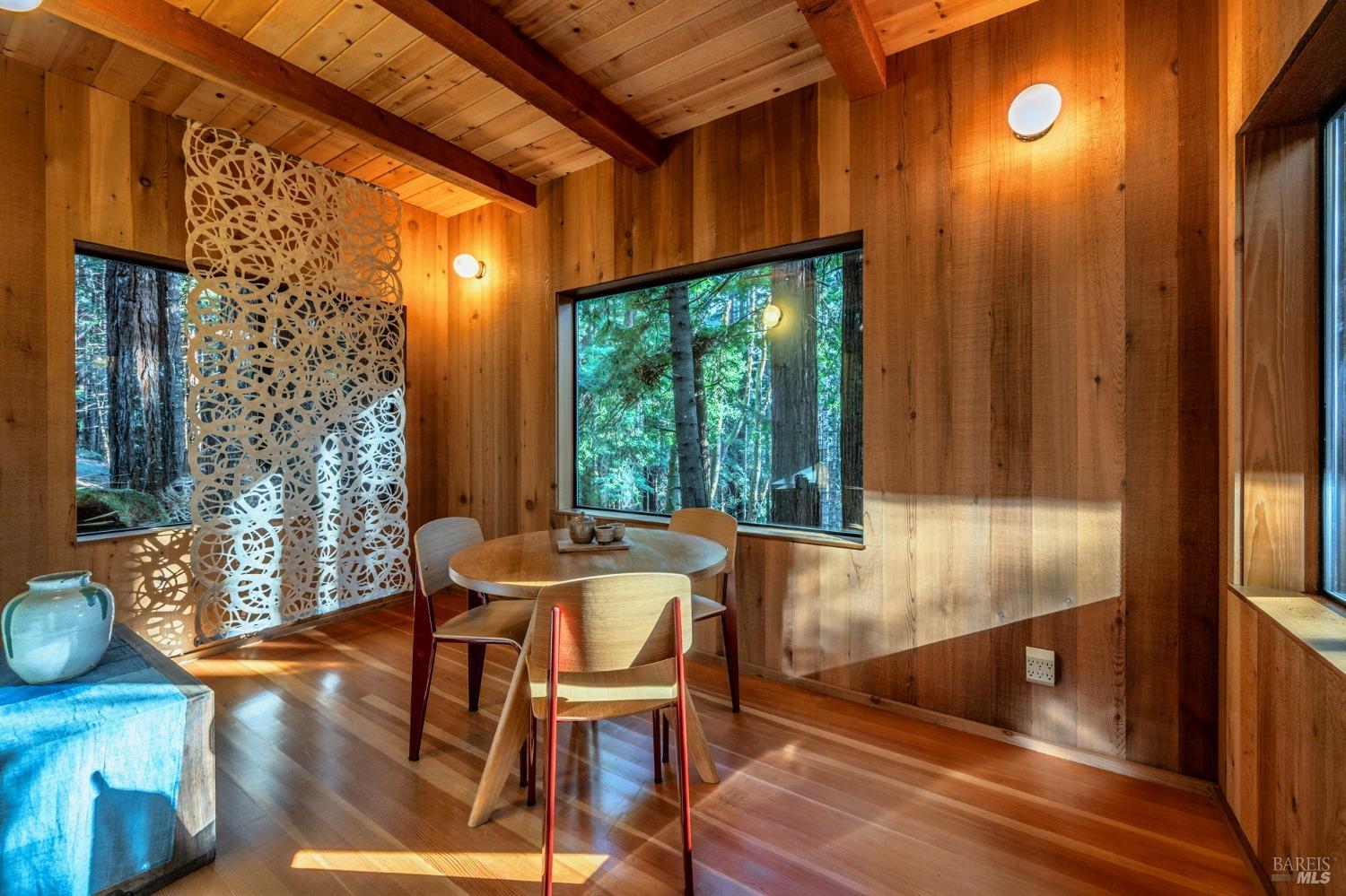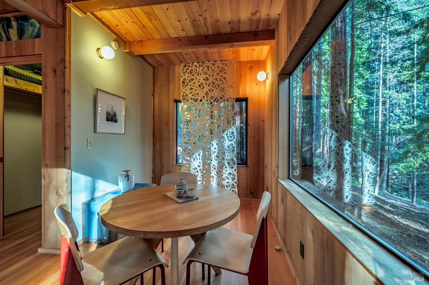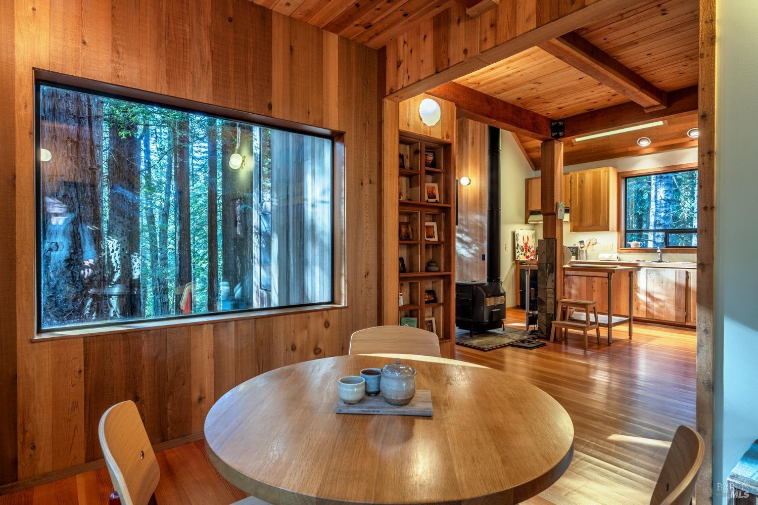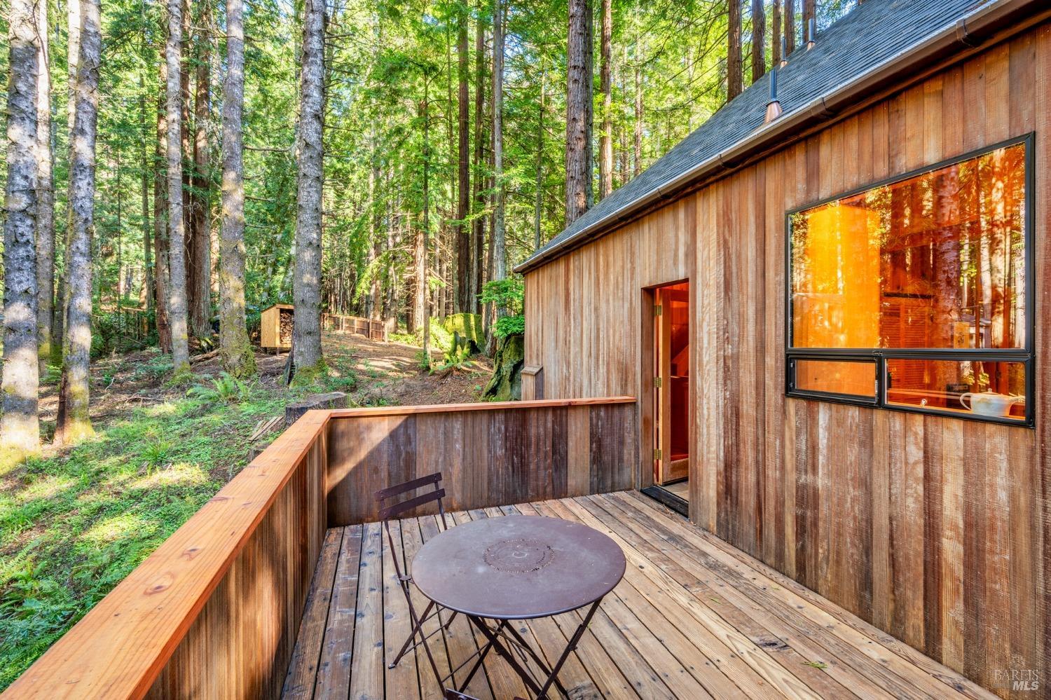 Clear air and calm surrounds the pristine setting of this small beautifully crafted cabin in the hills of The Sea Ranch. Young deer move through shafts of sunlight penetrating deeply into its stand of redwoods. The peace of forest bathing - the Japanese art of shinrin yoku - will be close at hand in this secluded cul de sac. Windows in the soaring 25-foot high cedar-lined living room offer views with no cabins in sight. A loft space, with bedroom and full bathroom, overlooks the downstairs. A galley kitchen with large butcher block table makes cooking simple and easy. The dining room looks out to a rare sweep of untouched forest. The scent and warmth of a crackling fire in a classic wood-burning stove brings comfort and coziness. A new 30-year roof and state of the art home wastewater treatment system, fully permitted and with an annual maintenance contract, are recent upgrades. High speed fiber optic brings work-at-home and streaming directly to the cabin. Follow the Hugel Ravine Trail, just steps from the cabin, down the hillside to the historic White Barn, to the sands of Ohlson Beach and to a recreation complex with pool and tennis courts. This perfectly situated holding provides a sought-after retreat for writers, artists and remote digital workers.