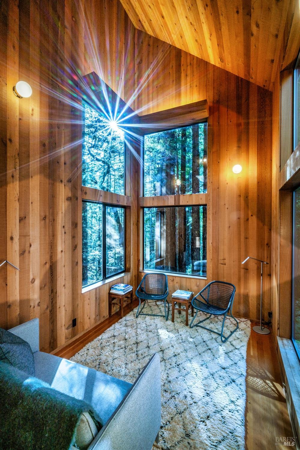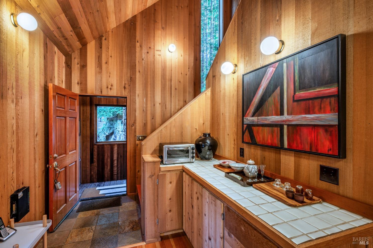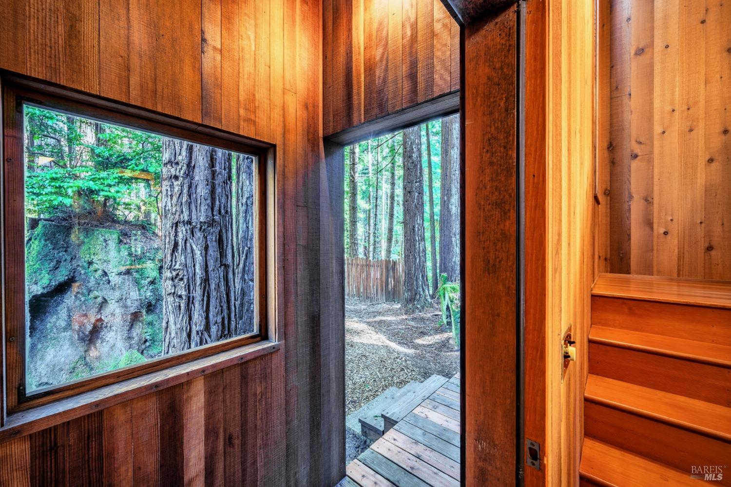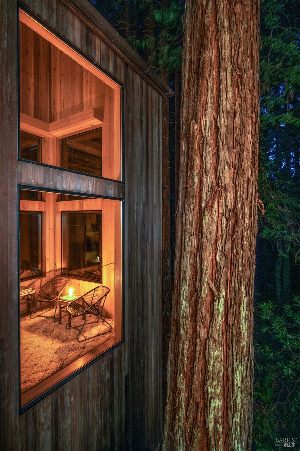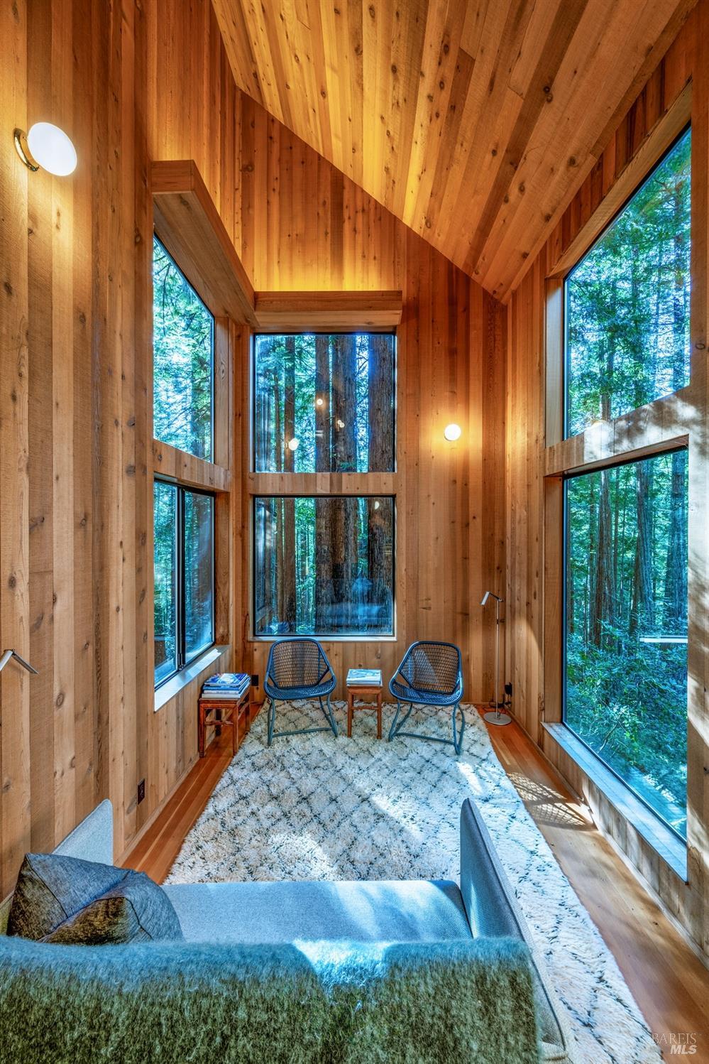Clear air and calm surrounds the pristine setting of this small beautifully crafted cabin in the hills of The Sea Ranch. Young deer move through shafts of sunlight penetrating deeply into its stand of redwoods. The peace of forest bathing - the Japanese art of shinrin yoku - will be close at hand in this secluded cul de sac. Windows in the soaring 25-foot high cedar-lined living room offer views with no cabins in sight. A loft space, with bedroom and full bathroom, overlooks the downstairs. A galley kitchen with large butcher block table makes cooking simple and easy. The dining room looks out to a rare sweep of untouched forest. The scent and warmth of a crackling fire in a classic wood-burning stove brings comfort and coziness. A new 30-year roof and state of the art home wastewater treatment system, fully permitted and with an annual maintenance contract, are recent upgrades. High speed fiber optic brings work-at-home and streaming directly to the cabin. Follow the Hugel Ravine Trail, just steps from the cabin, down the hillside to the historic White Barn, to the sands of Ohlson Beach and to a recreation complex with pool and tennis courts. This perfectly situated holding provides a sought-after retreat for writers, artists and remote digital workers.