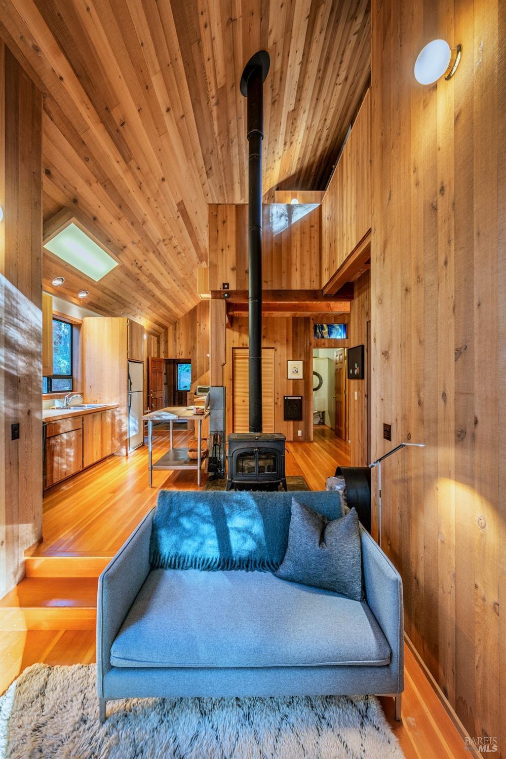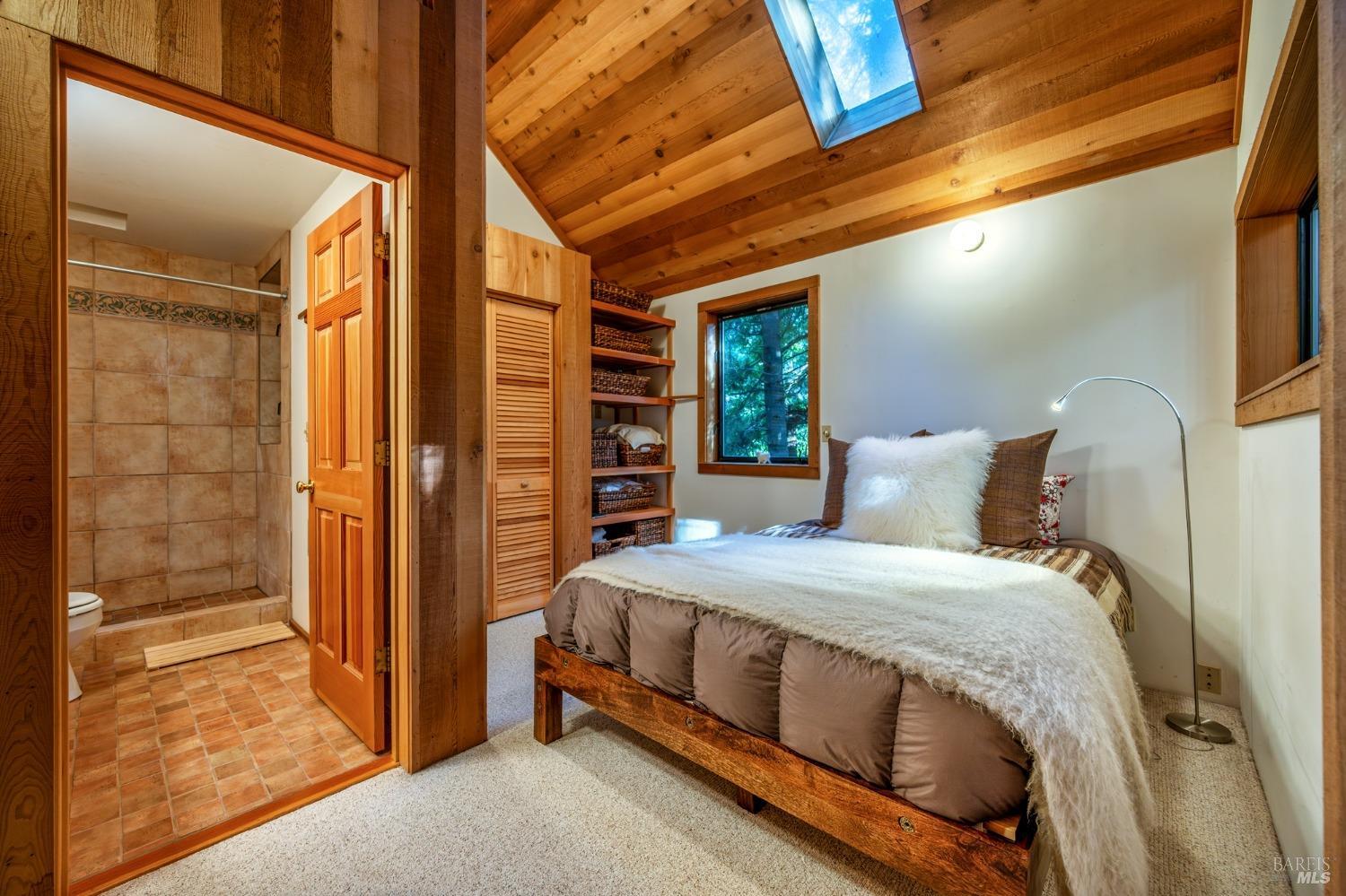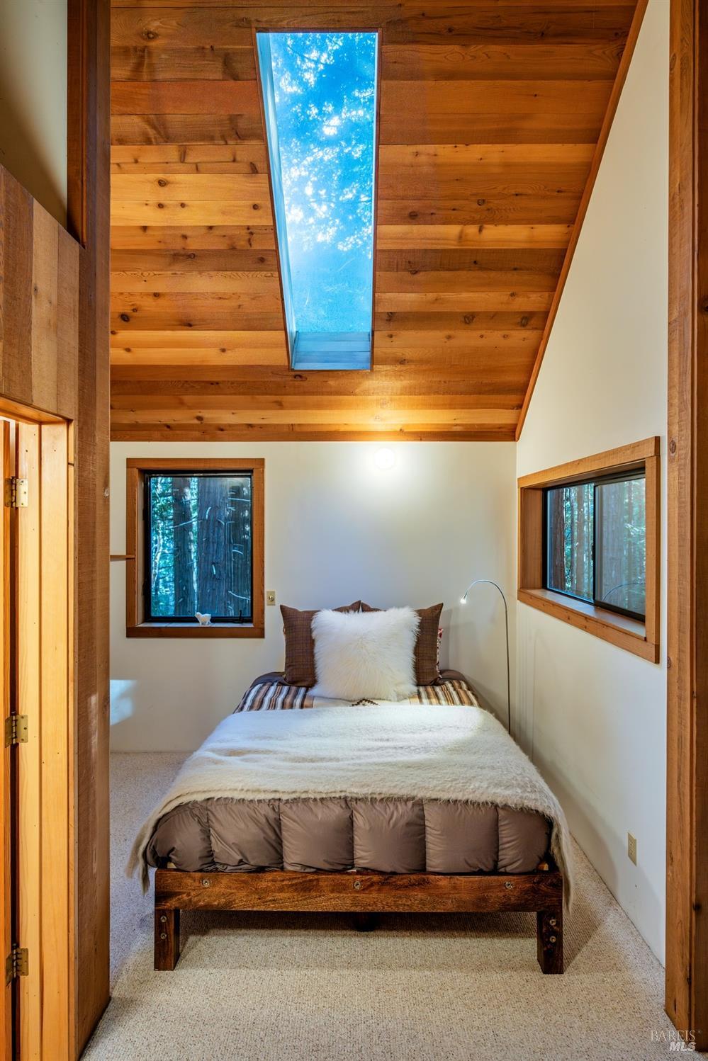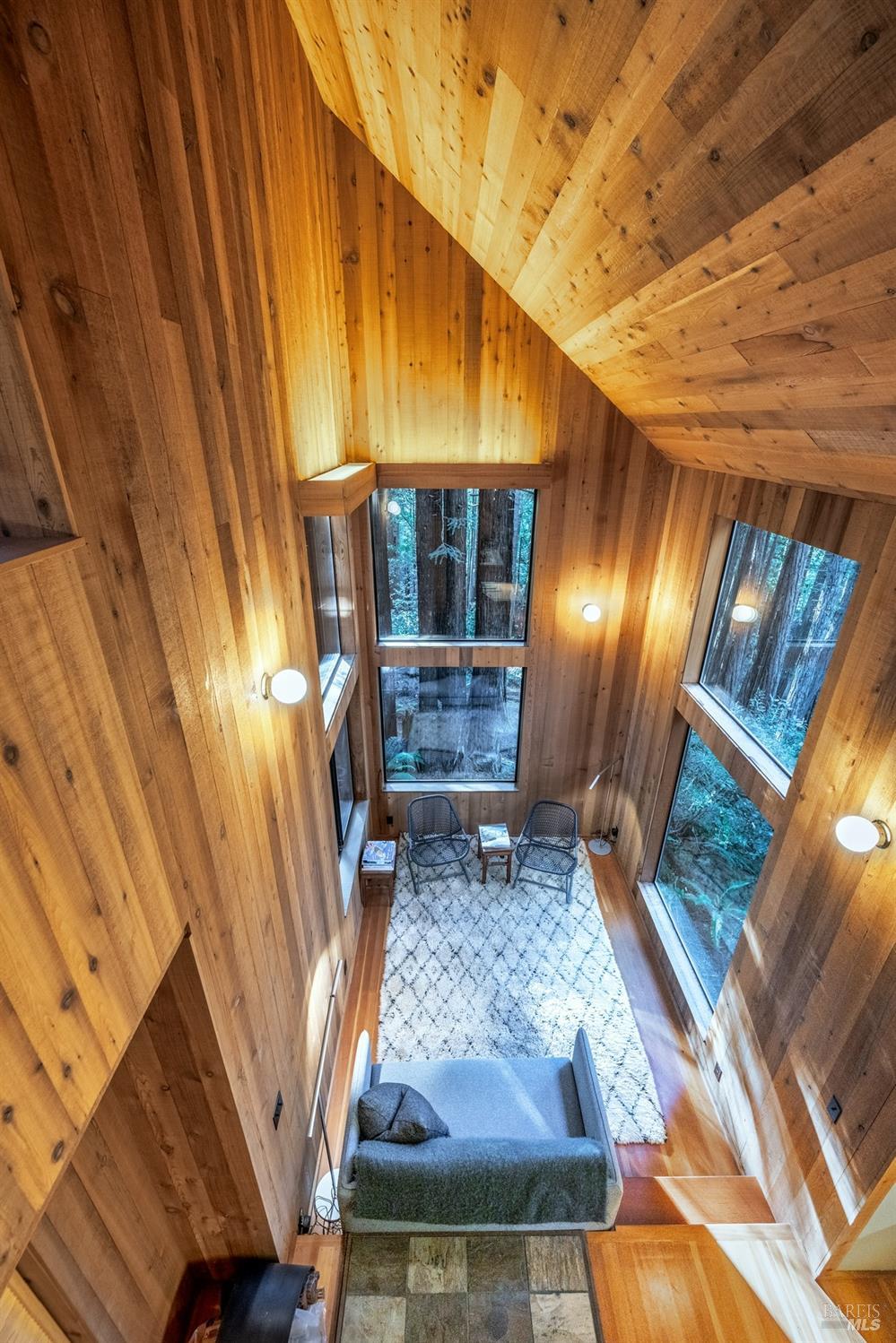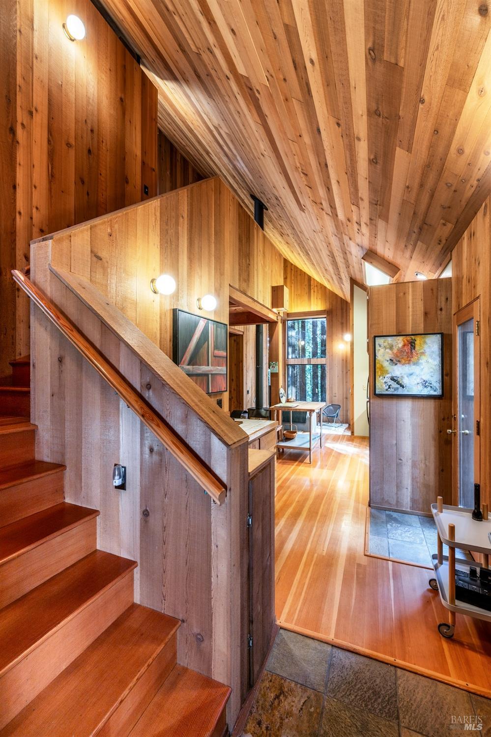 Clear air and calm surrounds the pristine setting of this small beautifully crafted cabin in the hills of The Sea Ranch. Young deer move through shafts of sunlight penetrating deeply into its stand of redwoods. The peace of forest bathing - the Japanese art of shinrin yoku - will be close at hand in this secluded cul de sac. Windows in the soaring 25-foot high cedar-lined living room offer views with no cabins in sight. A loft space, with bedroom and full bathroom, overlooks the downstairs. A galley kitchen with large butcher block table makes cooking simple and easy. The dining room looks out to a rare sweep of untouched forest. The scent and warmth of a crackling fire in a classic wood-burning stove brings comfort and coziness. A new 30-year roof and state of the art home wastewater treatment system, fully permitted and with an annual maintenance contract, are recent upgrades. High speed fiber optic brings work-at-home and streaming directly to the cabin. Follow the Hugel Ravine Trail, just steps from the cabin, down the hillside to the historic White Barn, to the sands of Ohlson Beach and to a recreation complex with pool and tennis courts. This perfectly situated holding provides a sought-after retreat for writers, artists and remote digital workers.
