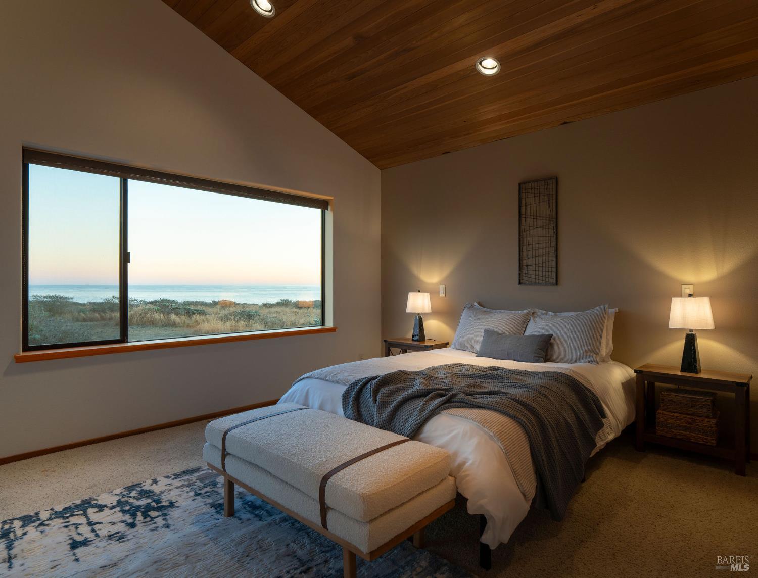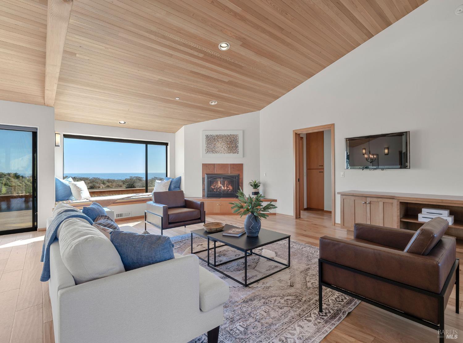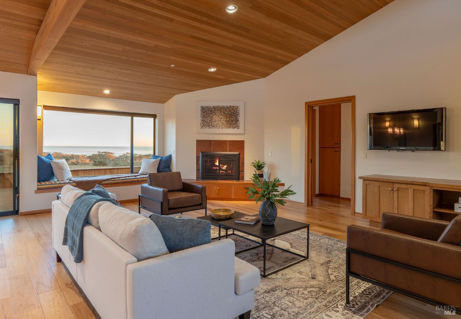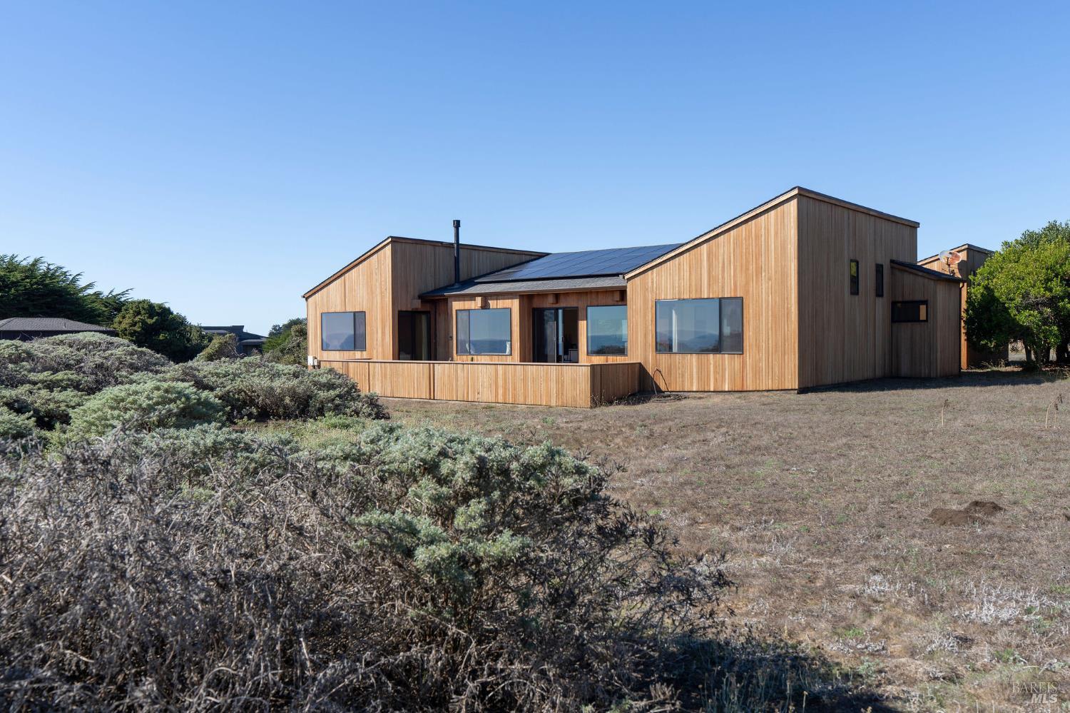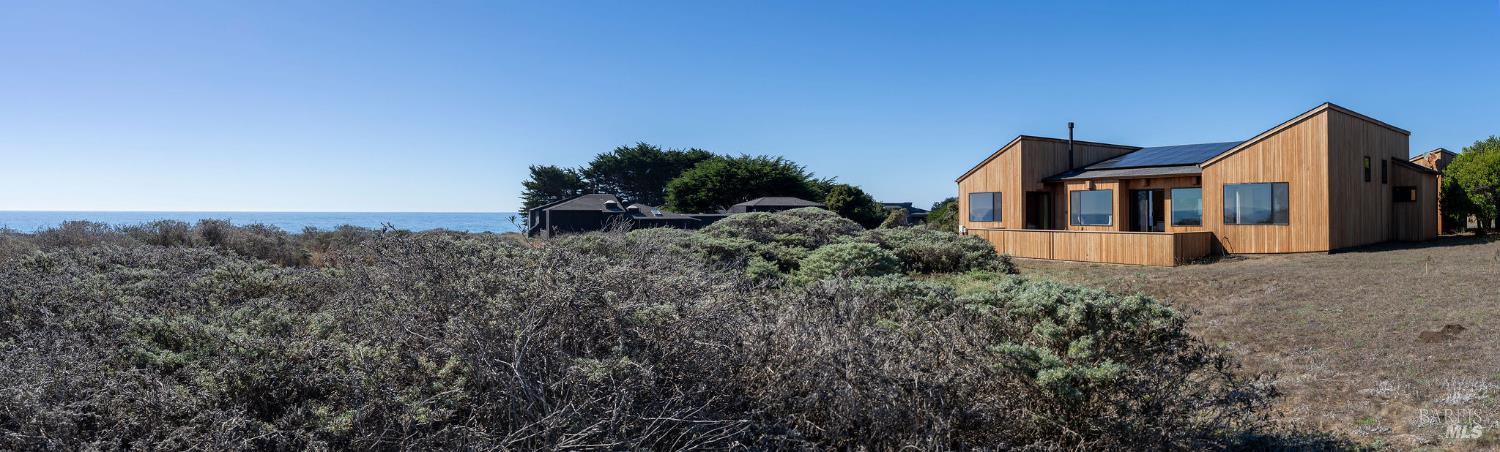 Great location at The Sea Ranch! Enjoy breathtaking, unobstructed blue and white water views from almost every room in this contemporary 2007 single-story home. Combined kitchen, dining, and living areas plus a spacious deck allow easy entertaining and gathering as well as unimpeded enjoyment of surrounding nature and wildlife. A separate guest wing with 2-bedrooms/1-bath affords privacy for overnight visitors. Environmentally friendly and efficient rooftop solar with battery storage, and great passive solar exposure minimize utility bills. The master bedroom features a large walk-in closet. An indoor laundry/mud/pantry room is adjacent to the kitchen. The home is occupied by its original owners and has never been a rental. Architecture by Walter Lim AIA with quality construction by Larry Condon, this lovely home offers Sea Ranch living at its best. A two-car detached garage with solar back-up equipment is accessed via the lovely fenced-in courtyard. The landscaping is native to the area but could also host your vegetable garden. Utilities include fiber optic, 3-bedroom septic, tankless water heater, propane stove. Propane forced air heating and fireplace in living room. House is in great condition and was recently power washed and stained. Shell Beach awaits nearby!