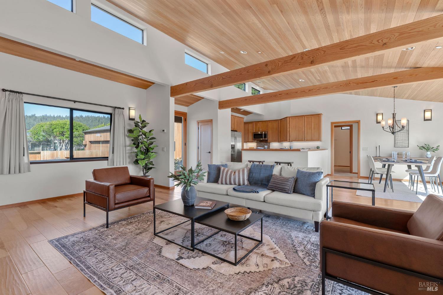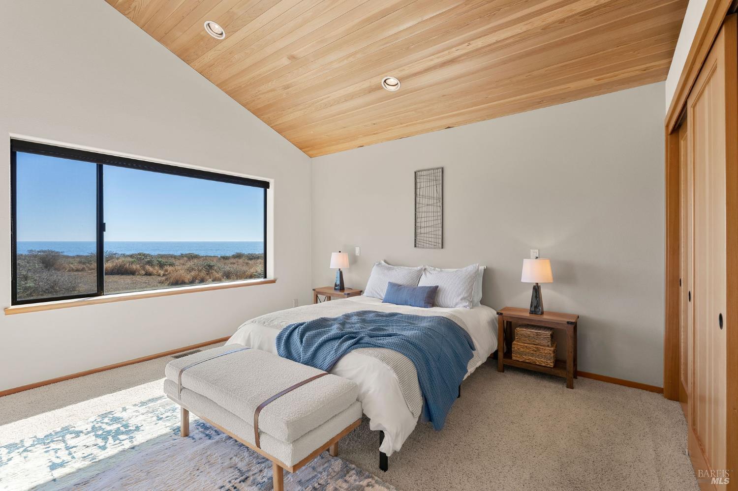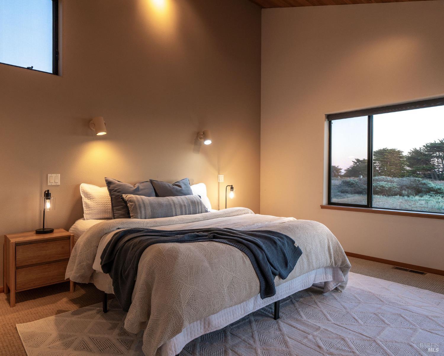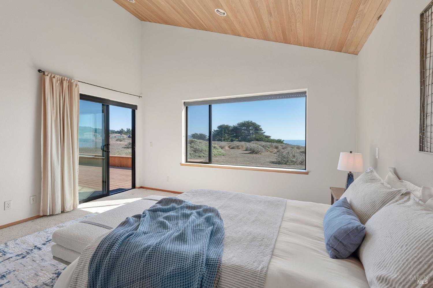 Great location at The Sea Ranch! Enjoy breathtaking, unobstructed blue and white water views from almost every room in this contemporary 2007 single-story home. Combined kitchen, dining, and living areas plus a spacious deck allow easy entertaining and gathering as well as unimpeded enjoyment of surrounding nature and wildlife. A separate guest wing with 2-bedrooms/1-bath affords privacy for overnight visitors. Environmentally friendly and efficient rooftop solar with battery storage, and great passive solar exposure minimize utility bills. The master bedroom features a large walk-in closet. An indoor laundry/mud/pantry room is adjacent to the kitchen. The home is occupied by its original owners and has never been a rental. Architecture by Walter Lim AIA with quality construction by Larry Condon, this lovely home offers Sea Ranch living at its best. A two-car detached garage with solar back-up equipment is accessed via the lovely fenced-in courtyard. The landscaping is native to the area but could also host your vegetable garden. Utilities include fiber optic, 3-bedroom septic, tankless water heater, propane stove. Propane forced air heating and fireplace in living room. House is in great condition and was recently power washed and stained. Shell Beach awaits nearby!