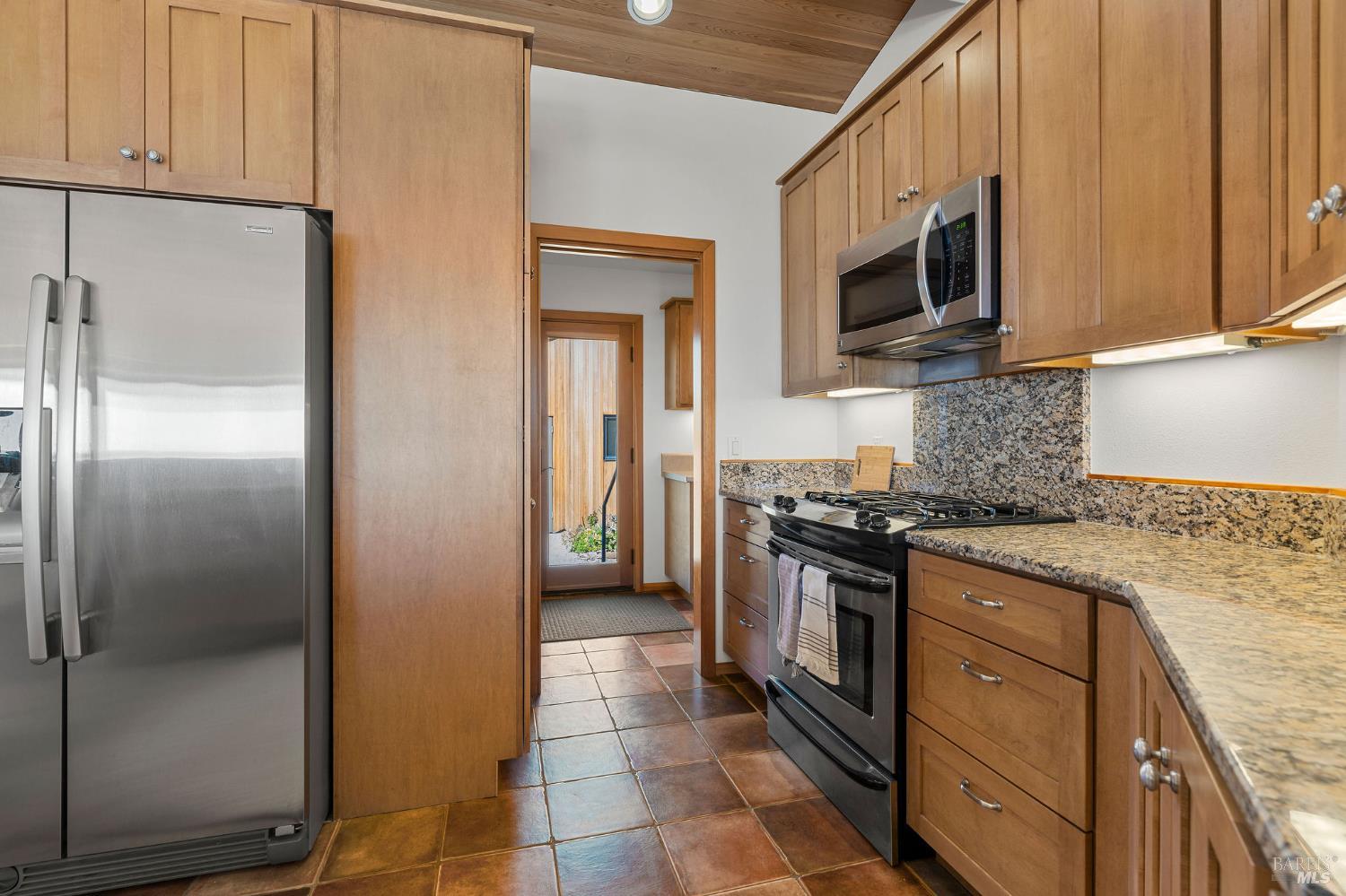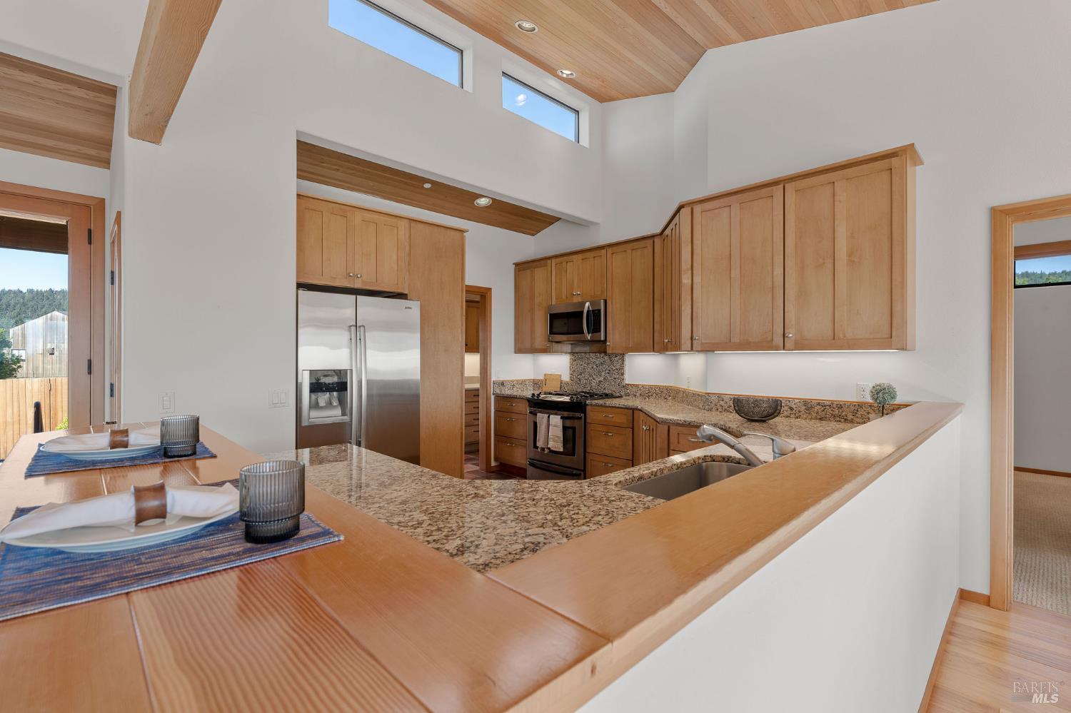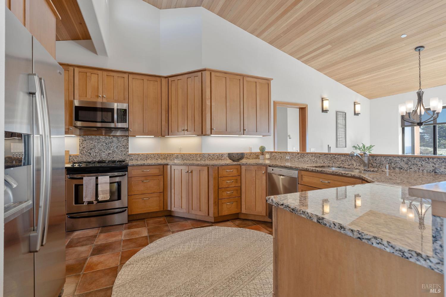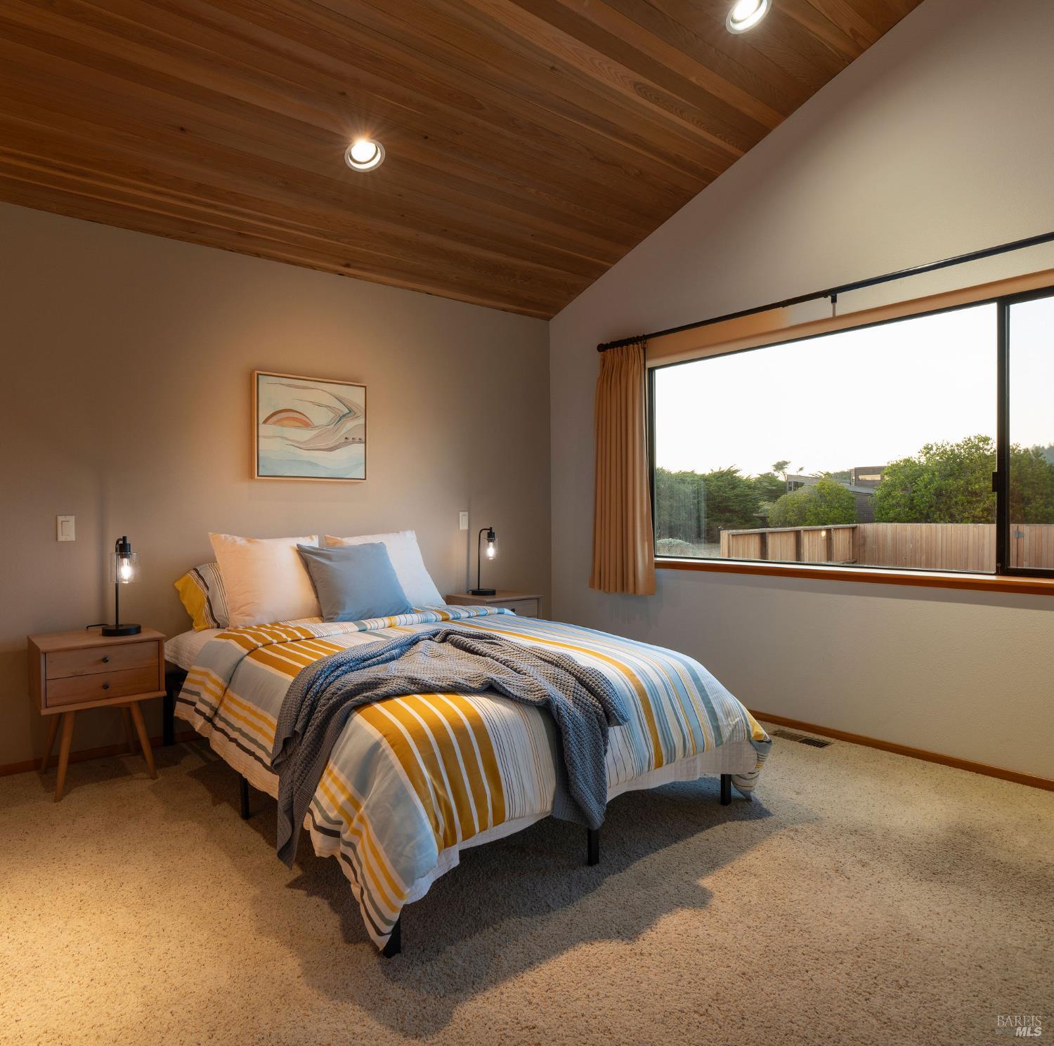 Great location at The Sea Ranch! Enjoy breathtaking, unobstructed blue and white water views from almost every room in this contemporary 2007 single-story home. Combined kitchen, dining, and living areas plus a spacious deck allow easy entertaining and gathering as well as unimpeded enjoyment of surrounding nature and wildlife. A separate guest wing with 2-bedrooms/1-bath affords privacy for overnight visitors. Environmentally friendly and efficient rooftop solar with battery storage, and great passive solar exposure minimize utility bills. The master bedroom features a large walk-in closet. An indoor laundry/mud/pantry room is adjacent to the kitchen. The home is occupied by its original owners and has never been a rental. Architecture by Walter Lim AIA with quality construction by Larry Condon, this lovely home offers Sea Ranch living at its best. A two-car detached garage with solar back-up equipment is accessed via the lovely fenced-in courtyard. The landscaping is native to the area but could also host your vegetable garden. Utilities include fiber optic, 3-bedroom septic, tankless water heater, propane stove. Propane forced air heating and fireplace in living room. House is in great condition and was recently power washed and stained. Shell Beach awaits nearby!