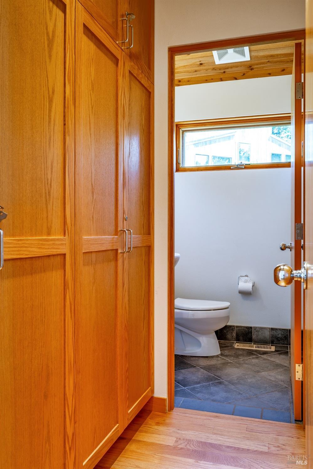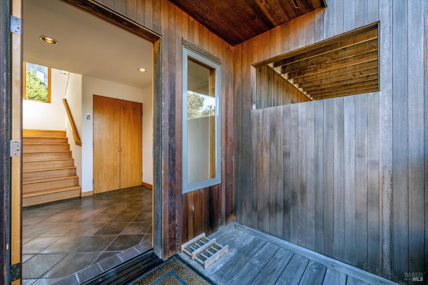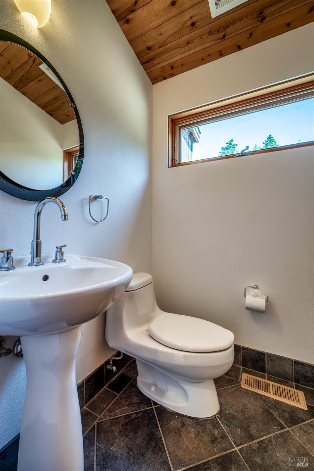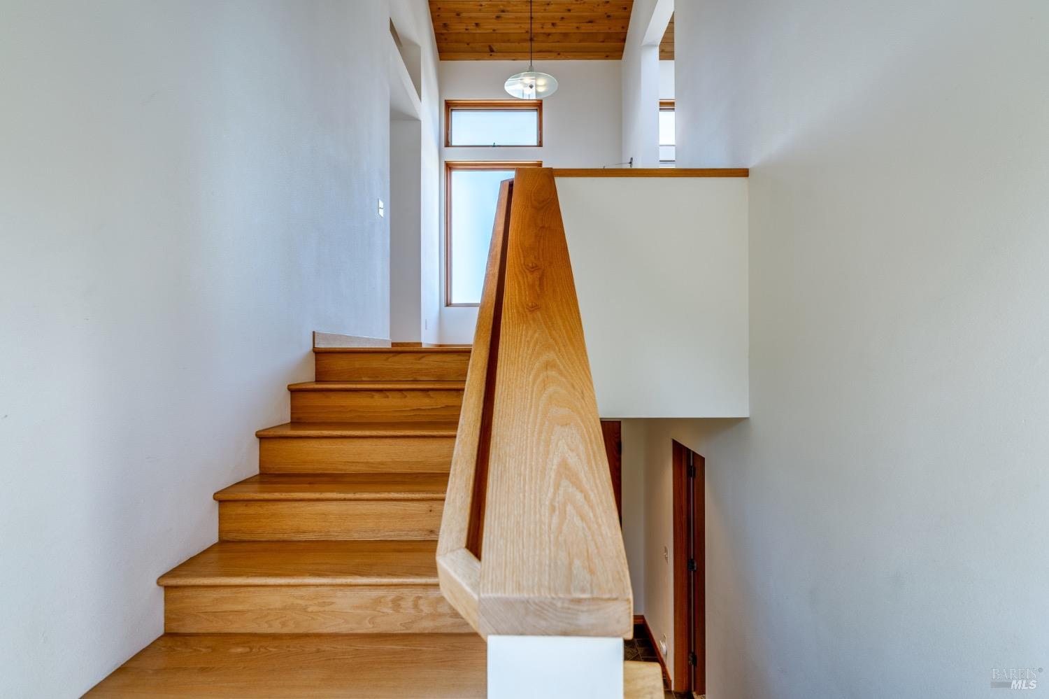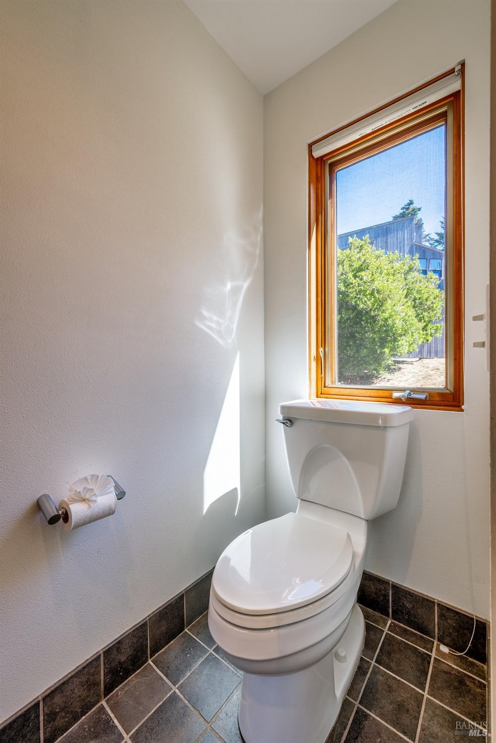 Cross the threshold into this light, bright and contemporary Sea Ranch home with ocean views, inviting interior and plenty of natural light. Stylish living room with open beam ceiling, wood flooring, wood burning fireplace and built-in-window seat for added seating and comfort. Spacious dining room with high ceilings lends itself to formal dining occasions or casual meals anytime of the day or night. Kitchen with views features stainless steel appliances, gas range and double sink. Breakfast bar accommodates 4 stools. Half bathroom conveniently located close to LR/DR/Kitchen. Sliding glass door adjacent to kitchen leads to outdoor deck making it an ideal spot to take in the view or barbeque. Primary bedroom with tastefully appointed ensuite primary bathroom has windows for natural light, closet, dual sinks and tiled walk-in shower stall with glass door. Walk-in-closet allows for extra storage. Guest bedroom offers privacy and includes a built-in window seat to recline and unwind. Guest bathroom has dual vanity and shower over tub. Deck with hot tub will ease your cares away. Detached garage with storage and partially fenced enclosure allows for extra parking. Cul-de-sac location. Must be seen to be appreciated!