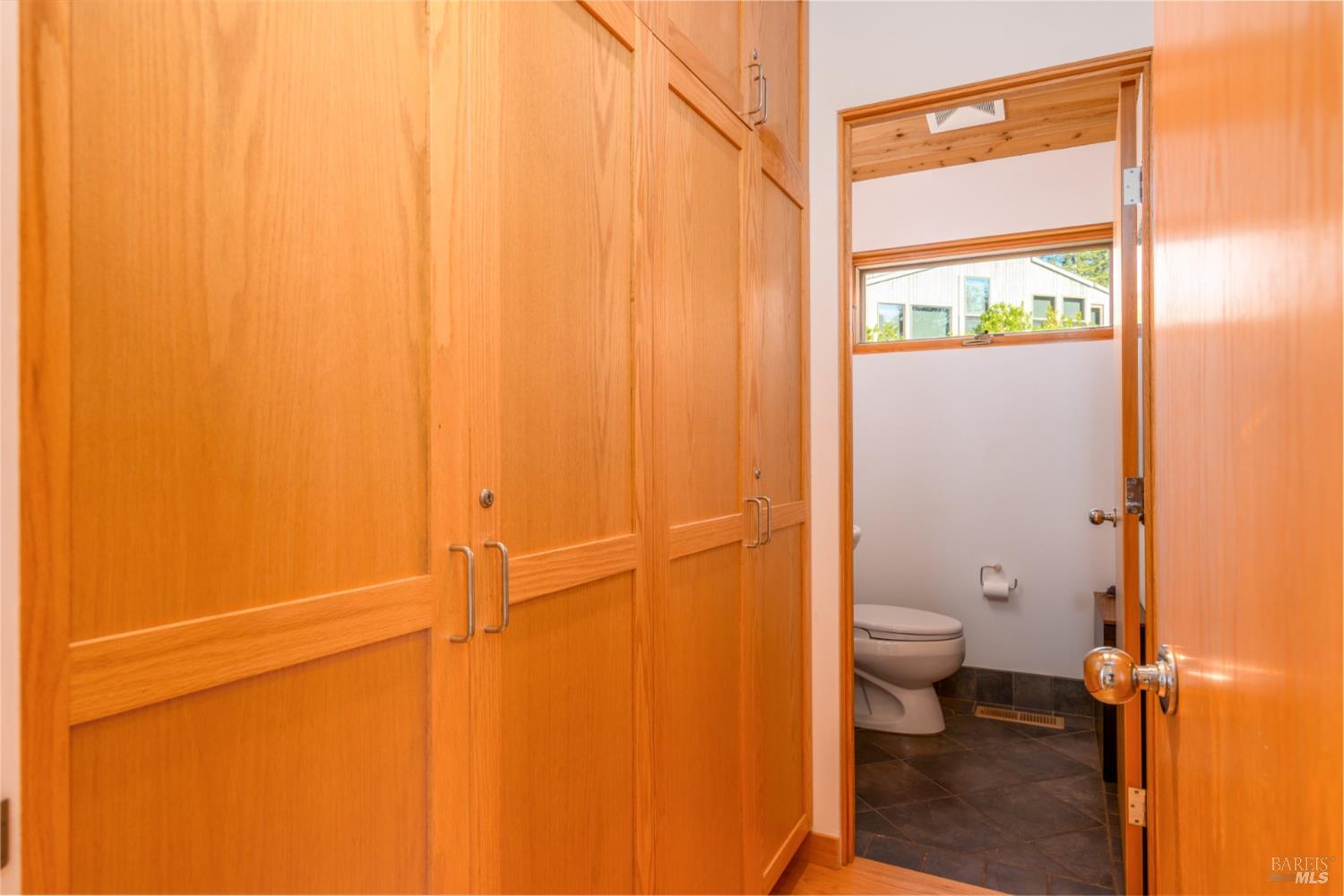 Light-filled and contemporary, this Sea Ranch home offers sweeping ocean views, privacy, and effortless indoor-outdoor living. Expansive windows throughout invite natural light to pour in, enhancing the warm wood finishes and open-beam ceilings. The home features beautiful hardwood oak flooring, a wood-burning fireplace with hearth, and a charming built-in window seat perfect for relaxing with a book or enjoying sunset views. The spacious dining area with soaring ceilings easily accommodates both formal gatherings and casual everyday meals. A family room or home office is located off the dining area. The view-oriented kitchen is thoughtfully designed with stainless steel appliances, gas range, double sink, and a breakfast bar with seating for four. A convenient half bath serves the main living areas, and a sliding glass door opens to an ocean-view deck is ideal for entertaining or morning coffee. The primary suite offers abundant light, dual vanities, a tiled walk-in shower with glass doors, and a generous walk-in closet. A private guest bedroom with built-in window seat provides a comfortable retreat, complemented by a guest bath with dual vanity and shower-over-tub. Outdoor spaces include multiple decks and a hot tub for relaxing under the stars. A detached garage with storage, partially fenced yard, and extra parking add flexibility and function. Located on a quiet cul-de-sac, the home has been thoughtfully maintained with a newly installed 50-year roof, fresh exterior staining, and 6 kw solar system with 19.8 kw of battery backup for energy efficiency. A wonderful opportunity to enjoy the best of Sea Ranch coastal living.