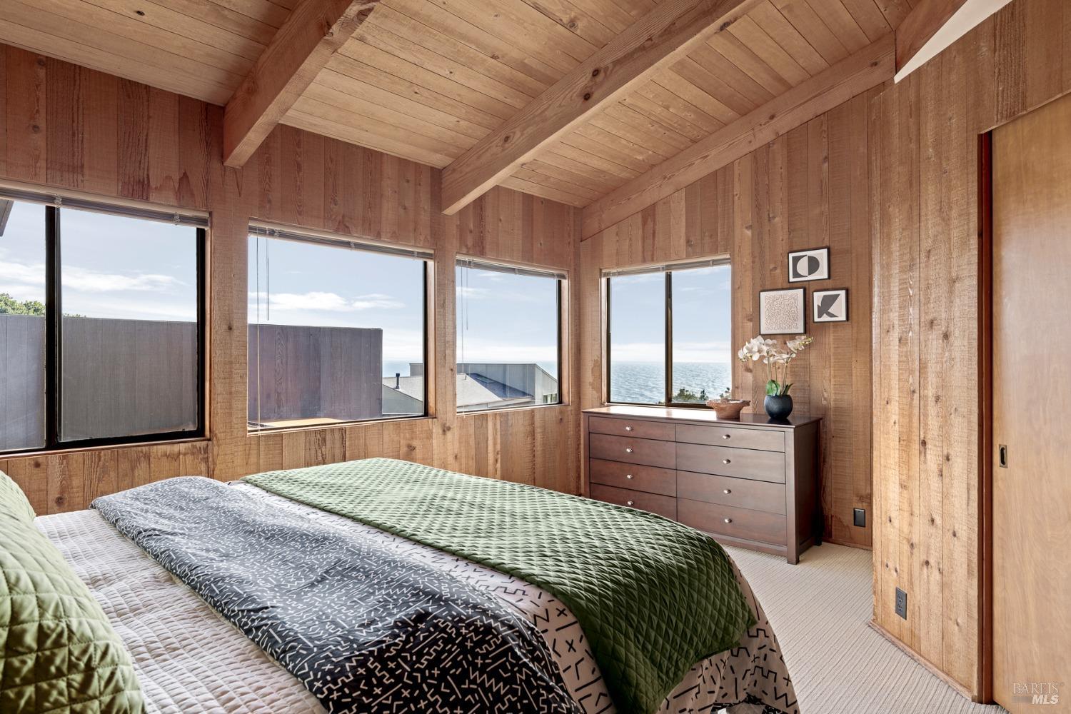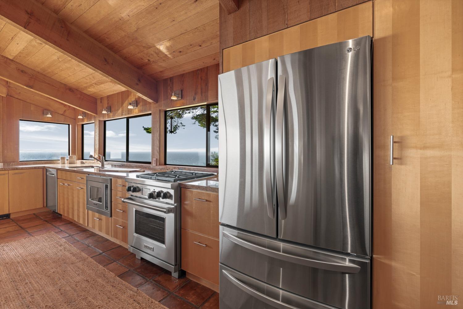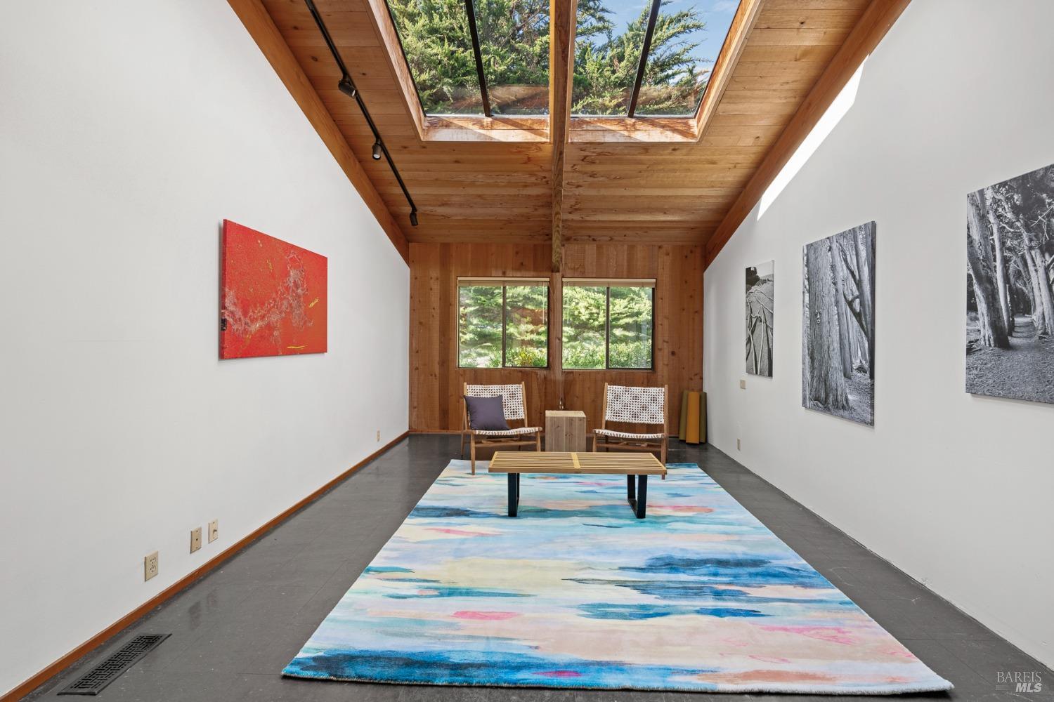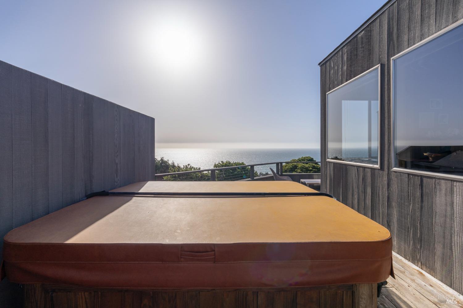This is your opportunity to buy a classic Sea Ranch home in a fantastic location designed by renowned architect Don Jacobs. Admire the exceptional detail and the craftsmanship by legendary original contractor Matt Sylvia, who built Condo 1, the Lodge, Moonraker Center, and many iconic homes in this unique community. Walking through the sunlit hallway covered with skylights you enter the extensive living/dining/kitchen area with breathtaking panoramic white water views towards Black Point and down the northern coastline all the way to Fish Rock at Anchor Bay. Step down onto the deck and feel like you're on top of the world. The spacious kitchen with high end appliances and built-ins is open to the dining area and a perfect space to entertain family and friends. Off the hallway are two bedrooms and a 12'x 20' Studio. The master bedroom has an updated ensuite bathroom with access to the hot tub deck with ocean view. There is a two-car garage and plenty of guest parking. You are just minutes away from beautiful Black Point Beach, the Sea Ranch Lodge for dining and Moonraker Rec Center with heated pool, sauna and pickle ball court. Whether you enjoy the sunset from your deck or hike the nearby trails, you will be captivated by the peace and quiet of this magical place.