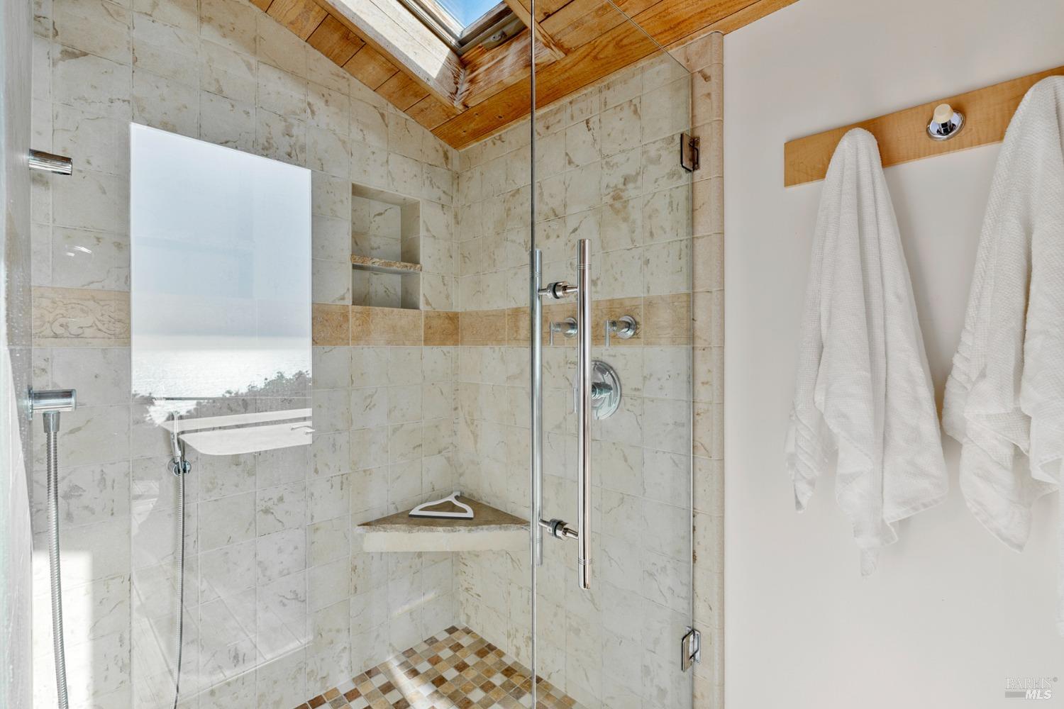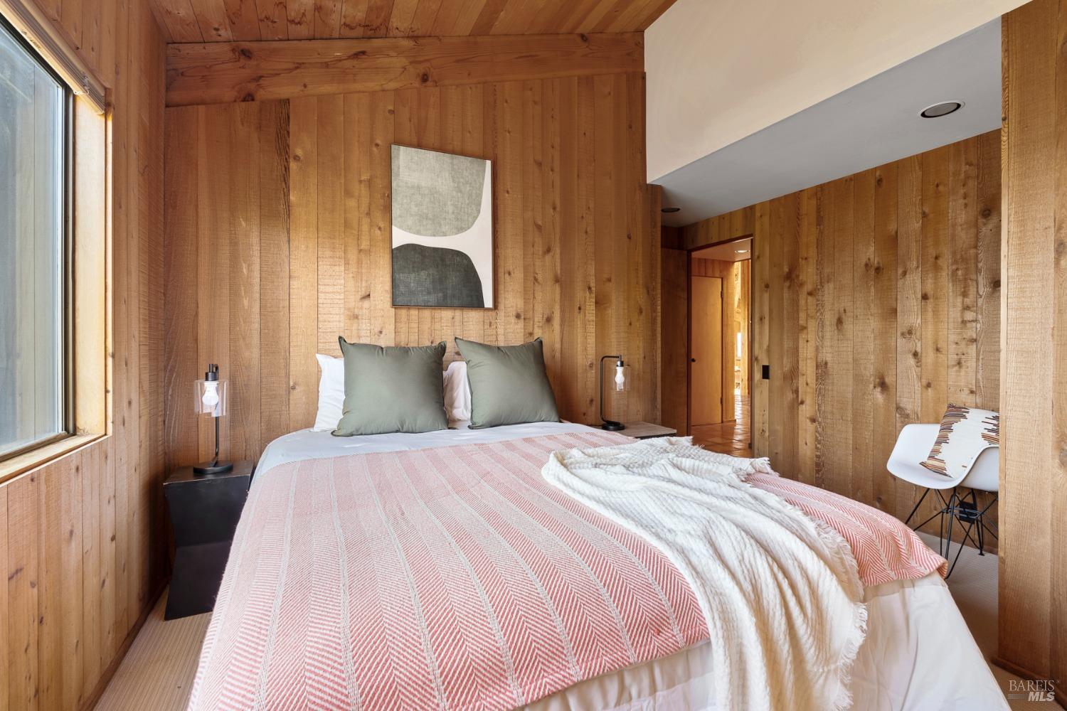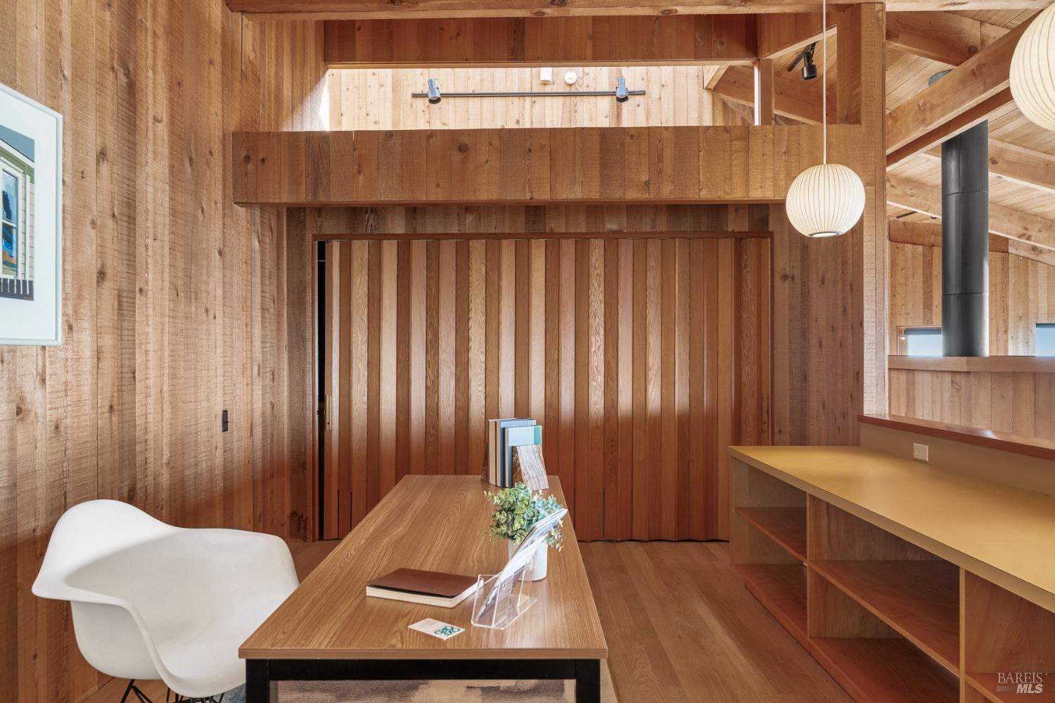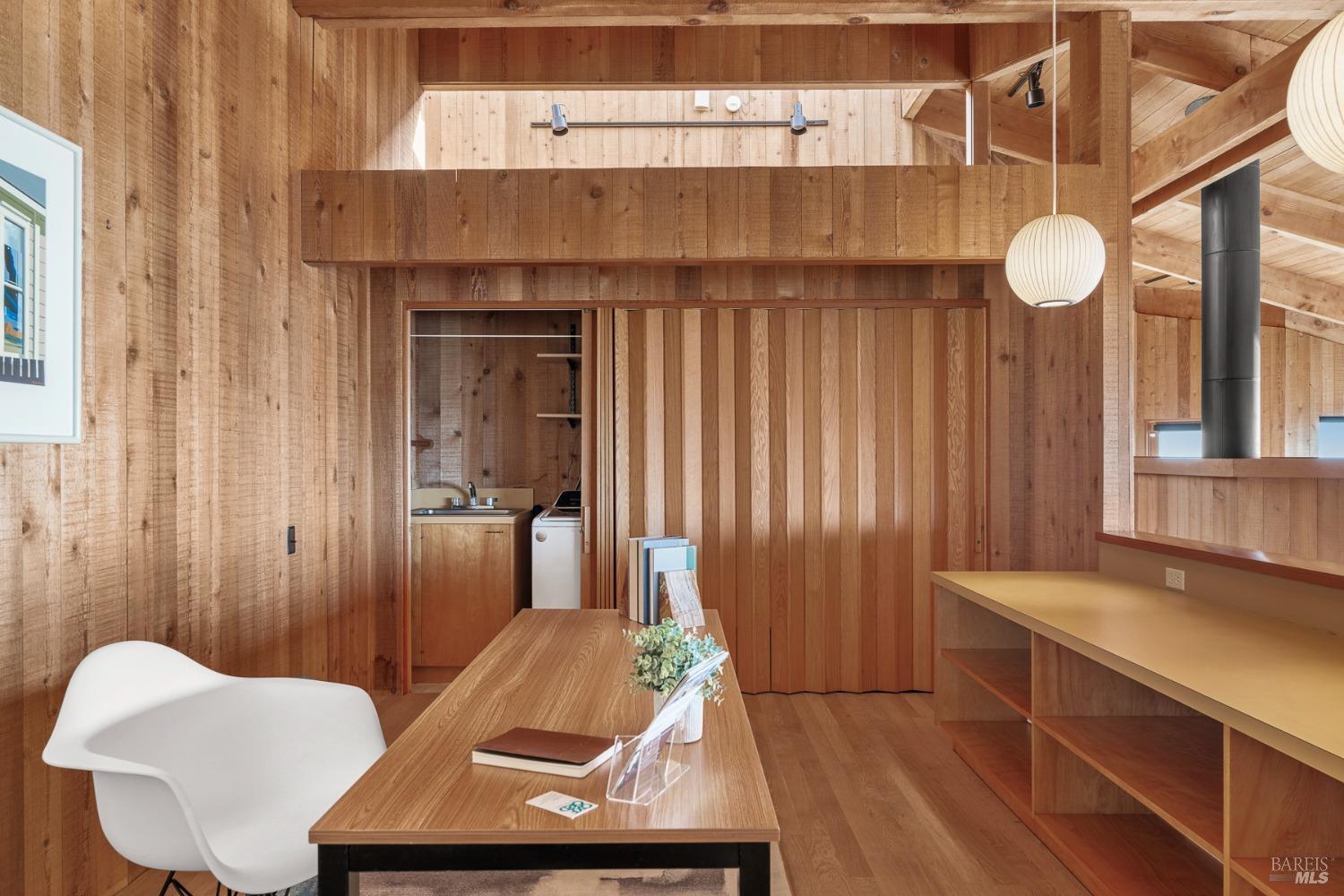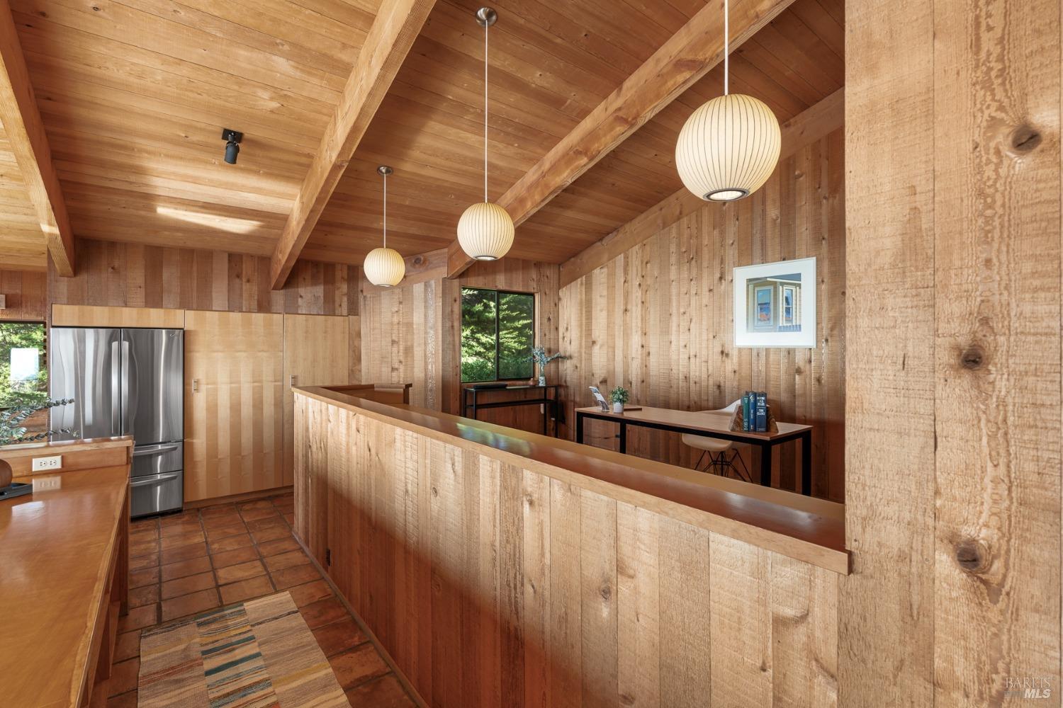 This is your opportunity to buy a classic Sea Ranch home in a fantastic location designed by renowned architect Don Jacobs. Admire the exceptional detail and the craftsmanship by legendary original contractor Matt Sylvia, who built Condo 1, the Lodge, Moonraker Center, and many iconic homes in this unique community. Walking through the sunlit hallway covered with skylights you enter the extensive living/dining/kitchen area with breathtaking panoramic white water views towards Black Point and down the northern coastline all the way to Fish Rock at Anchor Bay. Step down onto the deck and feel like you're on top of the world. The spacious kitchen with high end appliances and built-ins is open to the dining area and a perfect space to entertain family and friends. Off the hallway are two bedrooms and a 12'x 20' Studio. The master bedroom has an updated ensuite bathroom with access to the hot tub deck with ocean view. There is a two-car garage and plenty of guest parking. You are just minutes away from beautiful Black Point Beach, the Sea Ranch Lodge for dining and Moonraker Rec Center with heated pool, sauna and pickle ball court. Whether you enjoy the sunset from your deck or hike the nearby trails, you will be captivated by the peace and quiet of this magical place.
