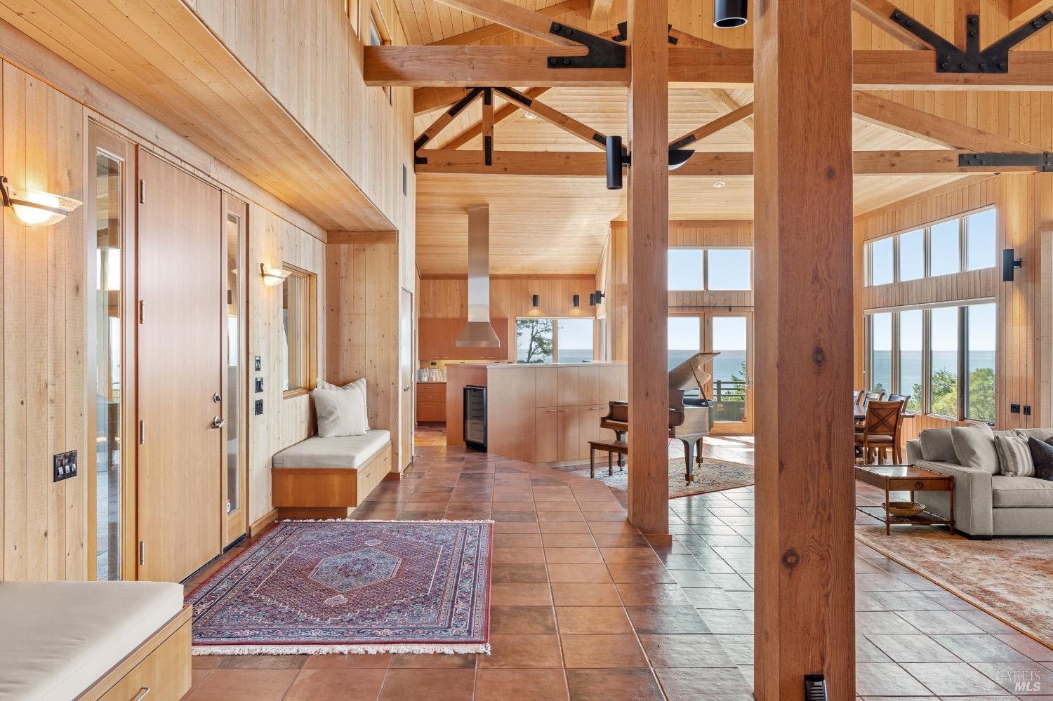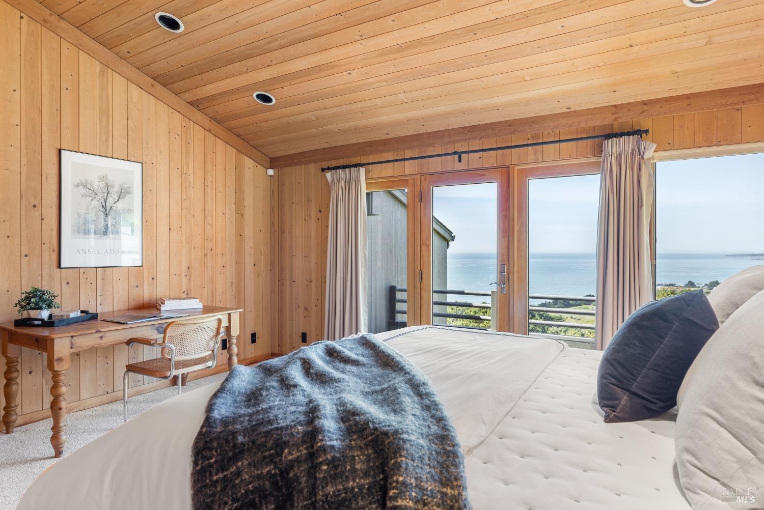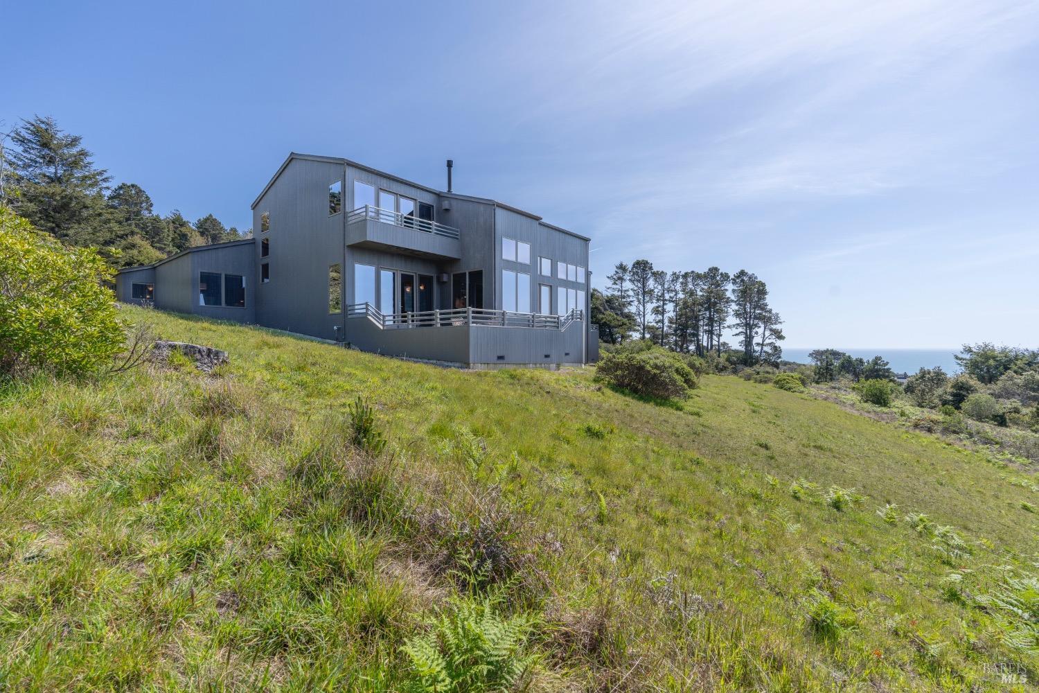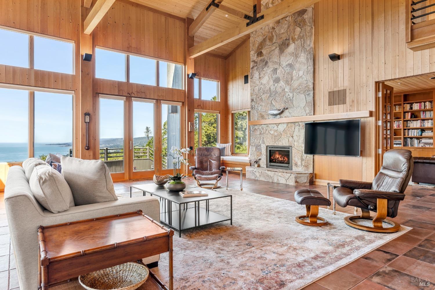 This desirable hillside location, situated at the south end of The Sea Ranch, sits high above Black Point Beach, overlooking the breathtaking Sonoma Coast. Inspiring architecture with captivating ocean views and coastal vistas greet you from the moment you enter. This remarkable 3-bedroom, 3-bathroom residence features an impressive floor plan, exceptional craftsmanship, and meticulous attention to detail throughout. The vertical volume of warm wood finishes and open beam ceilings will amaze you. While grand in space, there are intimate niches throughout the home. The spacious kitchen is filled with natural light and equipped with a Subzero refrigerator/freezer, double ovens, built-in microwave, Thermador warming drawer, double Fisher & Paykel dishwasher drawers, and a Thermador 6-burner gas cooktop with grill, complimented by stainless steel countertop surfaces. The primary bedroom, with an ocean view, evokes calmness and tranquility. The primary bathroom includes a walk-in shower, double vanity countertops on opposite ends, and two walk-in closets. Throughout the home, there are incredible ocean views. Whether craving quiet and calm or entertaining family and friends, 35124 Crow's Nest is the ideal property.