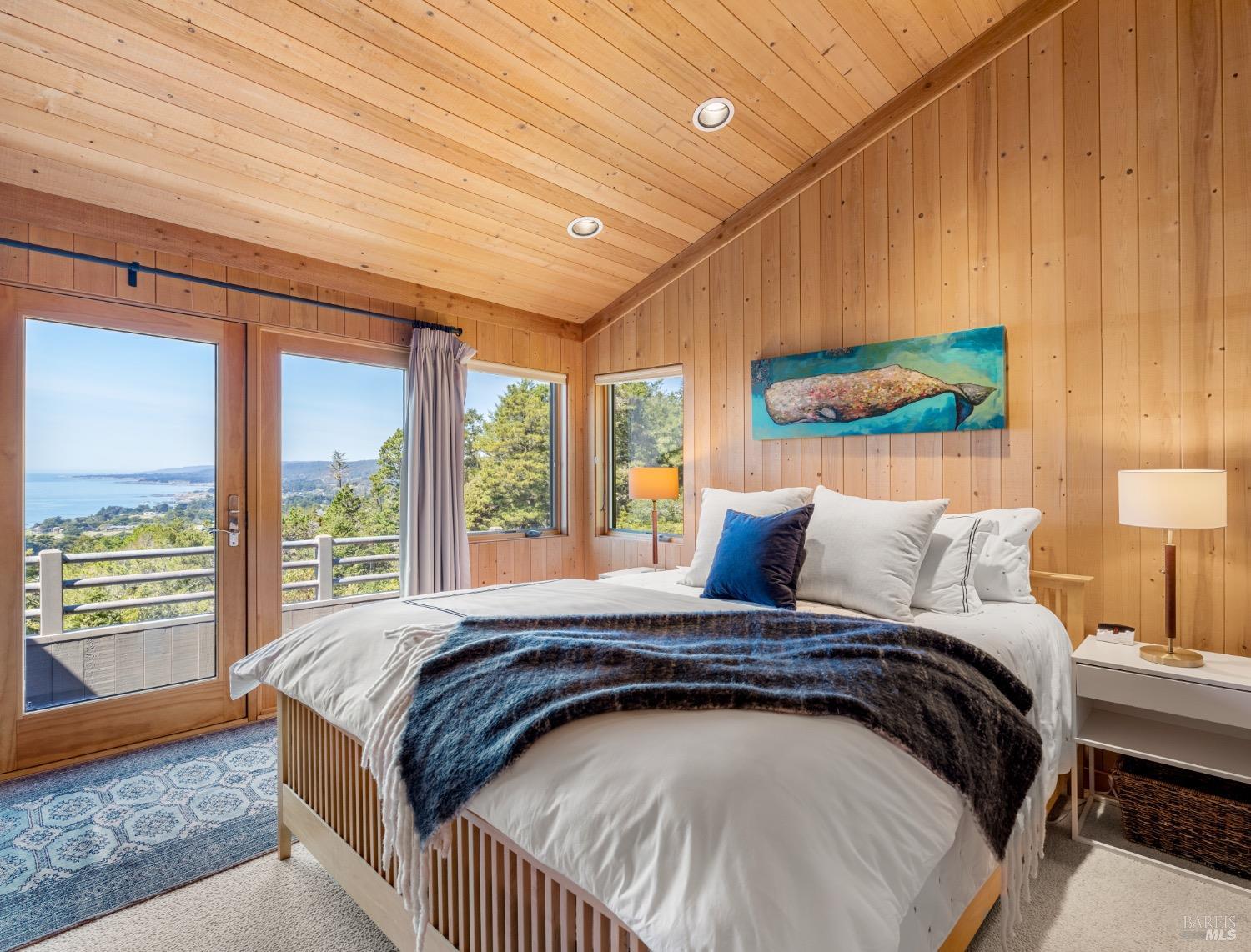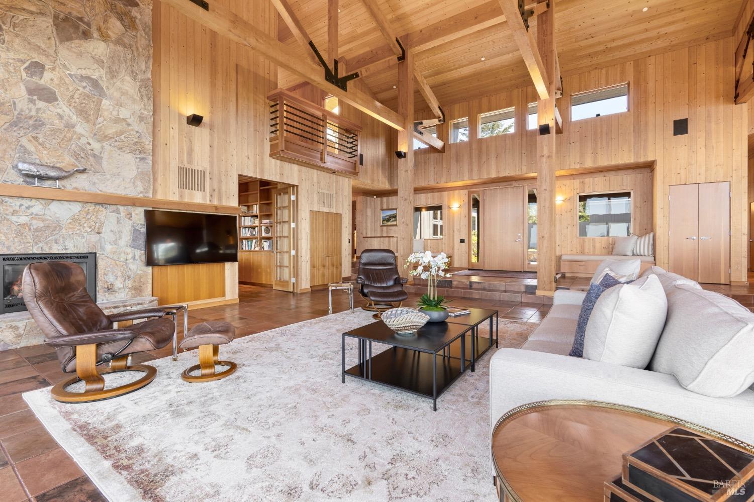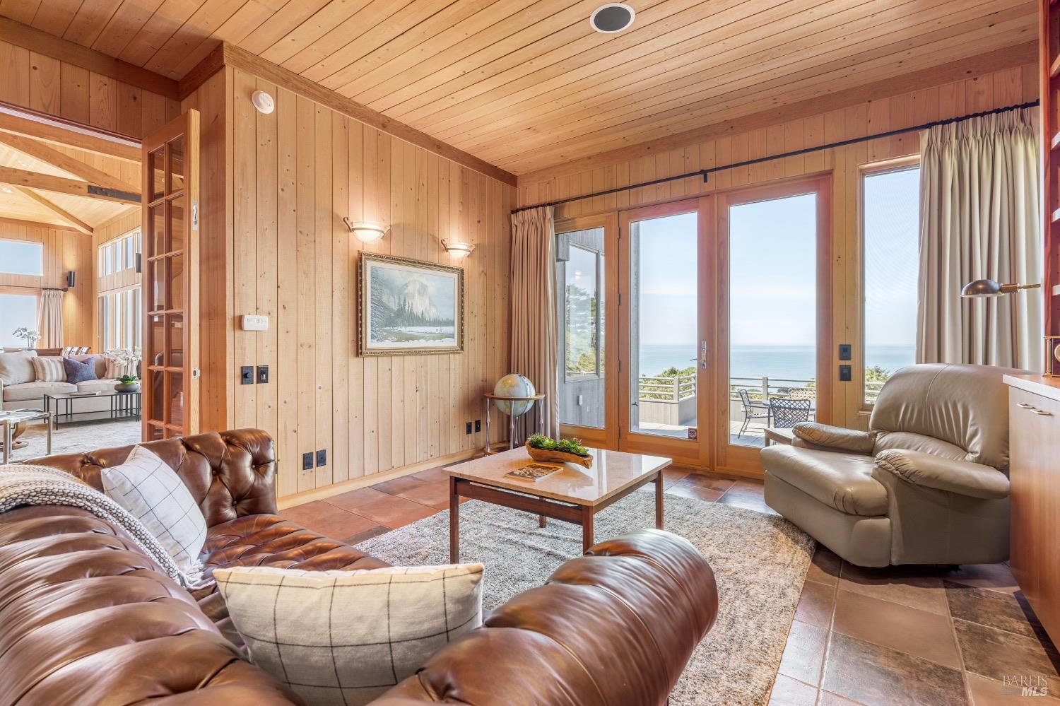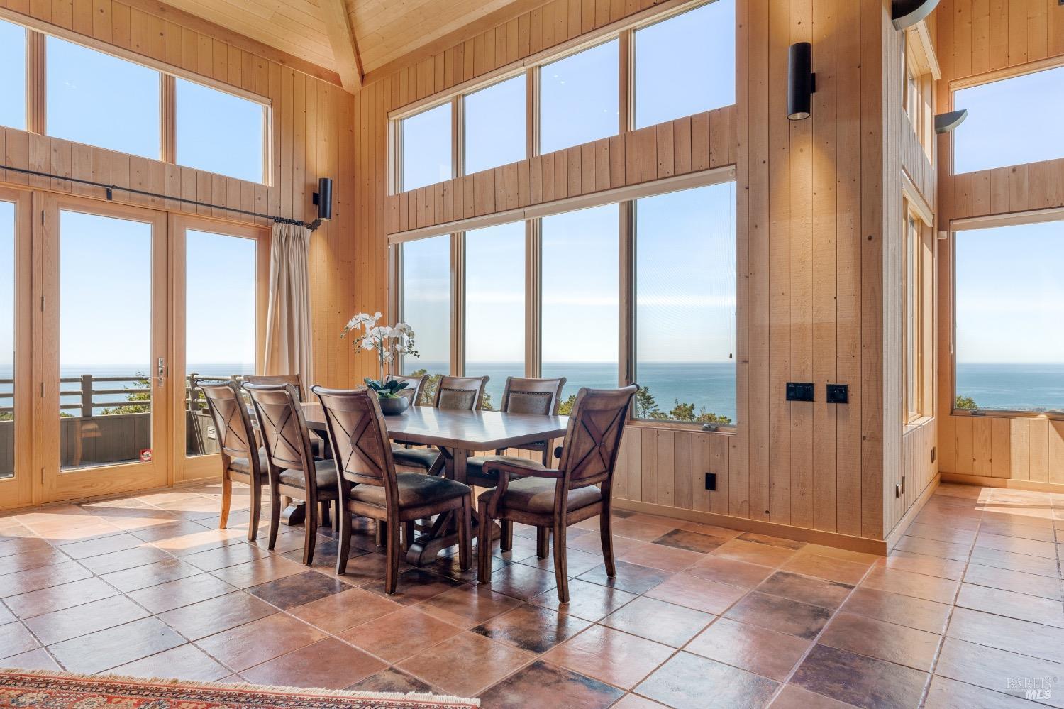 This desirable hillside location, situated at the south end of The Sea Ranch, sits high above Black Point Beach, overlooking the breathtaking Sonoma Coast. Inspiring architecture with captivating ocean views and coastal vistas greet you from the moment you enter. This remarkable 3-bedroom, 3-bathroom residence features an impressive floor plan, exceptional craftsmanship, and meticulous attention to detail throughout. The vertical volume of warm wood finishes and open beam ceilings will amaze you. While grand in space, there are intimate niches throughout the home. The spacious kitchen is filled with natural light and equipped with a Subzero refrigerator/freezer, double ovens, built-in microwave, Thermador warming drawer, double Fisher & Paykel dishwasher drawers, and a Thermador 6-burner gas cooktop with grill, complimented by stainless steel countertop surfaces. The primary bedroom, with an ocean view, evokes calmness and tranquility. The primary bathroom includes a walk-in shower, double vanity countertops on opposite ends, and two walk-in closets. Throughout the home, there are incredible ocean views. Whether craving quiet and calm or entertaining family and friends, 35124 Crow's Nest is the ideal property.