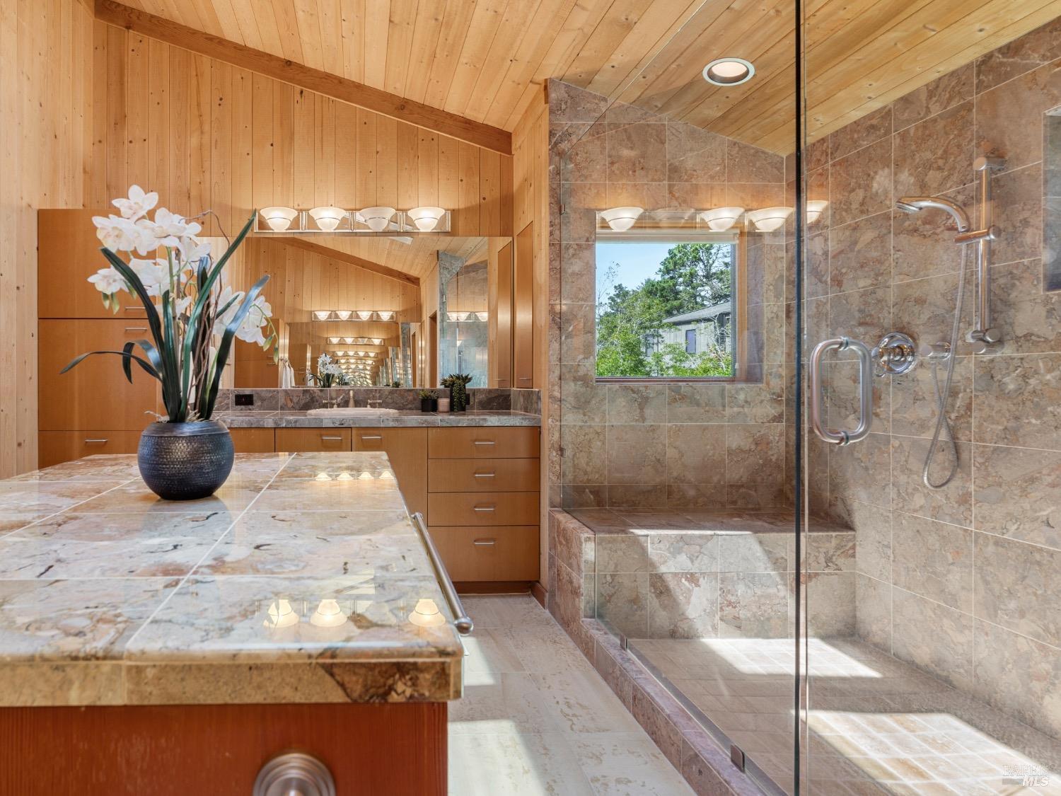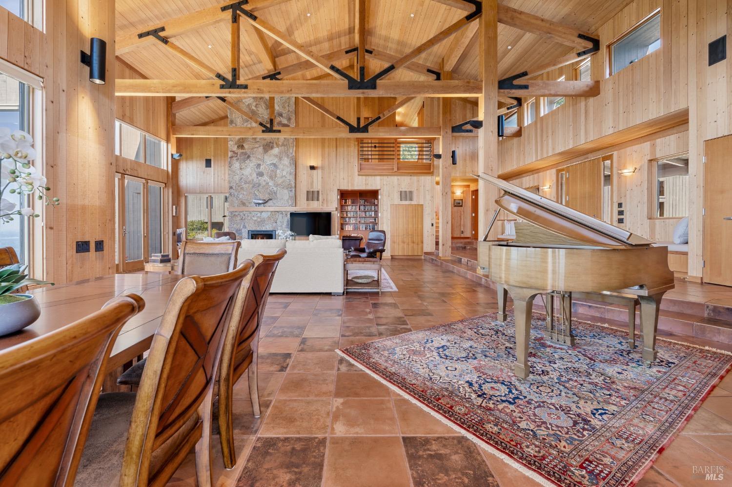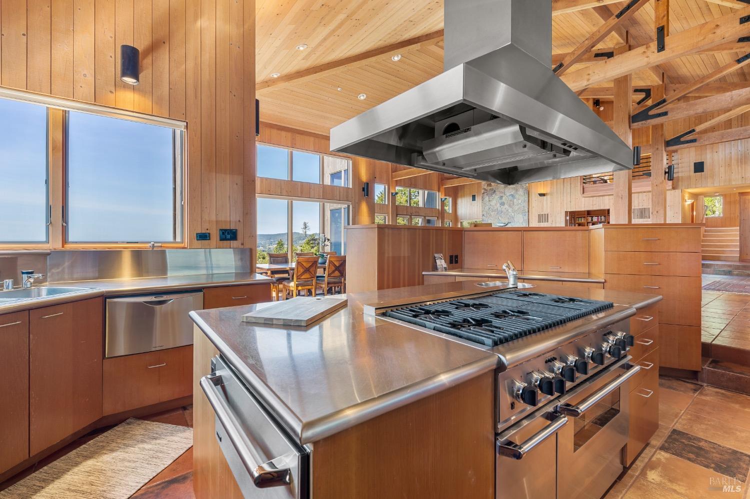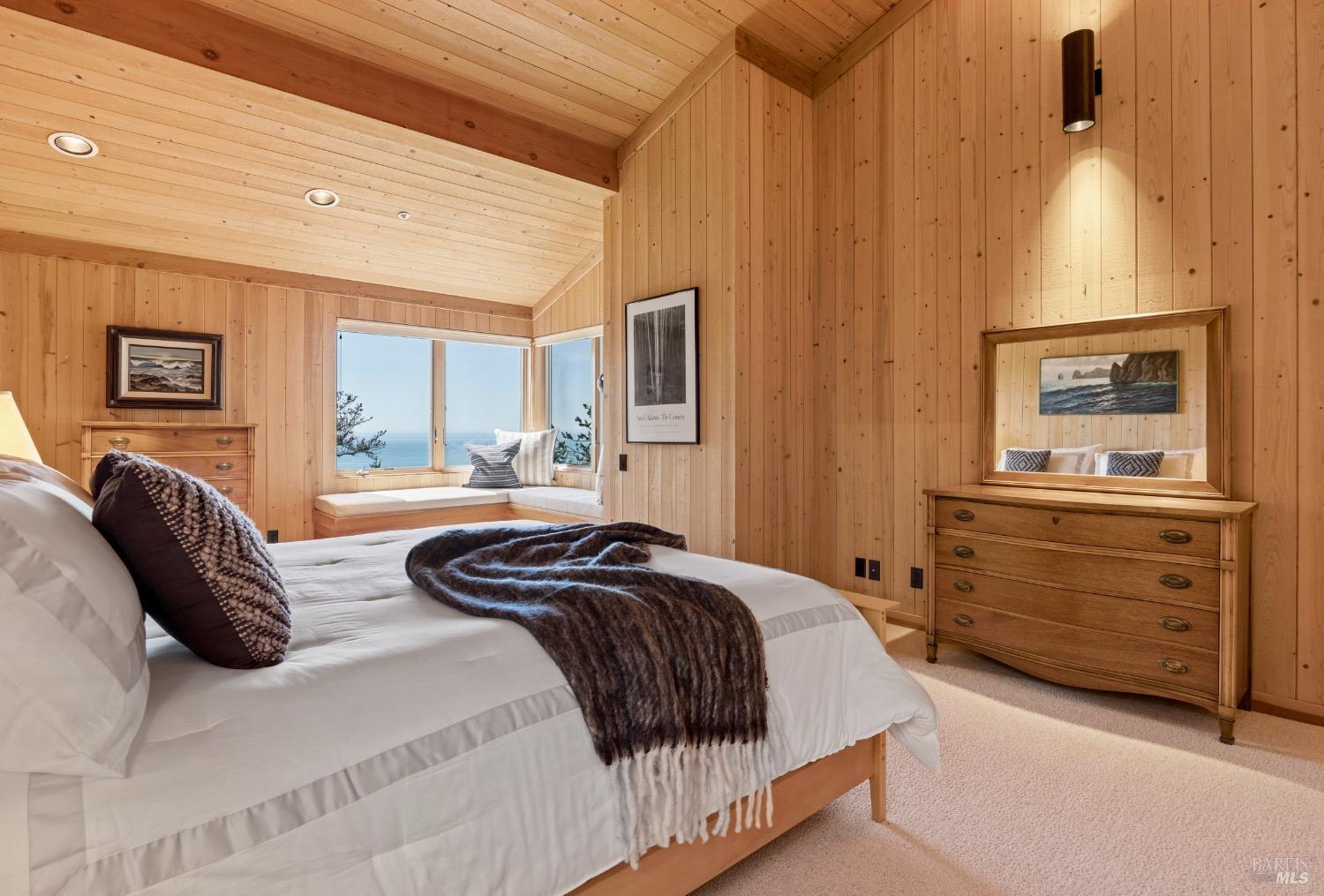 This desirable hillside location, situated at the south end of The Sea Ranch, sits high above Black Point Beach, overlooking the breathtaking Sonoma Coast. Inspiring architecture with captivating ocean views and coastal vistas greet you from the moment you enter. This remarkable 3-bedroom, 3-bathroom residence features an impressive floor plan, exceptional craftsmanship, and meticulous attention to detail throughout. The vertical volume of warm wood finishes and open beam ceilings will amaze you. While grand in space, there are intimate niches throughout the home. The spacious kitchen is filled with natural light and equipped with a Subzero refrigerator/freezer, double ovens, built-in microwave, Thermador warming drawer, double Fisher & Paykel dishwasher drawers, and a Thermador 6-burner gas cooktop with grill, complimented by stainless steel countertop surfaces. The primary bedroom, with an ocean view, evokes calmness and tranquility. The primary bathroom includes a walk-in shower, double vanity countertops on opposite ends, and two walk-in closets. Throughout the home, there are incredible ocean views. Whether craving quiet and calm or entertaining family and friends, 35124 Crow's Nest is the ideal property.