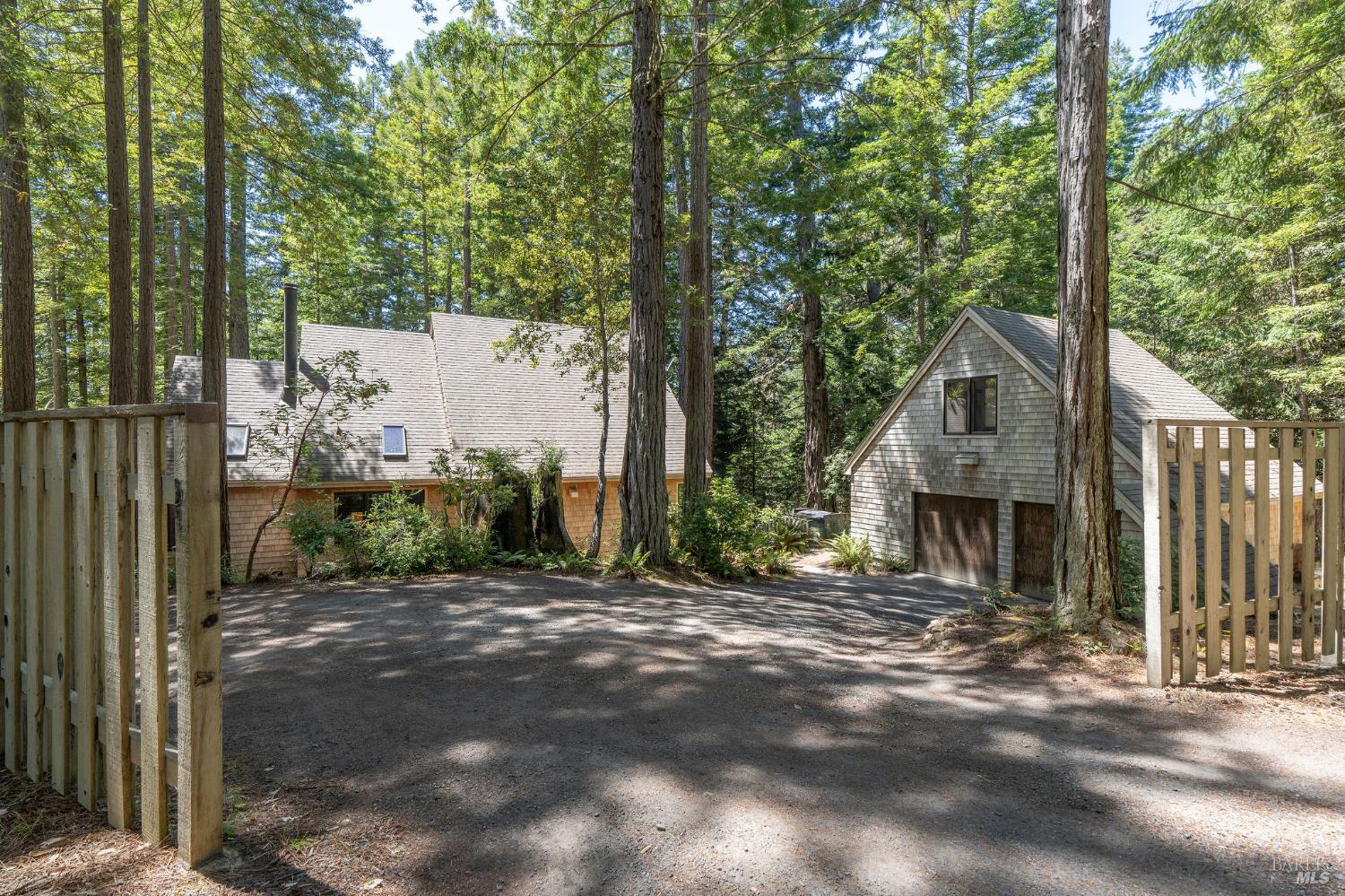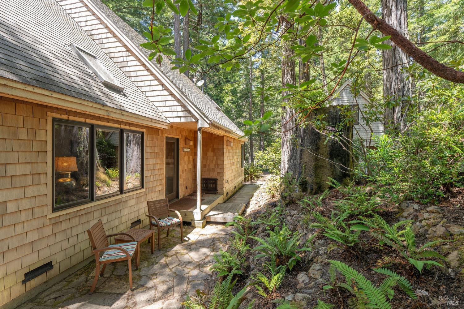 In near perfect condition and ready for full time/part time Sea Ranch living, vacation rental/investment or second home. Three bedroom/2.5 baths with guest unit/studio above the garage with half bath and sink/refrigerator. Cozy East Side living where natural wood, cathedral ceilings, and attached deck provide access to wildlife viewings, glorious redwoods and a sense of commune with nature. Interior family room off dining connected by French doors where windows invite the outside in. Builder was meticulous, incorporating quality, functionality and eco-friendly materials to create a sustainable home. Fifty miles of hiking trails, private beaches and starlit skies create the magic known as The Sea Ranch.