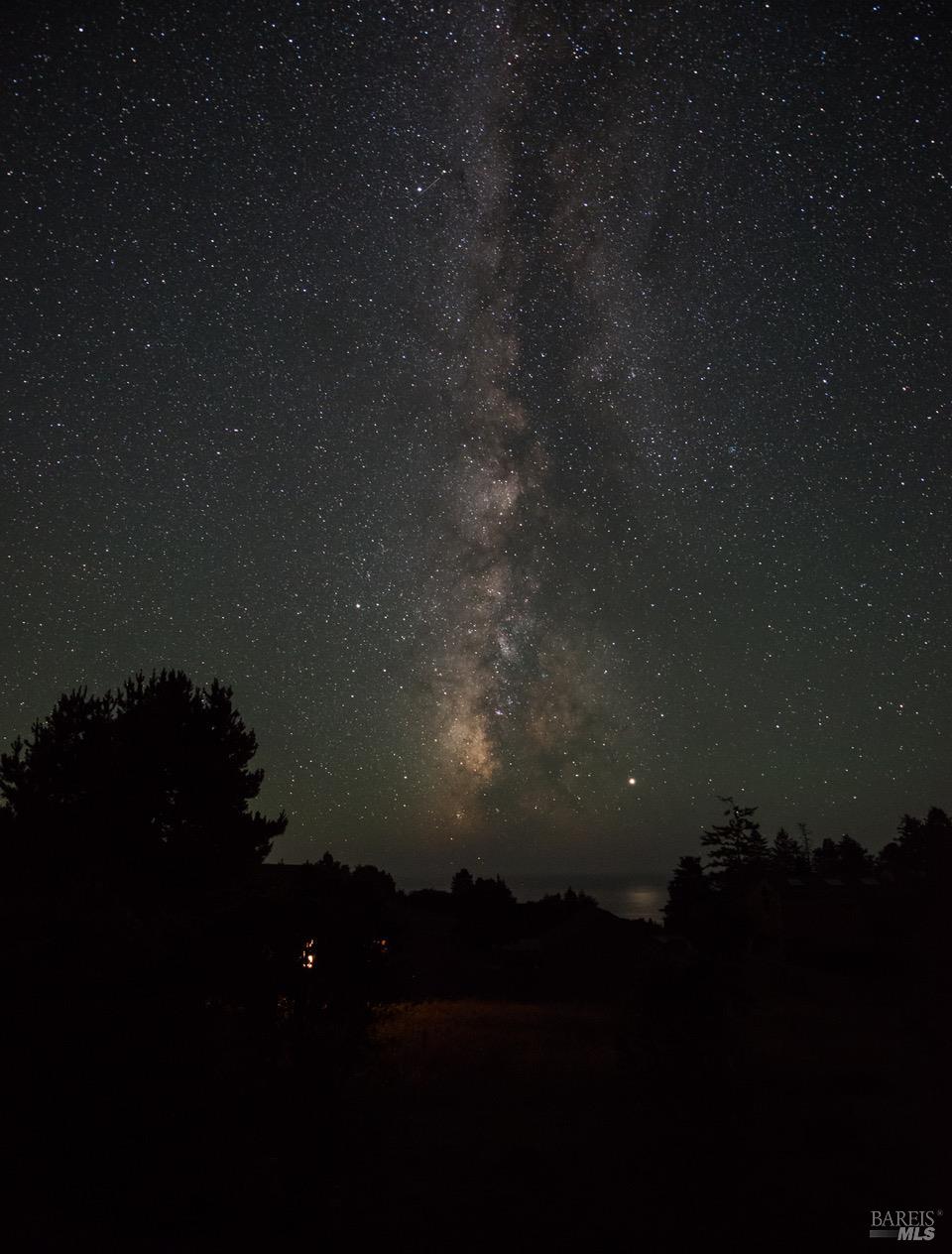 Derived from the rugged beauty presented by The Sea Ranch hillside, this two-bedroom, two-and-a-half-bathroom residence is thoughtfully designed to showcase sweeping Pacific Ocean views through a modern interpretation of classic farmhouse architecture. Featuring a contemporary reverse floor plan, the elevated second story offers an open-concept living, dining, and entertaining space beneath a striking wine-barrel ceilingcreating a warm, welcoming ambiance framed by the ever-changing landscape of Northern Sonoma's coastal skyline. With its proximity to world-class hiking trails and dense redwood forests, this home truly offers the wonders of nature at your very fingertips. Purposefully envisioned for its hillside setting, the home features a covered deck and walkway leading to a two-car garage, offering protection from the coastal elements. With two en-suite bedrooms located on the lower level, the floor plan ensures a balance of private retreat and everyday livability. Expansive sliding glass doors offer separate entrances and foster a seamless connection to the surrounding natural environment.
