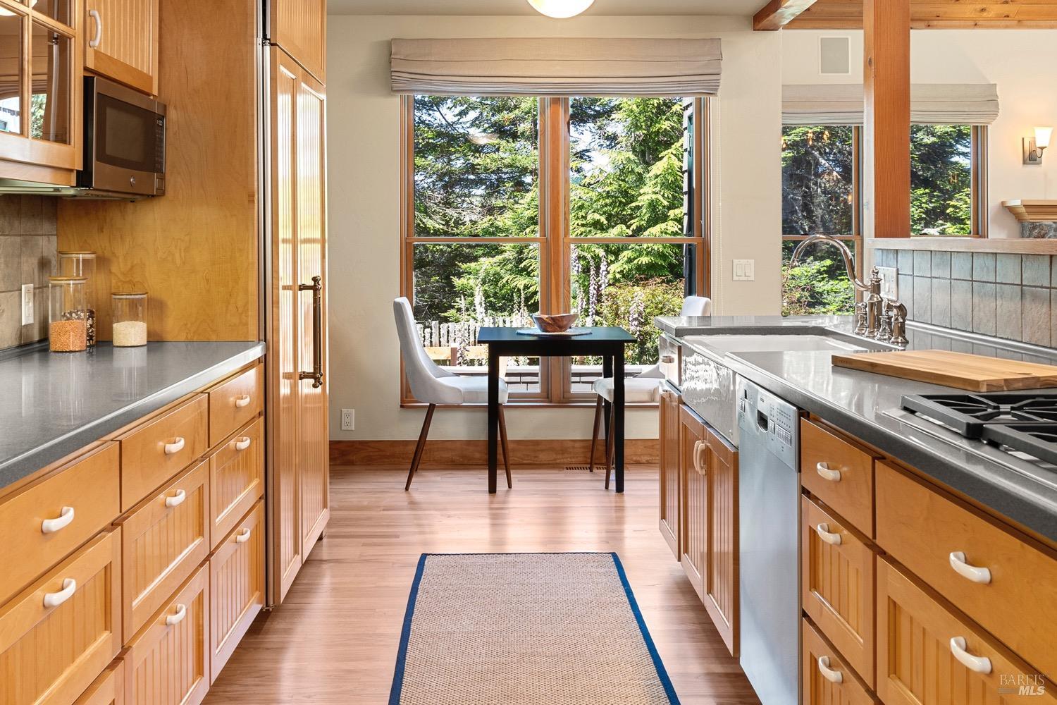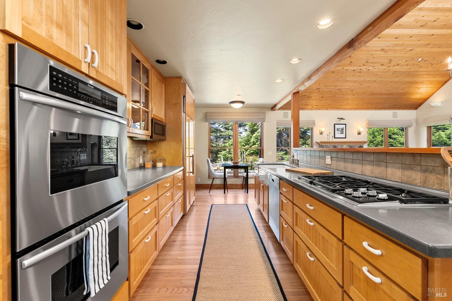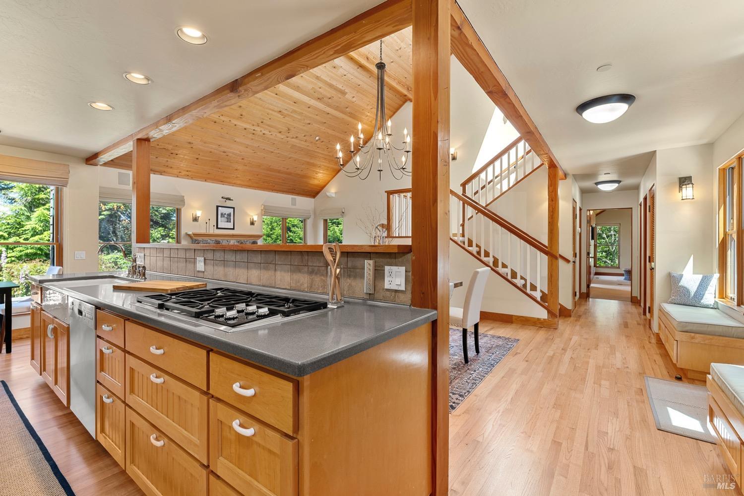 The magic of full sun exposure at this east meadow site awaits. Sought after neighborhood location buffered by commons to the north. For sale for the first time. Pride of ownership by original owner who had this 3 bedroom home designed by Brodie Architecture & Design. Designed and quality built for full-time living with a detached 2 car garage, plus an attached oversized single car garage. The interior of this home was designed for flow, function and openness with vaulted ceilings constructed of warm wood finishes. The kitchen is equipped with Sub-Zero refrigeration, double ovens by Thermador, a five burner Wolf gas cooktop and a high efficiency Bosch dishwasher. An automatic whole house generator and circulating pump for consistent hot water, makes full-time living comfortable year round. Enjoy peace and solitude on the deck overlooking the gardens. There is even a side yard to accommodate your family pup. Nearby trails allow you to easily explore the hillside, forest and The Hot Spot along the south fork of the Gualala River. The trails along Annapolis Road & nearby off of Pilot's Reach, provide access to the west side of The Sea Ranch for access to meadow trails, the bluff top trail & Pebble Beach. Don't miss this opportunity to own a Brodie Design in a special neighborhood.