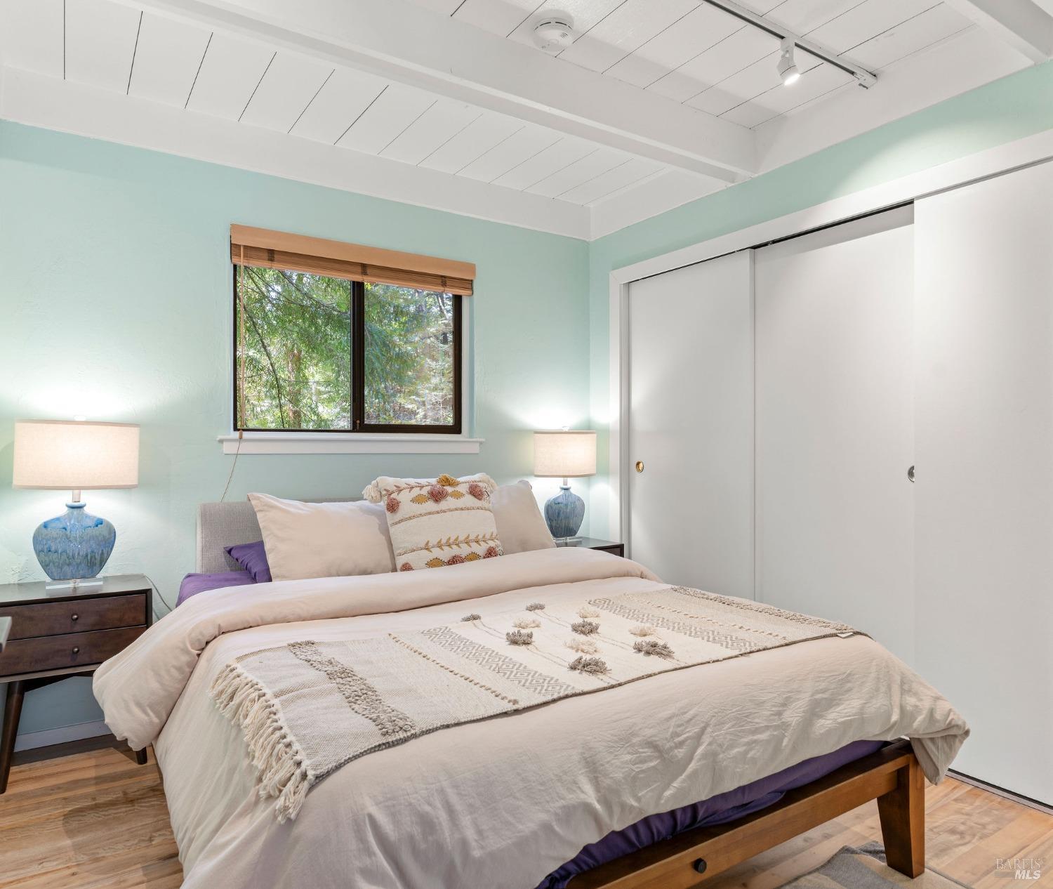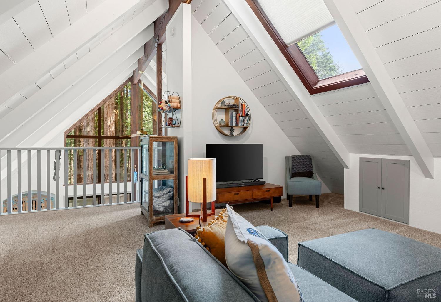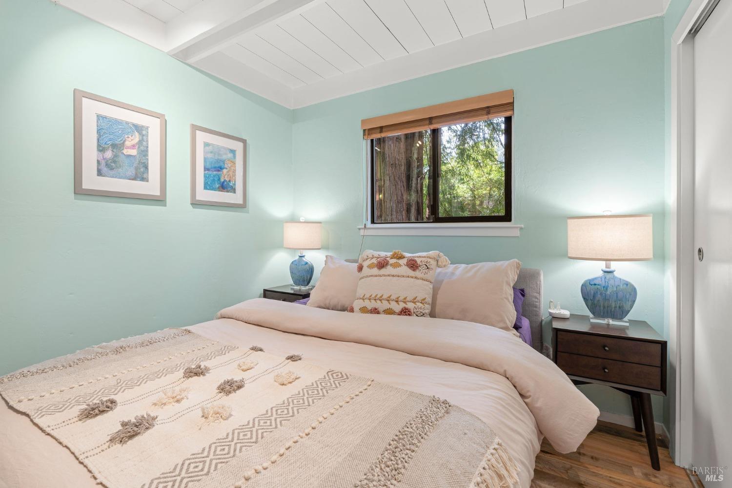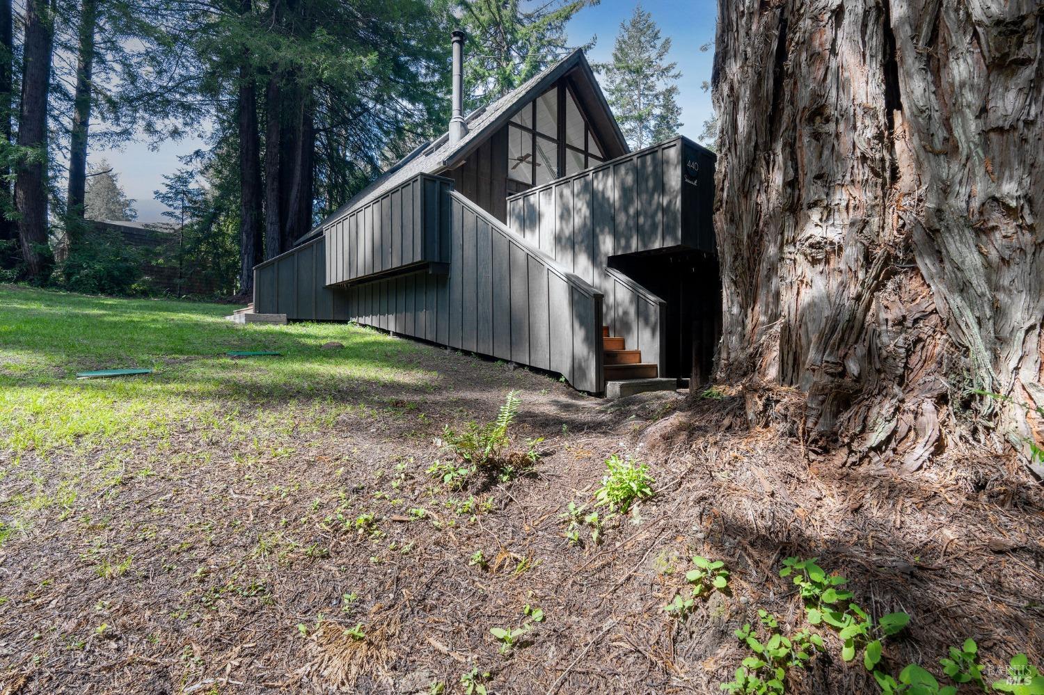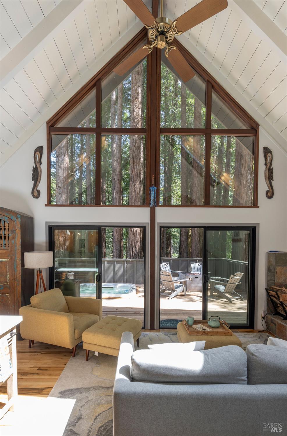Tranquility Awaits at the Dancing Raven in The Sea Ranch. Nestled among towering redwoods and enchanting fairy rings, this charming 2-bedroom, 1-bathroom A-frame offers a serene retreat. Ideally positioned between the Pacific Ocean and the Gualala River, a scenic trail behind the home provides easy access to both. Inside, soaring ceilings create an airy, open feel, while recent upgrades including new interior doors, a brand-new deck, and a built-in hot tub enhance both comfort and style. A spacious loft offers flexible living space, perfect for a home office, guest area, or artist studio. The Sea Ranch community is serviced by underground utilities, including high-speed fiber optic internet (this home operates on a septic system). Residents enjoy a wealth of amenities, such as 50+ miles of trails, three recreational centers with outdoor heated pools, tennis and pickleball courts, security, and fire station. Experience the magic of coastal living at Dancing Raven where nature, comfort, and community come together.
