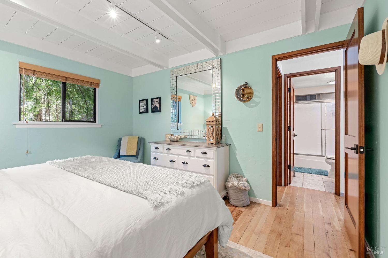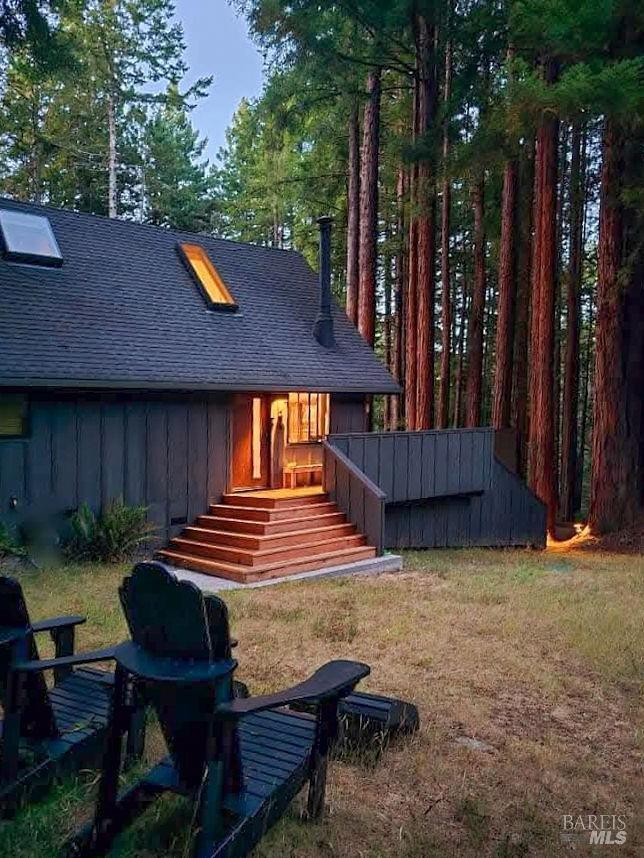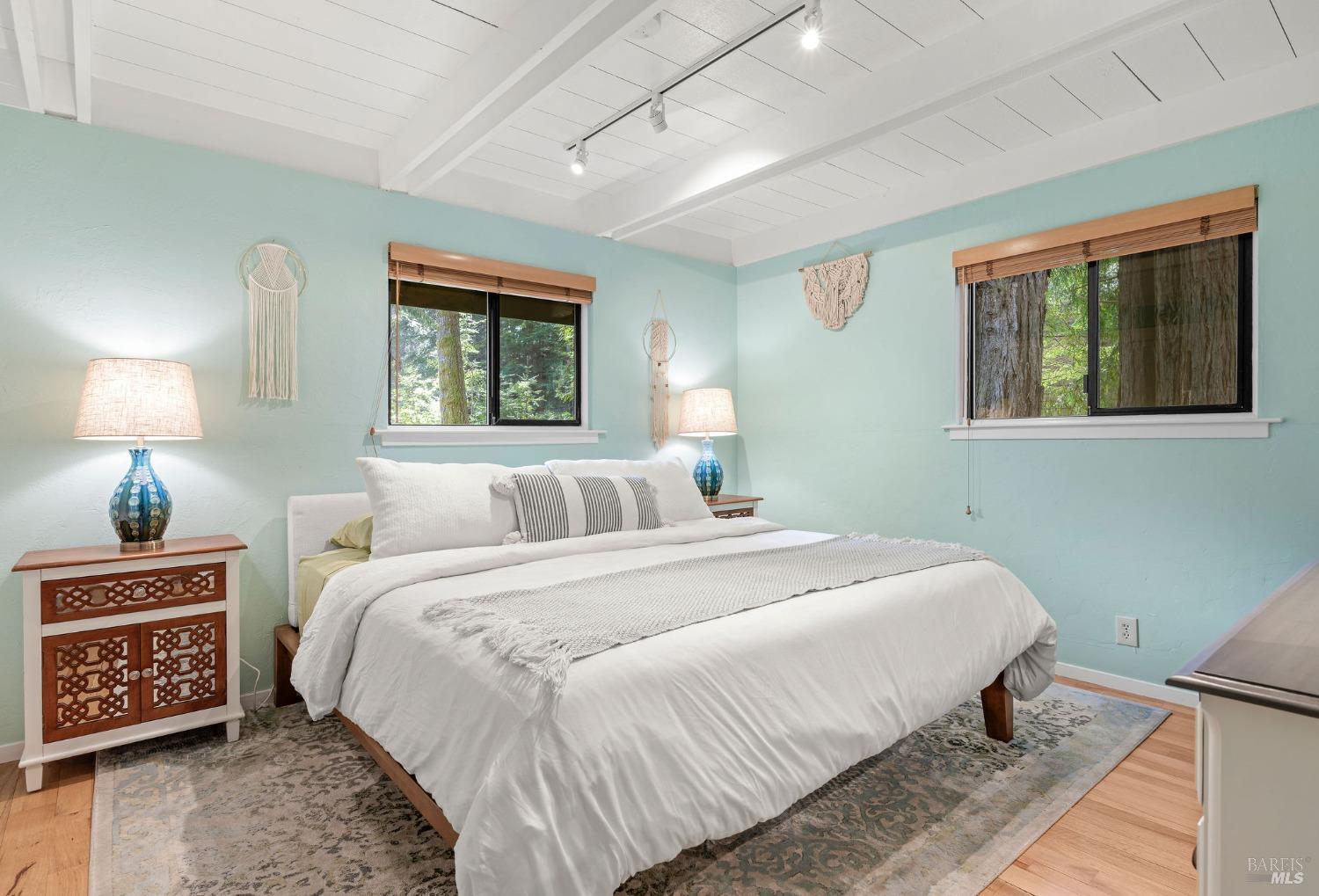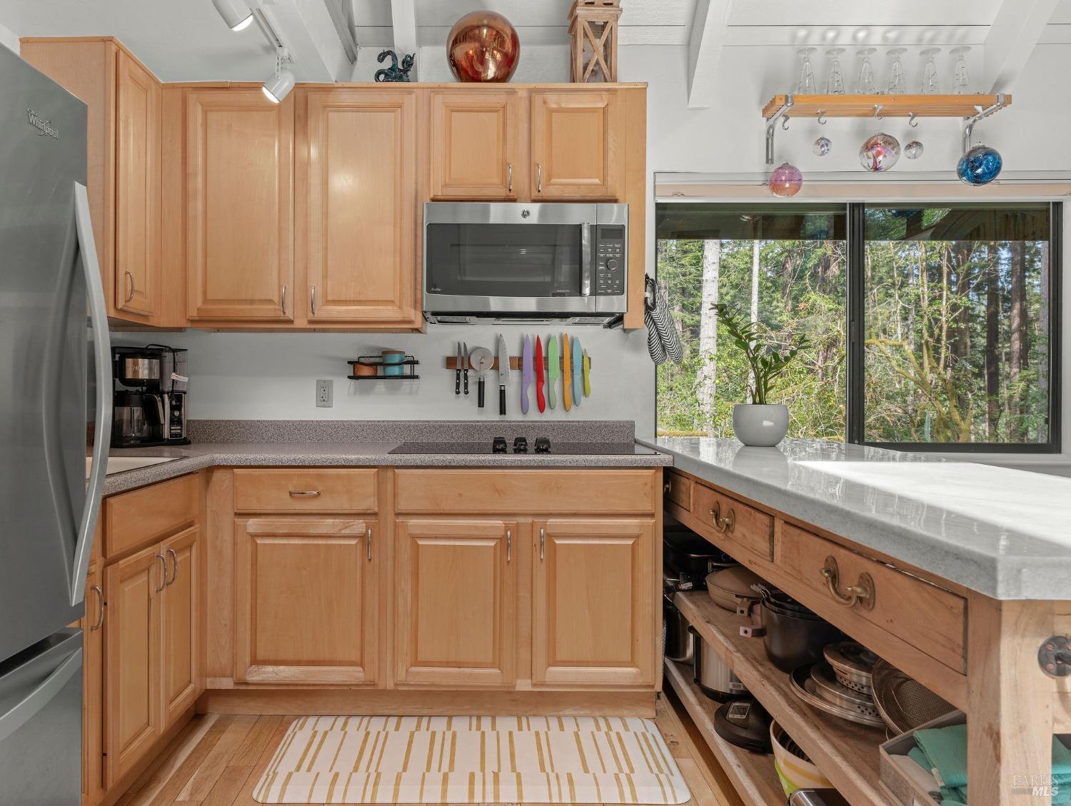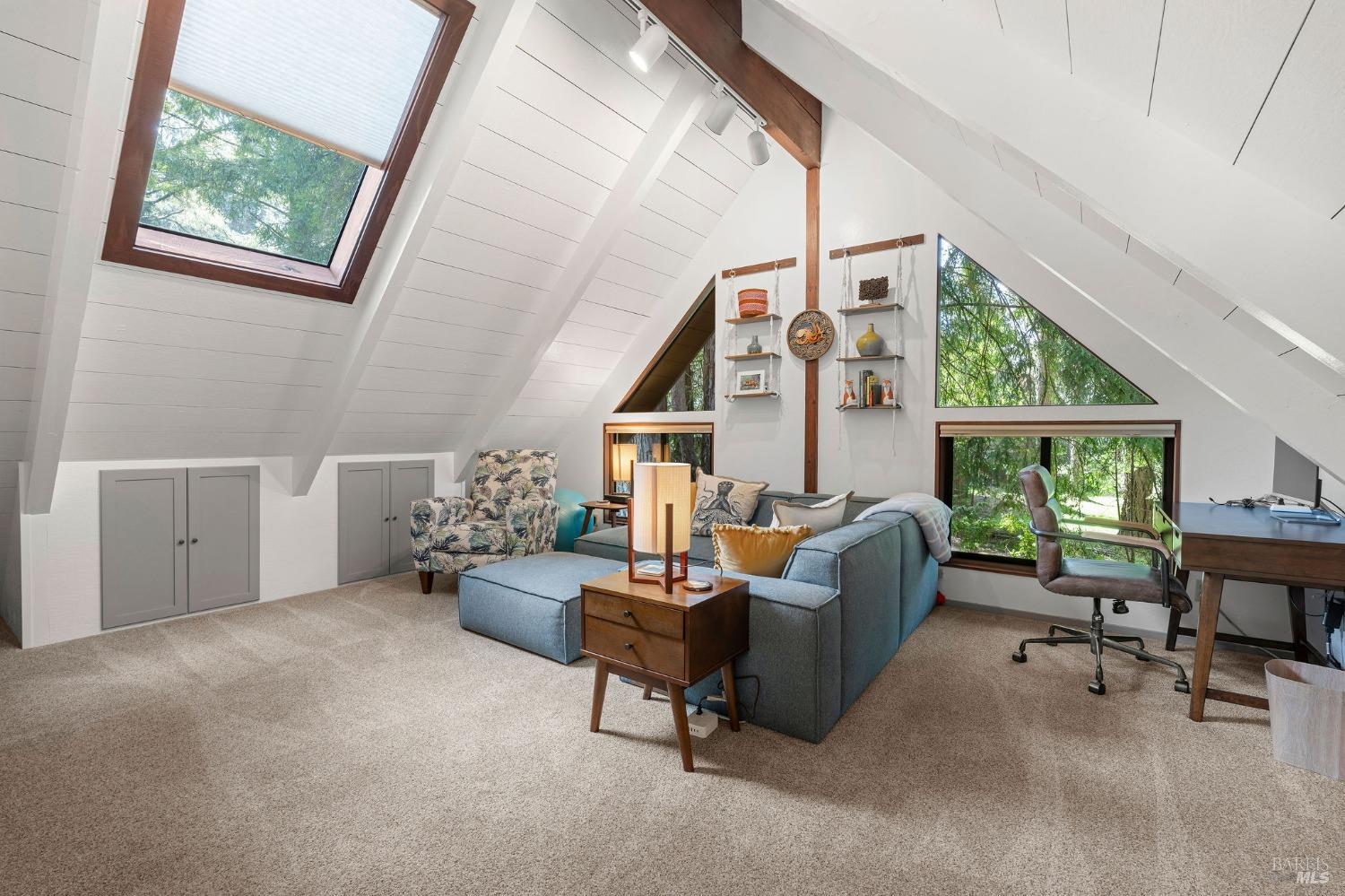 Tranquility Awaits at the Dancing Raven in The Sea Ranch. Nestled among towering redwoods and enchanting fairy rings, this charming 2-bedroom, 1-bathroom A-frame offers a serene retreat. Ideally positioned between the Pacific Ocean and the Gualala River, a scenic trail behind the home provides easy access to both. Inside, soaring ceilings create an airy, open feel, while recent upgrades including new interior doors, a brand-new deck, and a built-in hot tub enhance both comfort and style. A spacious loft offers flexible living space, perfect for a home office, guest area, or artist studio. The Sea Ranch community is serviced by underground utilities, including high-speed fiber optic internet (this home operates on a septic system). Residents enjoy a wealth of amenities, such as 50+ miles of trails, three recreational centers with outdoor heated pools, tennis and pickleball courts, security, and fire station. Experience the magic of coastal living at Dancing Raven where nature, comfort, and community come together.