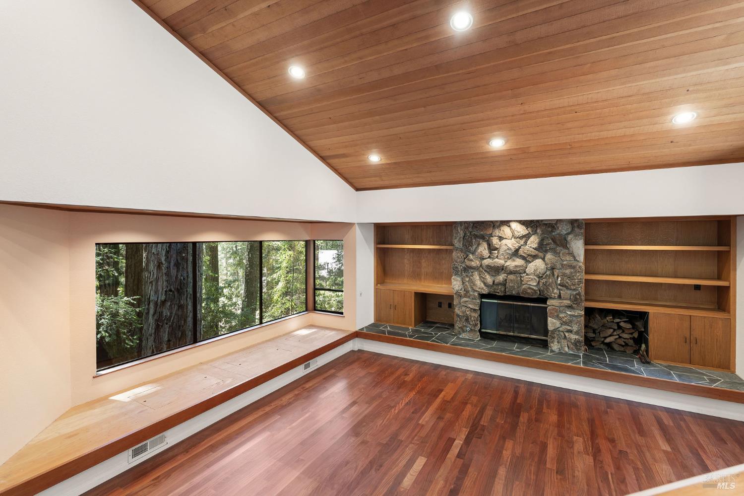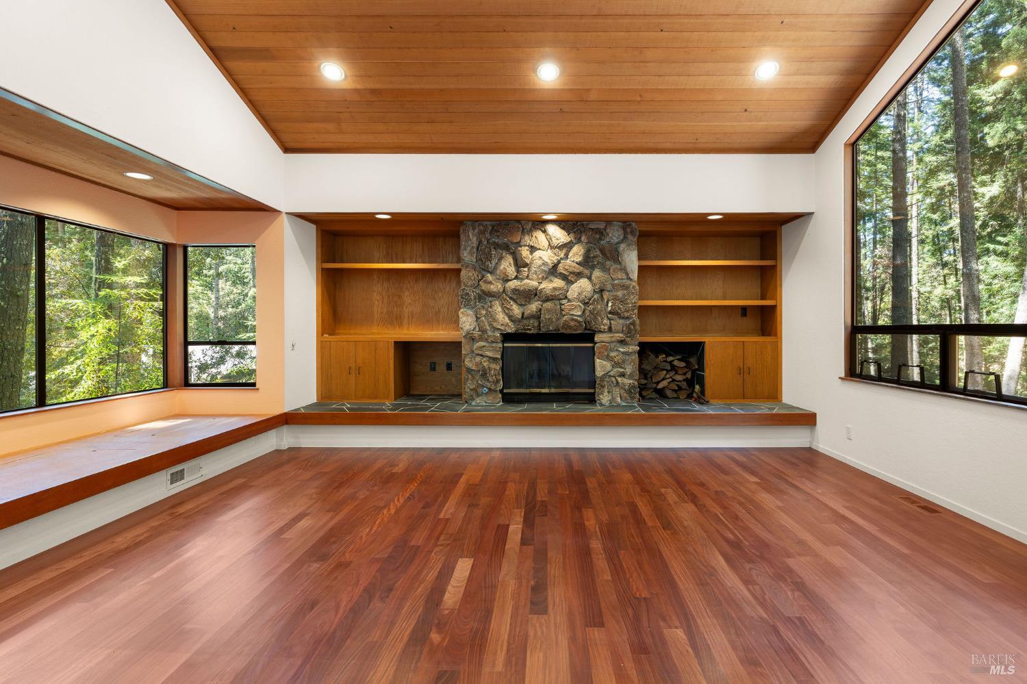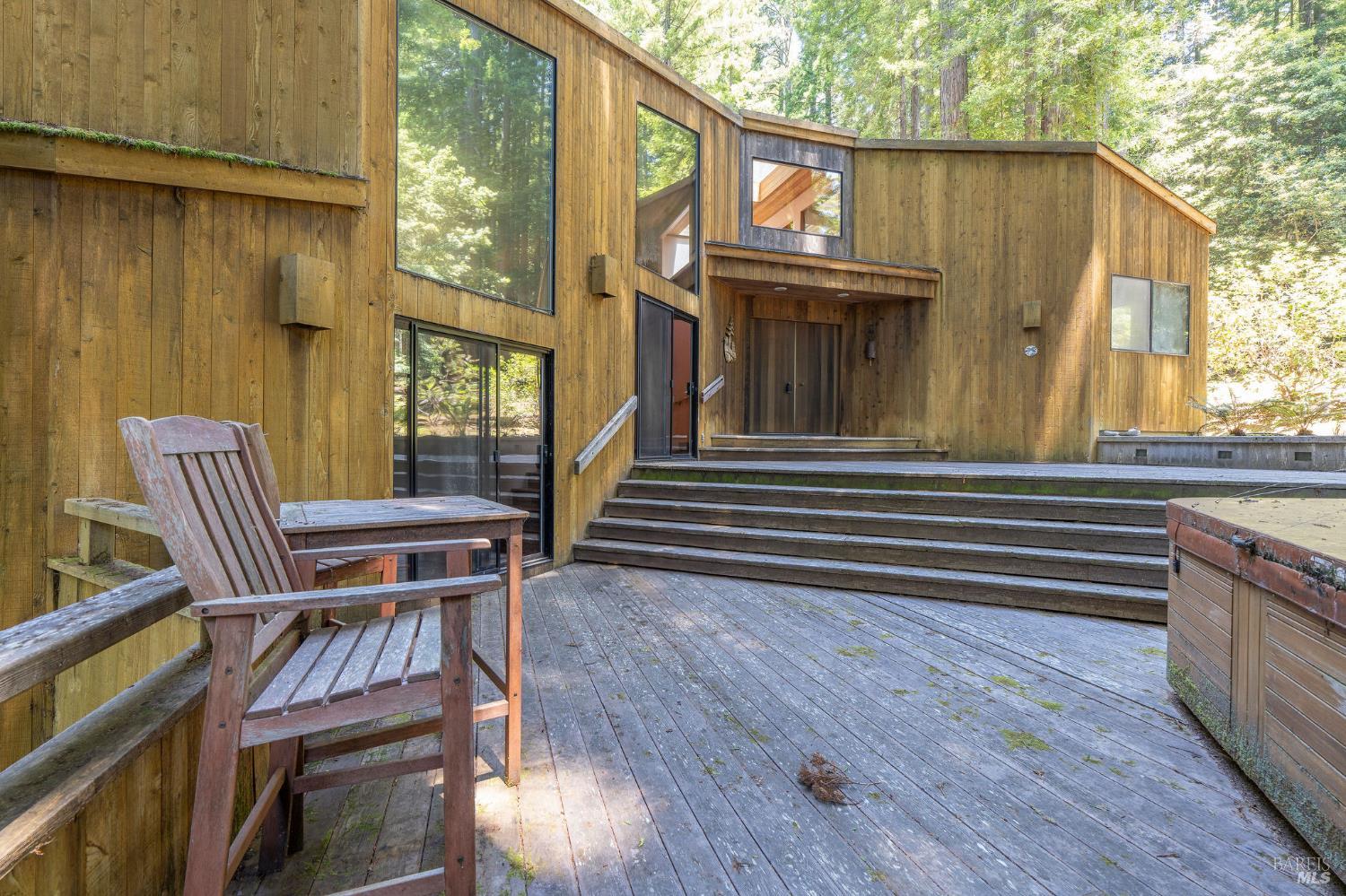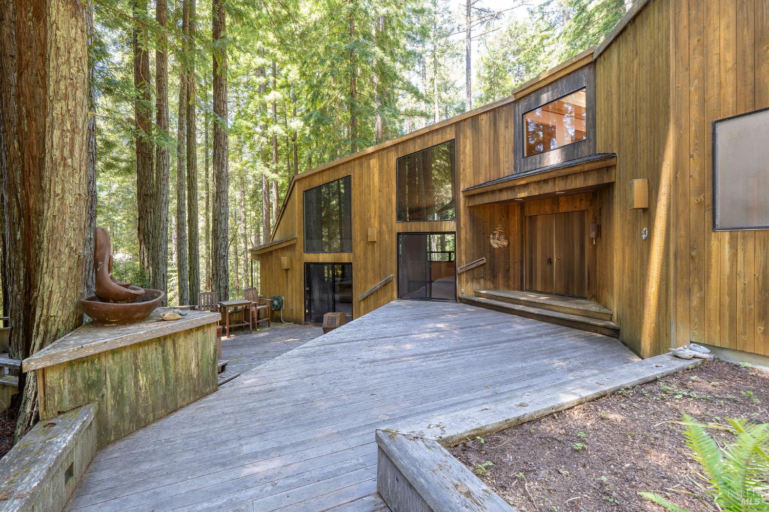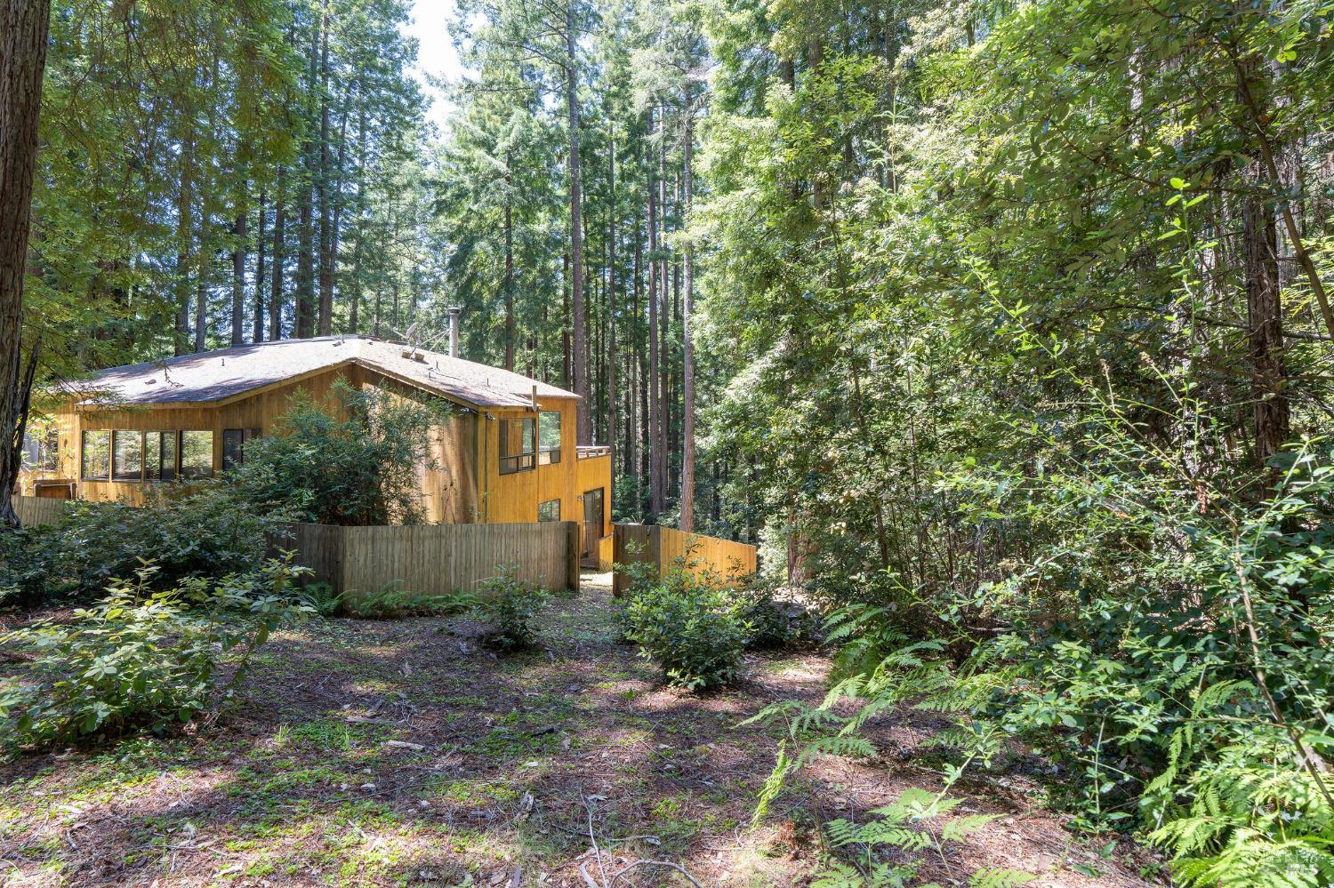 Discover this grand and spacious hillside sanctuary nestled privately among towering redwoods in the coveted Sea Ranch community. This 3 bedroom/3 bathroom property offers the perfect blend of natural beauty and comfortable living, awaiting your personal touch to restore it to its full splendor. INTERIOR FEATURES: Stunning Santos Mahogany hardwood floors; Dramatic living room with built-in window seats, soaring cathedral ceilings, and cozy fireplace; Primary bedroom retreat featuring a second fireplace for ultimate relaxation; Generous game room on the lower level, ideal for recreation and entertaining; Abundant natural light streaming through strategically placed skylights and oversized windows. OUTDOOR LIVING: Expansive entertaining deck, perfectly positioned among the majestic redwoods; Private hillside setting offering tranquility and seclusion; Seamless indoor-outdoor living ideal for California's coastal lifestyle; Fenced in backyard perfect for your 4 legged companion(s). Sea Ranchers enjoy a wealth of amenities, including 50+ miles of trails, three recreational centers with outdoor heated pools, tennis/pickleball courts, security, and a fire station.