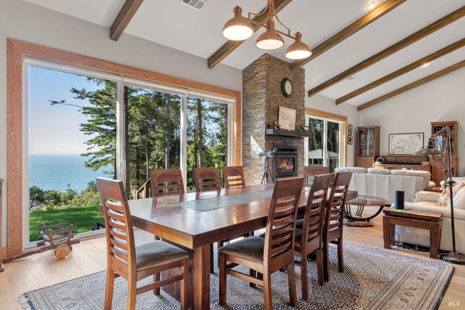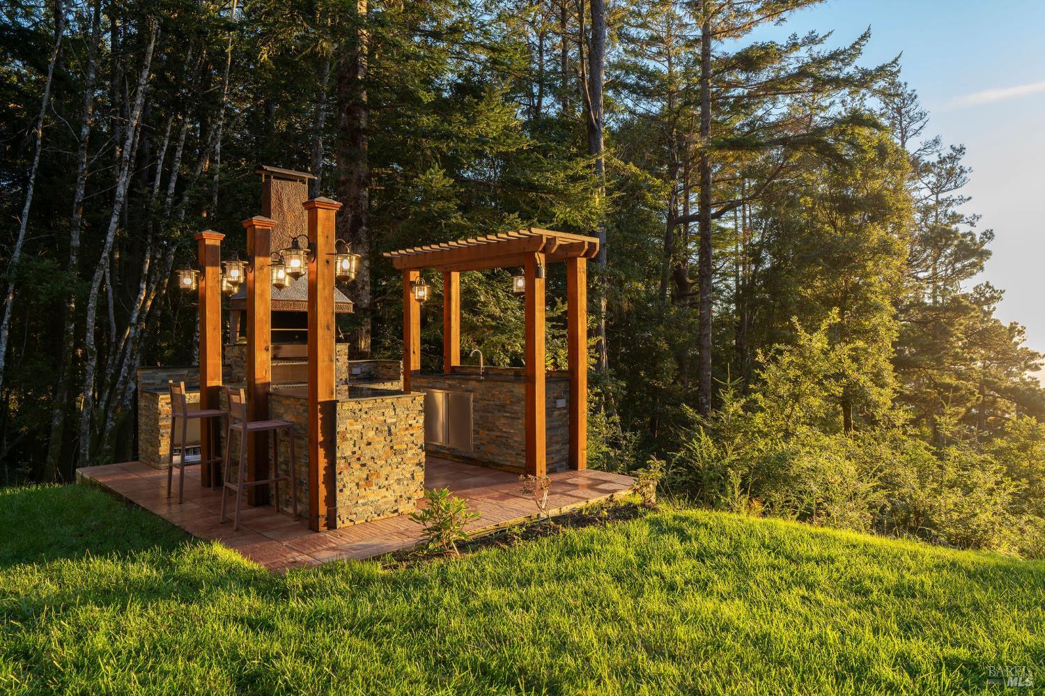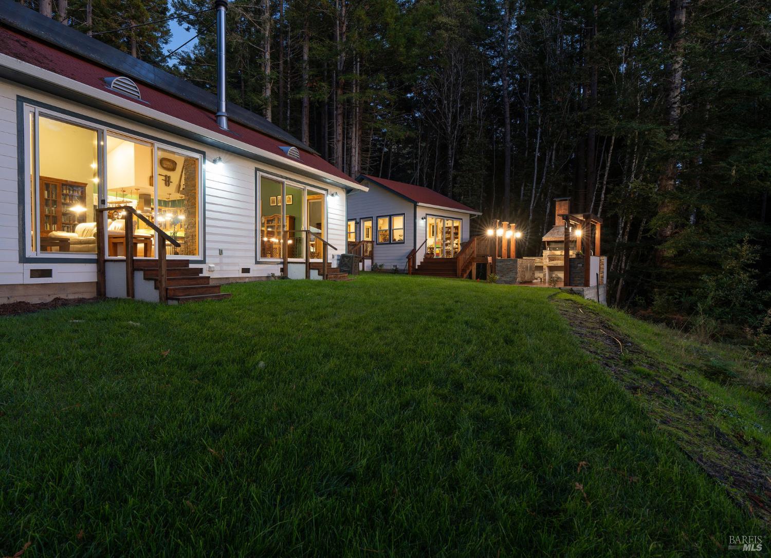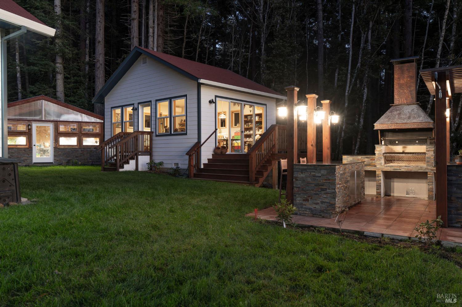 Exceptional 4-acre private estate offered for sale for the first time. The home, garage, studio, greenhouse and outdoor grilling kitchen was built between 2022-2024. Tucked away for privacy yet just minutes from downtown Gualala,the home enjoys ocean views over Cooks Beach. Inside,an open-concept layout connects the kitchen,dining and living areas. The chef's kitchen features Miele stainless appliances, including a steam oven and wine refrigerator and an oversized island ideal for gatherings. Expansive west-facing windows and glass doors fill the home with natural light and ocean views. The first floor also offers 2-bedrooms,1.5 bathrooms,laundry and pantry. Upstairs,a primary suite with bath and office. Oak doors, trim and beautiful wood flooring highlight expert craftsmanship. There is a solar array with battery backup for energy efficiency. Adjacent to the main house,a detached studio provides flexible space for art,fitness or work. Next to it,the greenhouse constructed of stone,glass & concrete invites year-round gardening. Outdoors,a custom grilling kitchen features granite countertops,stacked-stone walls, and a grill with copper hood imported from Argentina-perfect for coastal gatherings under the open sky. Come experience Coastal Mendocino living at its finest.