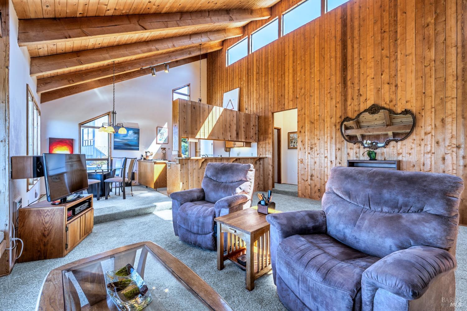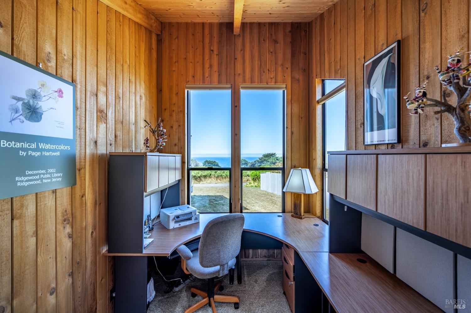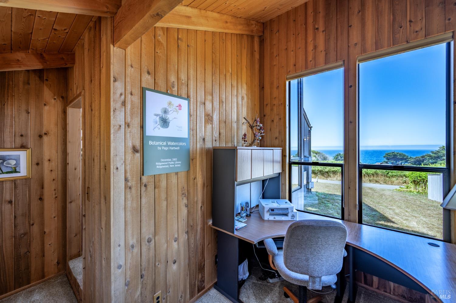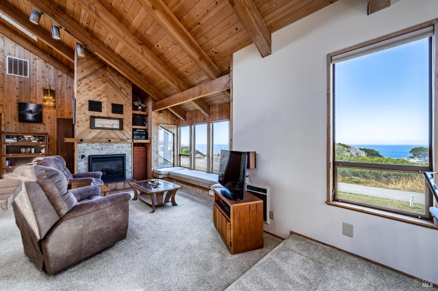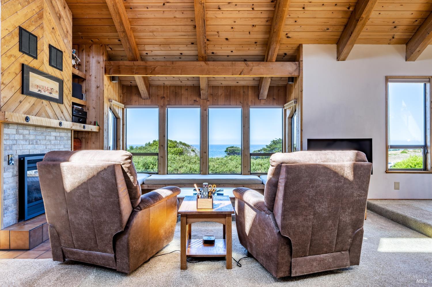 Welcome to your slice of paradise on the coveted Sea Ranch coastline, a thoughtfully designed 2-bedroom, 2-bath sanctuary with captivating white-water views, vibrant sunsets, and star-filled nights. Vaulted ceilings and warm wood-paneled walls create a timeless, welcoming interior. Natural light spills across every surface, and a gas fireplace anchors the open living area. Step outside from the living room onto a private deck, perfect for a quiet morning coffee surrounded by coastal beauty. The spacious primary suite features a walk-in closet and private office, making it ideal for remote work or creative focus. A loft provides discreet storage, and the two-car garage adds convenience for full-time living or effortless weekend escapes. Enjoy 50+ miles of trails, three recreation centers with heated pools, tennis, and pickleball courts. Minutes from the ocean bluff trail, Pebble Beach, seasonal farmers' markets, and local events, this home is more than a coastal getawayit's a vibrant lifestyle. Whether you're seeking a dream retreat or a full-time haven with heart, this sparkling ocean-view property delivers the best of Northern California's microclimate, natural beauty, and community spirit.Come see what it feels like to live inside a postcard.