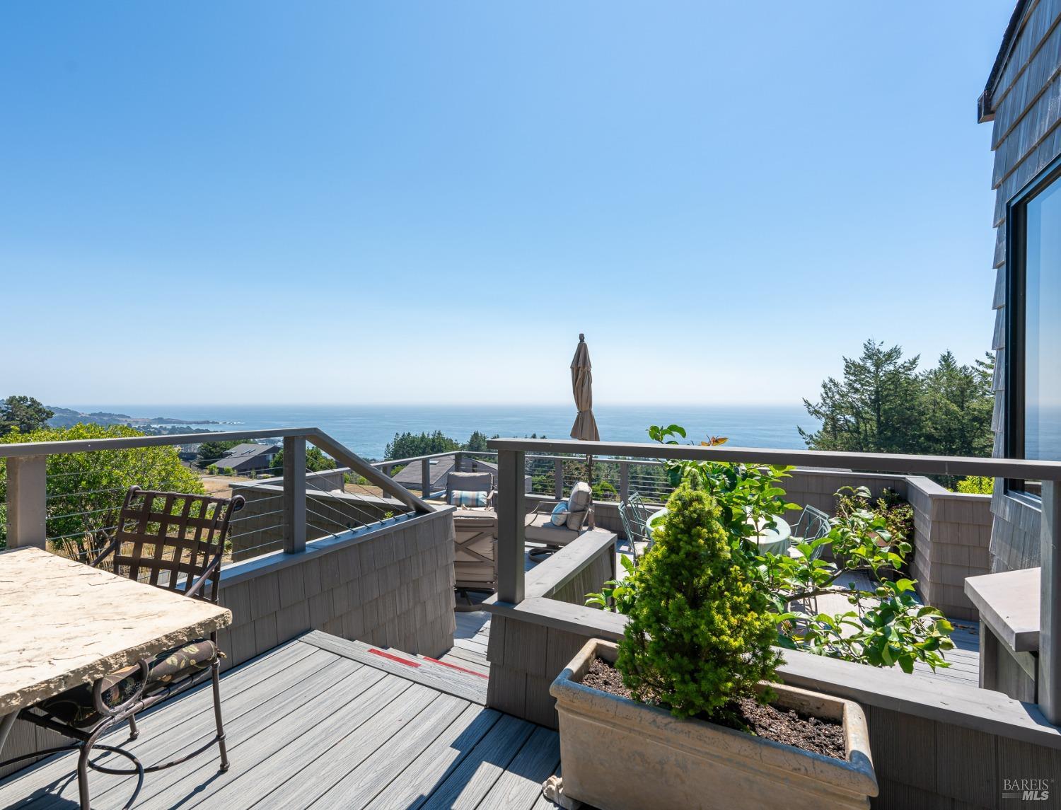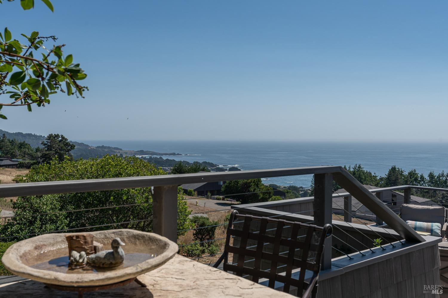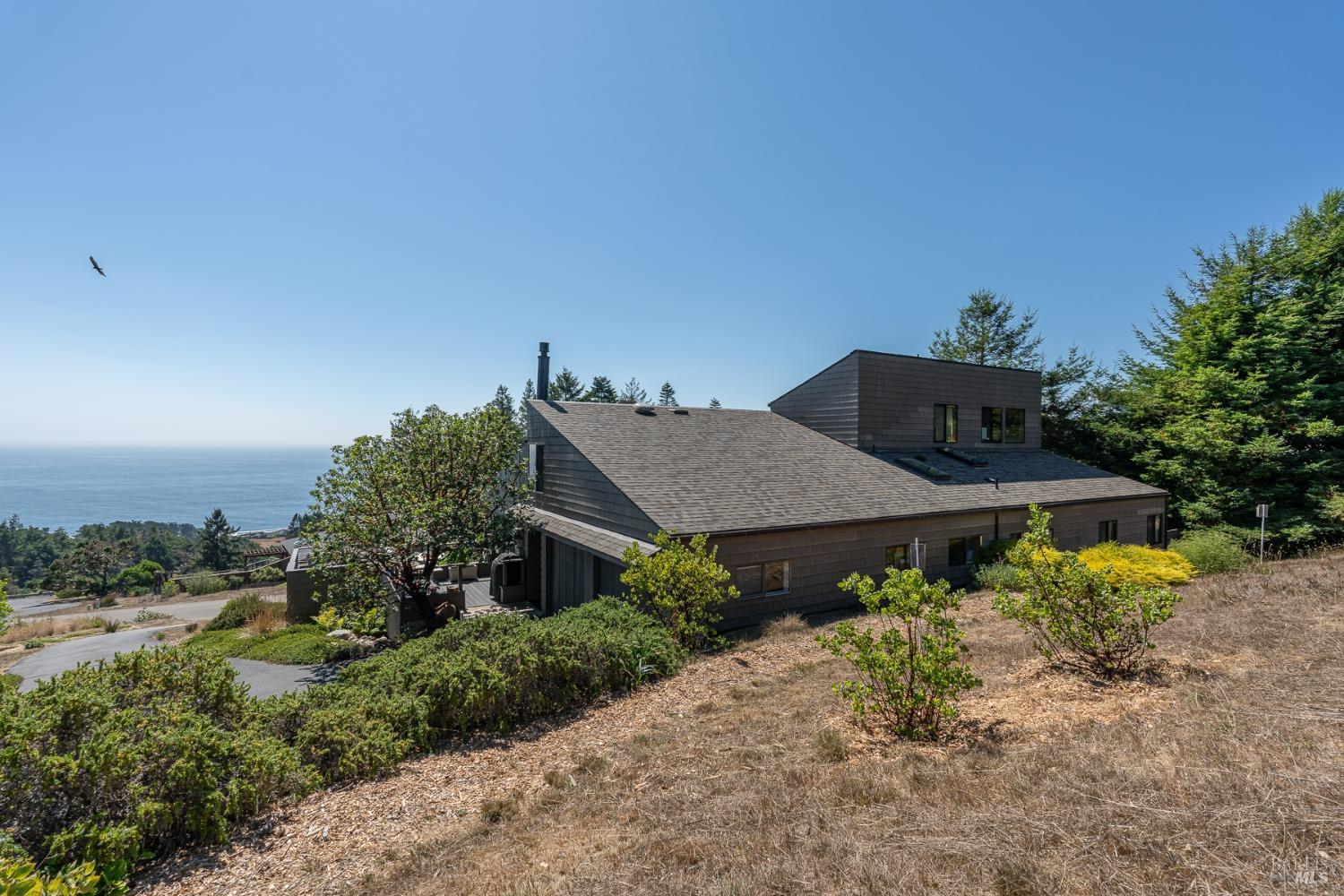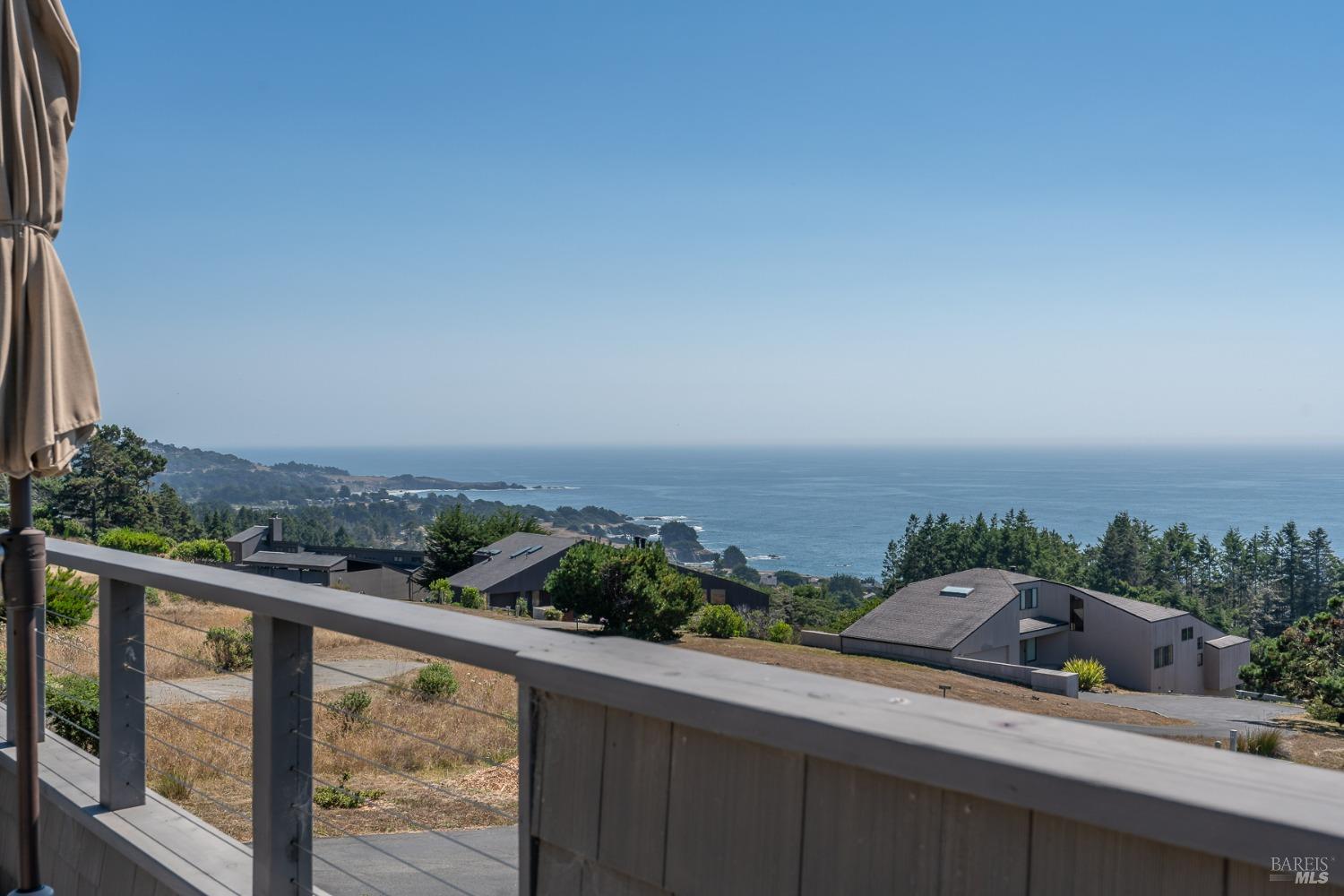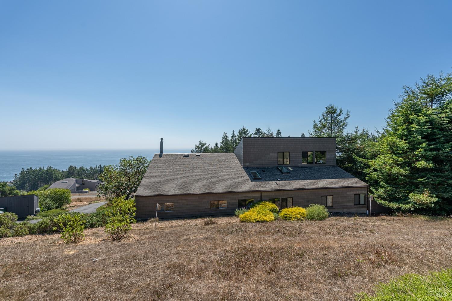 Panoramic coastline ocean views to Black Point welcomes you from this hillside home. Architect Fiona O'Neill masterfully directed a major 2016 remodel and expansion of an older Sea Ranch home and thereby created a modern interpretation of Sea Ranch living. On the main floor you have an ocean view great room with an elegant ocean blue kitchen with marble countertop, stainless steel appliances, induction cooktop and peninsula bar seating. A tiled hallway leads from front door to large laundry and pantry room with barn sliding door; 2 bedrooms suites, beautiful shaded garden area and an amazing view deck in 2 levels. Upstairs is a large office with built-in dual cherry desks, full bath and a loft area. The indoor-outdoor living is magic from the shaded garden, hilltop sunset bench to dining Al Fresco by the propane firepit. The happy potted citrus trees on the deck is a testament to the warm climate at this house. Extra features include attached 2-car garage, solar panels, back-up generator running on propane and fiber optic internet service. The driveway is paved with room for 2-car guest parking. The hillside location on 0.91 acres makes for very private living in the middle of Sea Ranch with hiking trails leading in all compass directions. Large commons on 2-side