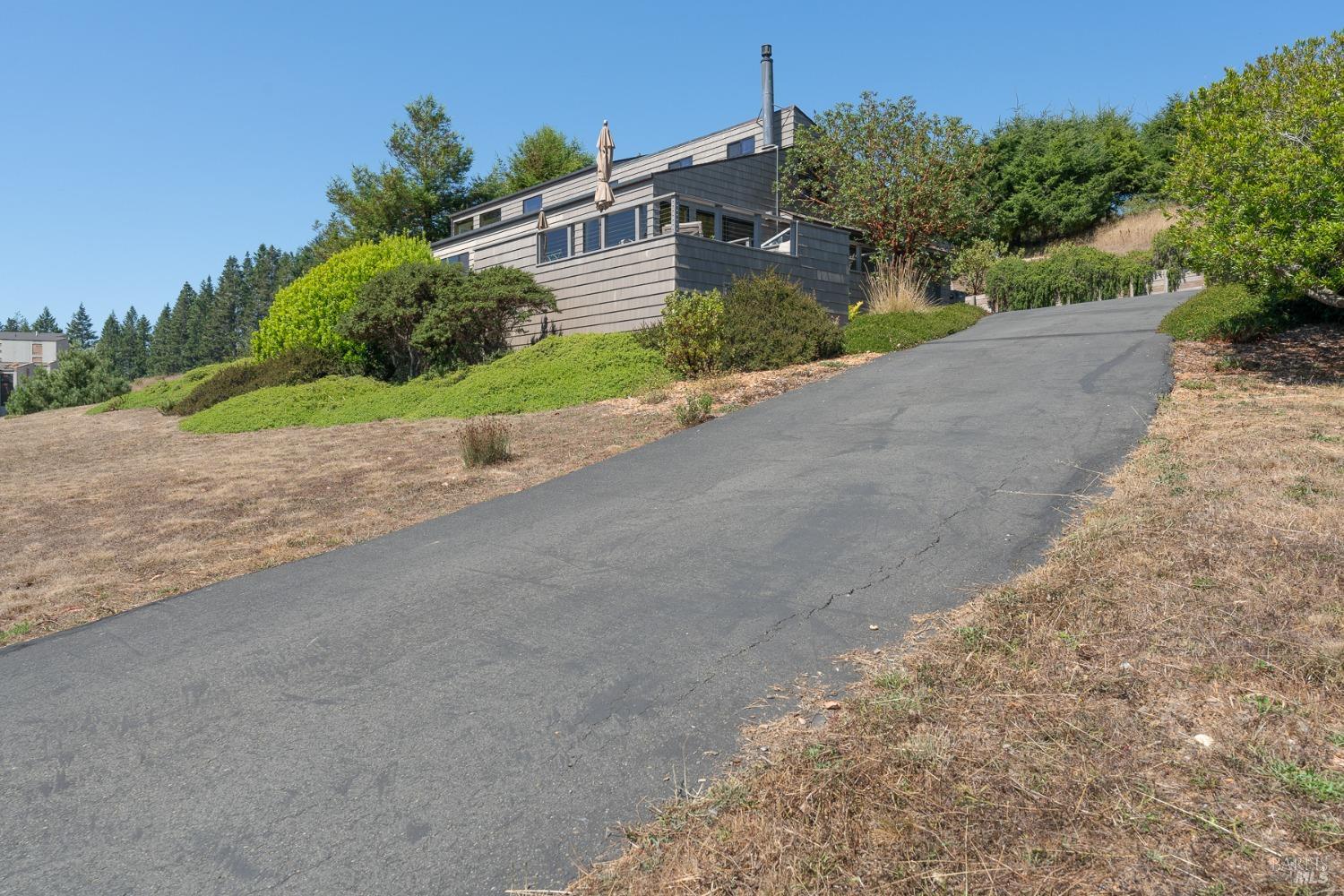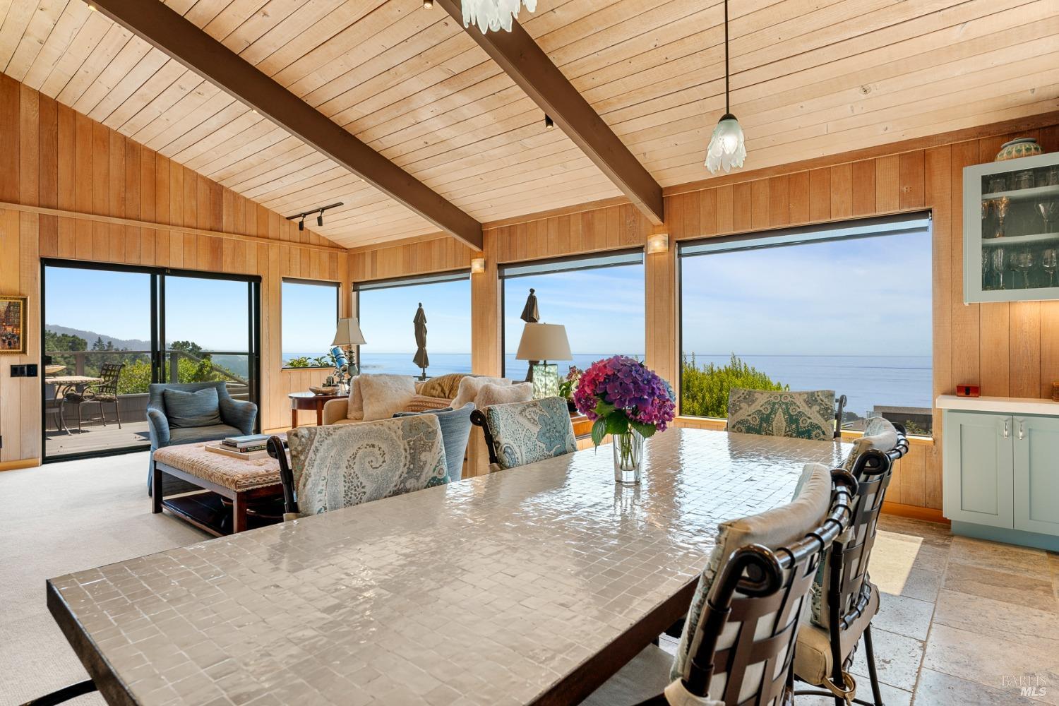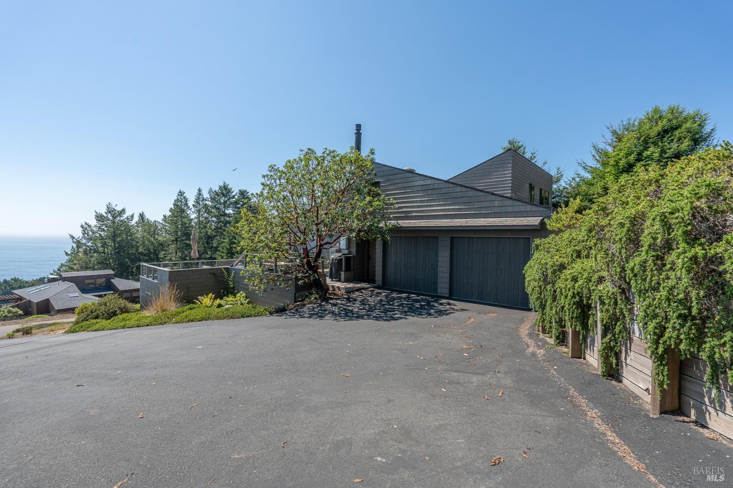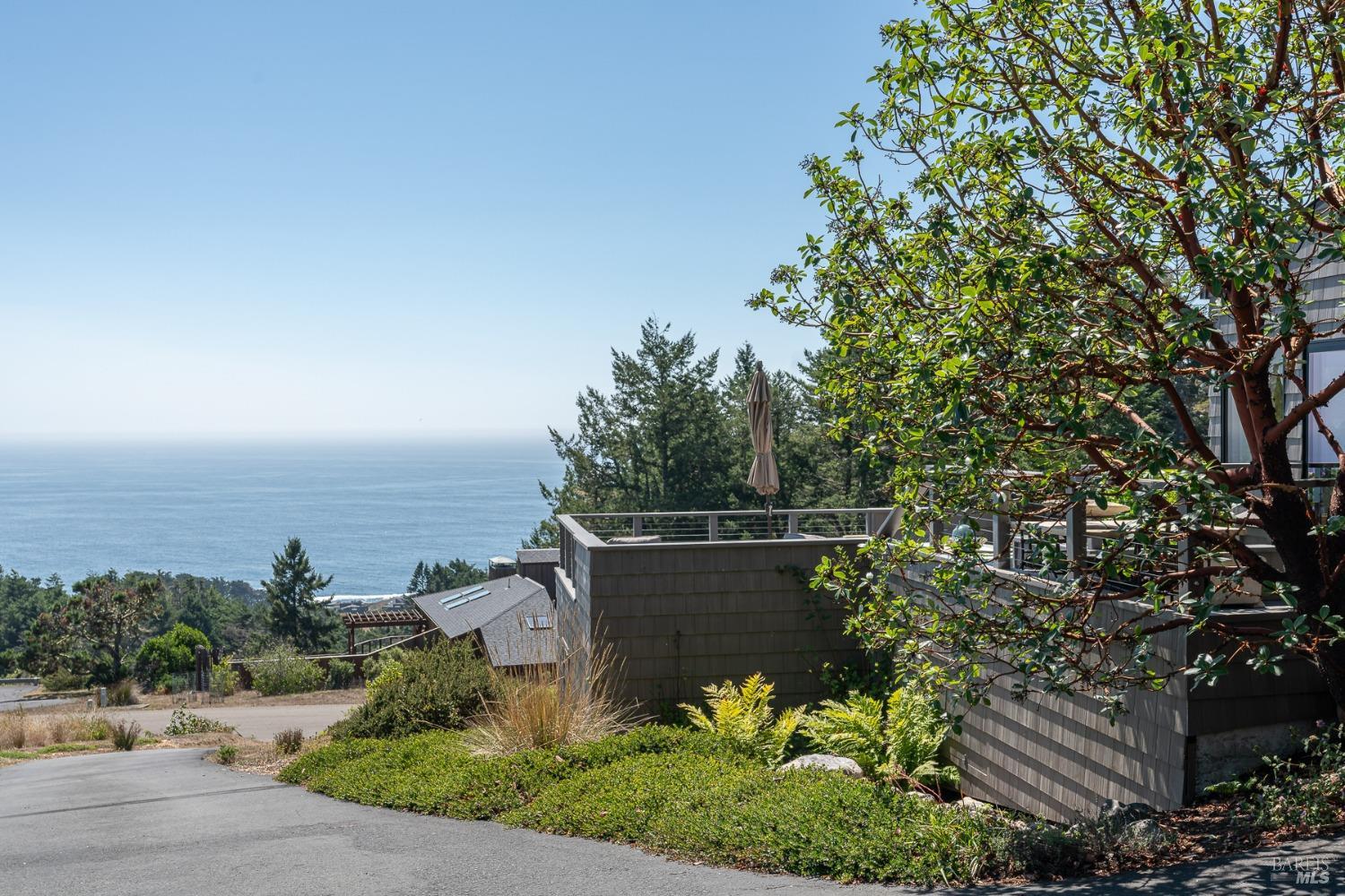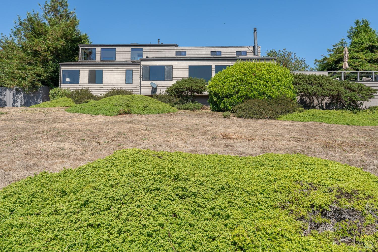 Panoramic coastline ocean views to Black Point welcomes you from this hillside home. Architect Fiona O'Neill masterfully directed a major 2016 remodel and expansion of an older Sea Ranch home and thereby created a modern interpretation of Sea Ranch living. On the main floor you have an ocean view great room with an elegant ocean blue kitchen with marble countertop, stainless steel appliances, induction cooktop and peninsula bar seating. A tiled hallway leads from front door to large laundry and pantry room with barn sliding door; 2 bedrooms suites, beautiful shaded garden area and an amazing view deck in 2 levels. Upstairs is a large office with built-in dual cherry desks, full bath and a loft area. The indoor-outdoor living is magic from the shaded garden, hilltop sunset bench to dining Al Fresco by the propane firepit. The happy potted citrus trees on the deck is a testament to the warm climate at this house. Extra features include attached 2-car garage, solar panels, back-up generator running on propane and fiber optic internet service. The driveway is paved with room for 2-car guest parking. The hillside location on 0.91 acres makes for very private living in the middle of Sea Ranch with hiking trails leading in all compass directions. Large commons on 2-side