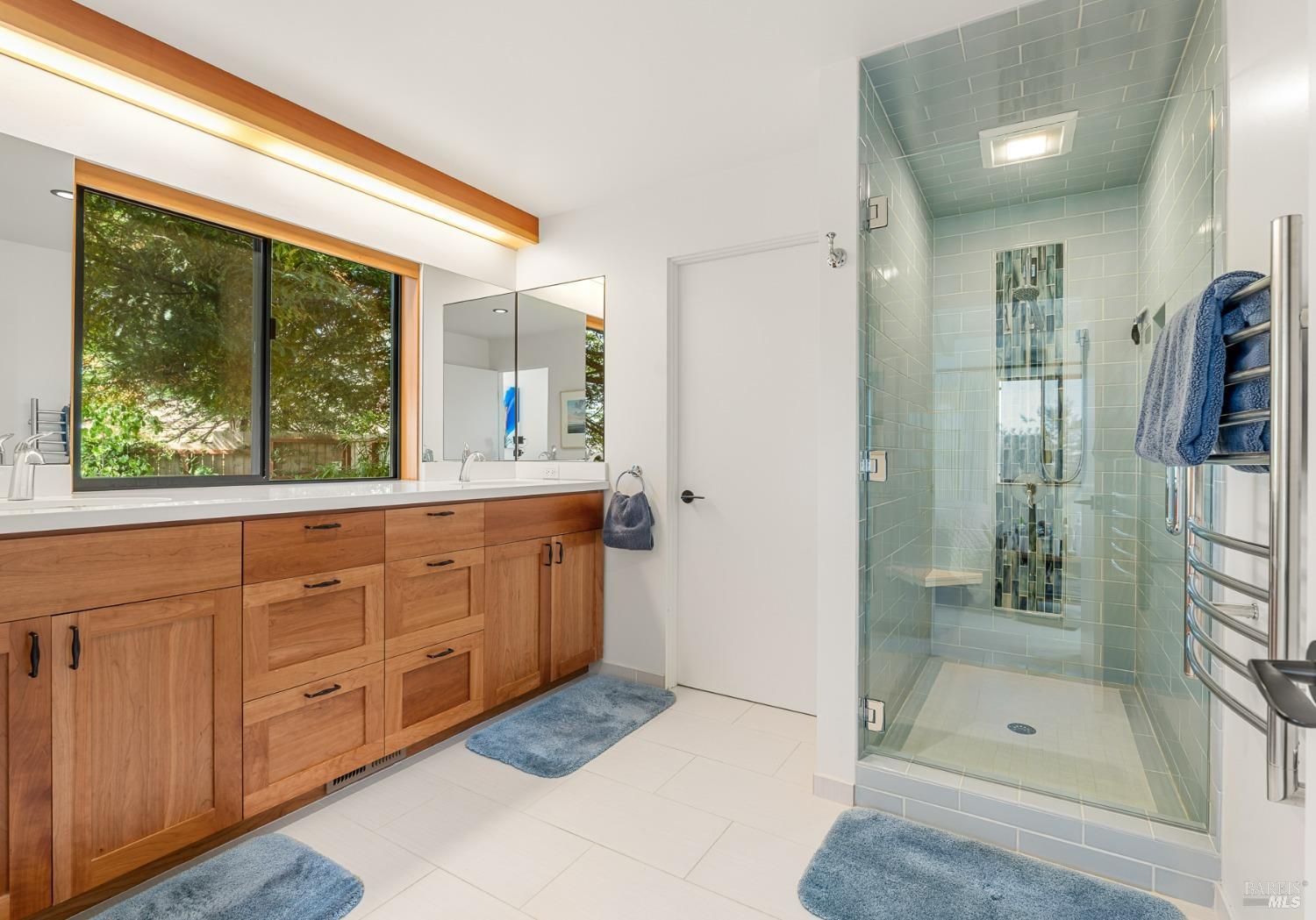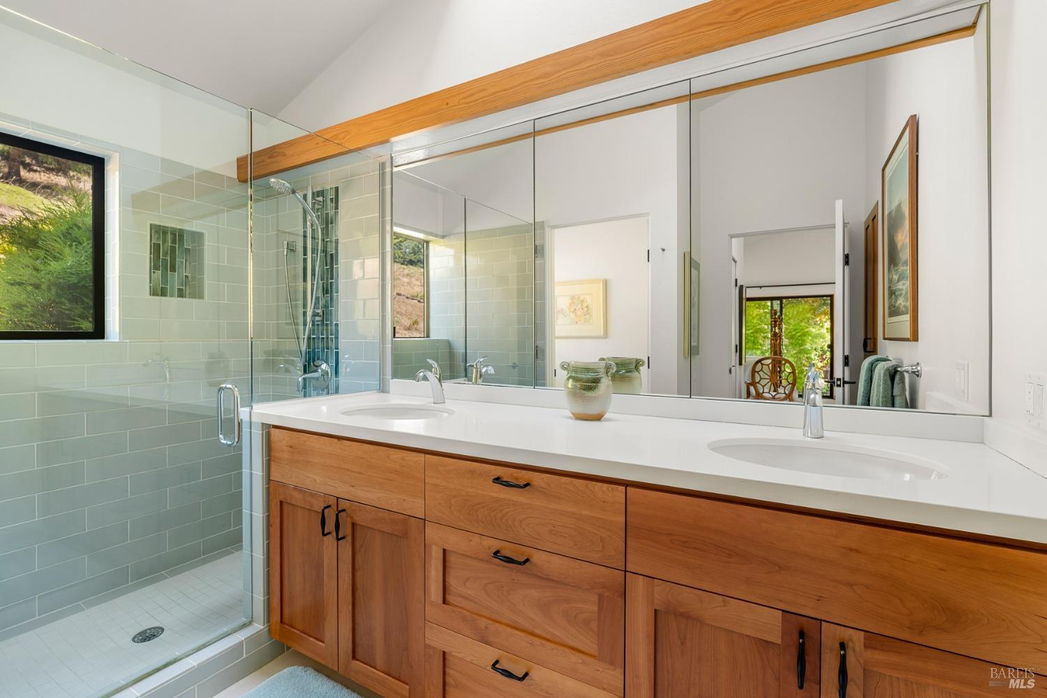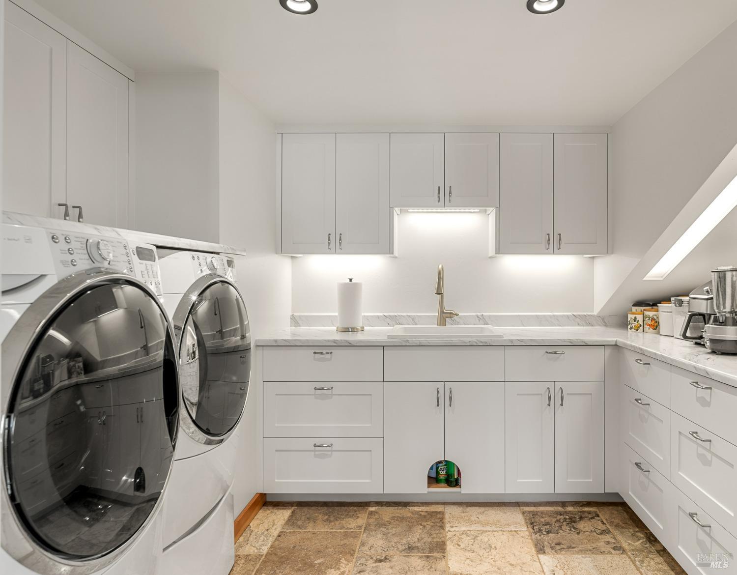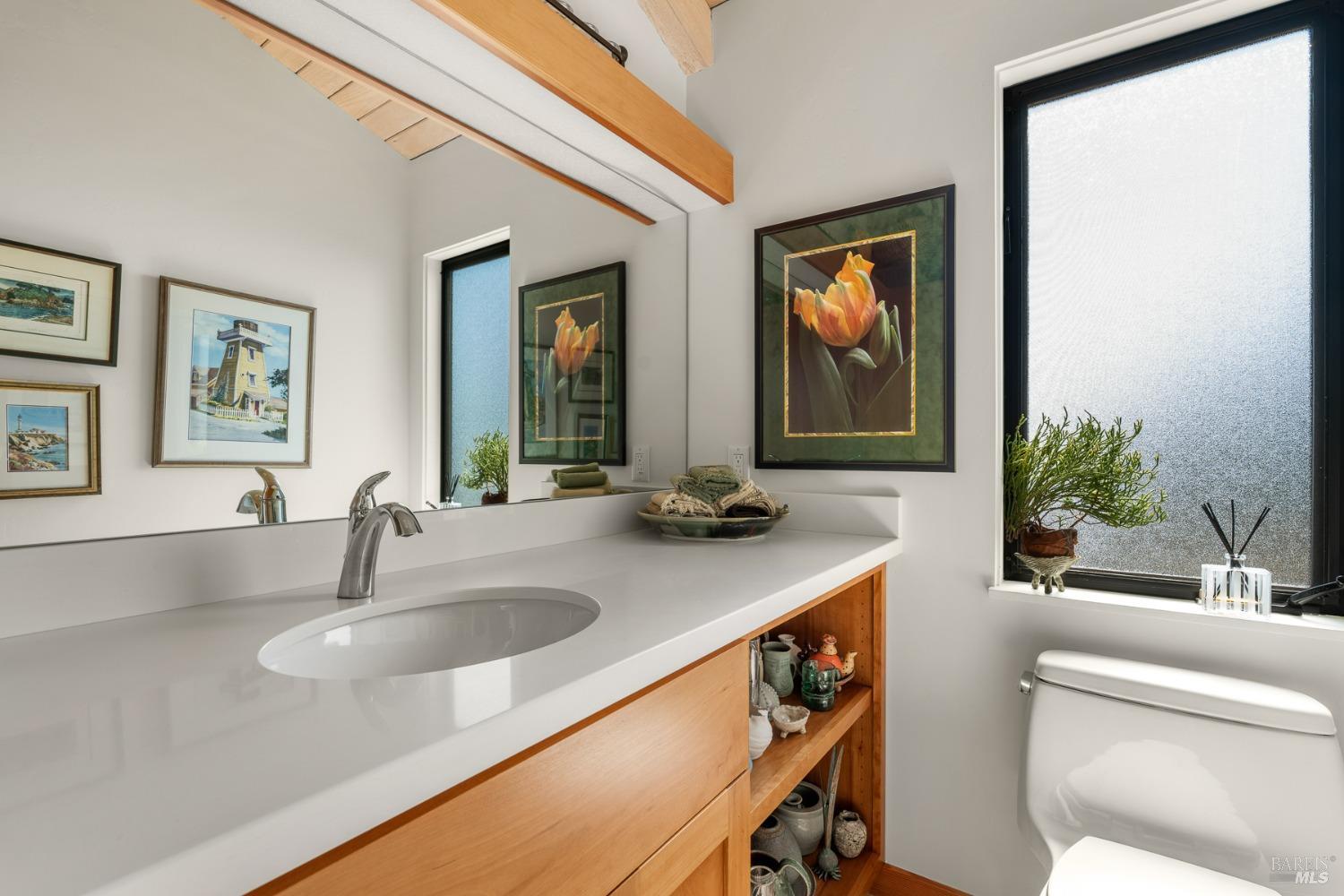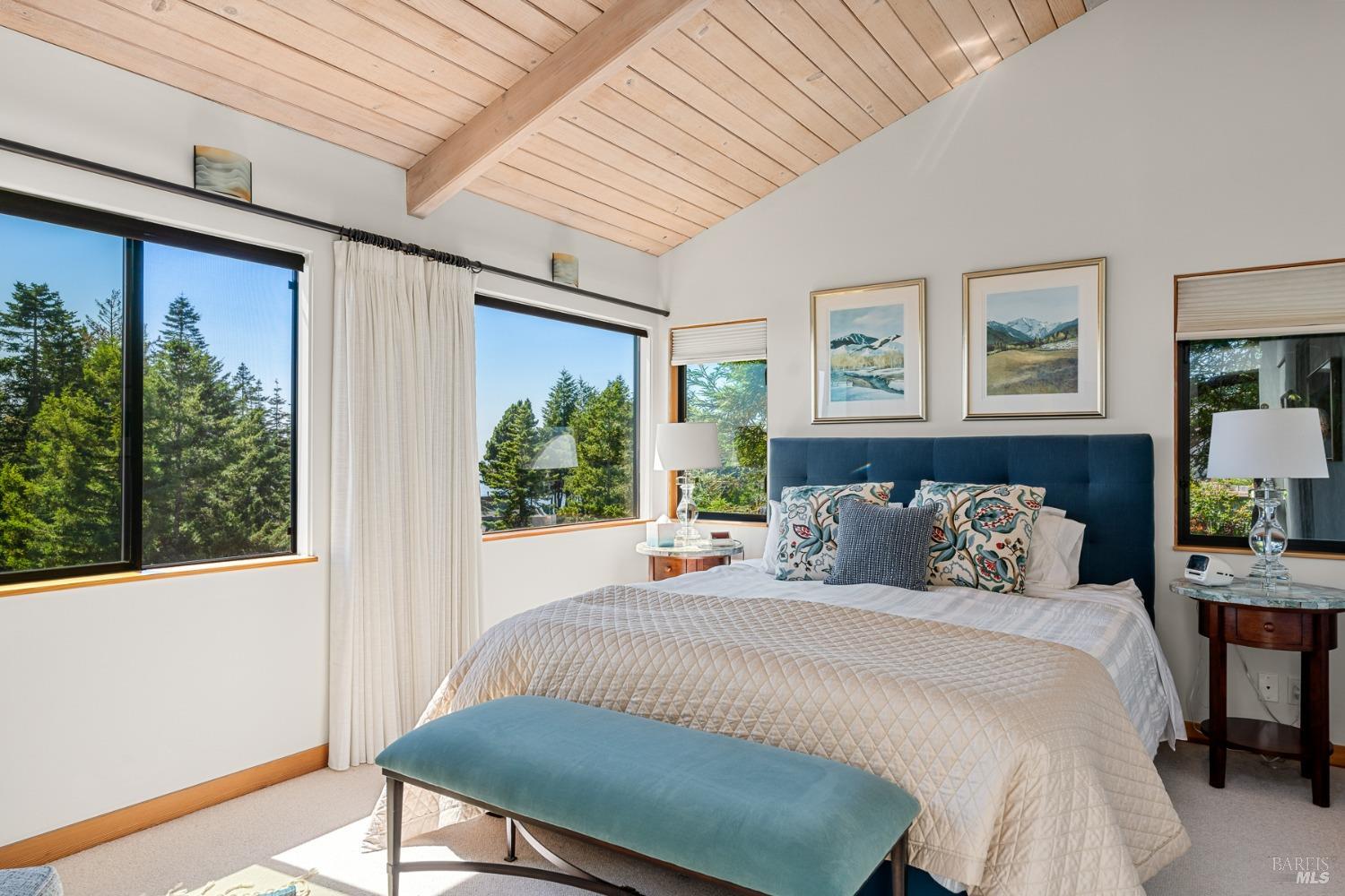 Panoramic coastline ocean views to Black Point welcomes you from this hillside home. Architect Fiona O'Neill masterfully directed a major 2016 remodel and expansion of an older Sea Ranch home and thereby created a modern interpretation of Sea Ranch living. On the main floor you have an ocean view great room with an elegant ocean blue kitchen with marble countertop, stainless steel appliances, induction cooktop and peninsula bar seating. A tiled hallway leads from front door to large laundry and pantry room with barn sliding door; 2 bedrooms suites, beautiful shaded garden area and an amazing view deck in 2 levels. Upstairs is a large office with built-in dual cherry desks, full bath and a loft area. The indoor-outdoor living is magic from the shaded garden, hilltop sunset bench to dining Al Fresco by the propane firepit. The happy potted citrus trees on the deck is a testament to the warm climate at this house. Extra features include attached 2-car garage, solar panels, back-up generator running on propane and fiber optic internet service. The driveway is paved with room for 2-car guest parking. The hillside location on 0.91 acres makes for very private living in the middle of Sea Ranch with hiking trails leading in all compass directions. Large commons on 2-side