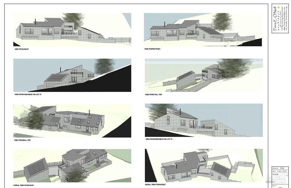 This desirable rare 1.1-acre Sea Ranch lot with sweeping ocean views on a private hillside street awaits your dream home. Expedite the building process with approved preliminary plans by renowned Sea Ranch architect Fiona O'Neill who is open to continue working with a new owner. The design includes a primary and guest bedroom with en suite bathrooms, and a loft bedroom/office with ocean view deck, perfect for morning coffee or sunset cocktails. The chef's kitchen opens to the great room overlooking the enclosed backyard and spa deck. The great room features floor to ceiling windows, fireplace, dining area and wet bar with wine cooler and classic Sea Ranch window seats. There is a powder room for guests, a large outdoor deck with fire pit and plenty of room for dining and relaxing with peaceful ocean views. The two-car garage has storage and a loft that can be a home gym or office. Solar system, generator and electric car charger are part of the design. Utilities including fiber optic internet are at the street. Ohlson Beach and Rec Center with a heated pool, tennis and sauna are just across the Hwy. Enjoy 50+ miles of private trails through the redwoods and along spectacular beaches. You will be captivated by the peace and quiet of this magical place.