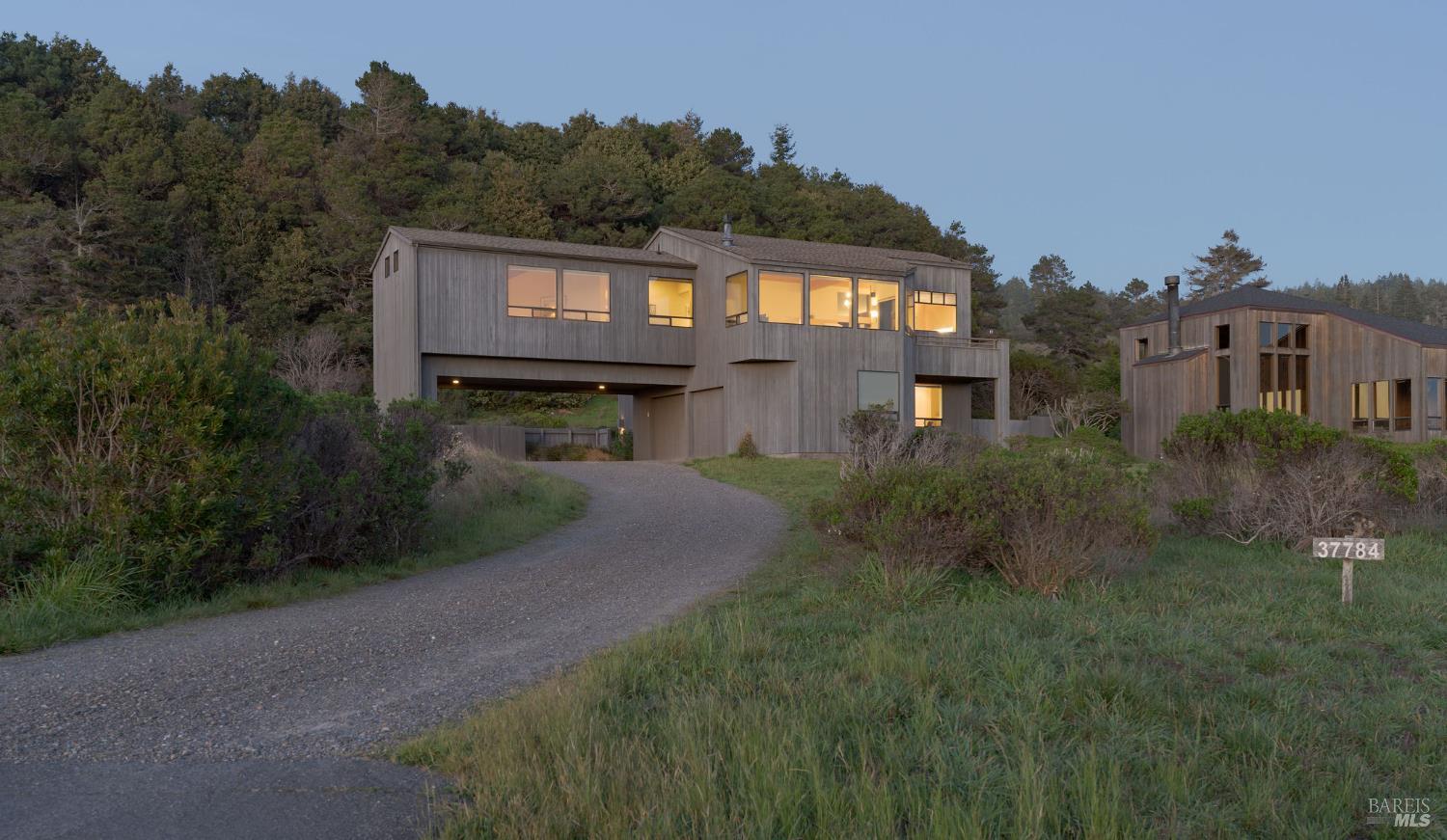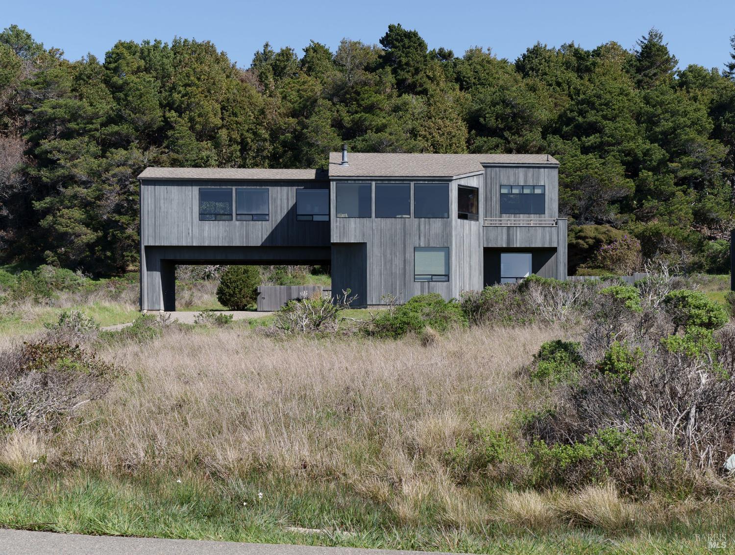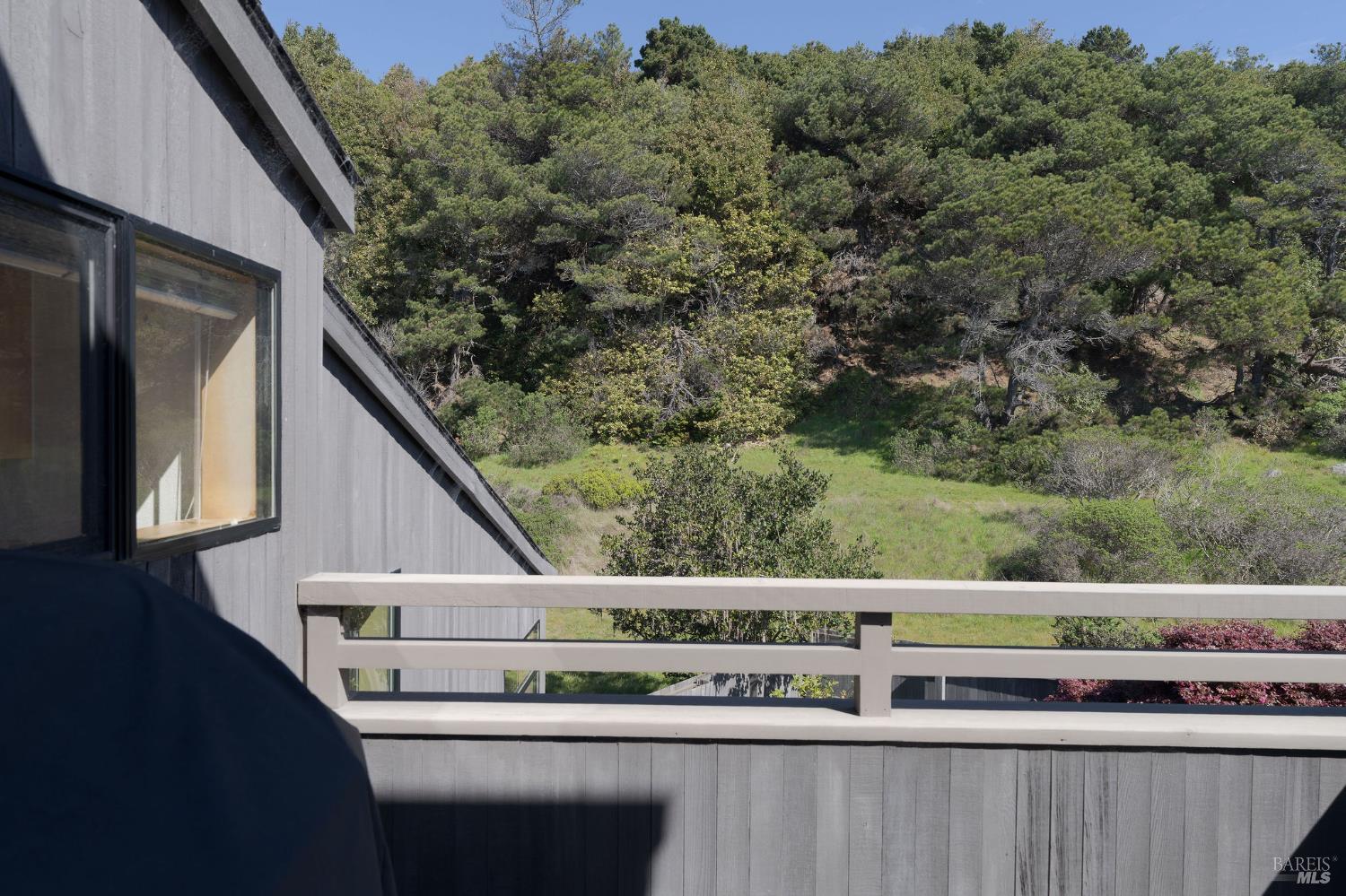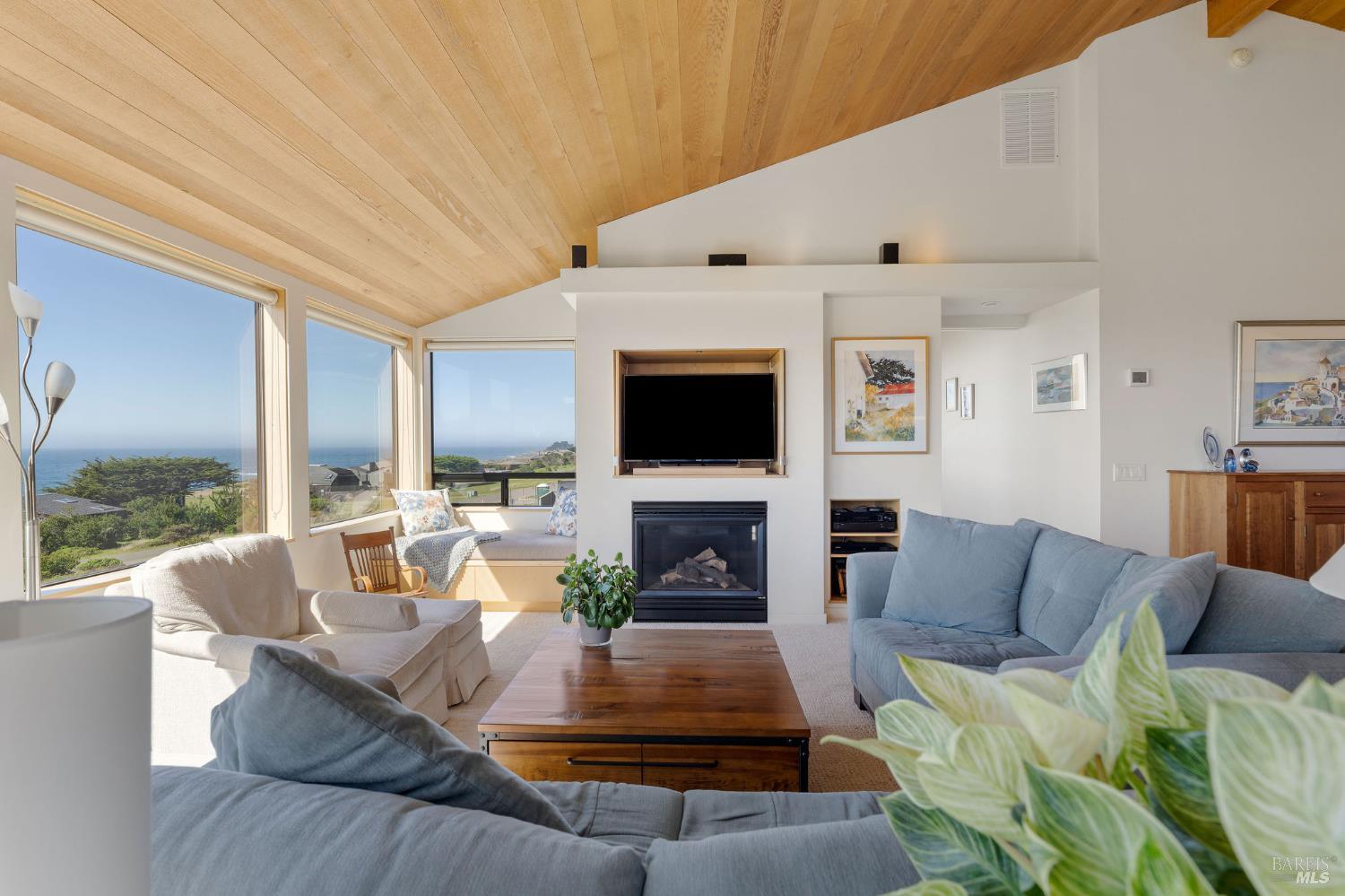 Enjoy panoramic ocean views from this 2-story contemporary architecture by Bob Hartsock. Located in West of Highway One, one row from oceanfront, in desirable Unit 21, this house is flooded with light in an open floor plan. Throughout the house, custom cabinetry in maple plus beautiful details around windows, gives this house an elegant, yet casual feel. Upstairs is a the great room with a wonderful kitchen featuring white water views from the kitchen sink. A generous island holds the stove and bar counter seating with views to the verdant hillside to the east or the Pacific Ocean to the west. A bar sink, double ovens, wood paneled refrigerator, granite counters and a BBQ deck make this a gourmet chef's dream kitchen. Dining room with views East and West anchors the living room with a wall of windows to the ocean, gas fireplace, built-in TV, window seat and an ocean view deck. It is a cozy room yet plenty of space for entertaining. A hallway leads to the primary suite with built-in nightstands, window seat and walk-in closet. The generous bathroom has double sinks, a large tub overlooking the verdant hillside and walk-in shower with view of trees and sky. The staircase leads you from the great room with beautiful views of the meadow east of the house from a mitered frameless corner window to the entry hall, laundry room, garage entrance and 2 large bedroom suites with a shared hall bath. One-bedroom faces east with lots of light and a reading nook or space for a desk. The other bedroom faces the ocean with built-in window seat and custom closets. A garden deck creates a private outdoor environment with a hot tub and succulent garden. A unique architectural feature is the drive through portico. The property is located steps from the bluff trail, bike trail and almost at the end of a quiet Cul de sac. Just south through the hedgerow, is the historic White Barn and Ohlson Recreation center with library, studio space for activities like yoga, the iconic pool, tennis, sauna and nearby beach access. This is a must visit home to appreciate.