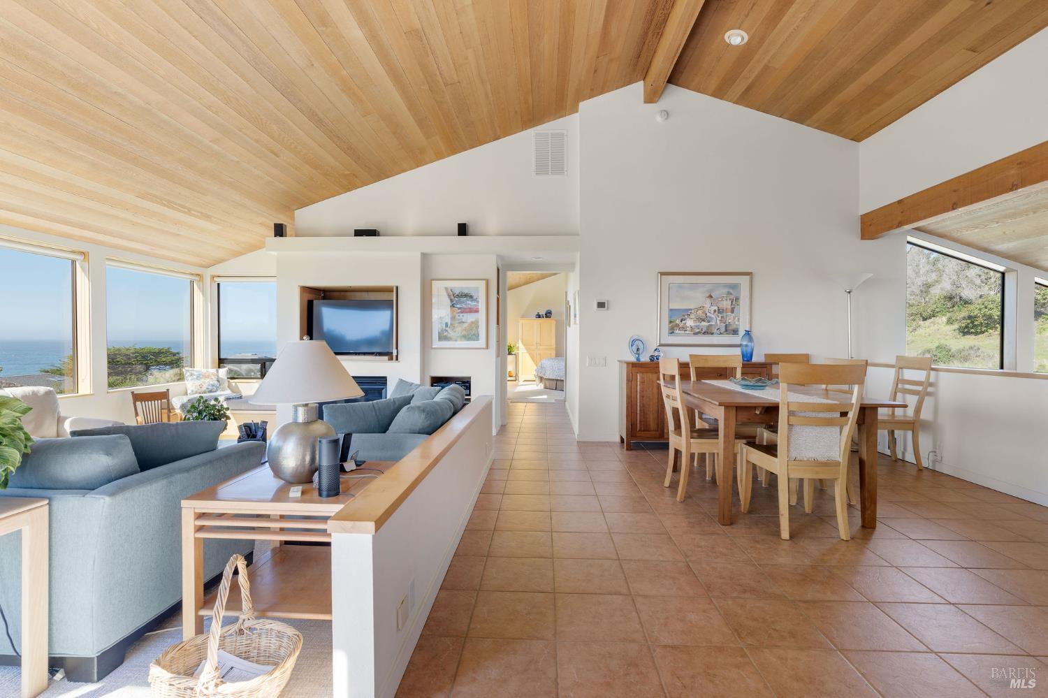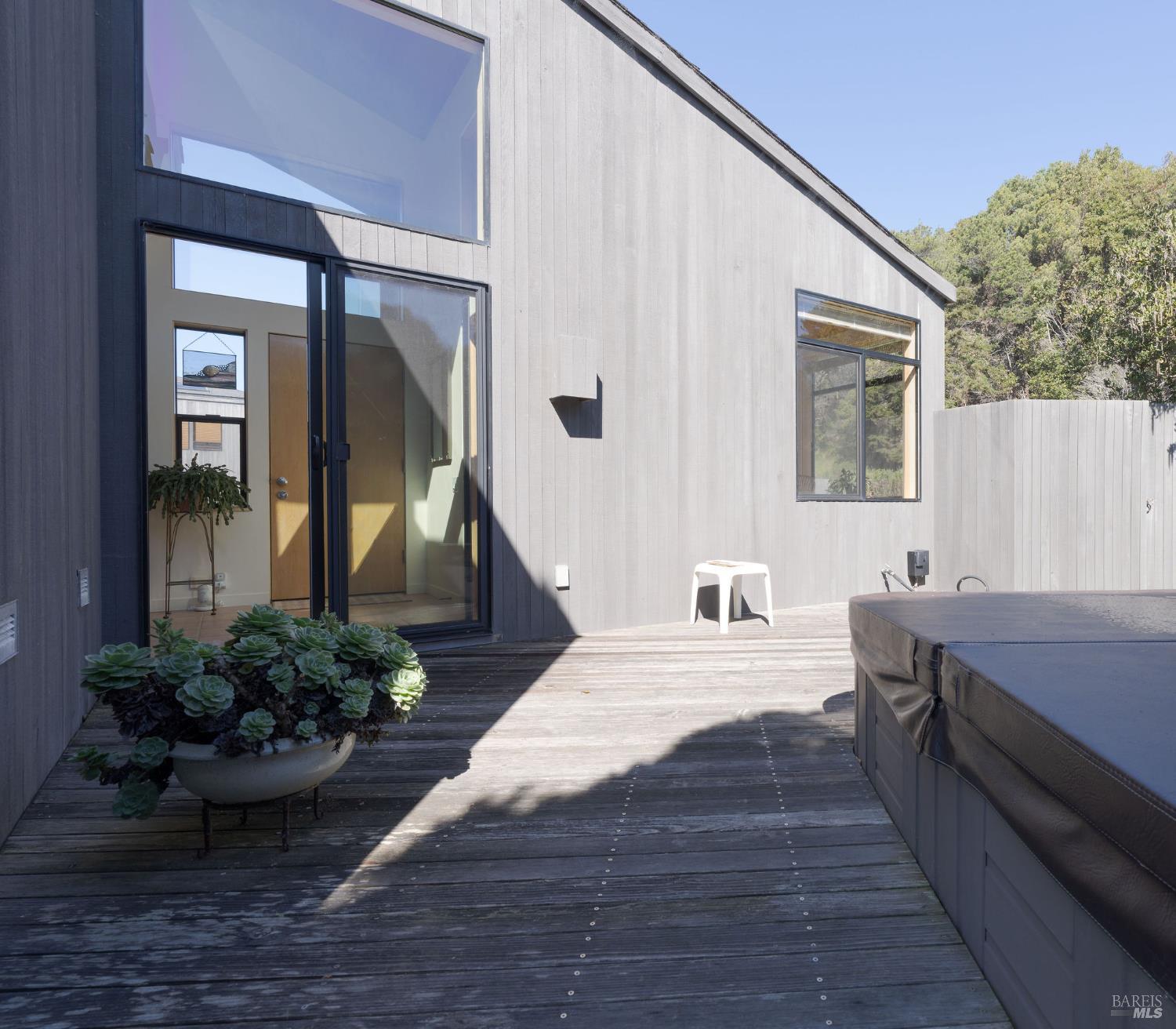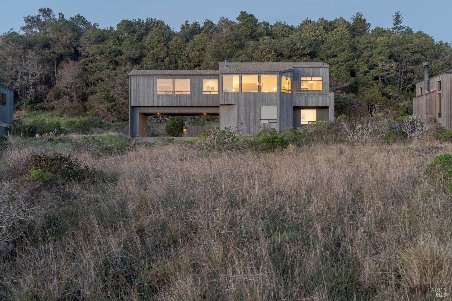 Enjoy panoramic ocean views from this 2-story contemporary architecture by Bob Hartsock. Located in West of Highway One, one row from oceanfront, in desirable Unit 21, this house is flooded with light in an open floor plan. Throughout the house, custom cabinetry in maple plus beautiful details around windows, gives this house an elegant, yet casual feel. Upstairs is a the great room with a wonderful kitchen featuring white water views from the kitchen sink. A generous island holds the stove and bar counter seating with views to the verdant hillside to the east or the Pacific Ocean to the west. A bar sink, double ovens, wood paneled refrigerator, granite counters and a BBQ deck make this a gourmet chef's dream kitchen. Dining room with views East and West anchors the living room with a wall of windows to the ocean, gas fireplace, built-in TV, window seat and an ocean view deck. It is a cozy room yet plenty of space for entertaining. A hallway leads to the primary suite with built-in nightstands, window seat and walk-in closet. The generous bathroom has double sinks, a large tub overlooking the verdant hillside and walk-in shower with view of trees and sky. The staircase leads you from the great room with beautiful views of the meadow east of the house from a mitered frameless corner window to the entry hall, laundry room, garage entrance and 2 large bedroom suites with a shared hall bath. One-bedroom faces east with lots of light and a reading nook or space for a desk. The other bedroom faces the ocean with built-in window seat and custom closets. A garden deck creates a private outdoor environment with a hot tub and succulent garden. A unique architectural feature is the drive through portico. The property is located steps from the bluff trail, bike trail and almost at the end of a quiet Cul de sac. Just south through the hedgerow, is the historic White Barn and Ohlson Recreation center with library, studio space for activities like yoga, the iconic pool, tennis, sauna and nearby beach access. This is a must visit home to appreciate.