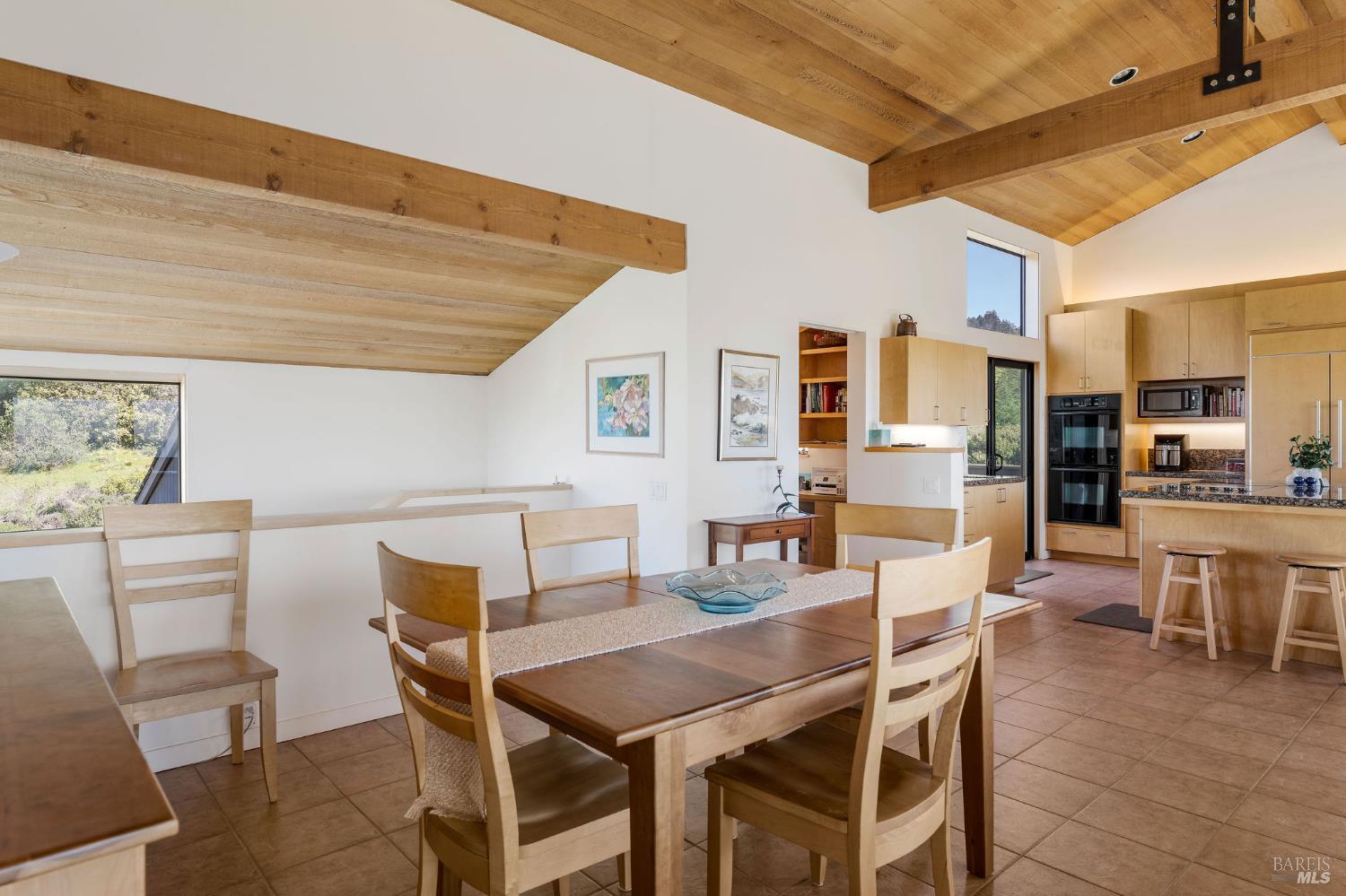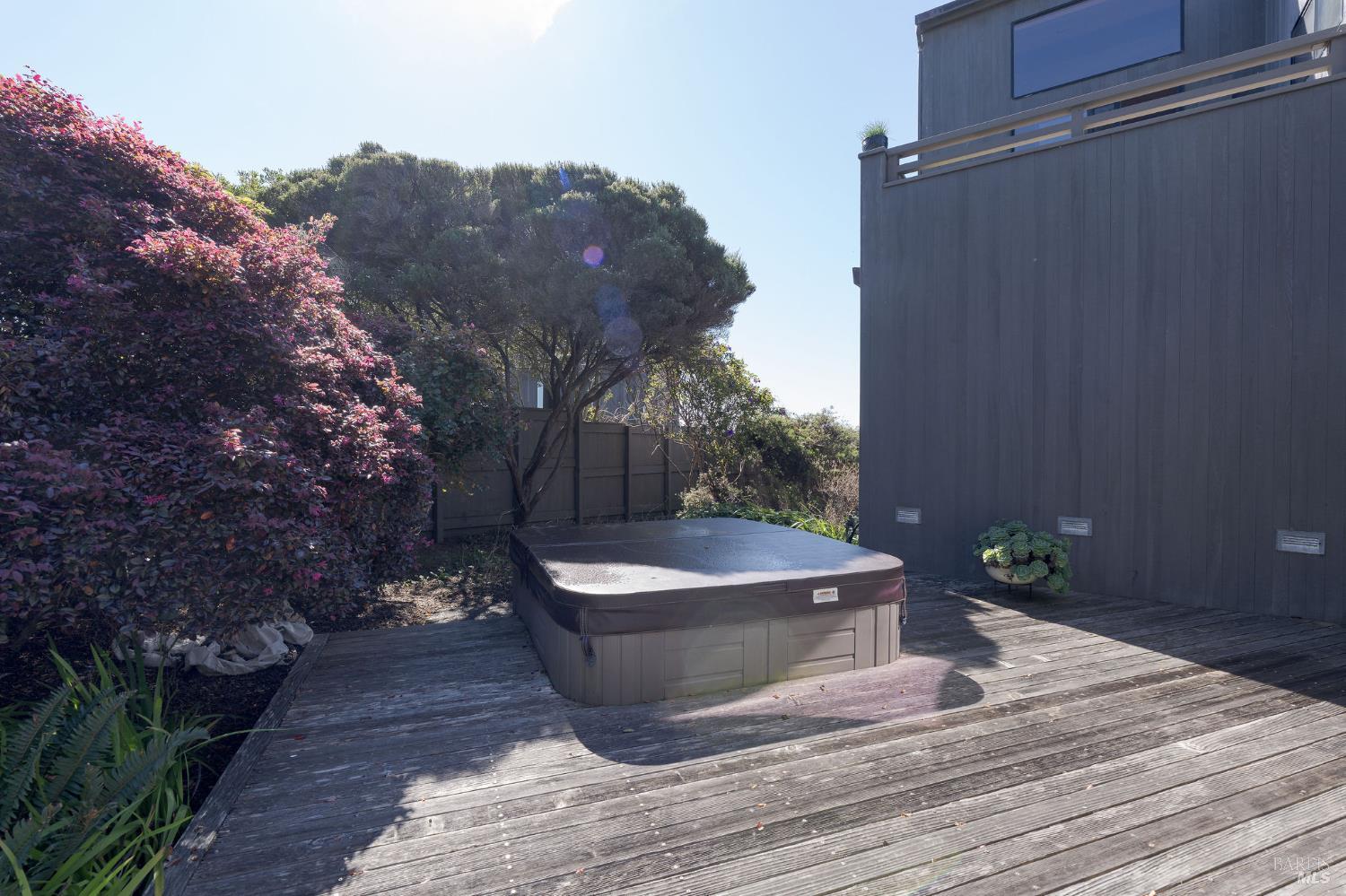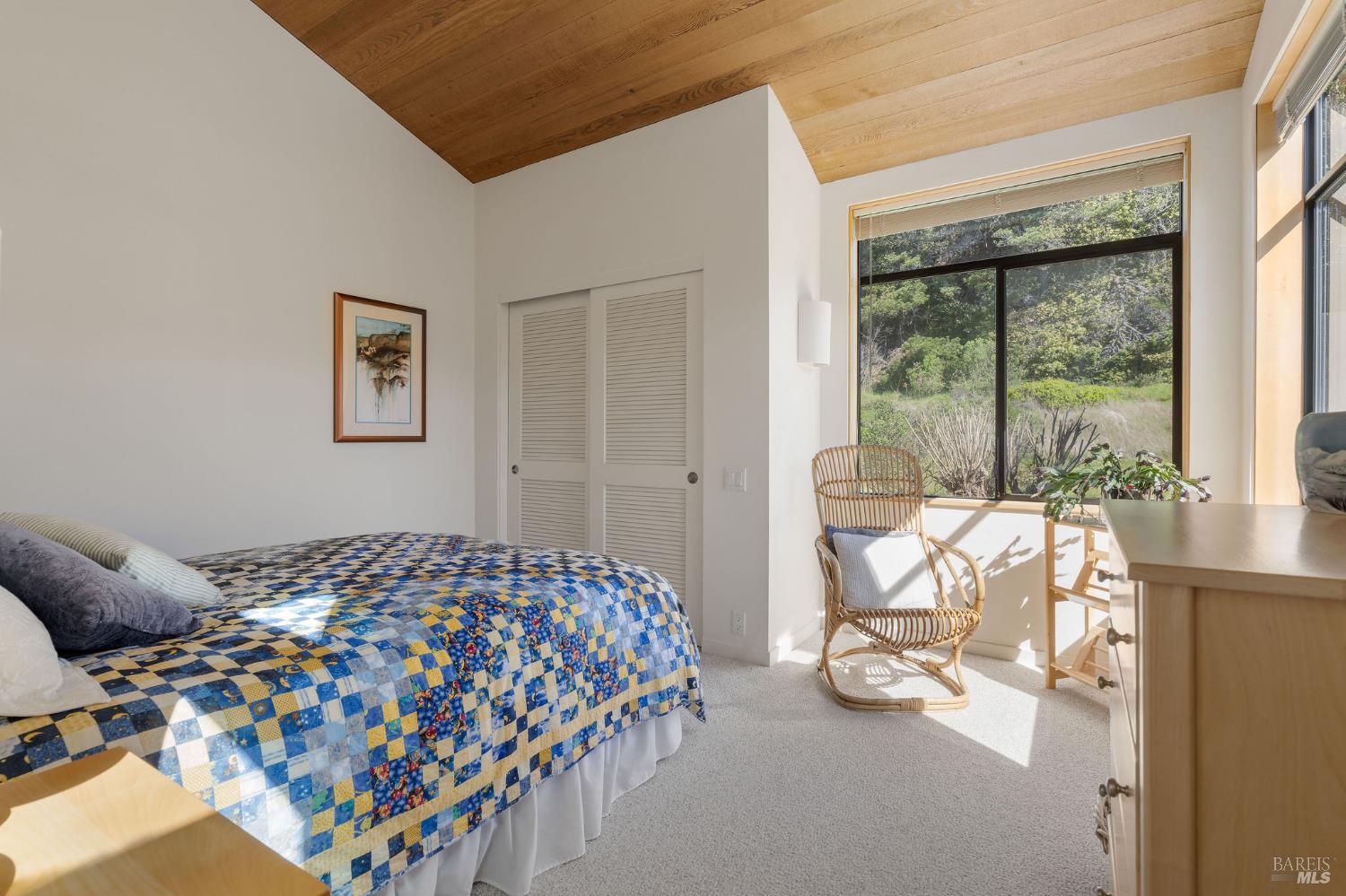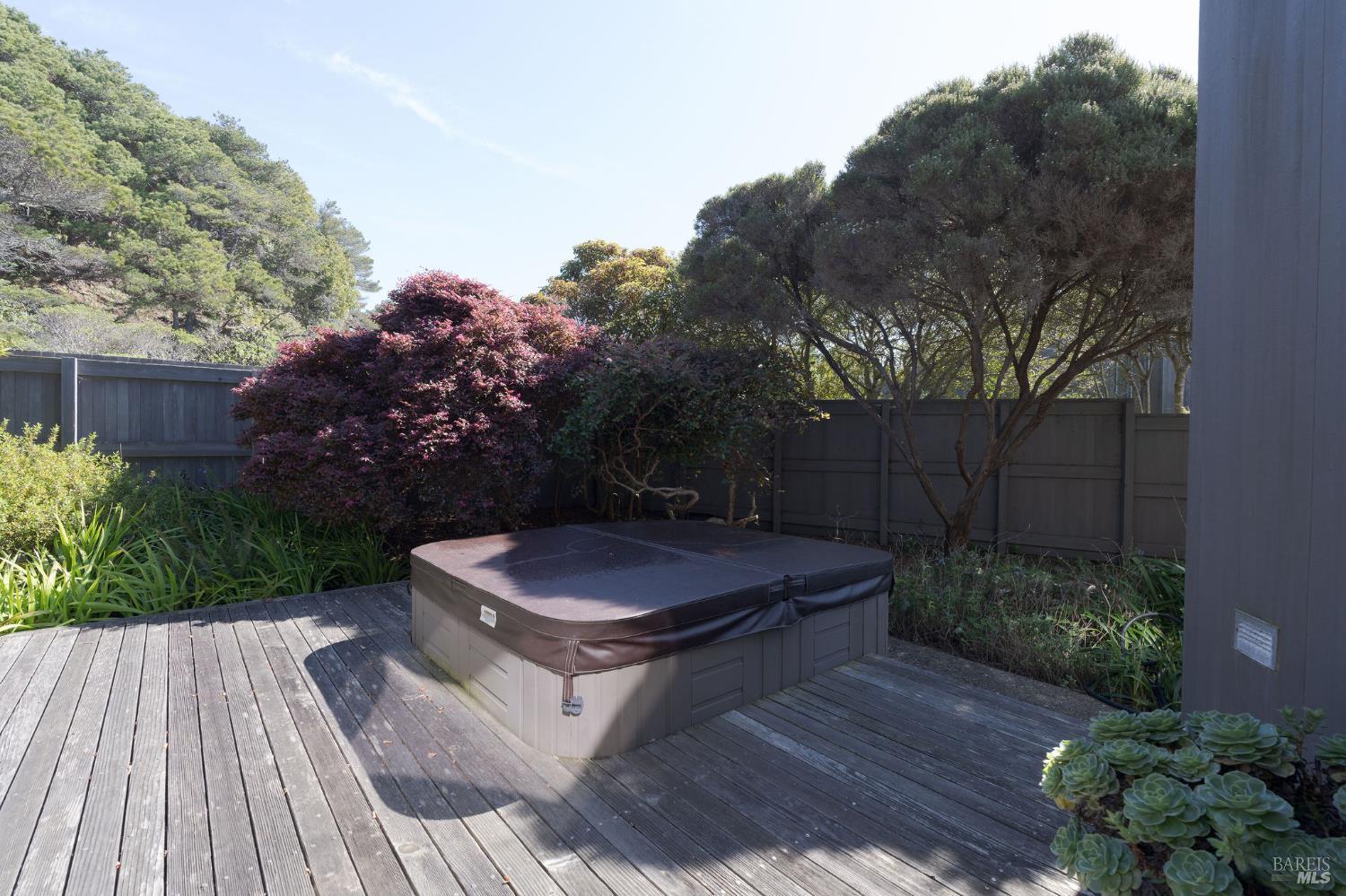 Enjoy panoramic ocean views from this 2-story contemporary architecture by Bob Hartsock. Located in West of Highway One, one row from oceanfront, in desirable Unit 21, this house is flooded with light in an open floor plan. Throughout the house, custom cabinetry in maple plus beautiful details around windows, gives this house an elegant, yet casual feel. Upstairs is a the great room with a wonderful kitchen featuring white water views from the kitchen sink. A generous island holds the stove and bar counter seating with views to the verdant hillside to the east or the Pacific Ocean to the west. A bar sink, double ovens, wood paneled refrigerator, granite counters and a BBQ deck make this a gourmet chef's dream kitchen. Dining room with views East and West anchors the living room with a wall of windows to the ocean, gas fireplace, built-in TV, window seat and an ocean view deck. It is a cozy room yet plenty of space for entertaining. A hallway leads to the primary suite with built-in nightstands, window seat and walk-in closet. The generous bathroom has double sinks, a large tub overlooking the verdant hillside and walk-in shower with view of trees and sky. The staircase leads you from the great room with beautiful views of the meadow east of the house from a mitered frameless corner window to the entry hall, laundry room, garage entrance and 2 large bedroom suites with a shared hall bath. One-bedroom faces east with lots of light and a reading nook or space for a desk. The other bedroom faces the ocean with built-in window seat and custom closets. A garden deck creates a private outdoor environment with a hot tub and succulent garden. A unique architectural feature is the drive through portico. The property is located steps from the bluff trail, bike trail and almost at the end of a quiet Cul de sac. Just south through the hedgerow, is the historic White Barn and Ohlson Recreation center with library, studio space for activities like yoga, the iconic pool, tennis, sauna and nearby beach access. This is a must visit home to appreciate.