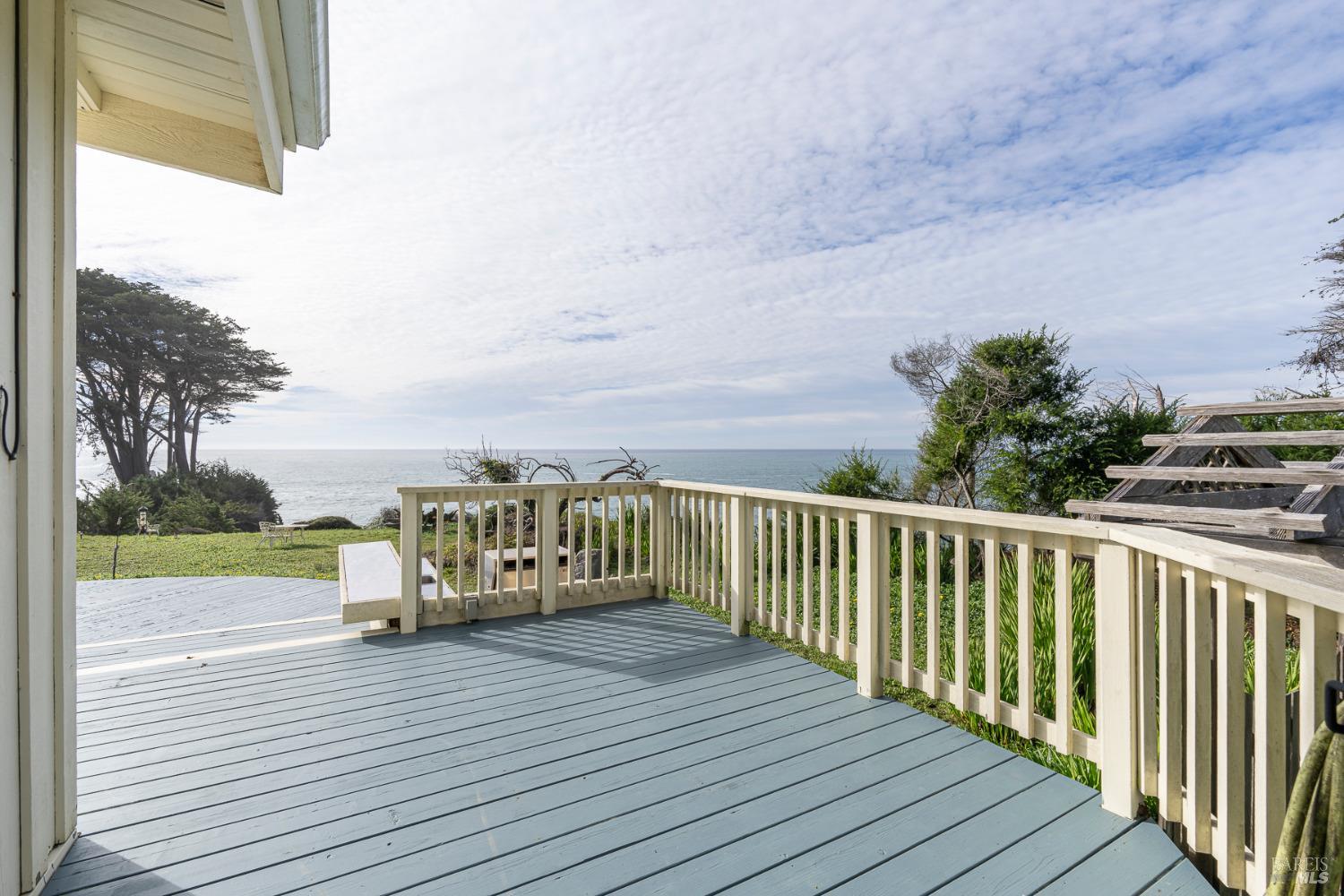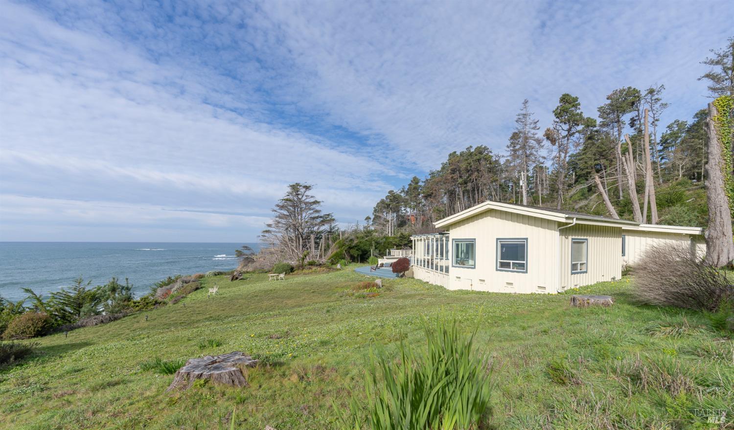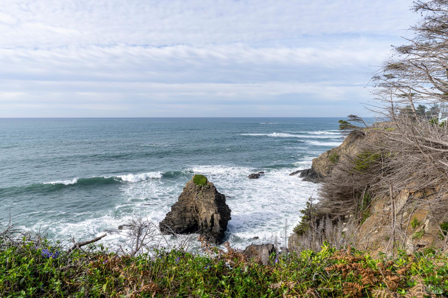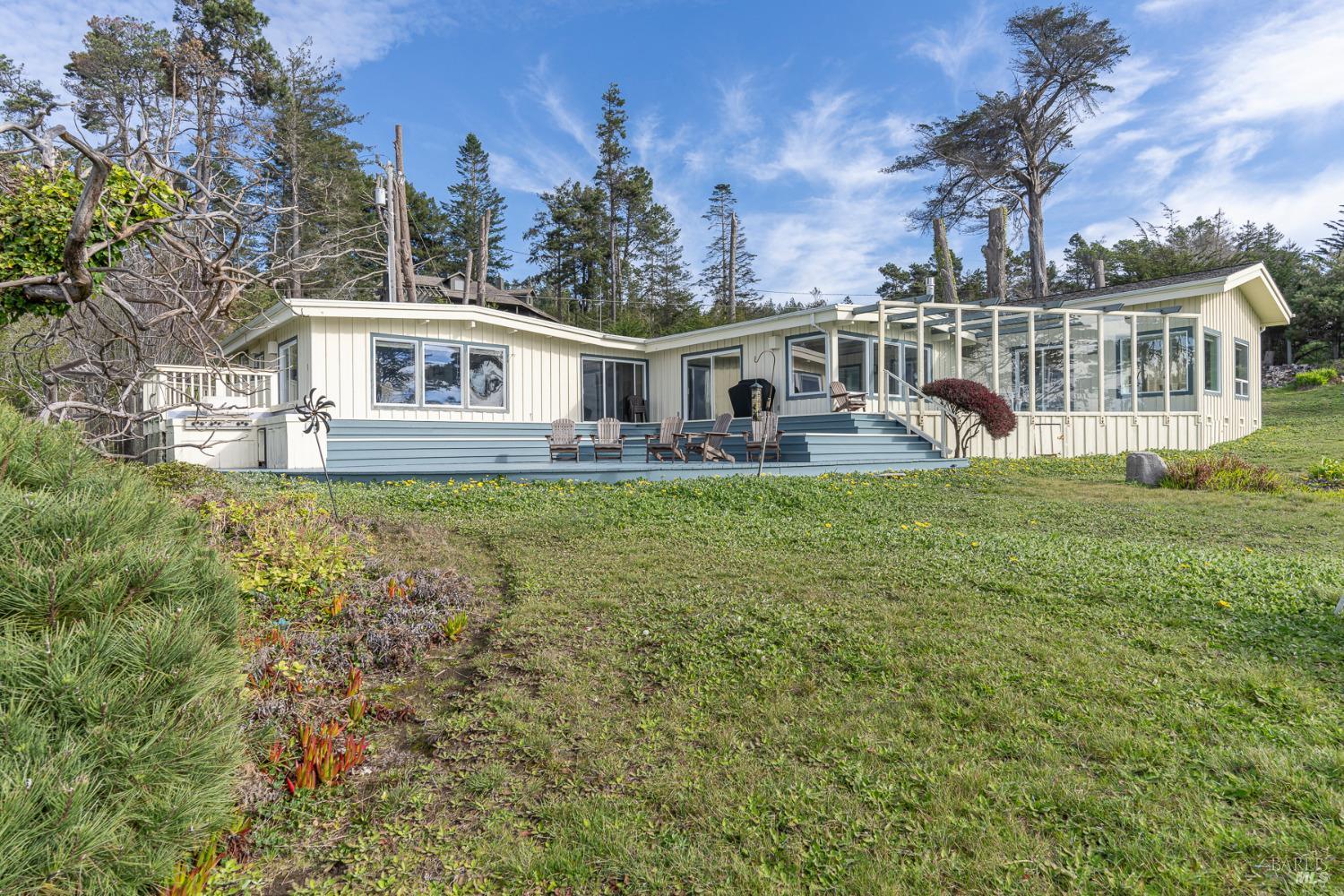 One in a million....Spectacular ocean front offering. Up front views of Castle Rock..almost an acre...this Sweet Vintage Old Coast Highway home is all one level with 2 bedrooms 2 baths. Updated kitchen is the heart of the great room..Travertine flooring in entry and in the great room...breath taking views from almost every room..large ocean front entertaining deck ...watch the migrating whales and flocks of pelicans...nature truly rules here...it is one spectacular view after the other. Ocean...Ocean everywhere. Plus end of the road privacy and close to town...full time or vacation living at its best. This healing place is begging for your personal touches...dreams do come true.