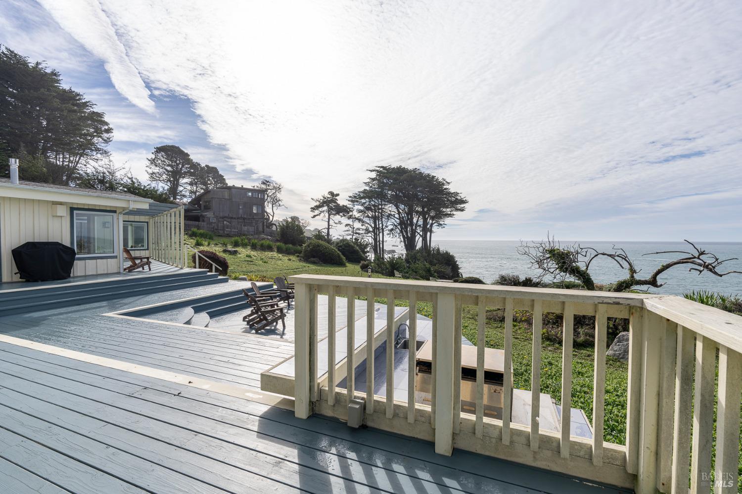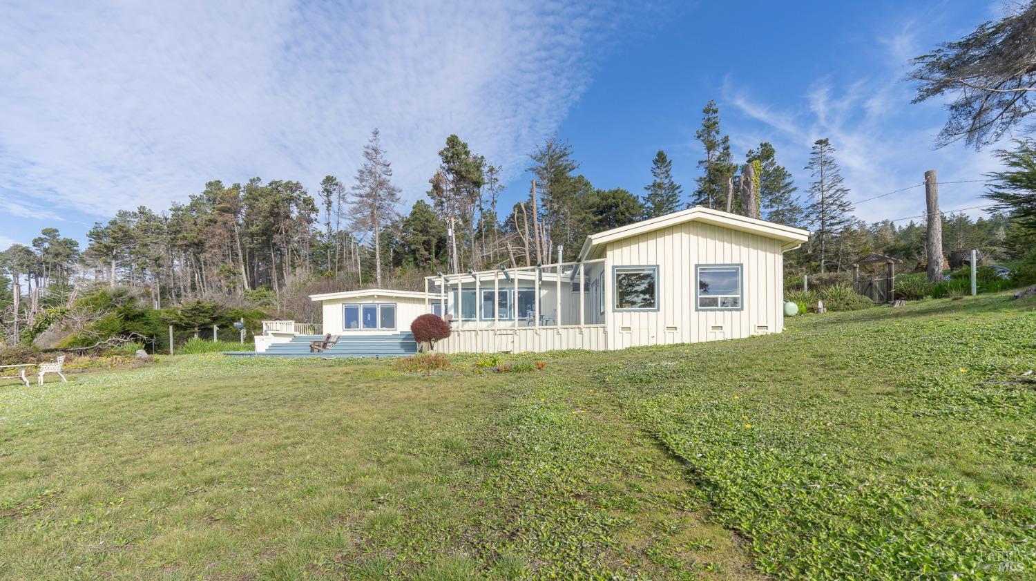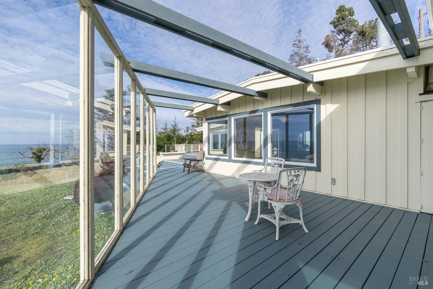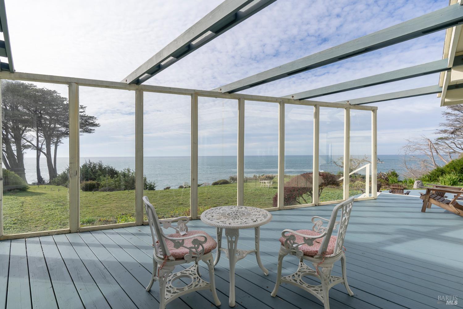 One in a million....Spectacular ocean front offering. Up front views of Castle Rock..almost an acre...this Sweet Vintage Old Coast Highway home is all one level with 2 bedrooms 2 baths. Updated kitchen is the heart of the great room..Travertine flooring in entry and in the great room...breath taking views from almost every room..large ocean front entertaining deck ...watch the migrating whales and flocks of pelicans...nature truly rules here...it is one spectacular view after the other. Ocean...Ocean everywhere. Plus end of the road privacy and close to town...full time or vacation living at its best. This healing place is begging for your personal touches...dreams do come true.