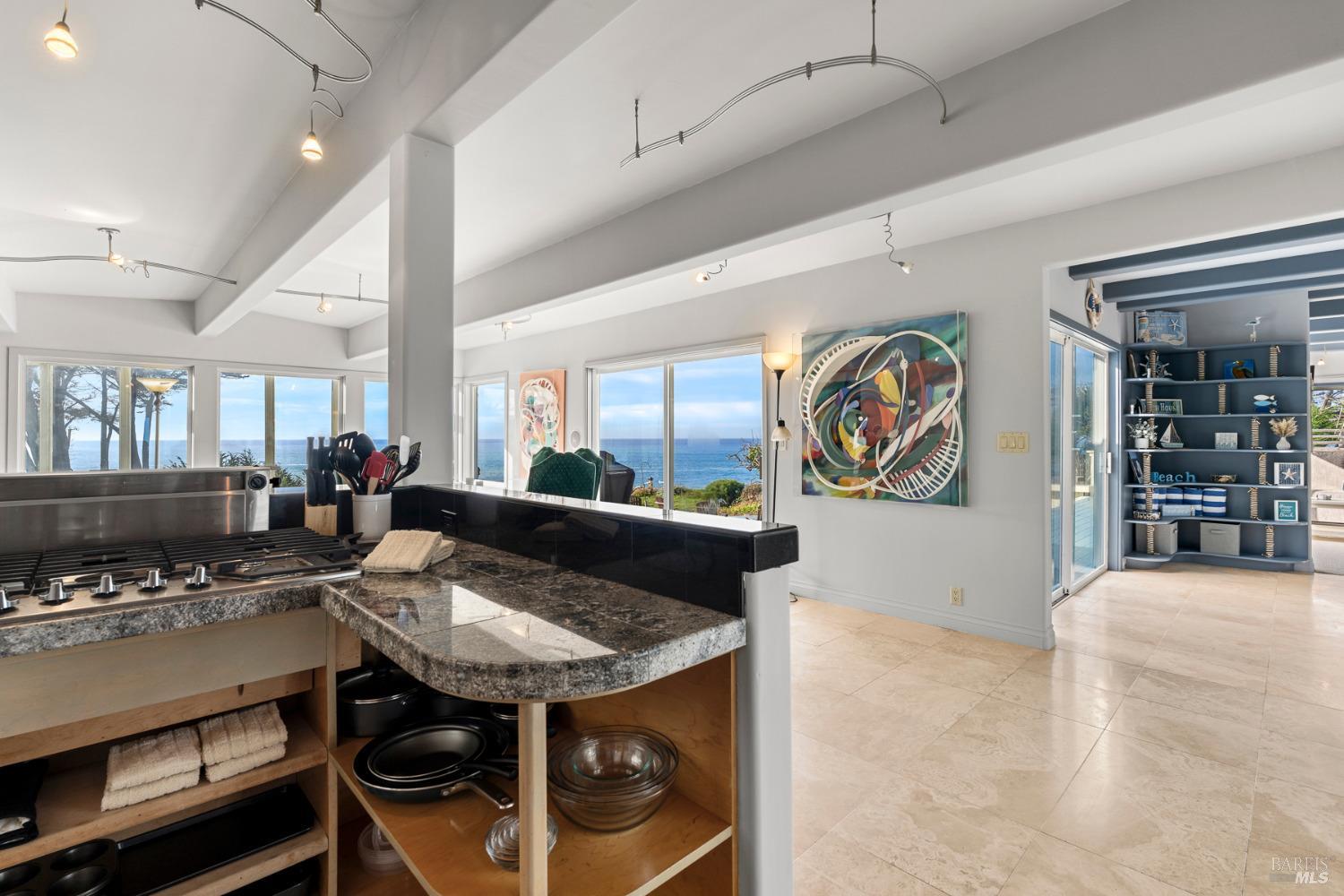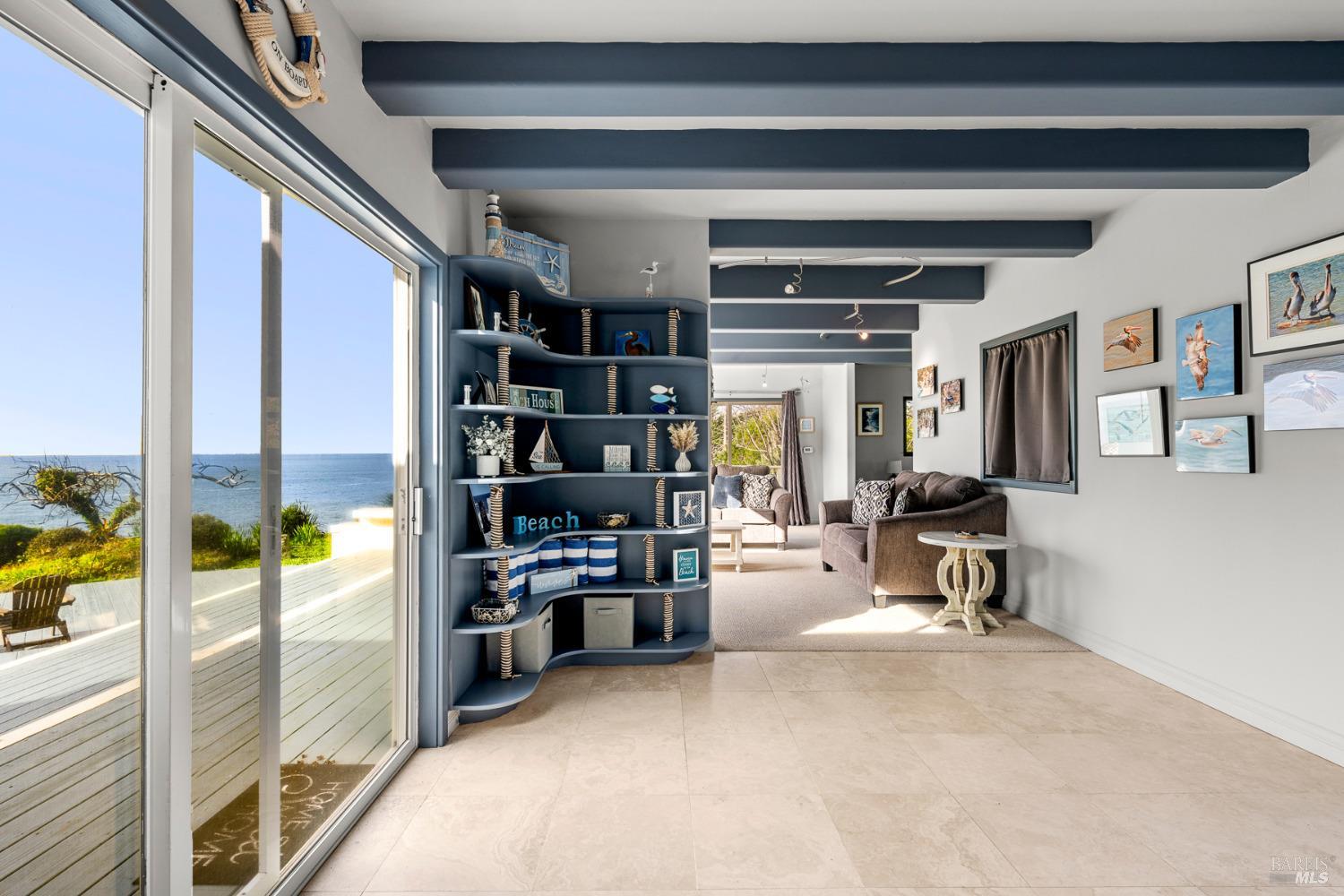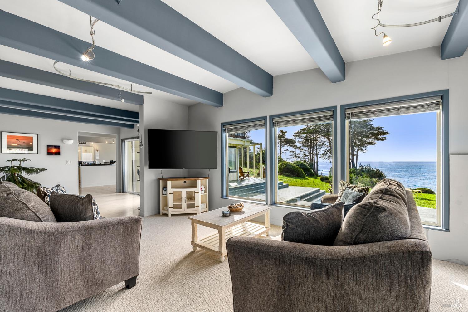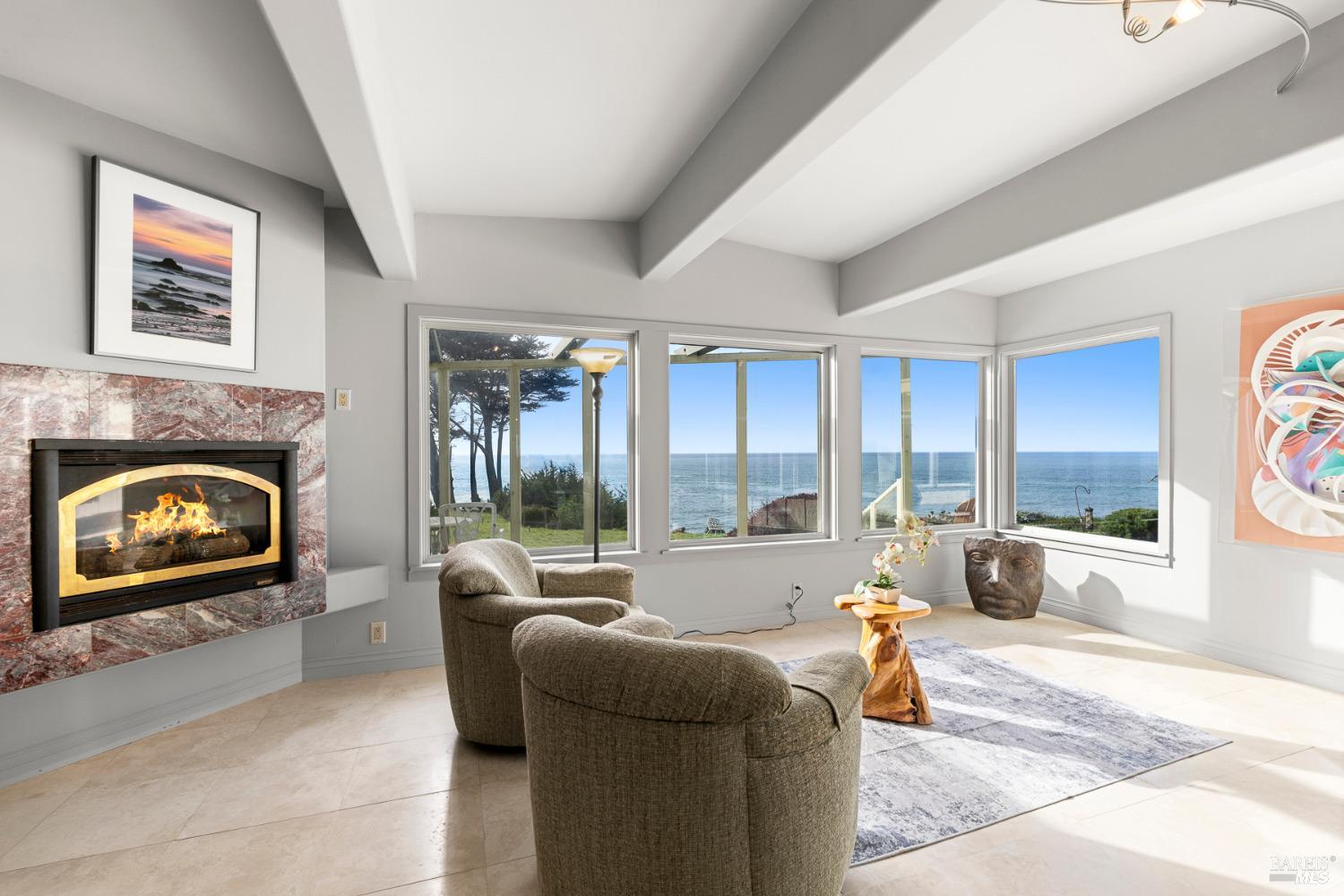 One in a million....Spectacular ocean front offering. Up front views of Castle Rock..almost an acre...this Sweet Vintage Old Coast Highway home is all one level with 2 bedrooms 2 baths. Updated kitchen is the heart of the great room..Travertine flooring in entry and in the great room...breath taking views from almost every room..large ocean front entertaining deck ...watch the migrating whales and flocks of pelicans...nature truly rules here...it is one spectacular view after the other. Ocean...Ocean everywhere. Plus end of the road privacy and close to town...full time or vacation living at its best. This healing place is begging for your personal touches...dreams do come true.