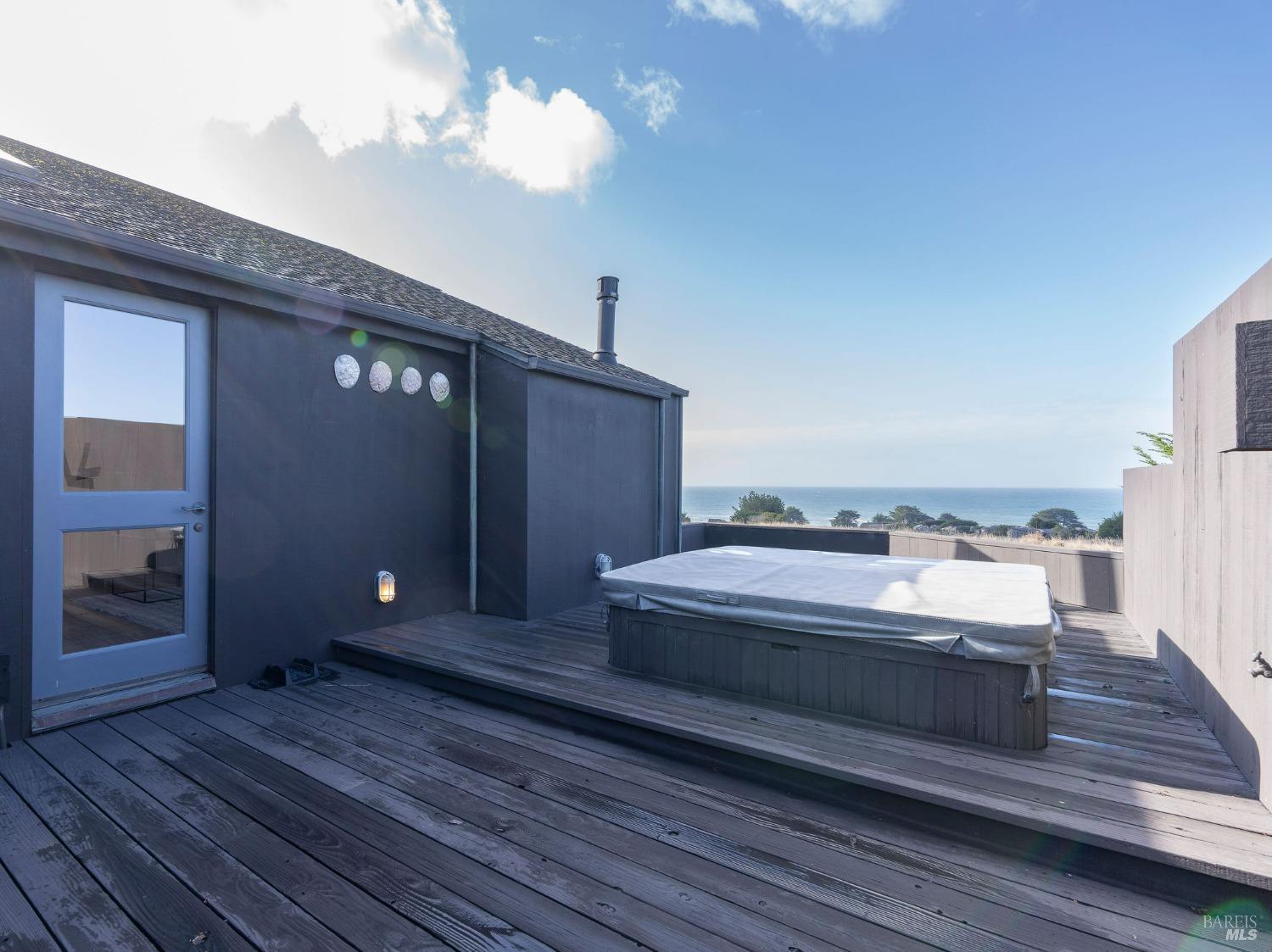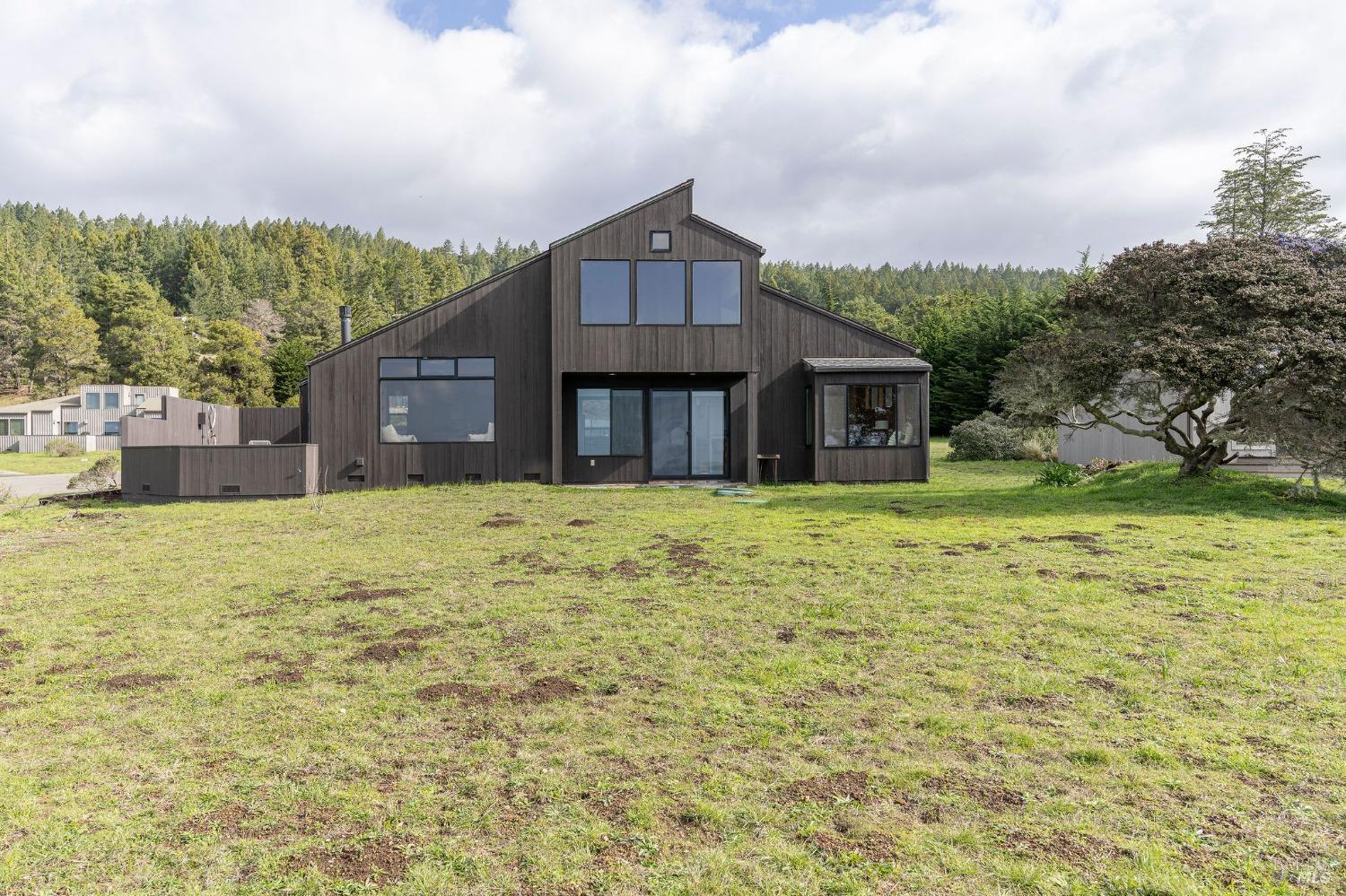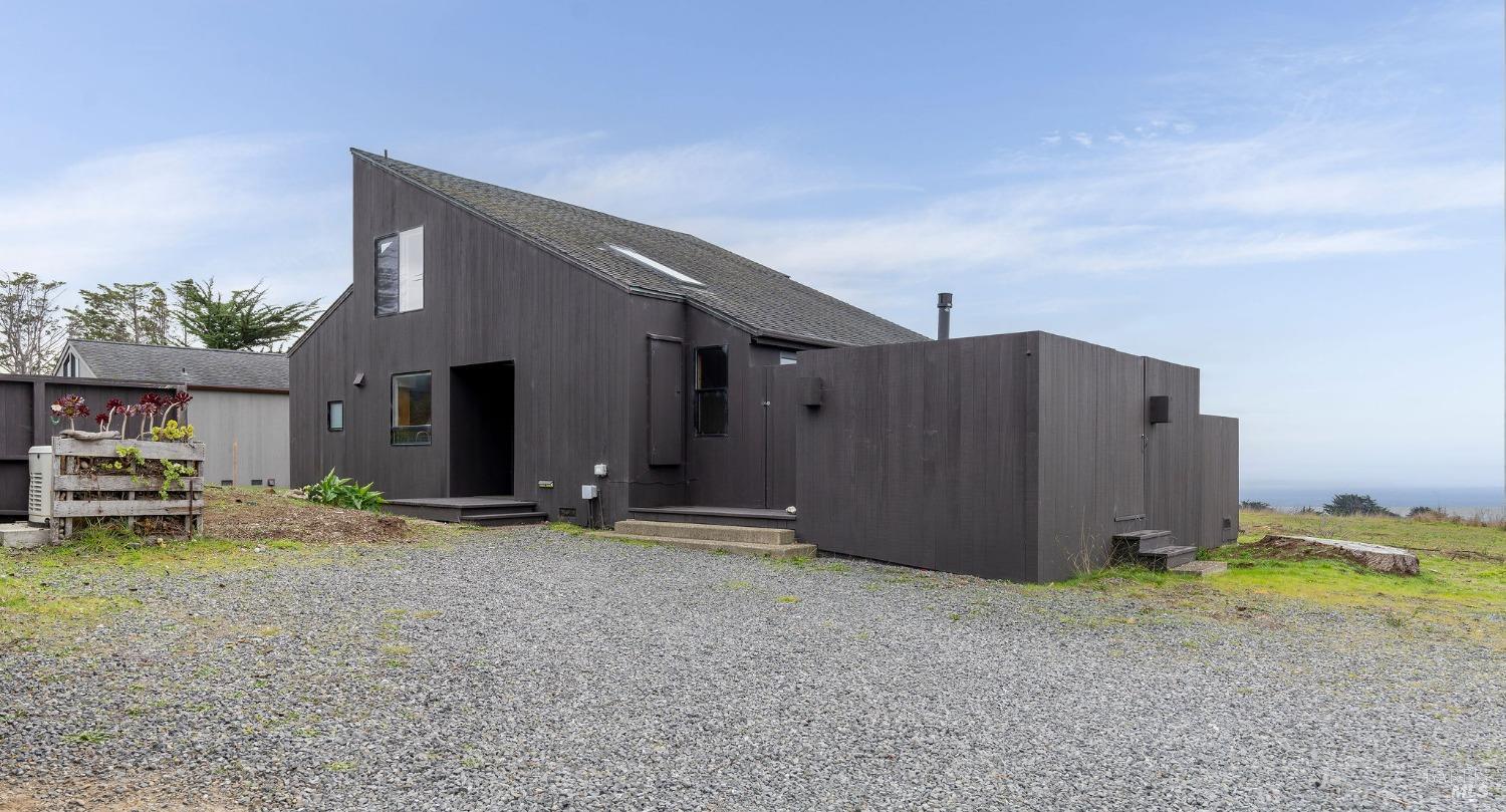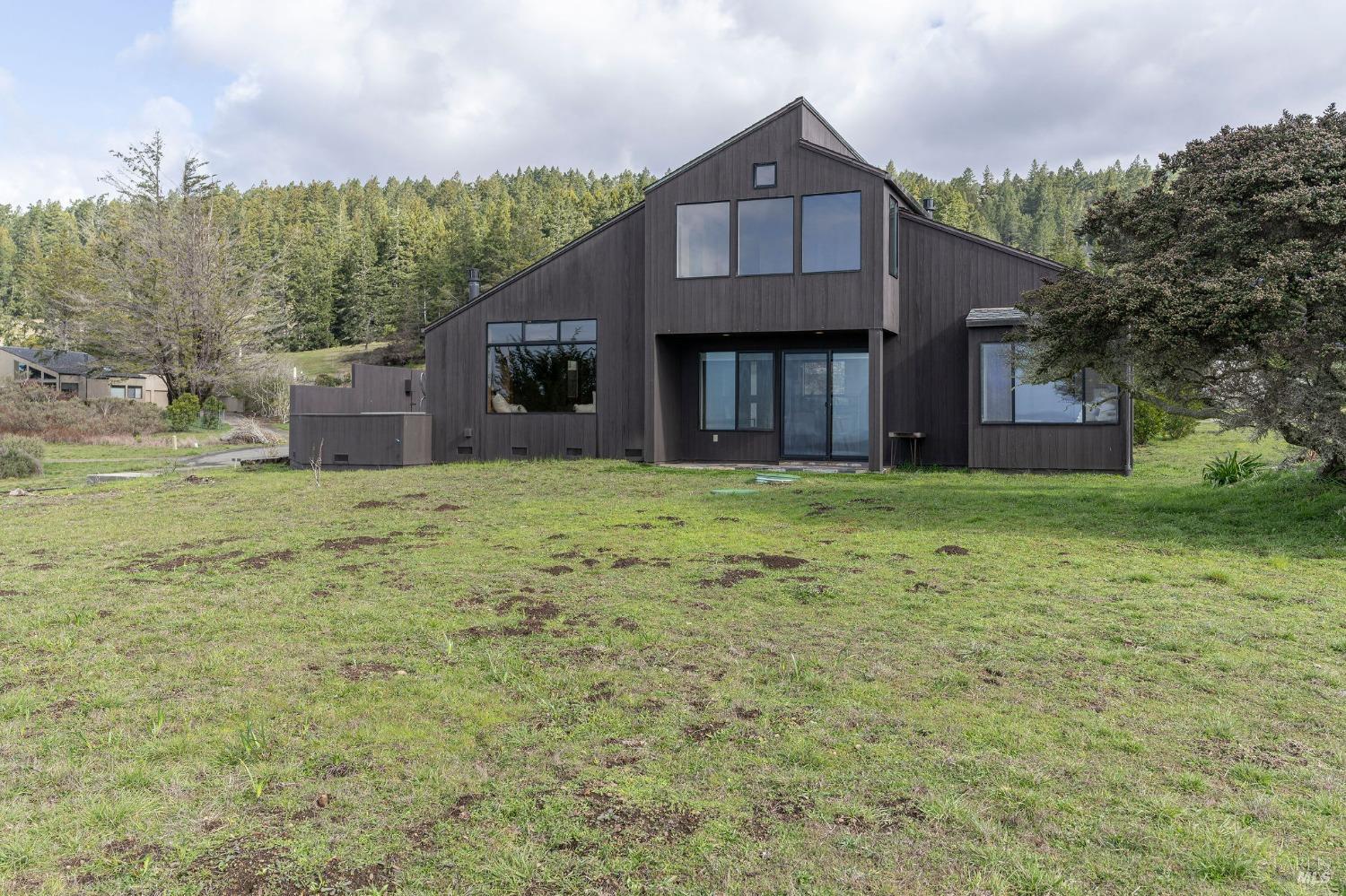 West Meadow gem with Sea Ranch charm offers expansive blue water ocean views. Large bedroom suite on the main floor window seat, adjacent bathroom with walk-in shower and washer/dryer. Upstairs you find 2 bedrooms with shared full bath with shower. One bedroom has panoramic ocean views across the meadow and the ocean. Living room has cozy propane fireplace, window seat and access to a large hot tub deck. Adjacent kitchen and dining room with beautiful meadow and ocean views and access to small patio. Enjoy sunsets, whale watching, observe abundant wildlife, star gaze, relax in window seat and outdoor living on the patio. The setting is on a quiet, peaceful, cul-de-sac with close proximity to trails leading into the hills and redwood forest or to ocean bluff and beaches. This 1972 house has seen a few transitions. Remodel/addition + new roof in 2012 and current approved 2025 plans for expansion with studio, courtyard, larger deck and garage by Bob Hartstock, Designer at The Sea Ranch. This house is ready for your family today and for the future! All utilities are underground to the property incl. fiber optic internet. EV charger hook-up and full house back-up generator. Serviced by a 3-bedroom septic system.