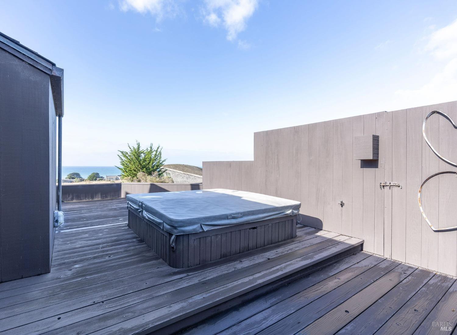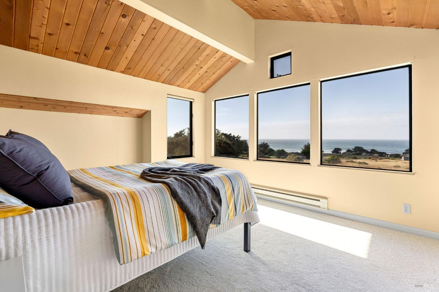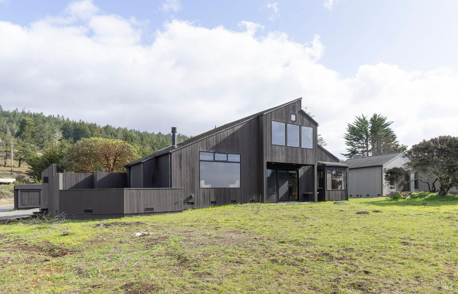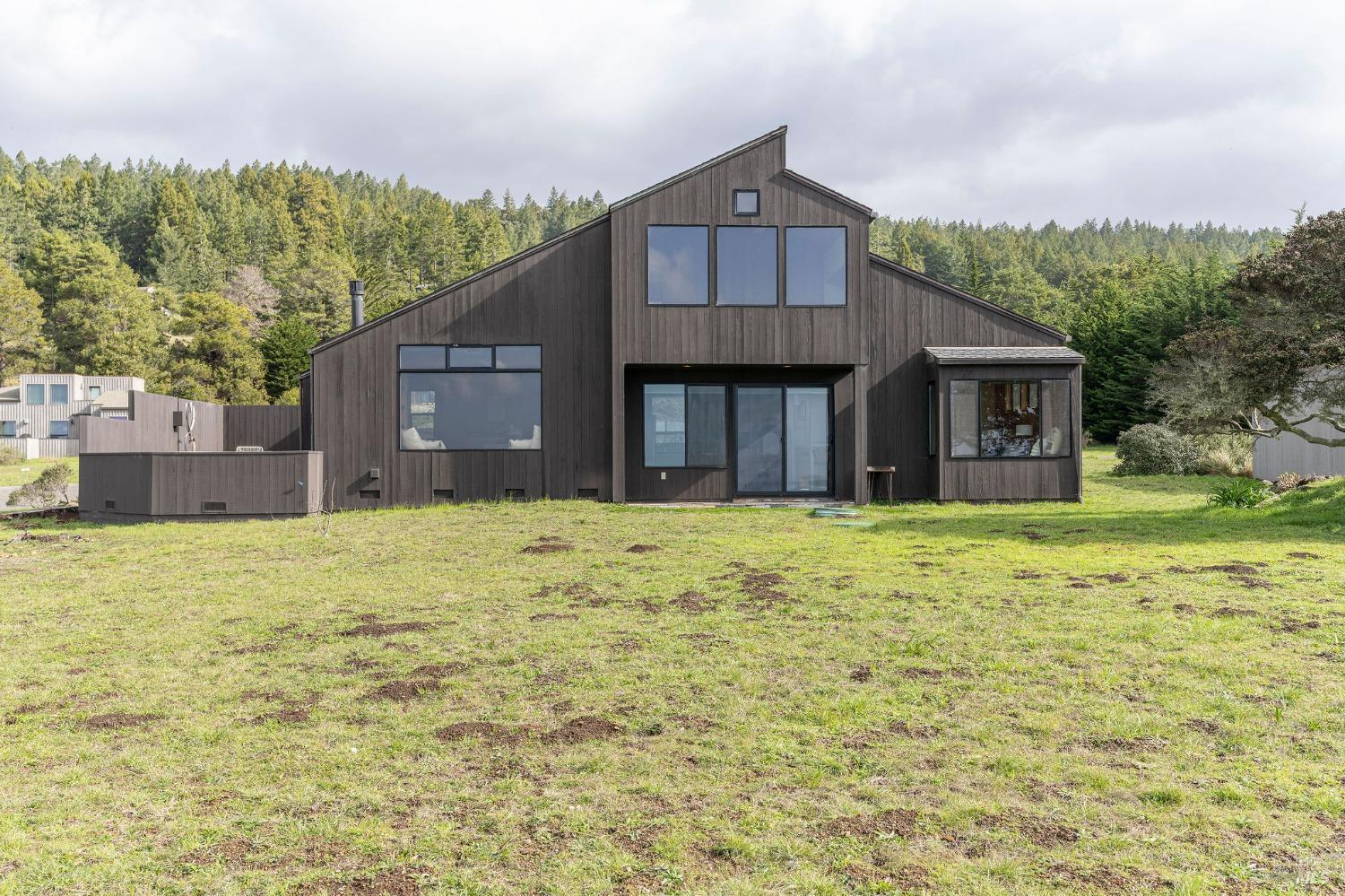 West Meadow gem with Sea Ranch charm offers expansive blue water ocean views. Large bedroom suite on the main floor window seat, adjacent bathroom with walk-in shower and washer/dryer. Upstairs you find 2 bedrooms with shared full bath with shower. One bedroom has panoramic ocean views across the meadow and the ocean. Living room has cozy propane fireplace, window seat and access to a large hot tub deck. Adjacent kitchen and dining room with beautiful meadow and ocean views and access to small patio. Enjoy sunsets, whale watching, observe abundant wildlife, star gaze, relax in window seat and outdoor living on the patio. The setting is on a quiet, peaceful, cul-de-sac with close proximity to trails leading into the hills and redwood forest or to ocean bluff and beaches. This 1972 house has seen a few transitions. Remodel/addition + new roof in 2012 and current approved 2025 plans for expansion with studio, courtyard, larger deck and garage by Bob Hartstock, Designer at The Sea Ranch. This house is ready for your family today and for the future! All utilities are underground to the property incl. fiber optic internet. EV charger hook-up and full house back-up generator. Serviced by a 3-bedroom septic system.