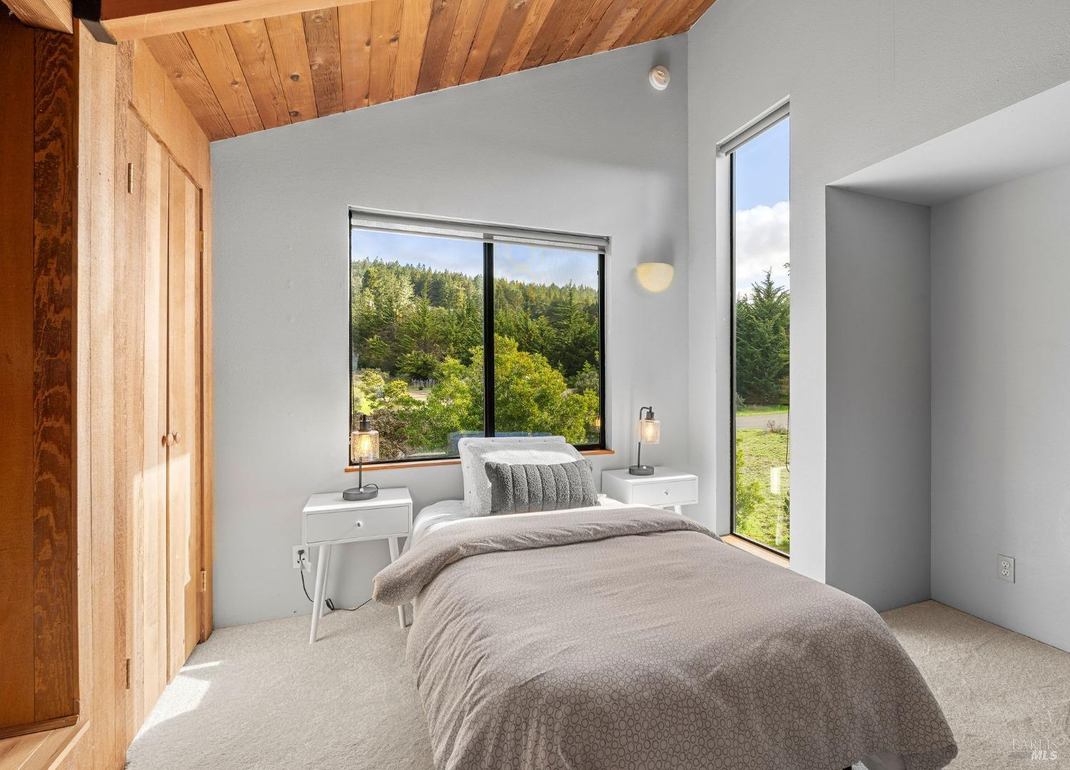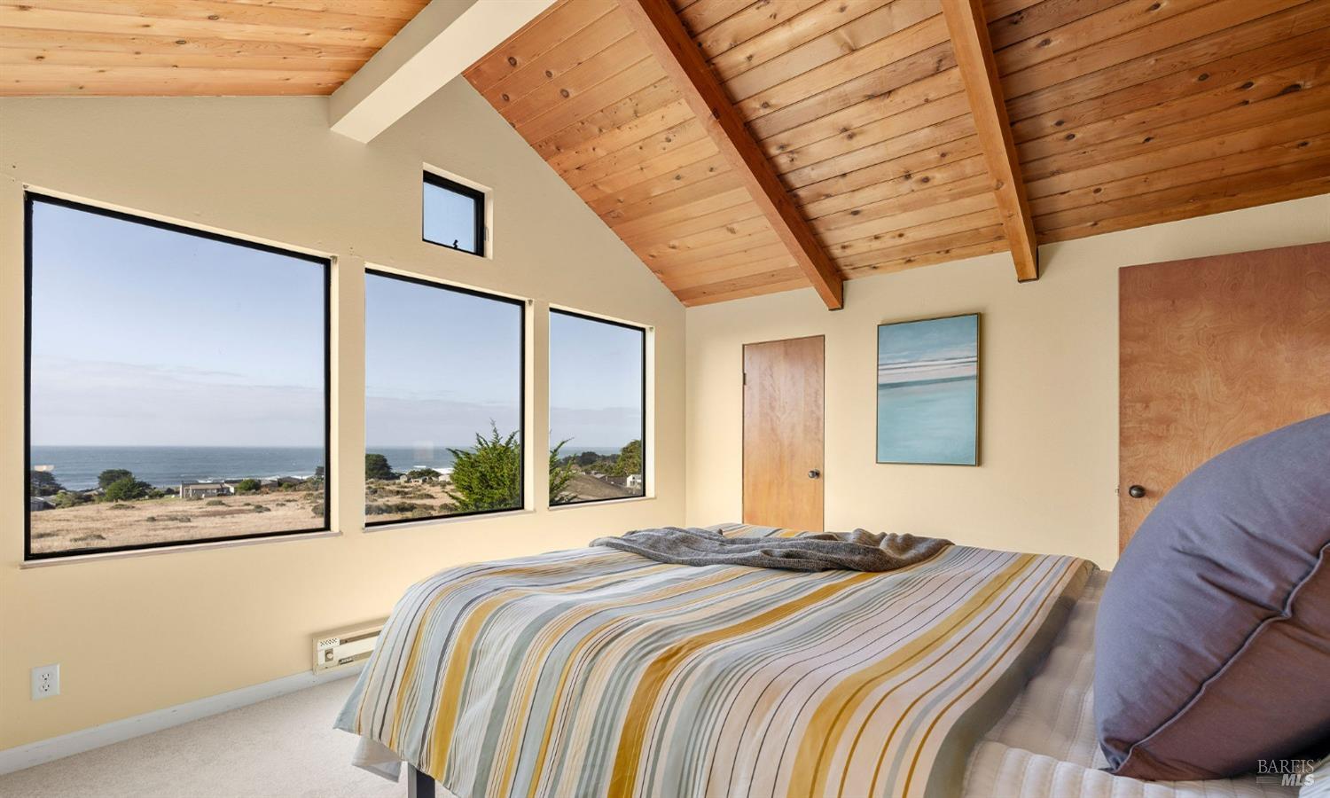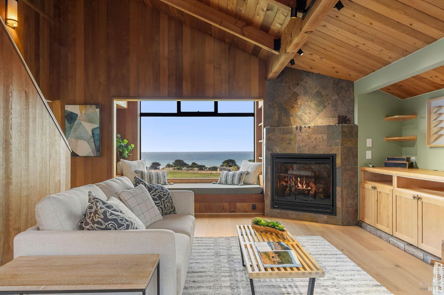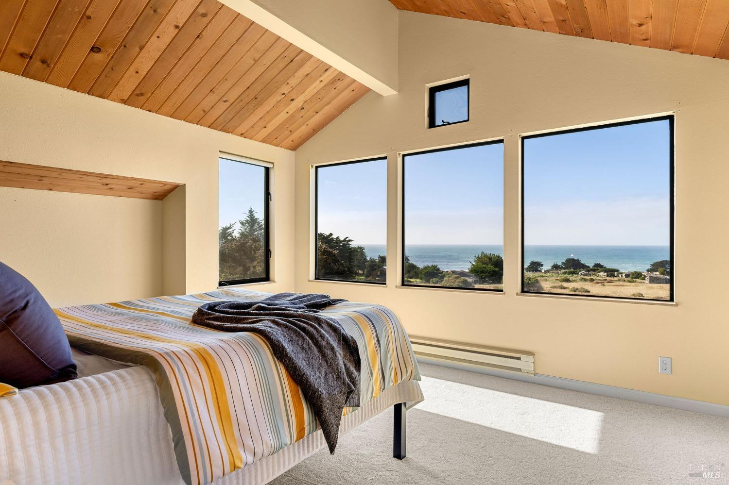West Meadow gem with Sea Ranch charm offers expansive blue water ocean views. Large bedroom suite on the main floor window seat, adjacent bathroom with walk-in shower and washer/dryer. Upstairs you find 2 bedrooms with shared full bath with shower. One bedroom has panoramic ocean views across the meadow and the ocean. Living room has cozy propane fireplace, window seat and access to a large hot tub deck. Adjacent kitchen and dining room with beautiful meadow and ocean views and access to small patio. Enjoy sunsets, whale watching, observe abundant wildlife, star gaze, relax in window seat and outdoor living on the patio. The setting is on a quiet, peaceful, cul-de-sac with close proximity to trails leading into the hills and redwood forest or to ocean bluff and beaches. This 1972 house has seen a few transitions. Remodel/addition + new roof in 2012 and current approved 2025 plans for expansion with studio, courtyard, larger deck and garage by Bob Hartstock, Designer at The Sea Ranch. This house is ready for your family today and for the future! All utilities are underground to the property incl. fiber optic internet. EV charger hook-up and full house back-up generator. Serviced by a 3-bedroom septic system.