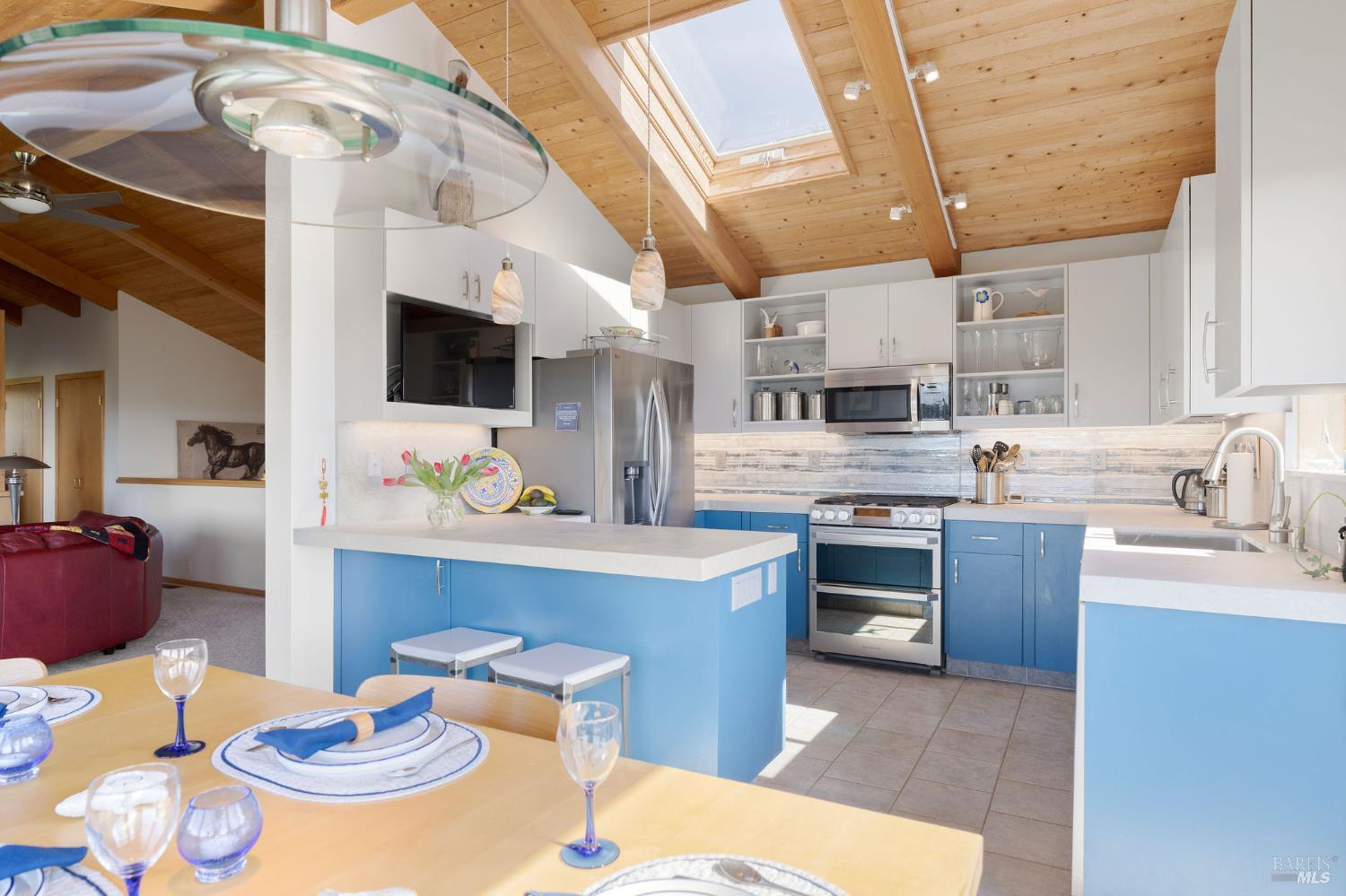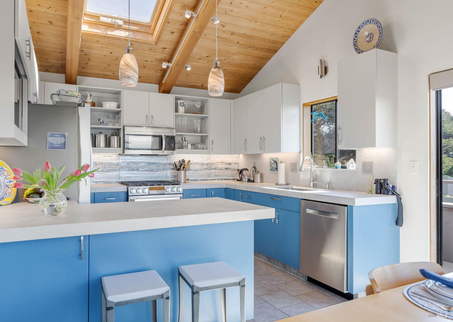 Welcome to The Sea Ranch and desirable unit 28. Perched to capture sweeping ocean views from the upper level, this thoughtfully designed 1996 home designed by Matheson and built by Contractor Carreiro blends coastal inspiration with flexible living spaces and serene outdoor retreats. Step into the beautifully updated 2019, ocean-inspired kitchen, where clean lines, natural light, and calming tones evoke the rhythm of the nearby sea perfect for both quiet mornings and effortless entertaining. The home's versatile layout offers a second living space/media room, complete with a cozy woodstove and an attached full bathroom, ideal for guests, extended family, or a private retreat. From here, enjoy tranquil hedgerow views that create a sense of privacy and calm. The home features two spacious primary suites on the first floor, offering comfort and convenience. One suite includes its own woodstove and direct access to the peaceful courtyard. A dedicated office with built-in cabinetry provides a refined workspace for remote work or creative pursuits. At the heart of the property is the Zen-like courtyard - a true outdoor oasis with lush gardens, an outdoor shower, and a hot tub perfectly positioned for soaking while taking in ocean views. With two bedrooms plus a den, a large office, and three full bathrooms, this home offers exceptional flexibility to live, work, and relax while surrounded by the beauty and tranquility of the coast. Walk to some of the best beaches at The Sea Ranch incl. Walk on Beach, Tide Pool and Shell beaches plus enjoy everything One Eyed Jacks has to offer just steps away from this property. The seal rookery is a very special place tucked into a cove just beyond a magic hedgerow leading from One Eyed Jacks to the ocean. Enjoy natures magic here every spring in a safe distance from the bluff top perch. Other amenities at The Sea Ranch include 60+ miles of trails and private roads ideal for hiking and biking from the redwoods to the sea; 3 recreation centers with outdoor heated pools, sauna, tennis, pickle ball and more. We have a private airstrip for members to arrive in speed and style. From Unit 28, you are almost equal distance to the village of Gualala for all needed services and the Sea Ranch Lodge for your retreat at the ocean. Come visit the beautiful Sonoma Coast and experience life at The Sea Ranch.
